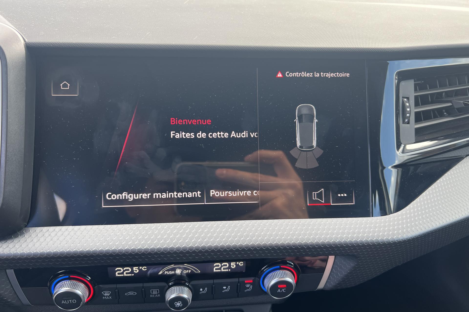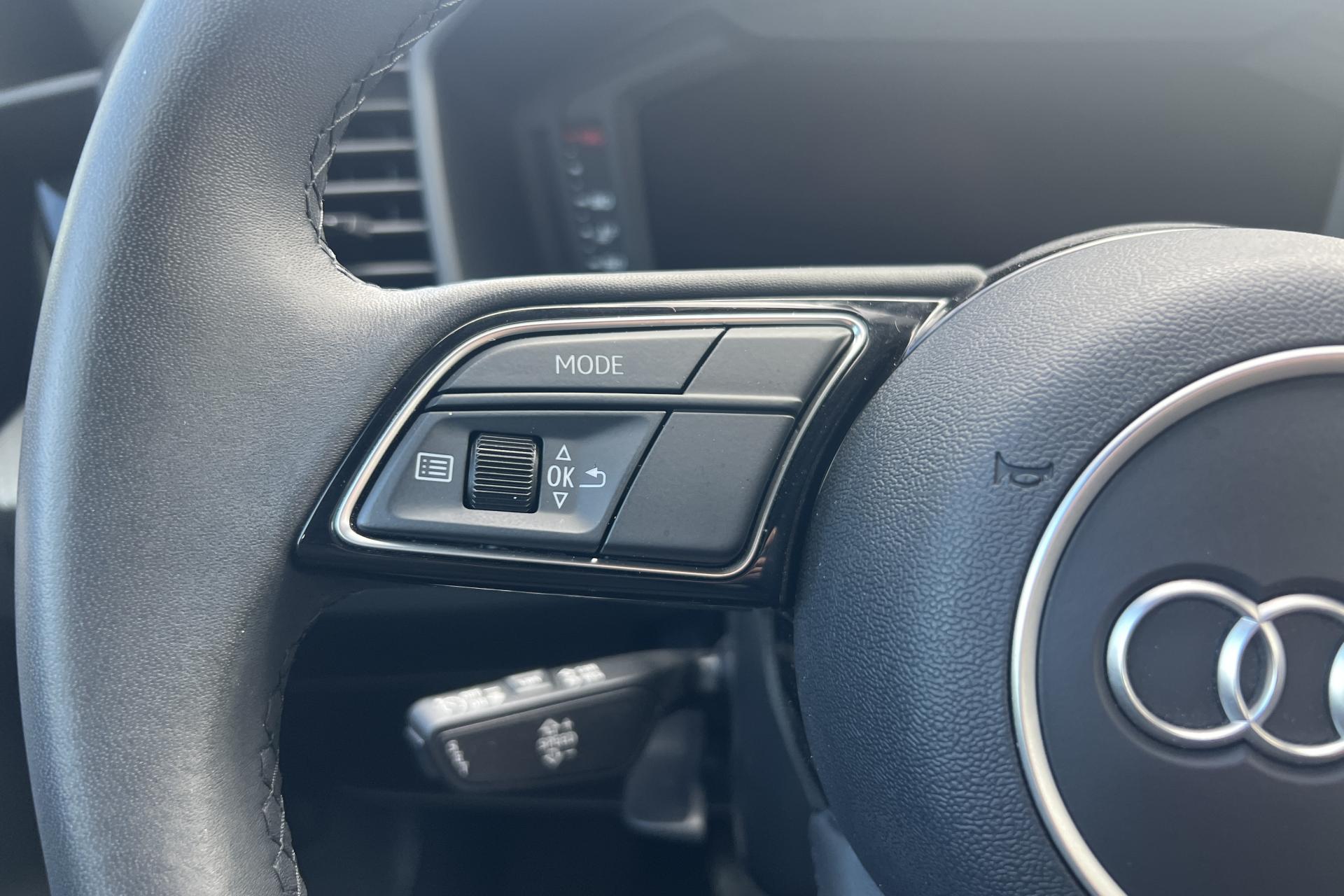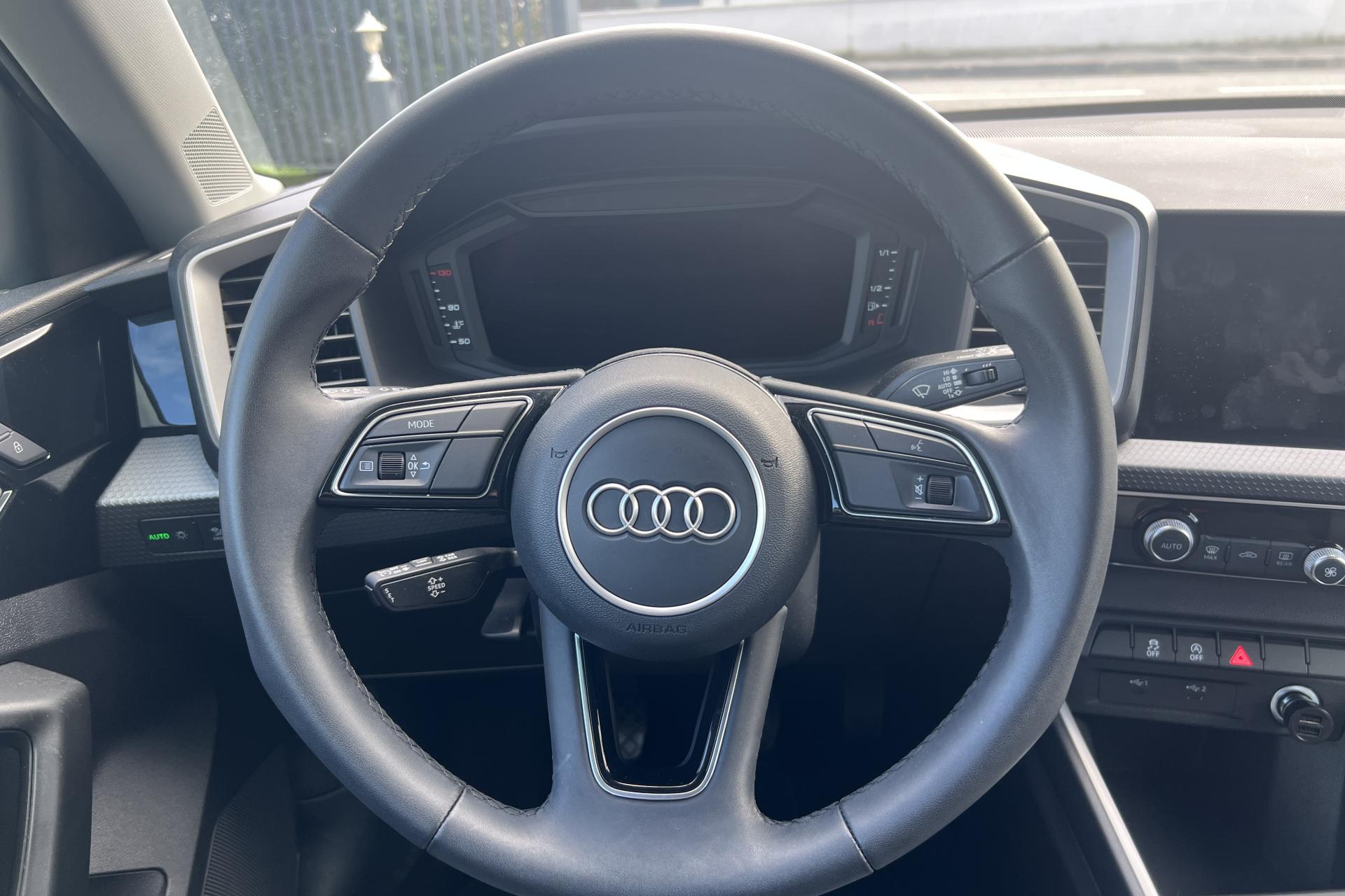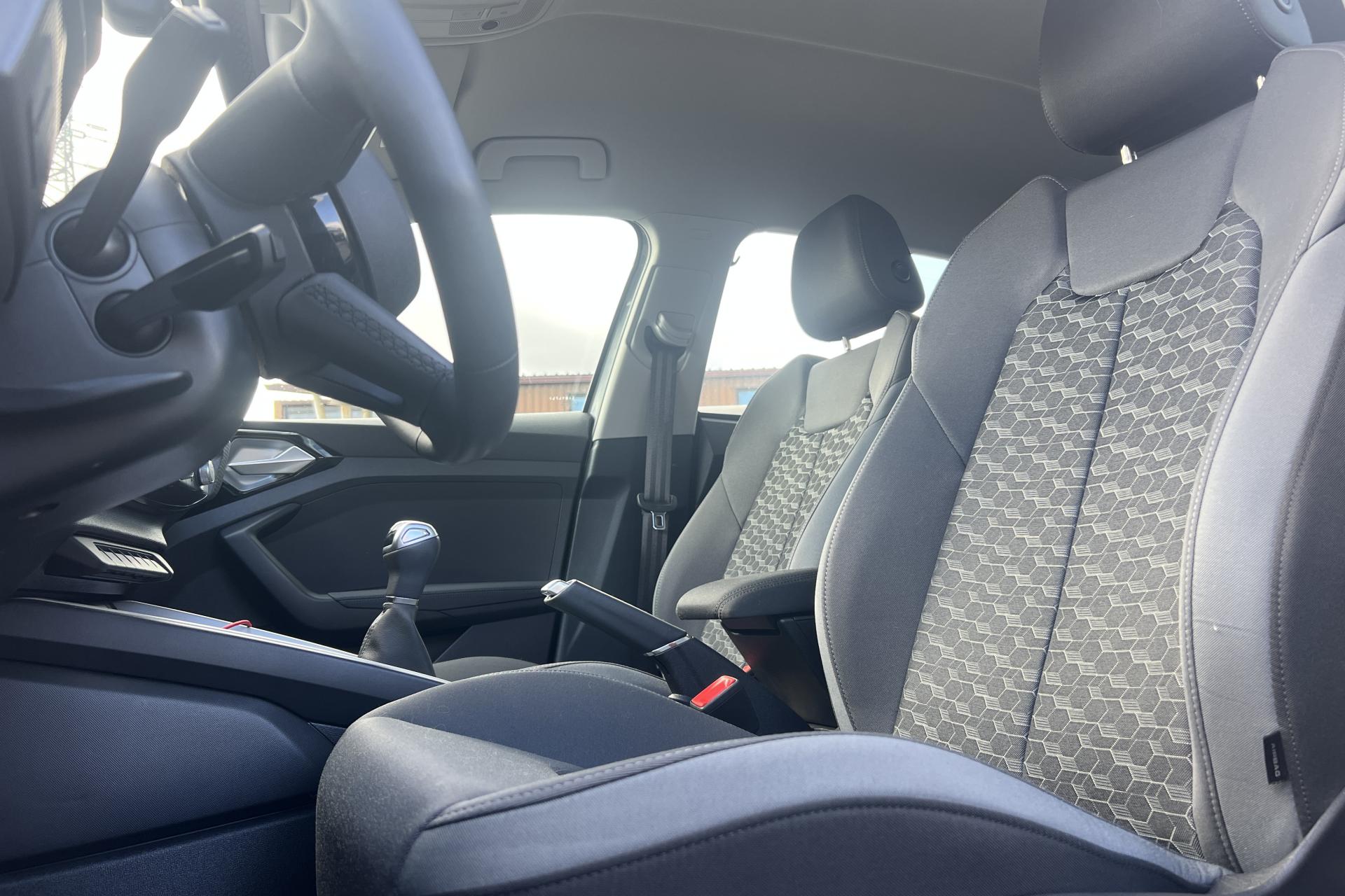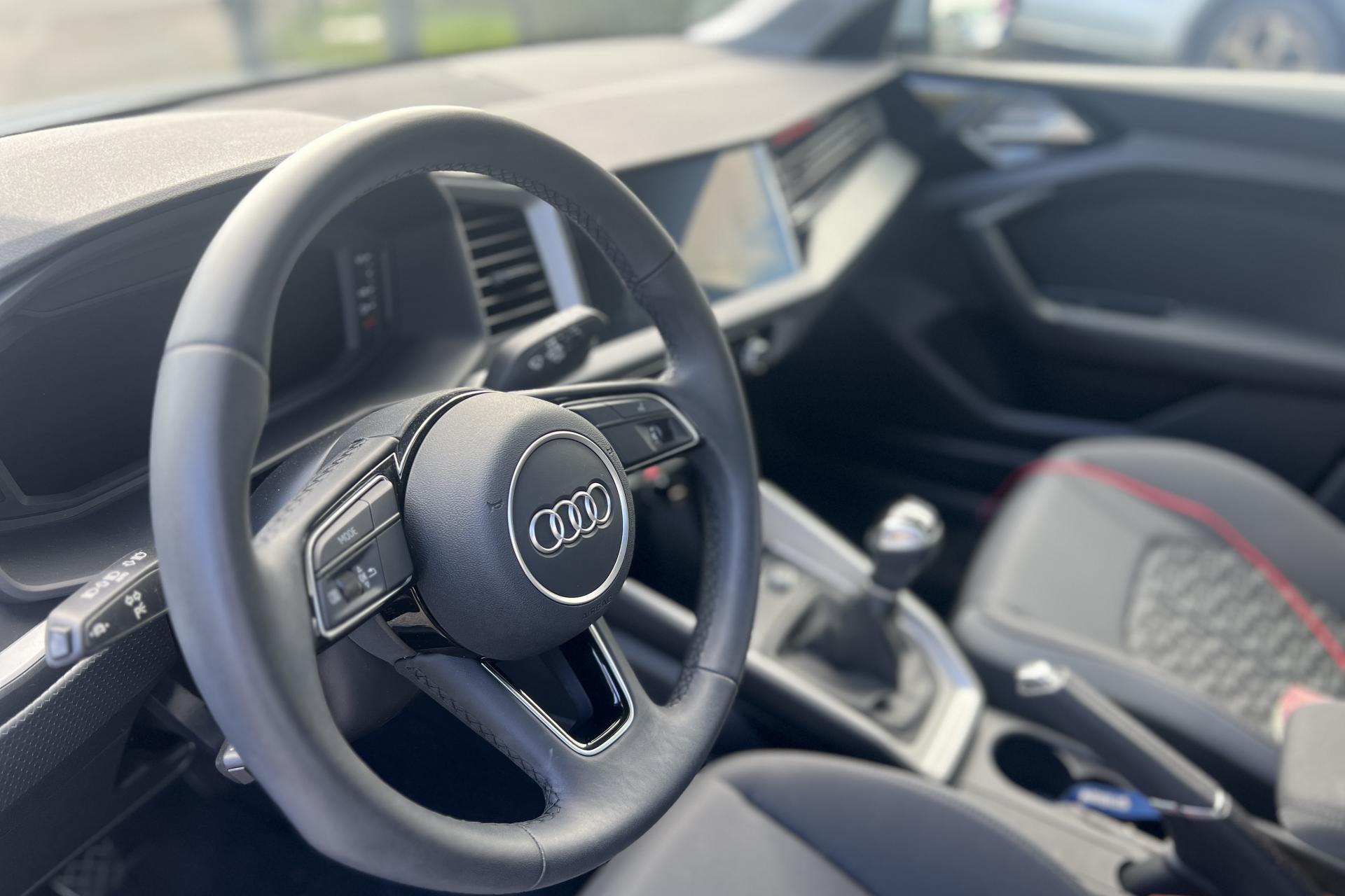 Accoudoir central avantAccoudoirs de portières en matériaux synthétiques à l'avantAffichage du contrôle de la pression des pneumatiquesAirbags latéraux à l'avant et système d'airbags de têteAppel d’urgence Audi connectApplications décoratives étendues en laque diamant Gris ArgentApplications décoratives étendues sur le tableau de bord façon verre en noirApplications décoratives structure polygone en laque fine ardoise sur le tableau de bordArches et pavillon de toit de couleur contrastéeAudi parking system à l'arrièreAudi pre sense frontAudi smartphone interfaceAvertisseur de franchissement de ligneBanquette AR fractionnable 60/40 ou entièrement rabattableCâbles de recharge pour téléphone portable, compatibles iPhone et AndroidCalandre en Noir TitaneChâssis standardCiel de pavillon en tissu gris titaneClé à fréquence radioClimatisation automatique confort 2 zonesDétecteur de pluie et allumage automatique des projecteursDétection d'occupation des sièges et du port de la ceinture de sécuritéDiffuseur à l’arrière en Noir Titane matDigital CockpitEclairage intérieurEncadrement de calandre en Argent Aluminium matEssuie-glace arrière à balayage intermittentFeux antibrouillard arrièreFeux arrière rougesInterface BluetoothInterface USB de type A pour le chargement d’appareils externes uniquementJantes en aluminium coulé style 5 branches en V partiellement polies, 7,5 J x 17" avec pneus 215/45 R 17Lève-vitres électriques à l'avant et à l'arrièreLèvres de becquet latérales à l’avant en noir mat grainéLimiteur de vitesseMMI Radio PlusMoulures de seuil avec insert en aluminium à l’avantPack RangementPare-brise en verre athermique avec bande grisePeinture métalliséePhares et feux arrière à LED avec clignotants dynamiques à l'arrièrePoignée de frein à main en plastiquePréparation pour la navigation MMI plus et Audi virtual cockpitPrises d’air latérales à l’avant en noir mat grainé avec encadrement C en Noir TitaneRégulateur de vitesseRétroviseur intérieur jour/nuit manuelRétroviseurs extérieurs couleur carrosserieRétroviseurs extérieurs réglables, dégivrants et rabattables électriquement, incluant fonction rabat automatique pour le rétroviseur côté passager avantSet de réparations pour pneusSièges avant réglables en hauteurSièges Sport avec appui lombaire manuel à 2 axes, et bourrelets latéraux enveloppantsSystème de lecture des panneaux de signalisation par caméraTapis de sol avant et arrièreTissu Novum pour sièges sport à l'avantTrousse de secours avec triangle de présignalisationVitres athermiquesVolant Cuir 3 branches multifonctions