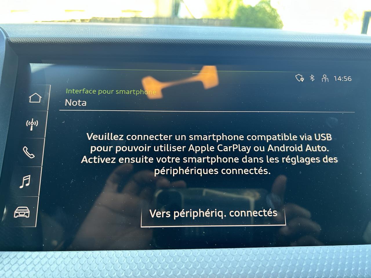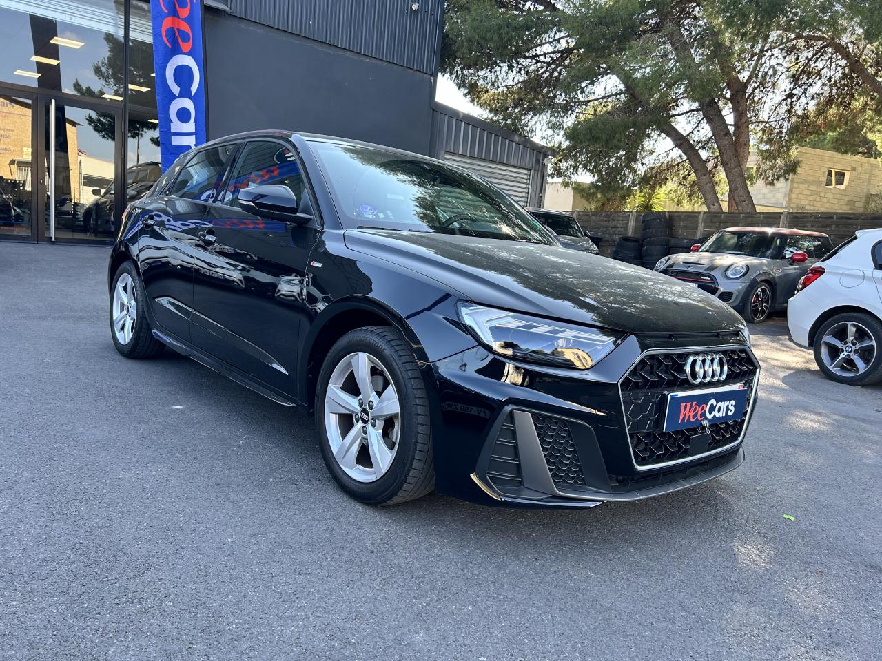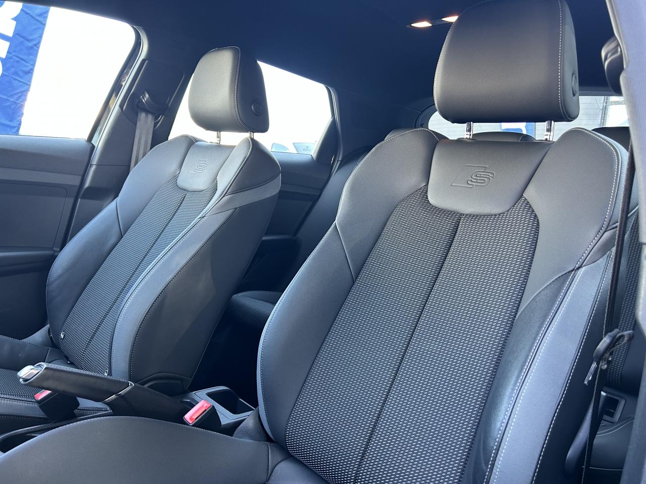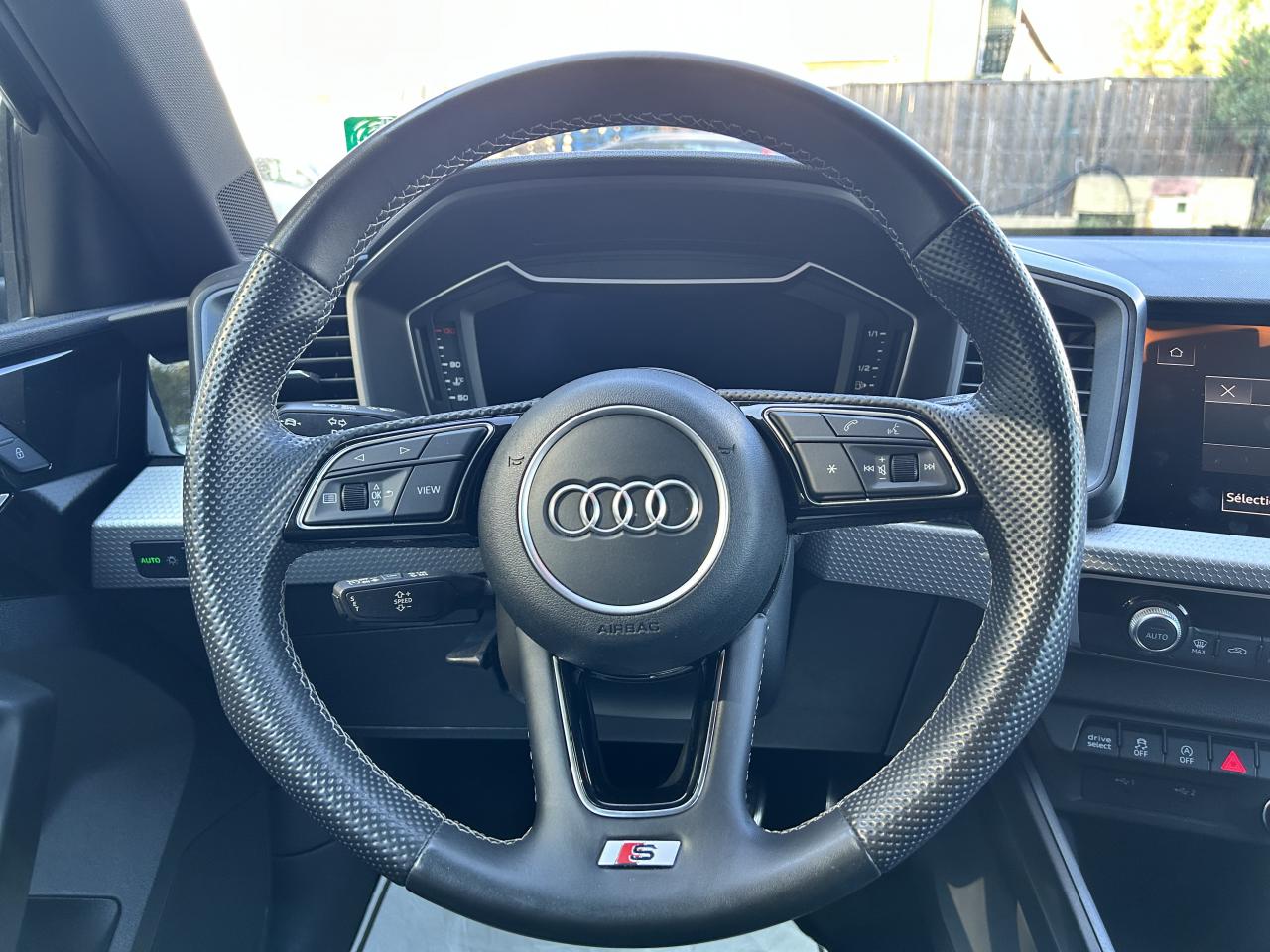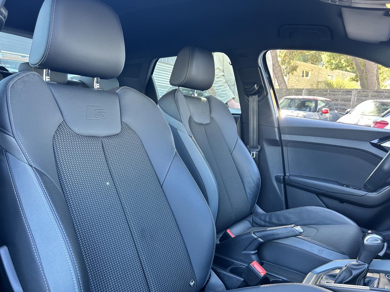 Affichage du contrôle de la pression des pneumatiquesAirbags latéraux à l'avant et système d'airbags de têteAppel d’urgence Audi connectApplications décoratives étendues en laque quartz gris structuréApplications décoratives étendues sur le tableau de bord façon verre en noirApplications décoratives structure polygone en laque diamant Gris ArgentAssistant de démarrage en côteAudi connect sécurité et assistance en ligneAudi Drive SelectAudi parking system à l'arrièreAudi pre sense frontAudi smartphone interfaceAudi virtual cockpitAvertisseur de franchissement de ligneBadges S line sur les ailes avantBanquette AR fractionnable 60/40 ou entièrement rabattableBarrette du diffuseur arrière Gris Platine matBas de caisse couleur carrosserieBecquet de pavillon S lineBoîtiers de rétroviseurs extérieurs couleur carrosserie sauf teinte Blanc CortinaBoîtiers de rétroviseurs extérieurs noirs mat avec teinte Blanc CortinaCâbles de recharge pour téléphone portable, compatibles iPhone et AndroidCalandre en noir mat grainéChâssis standardCiel de pavillon en tissu noirClé à fréquence radioClignotants LED intégrés dans les rétroviseursClimatisation automatique confort 2 zonesDétecteur de pluie et allumage automatique des projecteursDétection d'occupation des sièges et du port de la ceinture de sécuritéDiffuseur à l’arrière en Noir Titane matEclairage intérieurEncadrement de calandre en Argent Aluminium matEncadrement des prises d’air latérales en Noir TitaneEssuie-glace arrière à balayage intermittentFeux antibrouillard arrièreGrille de diffuseur arrière Noir Titane matInterface BluetoothInterface USB de type A pour le chargement d’appareils externes uniquementJantes en aluminium coulé style 5 branches dynamiques, 6,5 J x 16" avec pneus 195/55 R 16Lame de pare-chocs avant en Gris Platine matLève-vitres électriques à l'avant et à l'arrièreLèvres de becquet latérales à l’avant en noir mat grainéLimiteur de vitesseMMI Radio PlusMoulures de seuil avec insert en aluminium à l’avantPare-brise en verre athermique avec bande grisePare-chocs avant et arrière S LinePédalier en acier inoxydablePeinture vernie Blanc CortinaPhares et feux arrière à LED avec clignotants dynamiques à l'arrièrePoignée de frein à main en plastiquePrises d’air latérales à l’avant en noir mat grainéRégulateur de vitesseRétroviseur intérieur électrochromeRétroviseurs extérieurs électriques et dégivrants incluant buses de lave-glaces dégivrantesSélecteur de vitesses en cuir perforéSet de réparations pour pneusSièges avant réglables en hauteurSièges Sport cuir/tissu avec surpiqûre contrastée et estampillage S sur le dossier des sièges avantStyle aluminium à l’intérieurSurpiqûres contrastées en argent finTapis complémentaires à l’avant et à l’arrière avec surpiqûres contrastéesTapis de sol avant et arrièreTrousse de secours avec triangle de présignalisationVitres athermiquesVolant 3 branches multifonction plus en cuir