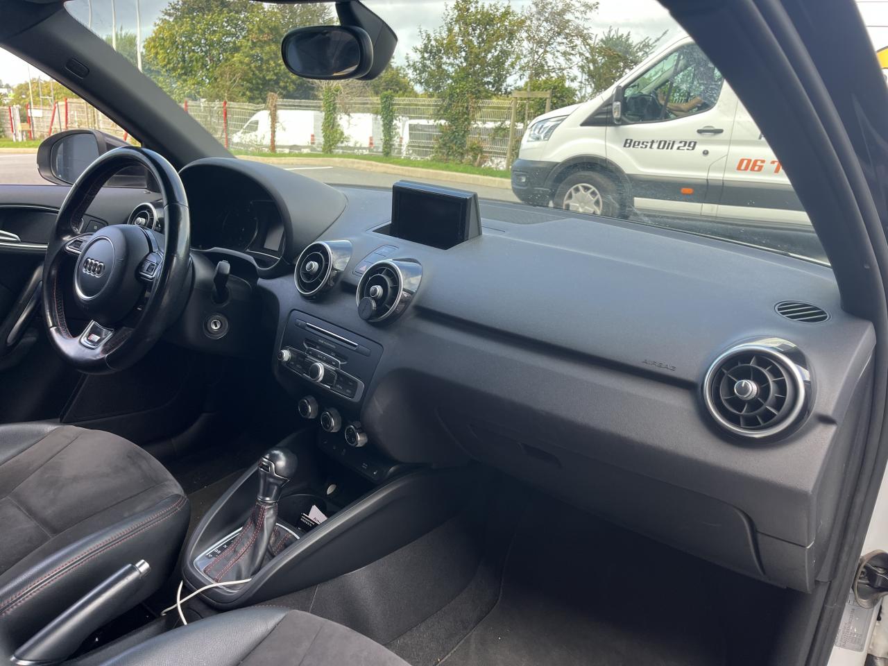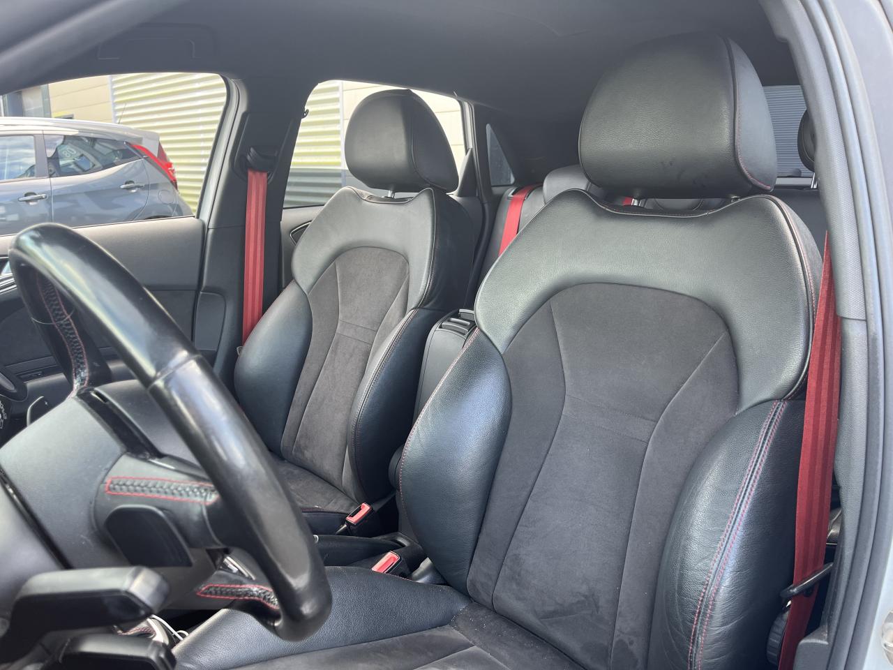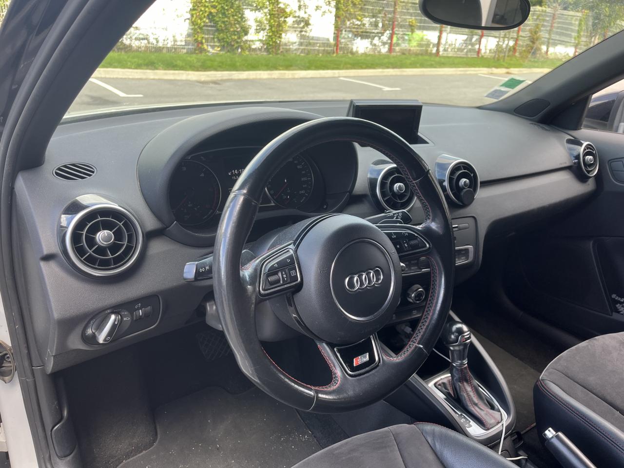 Airbags grand volume pour le conducteur et le passagerAirbags latéraux à l'avant intégrés dans les dossiers des sièges à l'avantAllume-cigare et cendrier sur la console centrale à l'avantAntipatinage électronique ASRAppuie-tête et inclinaison de dossier réglables manuellement et appui lombaire à 2 axes réglable manuellementAppuie-tête réglables à l'avant et à l'arrièreAssistant de démarrage en côteAssistant de freinage en cas de collision, en cas d'accidentAudi Drive SelectAudi Hill Hold AssistBadges S line sur les ailes avantBlocage électronique du différentiel EDL, aide au démarrageBoîte à gants côté passager avant, grand volume, avec éclairageCache-bagages amovibleCarrosserie galvanisée (entièrement galvanisée aux endroits exposés à la corrosion), autoportante, soudée au groupe-plancher, zones de déformation prédéfinies à l'avant et à l'arrièreCeintures de sécurité, trois points automatiques pour toutes les places, à l'avant avec réglage en hauteur et prétensionneurs pyrotechniques ; limiteurs de tension sur toutes les placesChâssis Sport avec suspension et amortissement fermes pour un contact plus direct avec la route et un comportement sportifCiel de pavillon en tissu noirClignotants avec fonction autoroute : une brève impulsion sur le comodo active 3 cycles de clignotementClimatisation automatique "Confort"Colonne de direction de sécuritéConsole centrale avec 2 porte-boissons et vide-poches complémentaireContact d'allumage électronique ; clé de contact pouvant mémoriser différentes données d'entretienContre-portes avec partie centrale en tissu et accoudoir intégréContrôle de ceinture attachée pour toutes les placesContrôle de pression des pneus ( TPMS )Cric dans le coffreDétecteur de pluie et de luminosité incluant bande grise dans la partie supérieure du pare-briseDirection assistée particulièrement sportive et directe avec assistance électromécanique asservie à la vitesse et faible consommation d'énergieDossier de banquette arrière rabattable en deux parties , 1/3, 2/3 ou complétementEclairage intérieur, à temporisation avec contacteurs sur toutes les portières ; éclairage du coffreEcran central avec éclairage réglableEcrous antivolEntourages de diffuseurs d'air noir brillantESP avec blocage transversal électroniqueEssuie-glace deux vitesses avec commande automatiqueFeux arrière rouges, feux de recul blancs, avec feux de brouillard arrière et design d'éclairage innovantFeux de freinage adaptatifs, les feux de détresse clignotent en cas de freinage d'urgence afin de prévenir les voitures qui suivent. Activation des feux de détresse en cas d'arrêtFeux stop et feux arrière à LED et nouveau design tridimensionnelFiltre à particulesFixations ISOFIX à l'arrièreIdentification du modèle/technologie sur le capot de coffreJantes Audi Sport en aluminium coulé style 10 branches, 7,5 J x 17 avec pneus 215/40 R 17Lave-phares haute pressionLève-vitres électriques, avec protection anti pincement, ouverture/fermeture confort par le verrouillage centralisé, fonction ouverture/fermeture par impulsionLunette arrière dégivrante, avec minuterie; chauffage supplémentaire de l'extrémité inférieure de l'essuie-glace arrièreMMI Radio (Concert), incluant concept de commande MMI avec écran couleurs de 6,5 pouces, lecteur CD et lecteur de cartes SDHC compatibles MP3/WMA et AAC, ainsi que prise AUX-IN et 8 haut-parleurs à l'avant et à l'arrière, puissance totale 80 wattsMoquette en velours de couleur assortie à celle de l'habitacleOEilletons de fixation, quatre dans le coffre, pour maintenir les bagages et objets, points de fixation pour le filet mixte en optionOrdinateur de bord avec écran blanc TFT monochrome de 3,5 poucesOutillage de bord dans le coffrePack aluminium intérieurPack ConnectivityPack Eclairage intérieur à LEDPare-soleil rabattables et pivotants, côtés conducteur et passager avant, avec miroir de courtoisie occultablePédalier en acier inoxydablePoignées de maintien, avec mécanisme amortisseur, rabattables, encastrées dans le pavillonPommeau de levier de vitesses en cuir perforéPrise de courant 12 Volts sur la console centraleProjecteurs antibrouillardProjecteurs Xénon plus avec feux de jour à LED, incluant feux stop, feux arrière et feux d'éclairage de la plaque d'immatriculation arrière à LED avec nouveau design tridimensionnelProtection antidémarrage électronique, intégrée à la gestion du moteur, activation automatique par la clé du véhiculeProtection latérale anticollisionRécupération en augmentant la tension du générateur, l'énergie cinétique est convertie en énergie électrique utilisable durant les phases de décélération ou de freinageRégulateur de vitesse incluant ordinateur de bord avec programme efficiencyRétroviseur intérieur électrochromeRétroviseurs extérieurs couleur carrosserieRétroviseurs extérieurs dégivrants et escamotables ; buses de lave-glace chauffantesRétroviseurs extérieurs électriquesSécurité enfants électrique pour portes et vitres ARSellerie mixte en cuir et tissu Sprint avec estampillage S lineSet de réparation pour pneus avec compresseur 12 volts et produit de colmatage pour les pneus, vitesse maximale 80 km/hSeuils de portes en aluminium avec inscription S lineSièges conducteur et passager avant réglables en hauteur manuellementSièges Sport à l'avant avec bourrelets latéraux fortement marqués assurant un meilleur maintien dans les viragesSingleframe, calandre en gris platine avec entretoises horizontales chromées. Avec anneaux Audi chromés au centreSortie d'échappement à gauche, visible simpleSorties d'échappement chroméesSystème d'appuie-tête intégralSystème de ventilation et chauffage réglable sur quatre niveauxSystème Stop & StartTapis complémentaires avant et arrièreTémoins de contrôle pour entre autres : airbags, ABS, ESC/ASR, frein à main serré, électronique EDS, générateur, éc