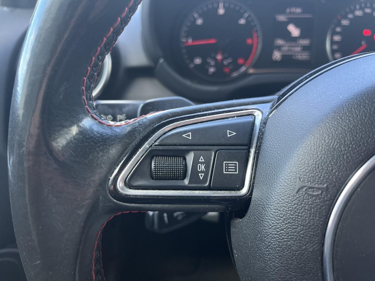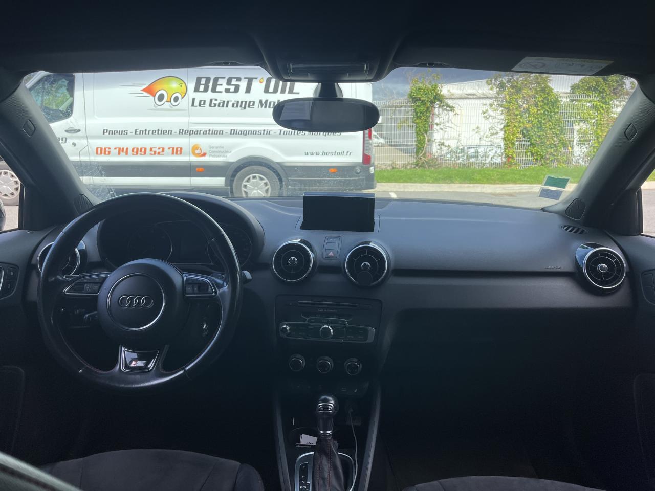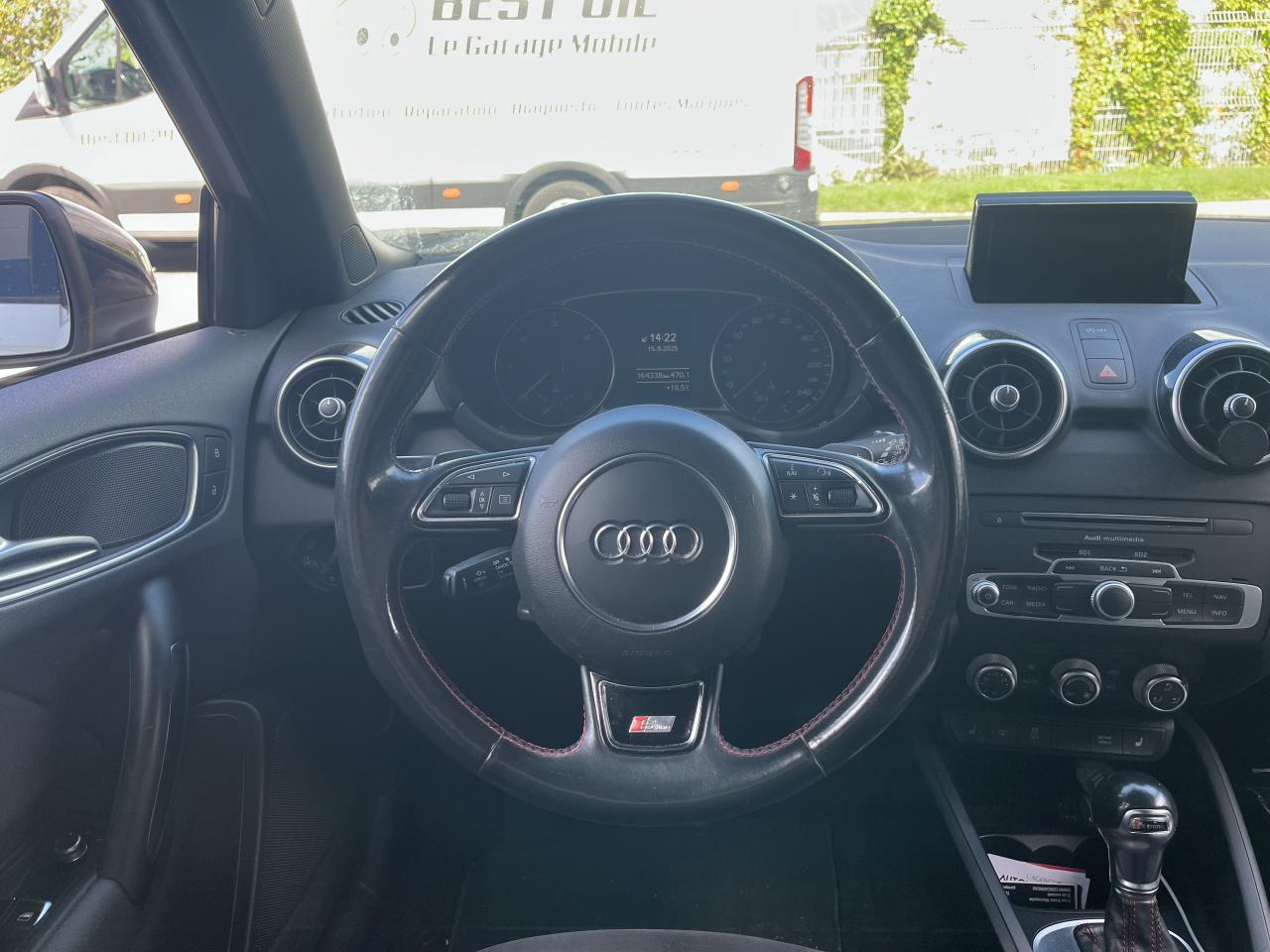 Airbags grand volume pour le conducteur et le passagerAirbags latéraux à l'avant intégrés dans les dossiers des sièges à l'avantAllume-cigare et cendrier sur la console centrale à l'avantAntipatinage électronique ASRAppuie-tête et inclinaison de dossier réglables manuellement et appui lombaire à 2 axes réglable manuellementAppuie-tête réglables à l'avant et à l'arrièreAssistant de démarrage en côteAssistant de freinage en cas de collision, en cas d'accidentAudi Drive SelectAudi Hill Hold AssistBadges S line sur les ailes avantBlocage électronique du différentiel EDL, aide au démarrageBoîte à gants côté passager avant, grand volume, avec éclairageCache-bagages amovibleCarrosserie galvanisée (entièrement galvanisée aux endroits exposés à la corrosion), autoportante, soudée au groupe-plancher, zones de déformation prédéfinies à l'avant et à l'arrièreCeintures de sécurité, trois points automatiques pour toutes les places, à l'avant avec réglage en hauteur et prétensionneurs pyrotechniques ; limiteurs de tension sur toutes les placesChâssis Sport avec suspension et amortissement fermes pour un contact plus direct avec la route et un comportement sportifCiel de pavillon en tissu noirClignotants avec fonction autoroute : une brève impulsion sur le comodo active 3 cycles de clignotementClimatisation automatique "Confort"Colonne de direction de sécuritéConsole centrale avec 2 porte-boissons et vide-poches complémentaireContact d'allumage électronique ; clé de contact pouvant mémoriser différentes données d'entretienContre-portes avec partie centrale en tissu et accoudoir intégréContrôle de ceinture attachée pour toutes les placesContrôle de pression des pneus ( TPMS )Cric dans le coffreDétecteur de pluie et de luminosité incluant bande grise dans la partie supérieure du pare-briseDirection assistée particulièrement sportive et directe avec assistance électromécanique asservie à la vitesse et faible consommation d'énergieDossier de banquette arrière rabattable en deux parties , 1/3, 2/3 ou complétementEclairage intérieur, à temporisation avec contacteurs sur toutes les portières ; éclairage du coffreEcran central avec éclairage réglableEcrous antivolEntourages de diffuseurs d'air noir brillantESP avec blocage transversal électroniqueEssuie-glace deux vitesses avec commande automatiqueFeux arrière rouges, feux de recul blancs, avec feux de brouillard arrière et design d'éclairage innovantFeux de freinage adaptatifs, les feux de détresse clignotent en cas de freinage d'urgence afin de prévenir les voitures qui suivent. Activation des feux de détresse en cas d'arrêtFeux stop et feux arrière à LED et nouveau design tridimensionnelFiltre à particulesFixations ISOFIX à l'arrièreIdentification du modèle/technologie sur le capot de coffreJantes Audi Sport en aluminium coulé style 10 branches, 7,5 J x 17 avec pneus 215/40 R 17Lave-phares haute pressionLève-vitres électriques, avec protection anti pincement, ouverture/fermeture confort par le verrouillage centralisé, fonction ouverture/fermeture par impulsionLunette arrière dégivrante, avec minuterie; chauffage supplémentaire de l'extrémité inférieure de l'essuie-glace arrièreMMI Radio (Concert), incluant concept de commande MMI avec écran couleurs de 6,5 pouces, lecteur CD et lecteur de cartes SDHC compatibles MP3/WMA et AAC, ainsi que prise AUX-IN et 8 haut-parleurs à l'avant et à l'arrière, puissance totale 80 wattsMoquette en velours de couleur assortie à celle de l'habitacleOEilletons de fixation, quatre dans le coffre, pour maintenir les bagages et objets, points de fixation pour le filet mixte en optionOrdinateur de bord avec écran blanc TFT monochrome de 3,5 poucesOutillage de bord dans le coffrePack aluminium intérieurPack ConnectivityPack Eclairage intérieur à LEDPare-soleil rabattables et pivotants, côtés conducteur et passager avant, avec miroir de courtoisie occultablePédalier en acier inoxydablePoignées de maintien, avec mécanisme amortisseur, rabattables, encastrées dans le pavillonPommeau de levier de vitesses en cuir perforéPrise de courant 12 Volts sur la console centraleProjecteurs antibrouillardProjecteurs Xénon plus avec feux de jour à LED, incluant feux stop, feux arrière et feux d'éclairage de la plaque d'immatriculation arrière à LED avec nouveau design tridimensionnelProtection antidémarrage électronique, intégrée à la gestion du moteur, activation automatique par la clé du véhiculeProtection latérale anticollisionRécupération en augmentant la tension du générateur, l'énergie cinétique est convertie en énergie électrique utilisable durant les phases de décélération ou de freinageRégulateur de vitesse incluant ordinateur de bord avec programme efficiencyRétroviseur intérieur électrochromeRétroviseurs extérieurs couleur carrosserieRétroviseurs extérieurs dégivrants et escamotables ; buses de lave-glace chauffantesRétroviseurs extérieurs électriquesSécurité enfants électrique pour portes et vitres ARSellerie mixte en cuir et tissu Sprint avec estampillage S lineSet de réparation pour pneus avec compresseur 12 volts et produit de colmatage pour les pneus, vitesse maximale 80 km/hSeuils de portes en aluminium avec inscription S lineSièges conducteur et passager avant réglables en hauteur manuellementSièges Sport à l'avant avec bourrelets latéraux fortement marqués assurant un meilleur maintien dans les viragesSingleframe, calandre en gris platine avec entretoises horizontales chromées. Avec anneaux Audi chromés au centreSortie d'échappement à gauche, visible simpleSorties d'échappement chroméesSystème d'appuie-tête intégralSystème de ventilation et chauffage réglable sur quatre niveauxSystème Stop & StartTapis complémentaires avant et arrièreTémoins de contrôle pour entre autres : airbags, ABS, ESC/ASR, frein à main serré, électronique EDS, générateur, éc