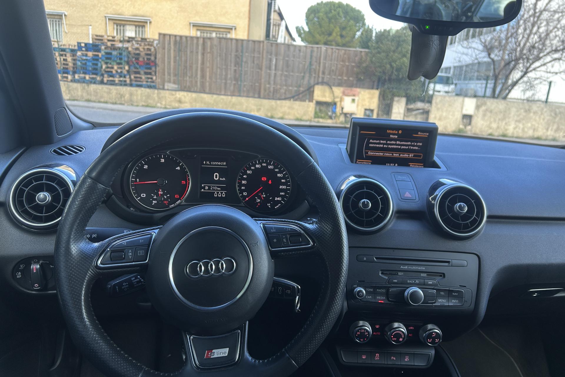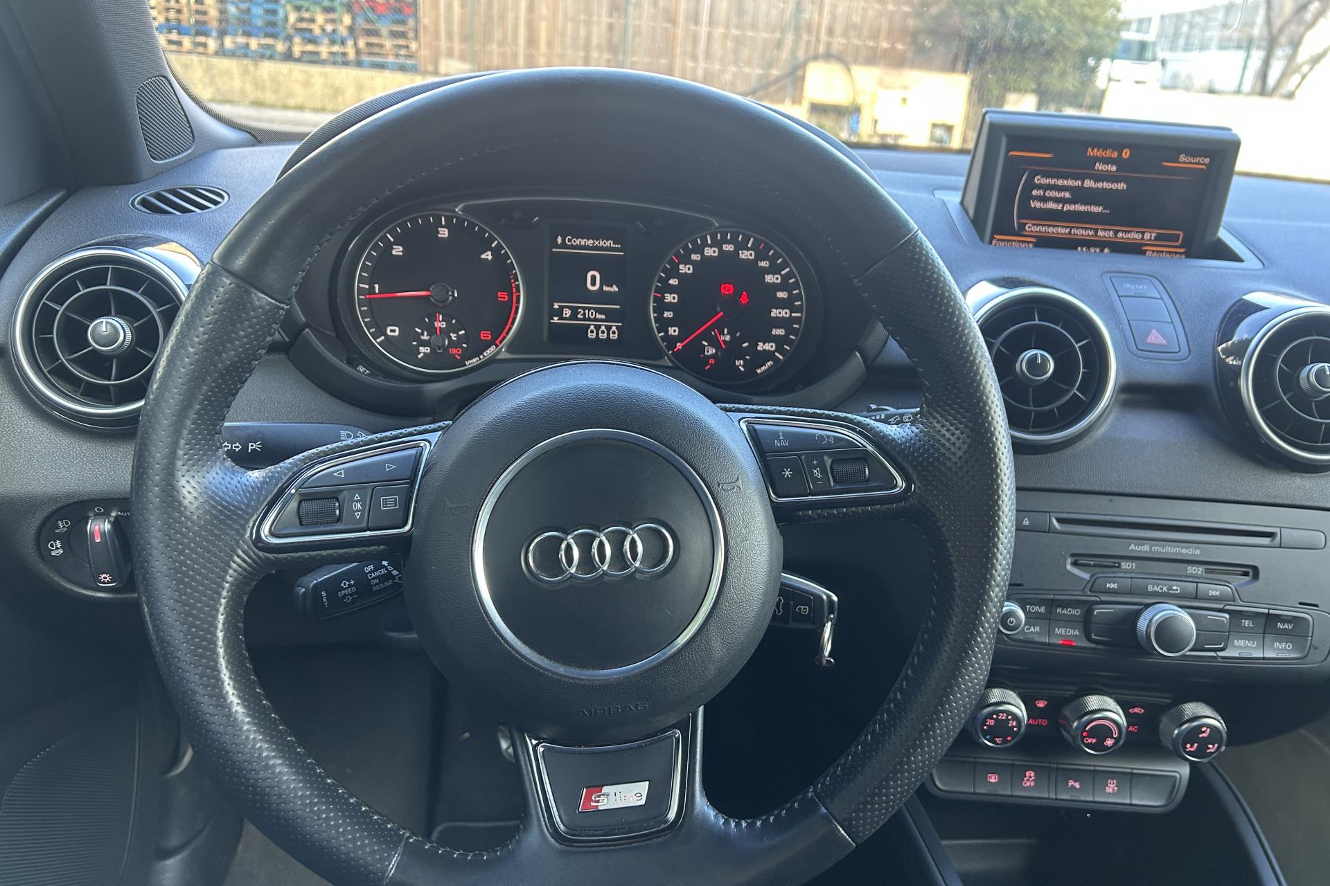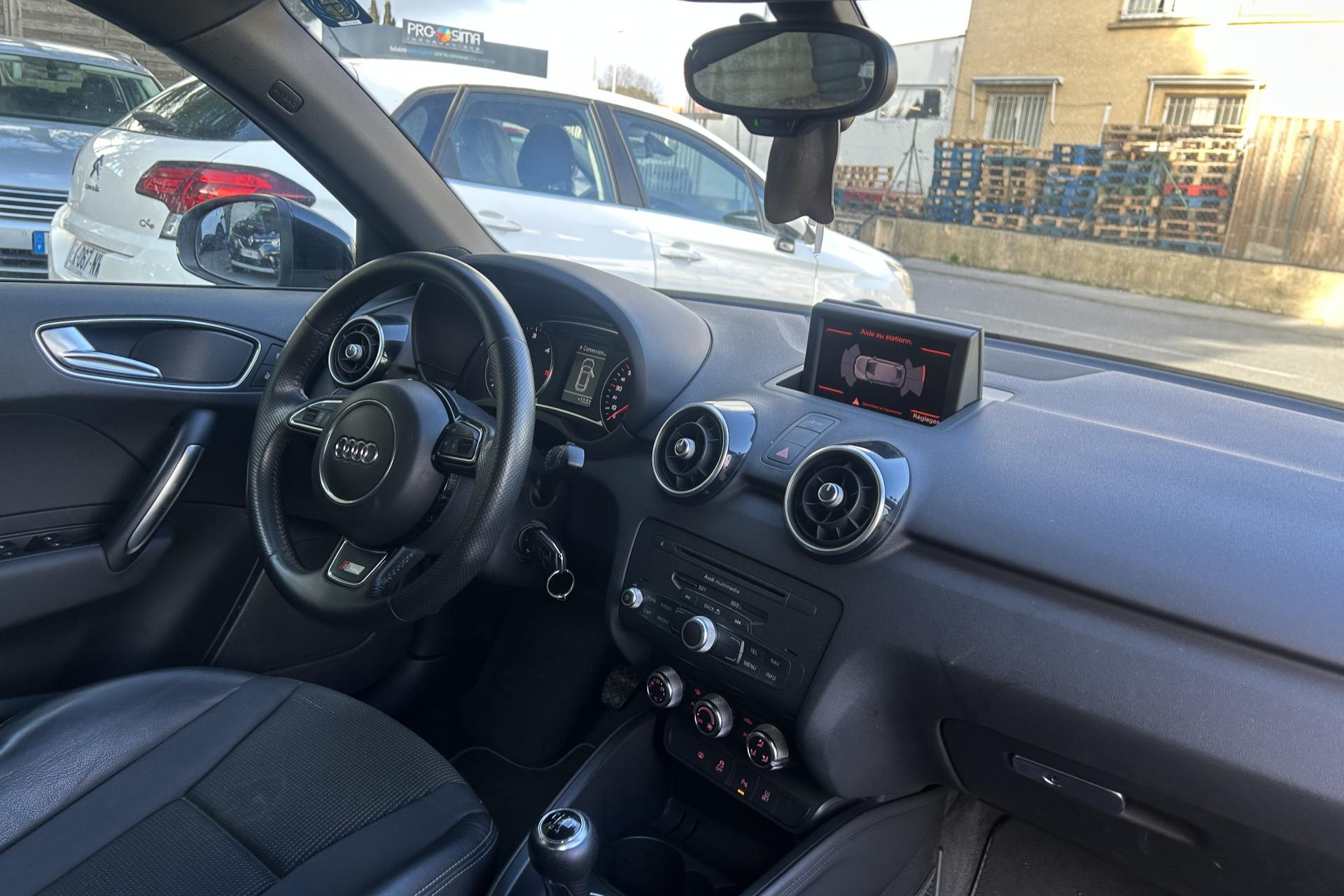 Airbags grand volume pour le conducteur et le passagerAirbags latéraux à l'avant intégrés dans les dossiers des sièges à l'avantAllume-cigare et cendrier sur la console centrale à l'avantAntipatinage électronique ASRAppuie-tête réglables à l'avant et à l'arrièreAutoradio Concert, incluant lecteur CD compatible MP3/WMA et AACBlocage électronique du différentiel EDL, aide au démarrageBoîte à gants côté passager avant, grand volume, avec éclairageCache-bagages amovibleCarrosserie galvanisée (entièrement galvanisée aux endroits exposés à la corrosion), autoportante, soudée au groupe-plancher, zones de déformation prédéfinies à l'avant et à l'arrièreCeintures de sécurité, trois points automatiques pour toutes les places, à l'avant avec réglage en hauteur et prétensionneurs pyrotechniques ; limiteurs de tension sur toutes les placesChâssis DynamiqueChâssis Sport avec suspension et amortissement fermes pour un contact plus direct avec la route et un comportement sportifCiel de pavillon en tissu noirClignotants avec fonction autoroute : une brève impulsion sur le comodo active 3 cycles de clignotementClimatisation automatique "Confort"Colonne de direction de sécuritéConsole centrale avec 2 porte-boissons et vide-poches complémentaireContact d'allumage électronique ; clé de contact pouvant mémoriser différentes données d'entretienContre-portes avec partie centrale en tissu et accoudoir intégréContrôle de ceinture attachée pour toutes les placesContrôle de pression des pneus ( TPMS )Cric dans le coffreDétecteur de pluie et de luminosité incluant bande grise dans la partie supérieure du pare-briseDirection assistée particulièrement sportive et directeDossier de banquette arrière rabattable en deux parties , 1/3, 2/3 ou complétementEclairage intérieur, à temporisation avec contacteurs sur toutes les portières ; éclairage du coffreEcran central avec éclairage réglableEcrous antivolEmbout(s) d'échappement chromé(s)Entourages de diffuseurs d'air noir brillantESP avec blocage transversal électroniqueEssuie-glace deux vitessesFeux arrière rouges, feux de recul blancs, avec feux de brouillard arrière et design d'éclairage innovantFeux de freinage adaptatifs, les feux de détresse clignotent en cas de freinage d'urgence afin de prévenir les voitures qui suivent. Activation des feux de détresse en cas d'arrêtFeux stop et feux arrière à LED et nouveau design tridimensionnelFiltre à particulesFixations ISOFIX à l'arrièreInscription “S line” sur les ailes avantInscription S line et becquet arrière surdimensionnéJantes Audi exclusive en aluminium coulé style 5 branches doubles, 7,5 J x 17 avec pneus 215/40 R17Lave-phares haute pressionLève-vitres électriques, avec protection anti pincement, ouverture/fermeture confort par le verrouillage centralisé, fonction ouverture/fermeture par impulsionLunette arrière dégivrante, avec minuterie; chauffage supplémentaire de l'extrémité inférieure de l'essuie-glace arrièreMoquette en velours de couleur assortie à celle de l'habitacleOEilletons de fixation, quatre dans le coffre, pour maintenir les bagages et objets, points de fixation pour le filet mixte en optionOrdinateur de bord avec écran blanc TFT monochrome de 3,5 poucesOutillage de bord dans le coffrePack aluminiumPack Eclairage intérieur à LEDPare-soleil rabattables et pivotants, côtés conducteur et passager avant, avec miroir de courtoisie occultablePhares halogènes à surfaces libres sous vitre transparente, réglage électrique du site des phares et commande de feux de stationnement, feux diurnesPoignées de maintien, avec mécanisme amortisseur, rabattables, encastrées dans le pavillonPommeau de levier de vitesses en cuir perforéPrise de courant 12 Volts sur la console centraleProjecteurs antibrouillardProjecteurs Xénon Plus avec feux de jour à LED, incluant feux stop et feux arrière à LED et nouveau design tridimensionnelProtection antidémarrage électronique, intégrée à la gestion du moteur, activation automatique par la clé du véhiculeProtection latérale anticollisionRécupération en augmentant la tension du générateur, l'énergie cinétique est convertie en énergie électrique utilisable durant les phases de décélération ou de freinageRégulateur de vitesse incluant ordinateur de bord avec programme efficiencyRétroviseur intérieur électrochromeRétroviseurs extérieurs couleur carrosserieRétroviseurs extérieurs dégivrants et escamotables ; buses de lave-glace chauffantesRétroviseurs extérieurs électriquesRétroviseurs extérieurs en plastique noir mat avec clignotants à diodes intégrés, réglables électriquement, miroir asphériqueSellerie mixte en cuir et tissu Sprint avec estampillage S lineSet de réparation pour pneus avec compresseur 12 volts et produit de colmatage pour les pneus, vitesse maximale 80 km/hSeuils de portes en aluminium avec inscription S lineSiège passager avant réglable en hauteur + fonction « Easy entry »Sièges Sport à l'avant avec bourrelets latéraux fortement marqués assurant un meilleur maintien dans les viragesSingleframe, calandre monobloc avec anneaux Audi anodisés au centreSortie d'échappement à gauche, visible simpleSuspension sportSystème d'appuie-tête intégralSystème de ventilation et chauffage réglable sur quatre niveauxSystème Start/Stop réduit la consommation de carburant ainsi que les émissions de CO2Tapis complémentaires avant et arrièreTélécommande à fréquence radio pour le vérouillage centraliséTémoins de contrôle pour entre autres : airbags, ABS, ESC/ASR, frein à main serré, électronique EDS, générateur, éclairage, phares, clignotants, circuit de freinage, pression d'huile moteur, fermeture du coffre, système électrTraction avant avec blocage électronique de différentiel EDS par intervention sur les freins des roues motrices, antipatinage électronique ASR, programme électronique de stabilisati