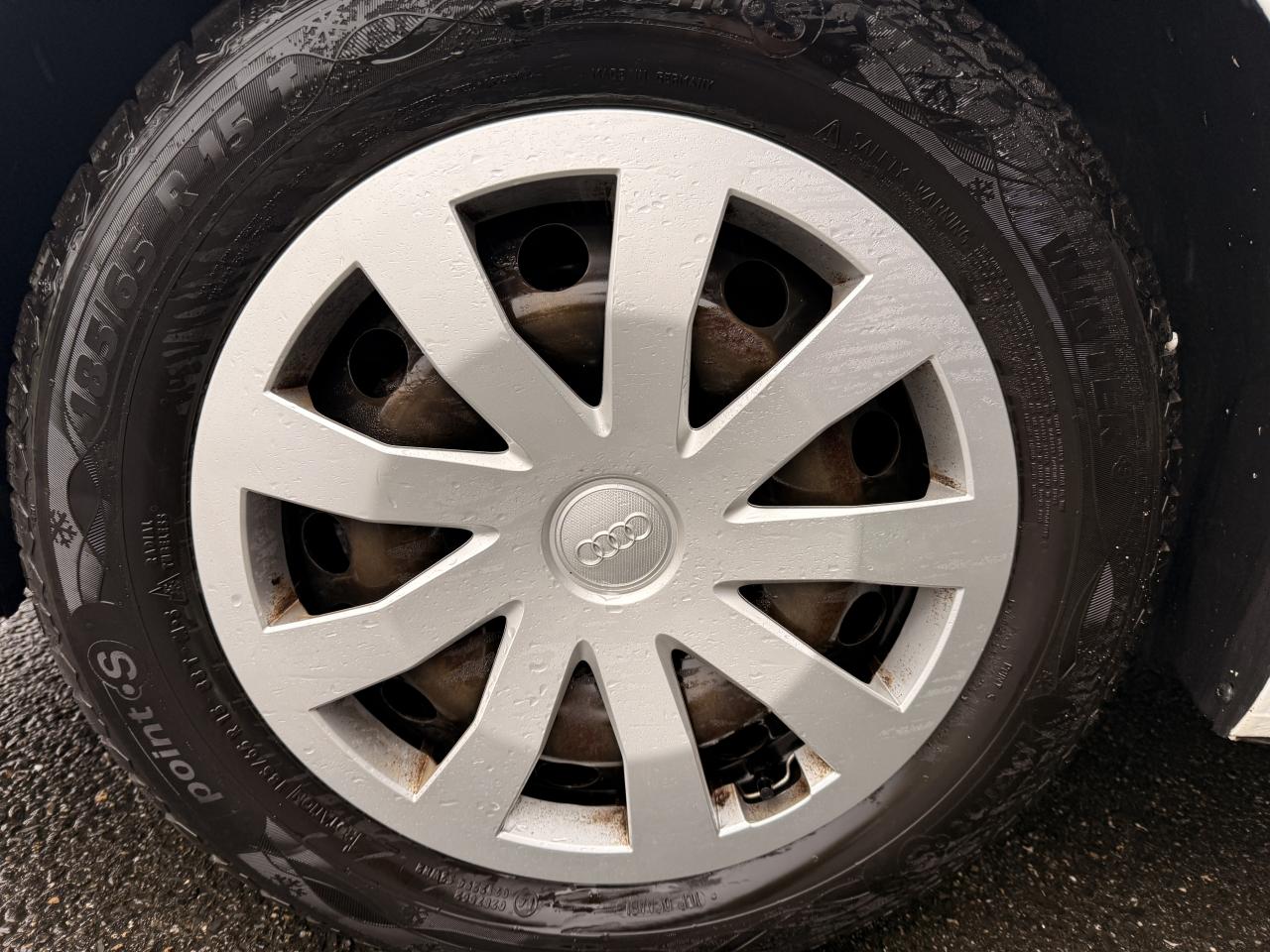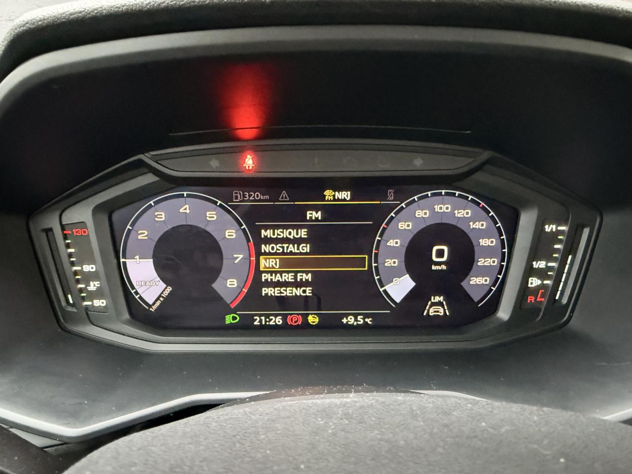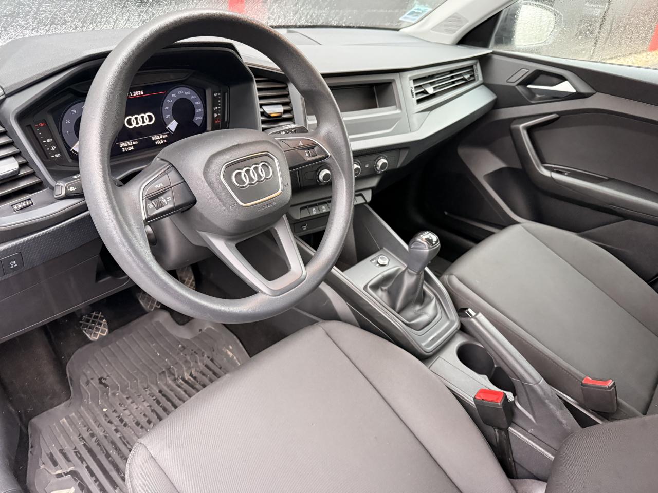 4 haut-parleurs à l’avant (passifs) 40 wattsAffichage du contrôle de la pression des pneumatiquesAirbags latéraux à l'avant et système d'airbags de têteAppel d’urgence Audi connectApplications décoratives étendues non laquées en noirApplications décoratives étendues sur le tableau de bord noir mat, du vide-poches sur le tableau de bord jusqu’aux triangles de portières avant en noir matApplications décoratives structure polygone en noirAudi pre sense frontAvertisseur de franchissement de ligneBanquette AR fractionnable 60/40 ou entièrement rabattableBoîtiers de rétroviseurs extérieurs couleur carrosserie sauf teinte Blanc CortinaBoîtiers de rétroviseurs extérieurs noirs mat avec teinte Blanc CortinaCalandre en noir mat grainéChâssis standardCiel de pavillon en tissu gris titaneClé à fréquence radioClignotants LED intégrés dans les rétroviseursClimatisation manuelleDétecteur de pluie et allumage automatique des projecteursDétection d'occupation des sièges et du port de la ceinture de sécuritéDiffuseur arrière en noir mat grainéDigital CockpitEclairage intérieurEssuie-glace arrière à balayage intermittentFeux antibrouillard arrièreFeux arrière rougesInterface BluetoothInterface USB de type A pour le chargement d’appareils externes uniquementJantes en acier avec enjoliveurs, 5,5 J x 15" avec pneus 185/65 R 15Lève-vitres électriques à l'avant et à l'arrièreLèvres de becquet latérales à l’avant en noir mat grainéLimiteur de vitesseMMI RadioPare-brise athermiquePeinture vernie Blanc CortinaPhares halogènes avec feux de croisement, feux de route, feux diurnes, feux de position et clignotants à ampoulesPoignée de frein à main en plastiquePrises d’air latérales à l’avant en noir mat grainéRétroviseur intérieur jour/nuit manuelRétroviseurs extérieurs réglables électriquementSellerie Tissu DeltaSet de réparations pour pneusSièges avant réglables en hauteurSièges standard à l’avant avec réglage manuel du positionnement en longueur et en hauteur, de l’inclinaison de dossier, de la hauteur des appuie-tête et des ceinturesTapis de sol avant et arrièreTrousse de secours avec triangle de présignalisationVitres athermiquesVolant multifonction 3 branchesVolant réglable manuellement en hauteur et en profondeur