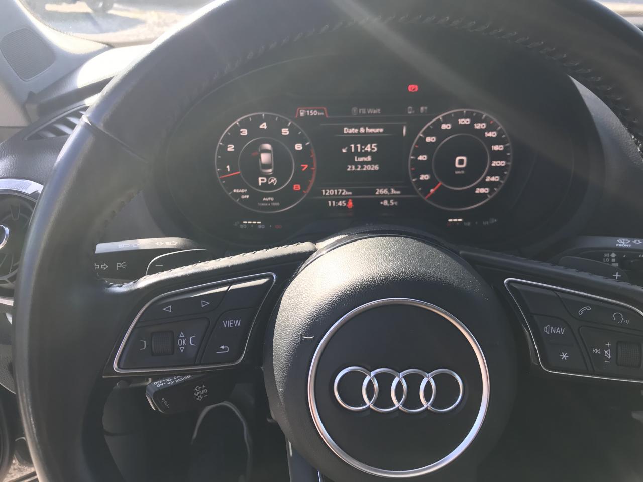 Accoudoir central avantAdvanced Key : système d'autorisation d'accès et de démarrage main libreAileron de toitAirbag de têteAirbags frontaux, latéraux et de genoux pour le conducteur et le passager avantApplications décoratives Aluminium MistralAppuie-tête intégraux à l'avant et à l'arrièreASR (antipatinage) pour une motricité et une rigidité transversale optimales. Réduit le patinage des roues motricesAudi connect 36 moisAudi drive select, permet différents réglages:Efficience, Confort, Dynamique, Auto et IndividuelAudi Parking System plus avec affichage sélectifAudi sound system : 10 haut-parleurs incluant un haut-parleur central et un subwoofer ; amplificateur à 6 canaux avec une puissance totale de 180 wattsAudi virtual cockpitBoîtiers de rétroviseurs extérieurs dans la teinte du véhiculeBuses de lave-glace chauffantesCaméra de reculChâssis normalCiel de pavillon en tissu gris rocheClimatisation automatique bi-zoneContrôle de la pression des pneumatiquesDésactivation de l'airbag du passager avantDétecteur de pluie et allumage automatique des projecteursDirection assistée ServotronicEcrous antivolESC : contrôle électronique de stabilisation. Relie ABS, EBV, ASR et EDSFixation pour sièges enfants ISOFIX et Top Tether pour les places arrière extérieuresFrein à disque sur les essieux avant et arrièreFrein de stationnement electromécaniqueIndicateur de niveau de lave-glaceInterface BluetoothJantes en aluminium coulé Audi Sport en style à 10 branches en style titane fintion brillante, dimensions 8J x 18Lecteur CD/MP3 avec un slot pour carte SDNavigation MMI plus avec MMI touchOutillage de bord et cricPack Aluminium extérieurPack aluminium intérieurPack EclairagePack rangement et coffrePack SmartphonePare-brise avec isolation acoustiquePeinture intégrale uniePhares à LED avec clignotants arrière à LED dynamiquesRégulateur de vitesseRétroviseur intérieur électrochromeRétroviseurs extérieurs avec clignotants à LED intégrésRétroviseurs extérieurs réglables, dégivrants et rabattables électriquement avec position automatique pour manoeuvre de stationnementRoue de secours compacteSécurité enfants électriqueSièges avant sportSystème ABS avec répartiteur électronique de freinage EBV, programme électronique de stabilisation ESC avec détection de barres de toit et assistance au freinage d’urgenceSystème Start/ Stop avec récupération d'énergie de freinageTapis de sol avant et arrièreTrousse de secours avec triangle de présignalisationVitres latérales et arrière athermiqueVolant réglable manuellement en hauteur et en profondeurVolant Sport multifonction 3 branches en cuir avec méplat et palettes de changement de vitesses