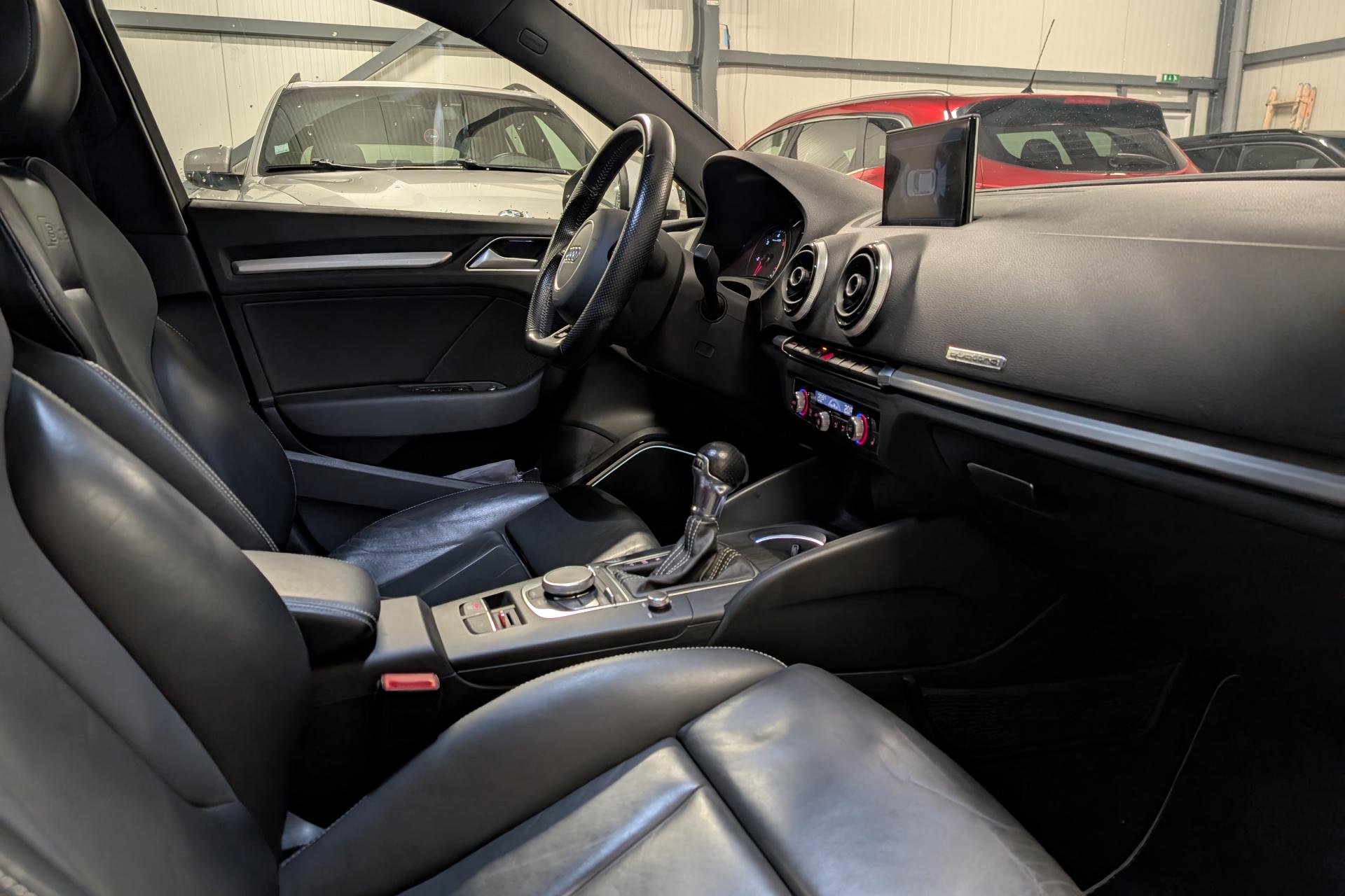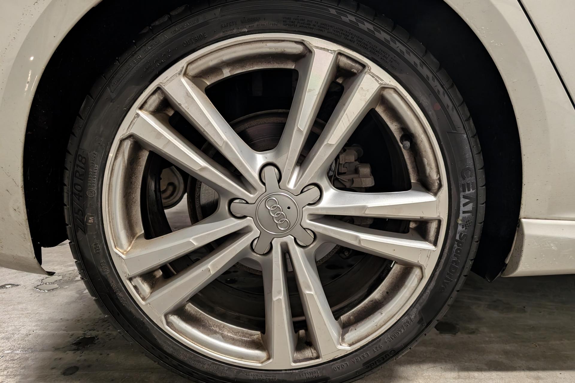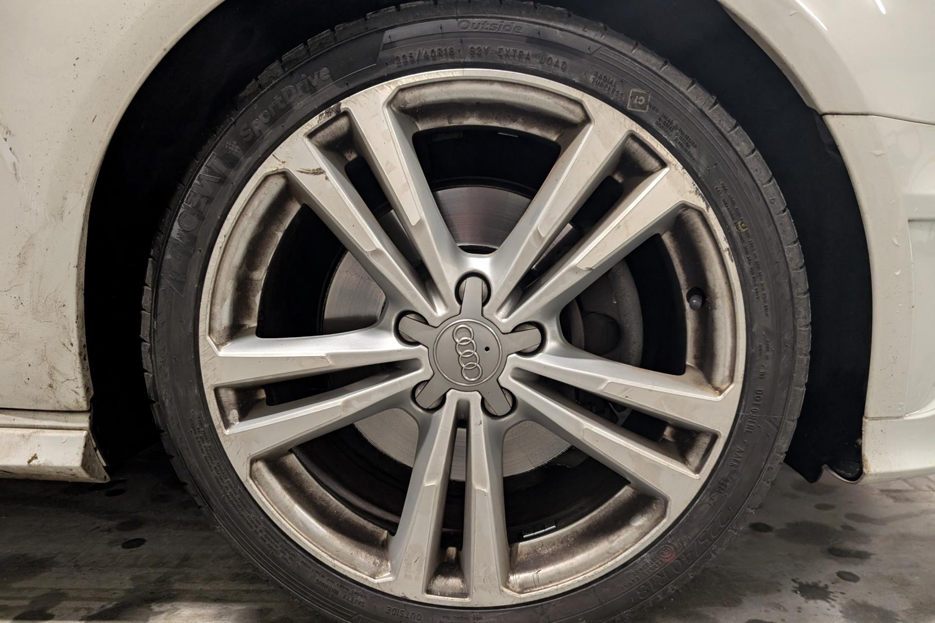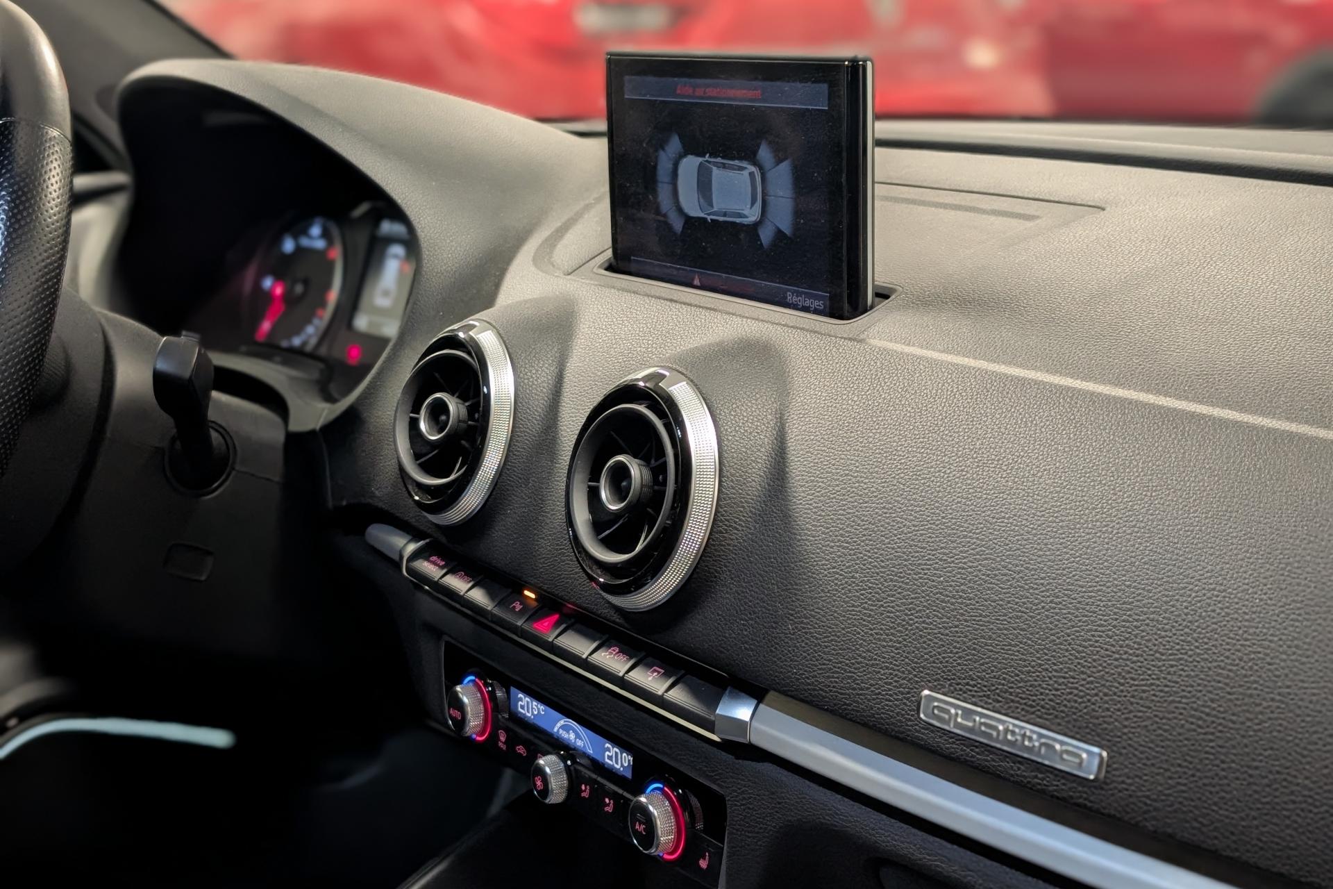 Accoudoir central avant coulissant en longueur, avec vide-poches relevable et inclinaison réglableAirbag genoux conducteurAirbags grand volume pour le conducteur et le passagerAirbags latéraux à l'avant intégrés au dossier des siègesAllume-cigare et cendrier amovible, couvercle chromé avec anneaux AudiAntipatinage (ASR)Applications décoratives sur les contre-portes et tableau de bord “Aluminium brossé mat”Audi drive select, permet différents réglages:Efficience, Confort, Dynamique, Auto et IndividuelAudi Singleframe avec encadrement chromé de la calandreBecquet de pavillon laqué dans la couleur de la carrosserie, avec inserts aérodynamiques latéraux noir brillantBlocage électronique de différentiel (EDS)Boîte à gants grand volume côté passager avant, éclairéeCache-bagages amovibleCarrosserie galvaniséeCeintures de sécurité 3 points automatiques pour toutes les places, prétensionneurs pyrotechniques, réglage des ceintures en hauteur à l'avant ; limiteurs de tension sur toutes les places extérieuresChâssis Sport, carrosserie surbaissée de 15 mm, avec suspension et amortisseurs plus fermesCiel de pavillon en tissu noirClimatisation automatique Confort avec réglage asservi à la position du soleilContrôle de ceinture attachée pour toutes les placesContrôle de pression des pneus ( TPMS )Contrôle électronique de stabilisation (ESC) désactivable, avec amplificateur hydraulique de freinage d'urgenceDétecteur de pluie et de luminosité incluant bande grise dans la partie supérieure du pare-briseDirection assistée électromécanique avec assistance asservie à la vitesse (servotronic)Dossier de banquette arrière rabattable en deux parties 40/60 ou complètementEclairage intérieur à l'avant et à l'arrièreEcrous antivolEssuie-glace arrière avec déclenchement automatique en marche arrièreFeux arrière avec feux de recul blancs et feux de brouillard arrière, incluant troisième feu stop surélevé et éclairage de plaque à LEDFeux de freinage adaptatifsFixation pour sièges enfants ISOFIX et Top Tether pour les places arrière extérieuresIdentification du modèle/technologie sur le capot de coffreInscription “S line” sur les ailes avantInscription quattro sur la calandre, le capot de coffre et le tableau de bord côté passagerJantes en aluminium coulé style 5 branches parallèles partiellement polies, 7,5 J x 18" avec pneus 225/40 R 18"Lave-essuie-glace 2 vitesses, 4 intervalles de balayage réglablesLève-vitres à l'avant et à l'arrière, électriques, avec protection antipincement, ouverture/fermeture par le verrouillage centralisé, fonction ouverture/fermeture par impulsionLunette arrière dégivrante, avec minuterieMiroir de courtoisie éclairéMMI RadioMoulures de seuils avec insert en aluminium et inscription “S line”Œilletons de fixation, 4 dans le coffre, pour maintenir les bagages et objets dans le coffre, points de fixation pour le filet mixte en optionOutillage de bord dans le coffre incluant un cricPack aluminium extérieurPack rangement et coffrePack rangement et coffrePare-brise acoustique, améliore l'isolation phonique du pare-brise et réduit les bruits extérieursPare-chocs dans la couleur de la carrosseriePare-soleil rabattables et pivotants, côtés conducteur et passager avant, avec miroir de courtoisie occultablePatères à vêtements sur les montants de pavillon centraux, à gauche et à droite, simplesPhares antibrouillard halogènes, intégrés à la jupe avantPoignées de maintien. 4 poignées avec mécanisme amortisseur, rabattables, encastrées dans le pavillonPommeau du levier/sélecteur de vitesses en cuir perforé noirPréparation pour téléphone portable (Bluetooth)Prise de courant 12 volts sur la console centrale à l'avantProtection antidémarrage électronique, intégrée à la gestion du moteur, activation automatique par la clé du véhiculeProtection latérale anticollision avec barres extrêmement rigides dans les portières et une structure latérale de carrosserie renforcéeRecommandation de repos qui analyse le comportement routier au moyen de différents capteursRégulateur de vitesseRétroviseur intérieur électrochromeRétroviseurs extérieurs avec clignotants à LED intégrés réglables électriquement et dégivrants, miroir asphérique à gauche, convexe à droite. Buses de lave-glace dégivrantesRoue de secours temporaire de type galetteSellerie mixte en tissu Biathlon et cuirSièges à l'avant avec positionnement en longueur et inclinaison de dossier réglables manuellementSièges conducteur et passager avant réglables en hauteurSièges Sport à l'avant avec bourrelets latérauxSignal sonore pour oubli d'extinction des feuxSorties d'échappement doubles à gauche chroméesSupport pour téléphone portable et clé avec compatiment séparé pour le rangement du téléphone portable et la clé du véhicule. Rangement intégré avec encadrement chromé sur la console centraleSystème d'airbags de têteSystème d'information du conducteur avec écran couleur haute résolution de 3,5 poucesSystème de freinage avec antiblocage (ABS) et répartiteur électronique de freinage (EBV)Système de ventilation et chauffage 4 diffuseurs d'air rondsTapis complémentaires à l'avant et à l'arrière assortis à la couleur de la moquetteTémoins de contrôle pour, entre autres : airbag, ABS, ESC/ASR, frein de stationnement serré, électronique EDS, phares, clignotants, circuit de freinage, pression d'huile moteur, fermeture du coffre, système électrique du moteur, système de pr&eacuTriangle de présignalisation fixé sur l'intérieur du capot du coffreTrousse de secours dans le vide-poches sous le siège passagerVerrouillage centralisé à télécommandeVide-poches sur les habillages des portières ainsi que sur la console centrale avec porte-boissonVolant réglable en hauteur et en profondeurVolant Sport 3 branches multifonction en cuir badgé S line avec méplat et poignées de volant en cui