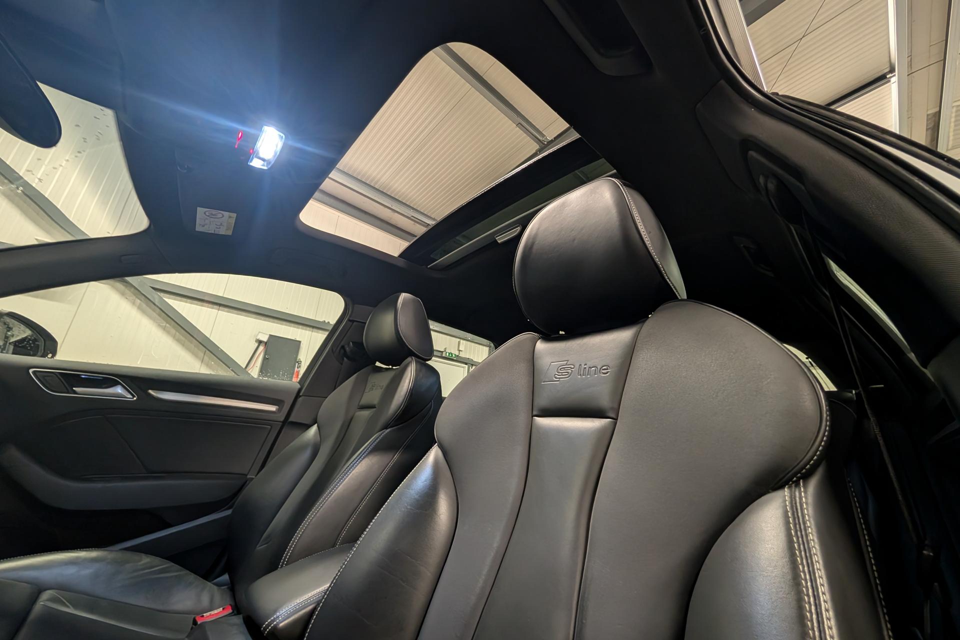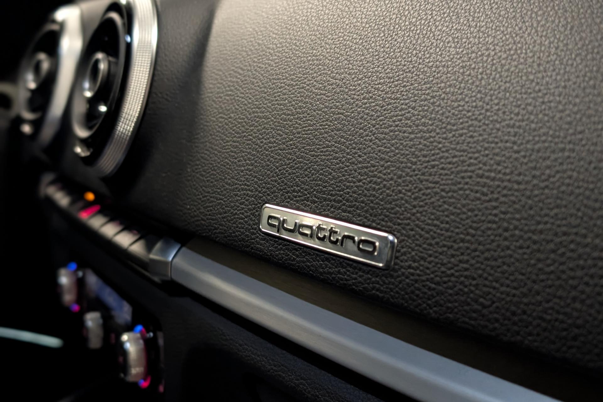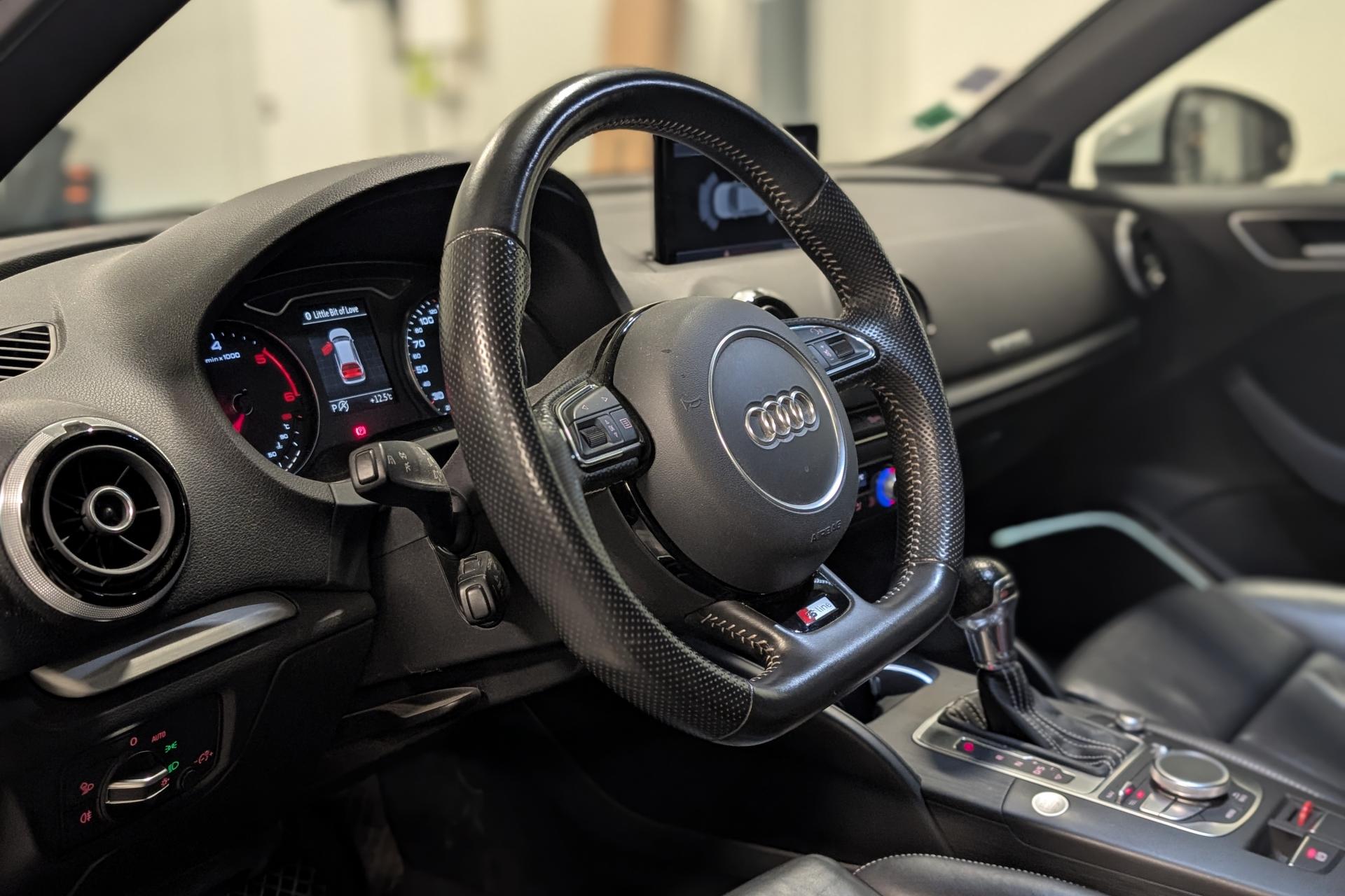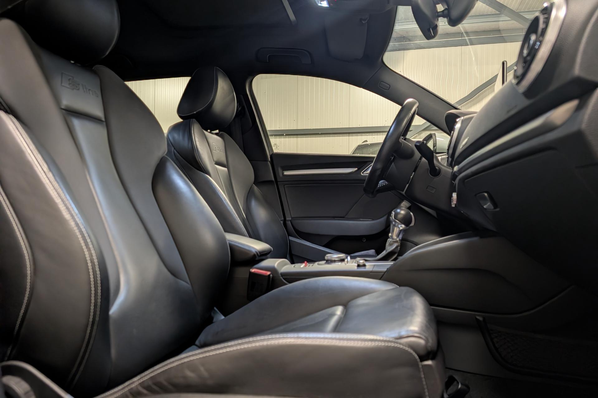 Accoudoir central avant coulissant en longueur, avec vide-poches relevable et inclinaison réglableAirbag genoux conducteurAirbags grand volume pour le conducteur et le passagerAirbags latéraux à l'avant intégrés au dossier des siègesAllume-cigare et cendrier amovible, couvercle chromé avec anneaux AudiAntipatinage (ASR)Applications décoratives sur les contre-portes et tableau de bord “Aluminium brossé mat”Audi drive select, permet différents réglages:Efficience, Confort, Dynamique, Auto et IndividuelAudi Singleframe avec encadrement chromé de la calandreBecquet de pavillon laqué dans la couleur de la carrosserie, avec inserts aérodynamiques latéraux noir brillantBlocage électronique de différentiel (EDS)Boîte à gants grand volume côté passager avant, éclairéeCache-bagages amovibleCarrosserie galvaniséeCeintures de sécurité 3 points automatiques pour toutes les places, prétensionneurs pyrotechniques, réglage des ceintures en hauteur à l'avant ; limiteurs de tension sur toutes les places extérieuresChâssis Sport, carrosserie surbaissée de 15 mm, avec suspension et amortisseurs plus fermesCiel de pavillon en tissu noirClimatisation automatique Confort avec réglage asservi à la position du soleilContrôle de ceinture attachée pour toutes les placesContrôle de pression des pneus ( TPMS )Contrôle électronique de stabilisation (ESC) désactivable, avec amplificateur hydraulique de freinage d'urgenceDétecteur de pluie et de luminosité incluant bande grise dans la partie supérieure du pare-briseDirection assistée électromécanique avec assistance asservie à la vitesse (servotronic)Dossier de banquette arrière rabattable en deux parties 40/60 ou complètementEclairage intérieur à l'avant et à l'arrièreEcrous antivolEssuie-glace arrière avec déclenchement automatique en marche arrièreFeux arrière avec feux de recul blancs et feux de brouillard arrière, incluant troisième feu stop surélevé et éclairage de plaque à LEDFeux de freinage adaptatifsFixation pour sièges enfants ISOFIX et Top Tether pour les places arrière extérieuresIdentification du modèle/technologie sur le capot de coffreInscription “S line” sur les ailes avantInscription quattro sur la calandre, le capot de coffre et le tableau de bord côté passagerJantes en aluminium coulé style 5 branches parallèles partiellement polies, 7,5 J x 18" avec pneus 225/40 R 18"Lave-essuie-glace 2 vitesses, 4 intervalles de balayage réglablesLève-vitres à l'avant et à l'arrière, électriques, avec protection antipincement, ouverture/fermeture par le verrouillage centralisé, fonction ouverture/fermeture par impulsionLunette arrière dégivrante, avec minuterieMiroir de courtoisie éclairéMMI RadioMoulures de seuils avec insert en aluminium et inscription “S line”Œilletons de fixation, 4 dans le coffre, pour maintenir les bagages et objets dans le coffre, points de fixation pour le filet mixte en optionOutillage de bord dans le coffre incluant un cricPack aluminium extérieurPack rangement et coffrePack rangement et coffrePare-brise acoustique, améliore l'isolation phonique du pare-brise et réduit les bruits extérieursPare-chocs dans la couleur de la carrosseriePare-soleil rabattables et pivotants, côtés conducteur et passager avant, avec miroir de courtoisie occultablePatères à vêtements sur les montants de pavillon centraux, à gauche et à droite, simplesPhares antibrouillard halogènes, intégrés à la jupe avantPoignées de maintien. 4 poignées avec mécanisme amortisseur, rabattables, encastrées dans le pavillonPommeau du levier/sélecteur de vitesses en cuir perforé noirPréparation pour téléphone portable (Bluetooth)Prise de courant 12 volts sur la console centrale à l'avantProtection antidémarrage électronique, intégrée à la gestion du moteur, activation automatique par la clé du véhiculeProtection latérale anticollision avec barres extrêmement rigides dans les portières et une structure latérale de carrosserie renforcéeRecommandation de repos qui analyse le comportement routier au moyen de différents capteursRégulateur de vitesseRétroviseur intérieur électrochromeRétroviseurs extérieurs avec clignotants à LED intégrés réglables électriquement et dégivrants, miroir asphérique à gauche, convexe à droite. Buses de lave-glace dégivrantesRoue de secours temporaire de type galetteSellerie mixte en tissu Biathlon et cuirSièges à l'avant avec positionnement en longueur et inclinaison de dossier réglables manuellementSièges conducteur et passager avant réglables en hauteurSièges Sport à l'avant avec bourrelets latérauxSignal sonore pour oubli d'extinction des feuxSorties d'échappement doubles à gauche chroméesSupport pour téléphone portable et clé avec compatiment séparé pour le rangement du téléphone portable et la clé du véhicule. Rangement intégré avec encadrement chromé sur la console centraleSystème d'airbags de têteSystème d'information du conducteur avec écran couleur haute résolution de 3,5 poucesSystème de freinage avec antiblocage (ABS) et répartiteur électronique de freinage (EBV)Système de ventilation et chauffage 4 diffuseurs d'air rondsTapis complémentaires à l'avant et à l'arrière assortis à la couleur de la moquetteTémoins de contrôle pour, entre autres : airbag, ABS, ESC/ASR, frein de stationnement serré, électronique EDS, phares, clignotants, circuit de freinage, pression d'huile moteur, fermeture du coffre, système électrique du moteur, système de pr&eacuTriangle de présignalisation fixé sur l'intérieur du capot du coffreTrousse de secours dans le vide-poches sous le siège passagerVerrouillage centralisé à télécommandeVide-poches sur les habillages des portières ainsi que sur la console centrale avec porte-boissonVolant réglable en hauteur et en profondeurVolant Sport 3 branches multifonction en cuir badgé S line avec méplat et poignées de volant en cui