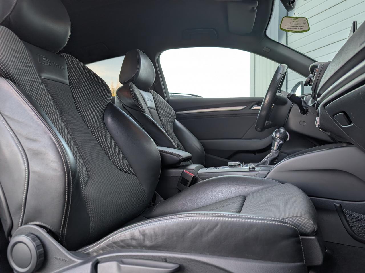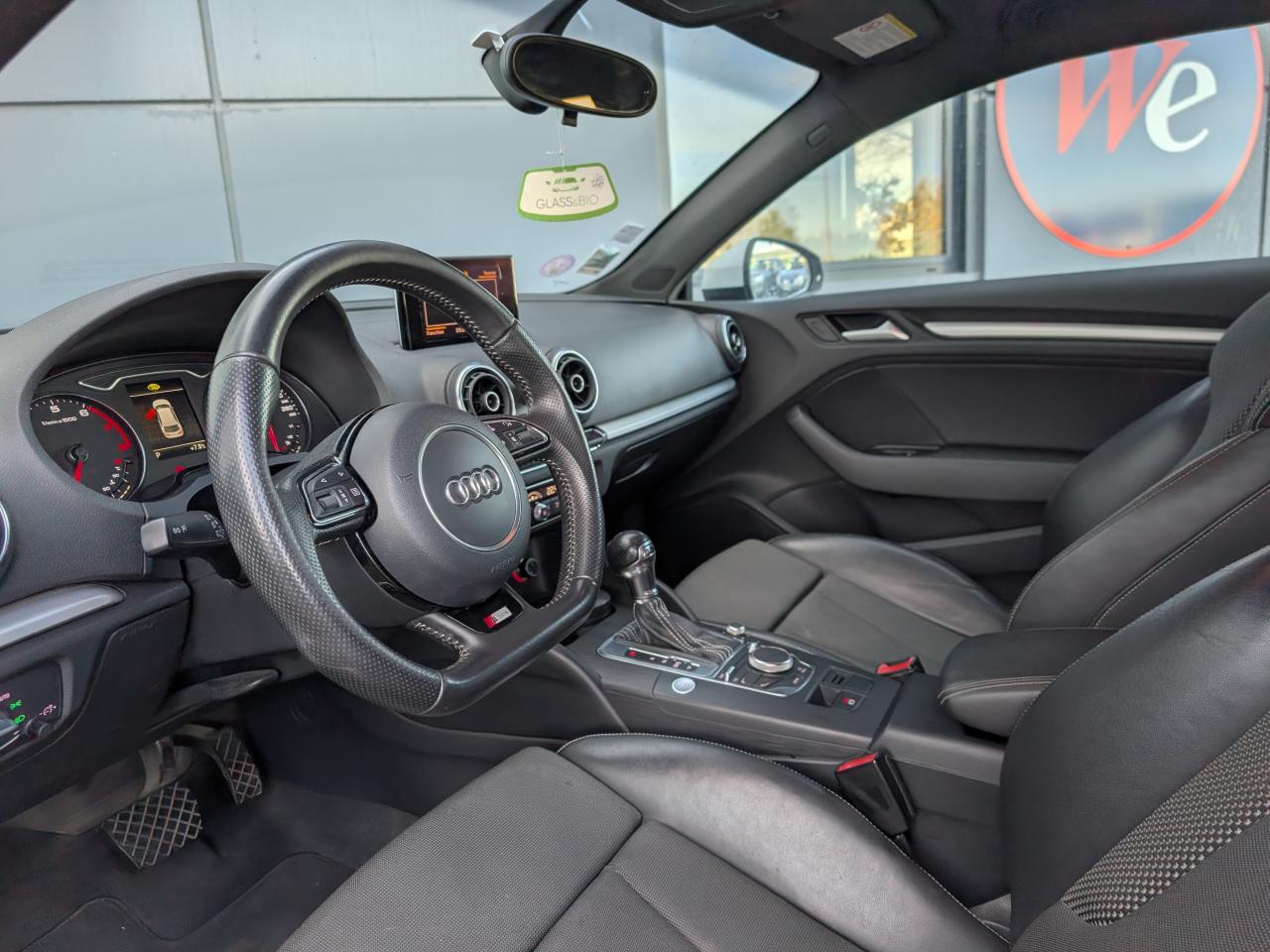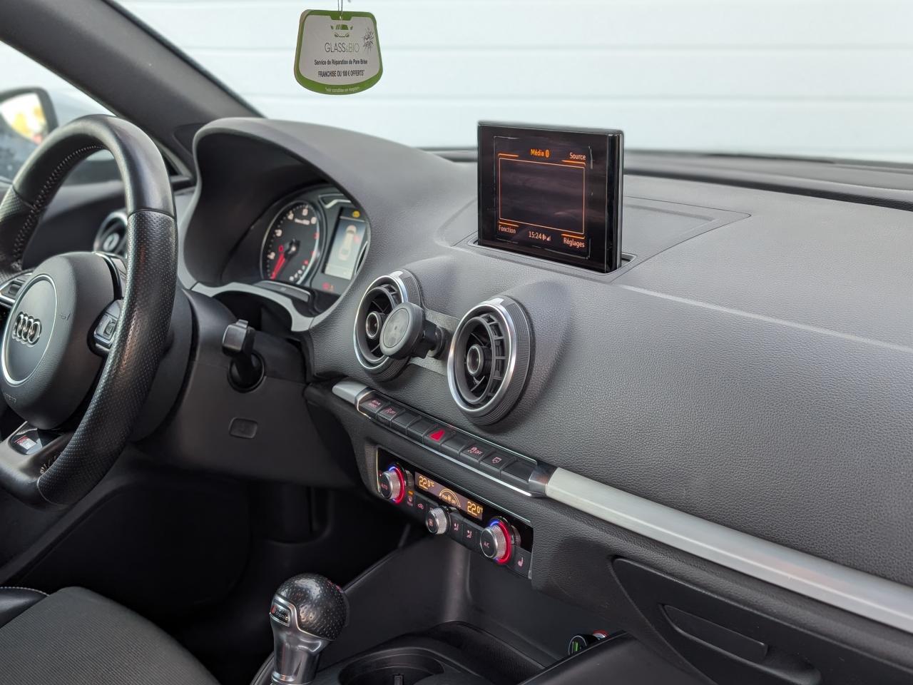Accès confort : fonction étendue de basculement des sièges avant permettant un accès facile aux places arrièreAccoudoir central avant coulissant en longueur, avec vide-poches relevable et inclinaison réglableAirbag genoux conducteurAirbags grand volume pour le conducteur et le passagerAirbags latéraux à l'avant intégrés au dossier des siègesAllume-cigare et cendrier amovible, couvercle chromé avec anneaux AudiAntipatinage (ASR)Applications décoratives sur les contre-portes et tableau de bord "Aluminium brossé mat"Audi Drive SelectAudi Singleframe avec encadrement chromé de la calandreBecquet de pavillon laqué dans la couleur de la carrosserie, avec inserts aérodynamiques latéraux noir brillantBlocage électronique de différentiel (EDS)Boîte à gants grand volume côté passager avant, éclairéeCache-bagages amovibleCarrosserie galvaniséeCeintures de sécurité 3 points automatiques pour toutes les placesChâssis dynamique. À l'avant : suspension Mc-Pherson avec bras triangulés transversaux inférieurs, châssis auxiliaire en aluminium et barre stabilisatrice. À l'arrière : essieu arrière à quatre bras avec système d'amoChâssis Sport : carrosserie surbaissée de 15 mm, avec suspension et amortisseurs plus fermesCiel de pavillon en tissu noirClimatisation automatique Confort avec réglage asservi à la position du soleilContrôle de ceinture attachée pour toutes les placesContrôle de pression des pneus ( TPMS )Contrôle électronique de stabilisation (ESC) avec blocage transversal électroniqueContrôle électronique de stabilisation (ESC) désactivable, avec amplificateur hydraulique de freinage d'urgenceDétecteur de pluie et allumage automatique des projecteursDirection assistée électromécanique avec assistance asservie à la vitesse (servotronic)Dossier de banquette arrière rabattable en deux parties 40/60 ou complètementEclairage intérieur à l'avant et à l'arrièreEcrous antivolFeux arrière avec feux de recul blancs et feux de brouillard arrière, incluant troisième feu stop surélevé et éclairage de plaque à LEDFeux de freinage adaptatifsFixation pour sièges enfants ISOFIX et Top Tether pour les places arrièreIdentification du modèle/technologie sur le capot de coffreInscription “S line” sur les ailes avantJantes en aluminium coulé style 5 branches parallèles partiellement polies, 7,5 J x 18" avec pneus 225/40 R 18"Lave-essuie-glace 2 vitesses, 4 intervalles de balayage réglablesLave-pharesLève-vitres à l'avant, électriques, avec protection antipincement, ouverture/fermeture par le verrouillage centralisé, fonction ouverture/fermeture par impulsionLunette arrière dégivrante, avec minuterieMiroir de courtoisie côté conducteur et passagerMiroir de courtoisie éclairéMMI RadioMoulures de seuils avec insert en aluminium et inscription “S line”Œilletons de fixation, 4 dans le coffre, pour maintenir les bagages et objets dans le coffre, points de fixation pour le filet mixte en optionOutillage de bord dans le coffre incluant un cricPack aluminium extérieurPack rangement et coffrePare-brise acoustique, améliore l'isolation phonique du pare-brise et réduit les bruits extérieursPare-chocs dans la couleur de la carrosseriePare-soleil rabattables et pivotants, côtés conducteur et passager avant, avec miroir de courtoisie occultablePatères à vêtements sur les montants de pavillon centraux, à gauche et à droite, simplesPhares antibrouillard halogènes, intégrés à la jupe avantPhares halogènes à surfaces libres sous vitre transparente, réglage électrique du site des phares et commande de feux de stationnement, feux diurnesPoignées de maintien. 4 poignées avec mécanisme amortisseur, rabattables, encastrées dans le pavillonPommeau du levier/sélecteur de vitesses en cuir perforé noirPréparation pour téléphone portable (Bluetooth)Prise de courant 12 volts sur la console centrale à l'avantProtection antidémarrage électronique, intégrée à la gestion du moteur, activation automatique par la clé du véhiculeProtection latérale anticollision avec barres extrêmement rigides dans les portières et une structure latérale de carrosserie renforcéeRecommandation de repos qui analyse le comportement routier au moyen de différents capteursRétroviseur intérieur électrochromeRétroviseurs extérieurs avec clignotants à LED intégrésRétroviseurs extérieurs électriques et dégivrants incluant buses de lave-glaces dégivrantesRoue de secours temporaire de type galetteSellerie mixte en tissu Biathlon et cuirSièges à l'avant avec positionnement en longueur et inclinaison de dossier réglables manuellementSièges conducteur et passager avant réglables en hauteurSièges Sport à l'avant avec bourrelets latérauxSignal sonore pour oubli d'extinction des feuxSortie d'échappement simple chroméeSorties d'échappement doubles à gauche chroméesSystème d'airbags de têteSystème d'information du conducteur avec écran couleur haute résolution de 3,5 poucesSystème de freinage avec antiblocage (ABS) et répartiteur électronique de freinage (EBV)Système de ventilation et chauffage 4 diffuseurs d'air rondsTapis complémentaires à l'avant et à l'arrière assortis à la couleur de la moquetteTriangle de présignalisation fixé sur l'intérieur du capot du coffreTrousse de secours dans le vide-poches sous le siège passagerVerrouillage centralisé à télécommandeVide-poches sur les habillages des portières ainsi que sur la console centrale avec porte-boissonVolant réglable en hauteur et en profondeurVolant Sport 3 branches multifonction en cuir badgé S line avec méplat et poignées de volant en cuir perforé avec palettes de changement de vitesseXénon Plus