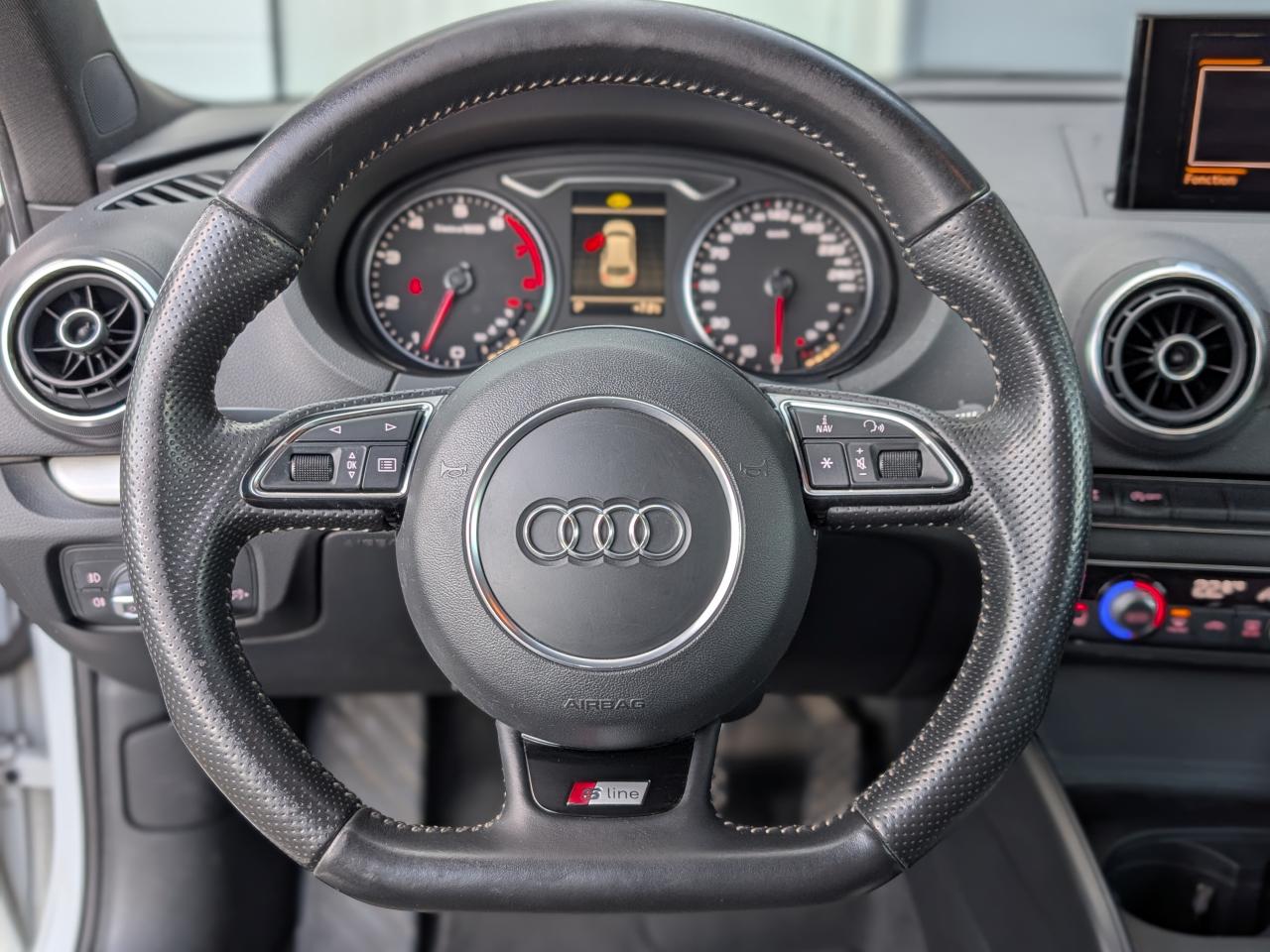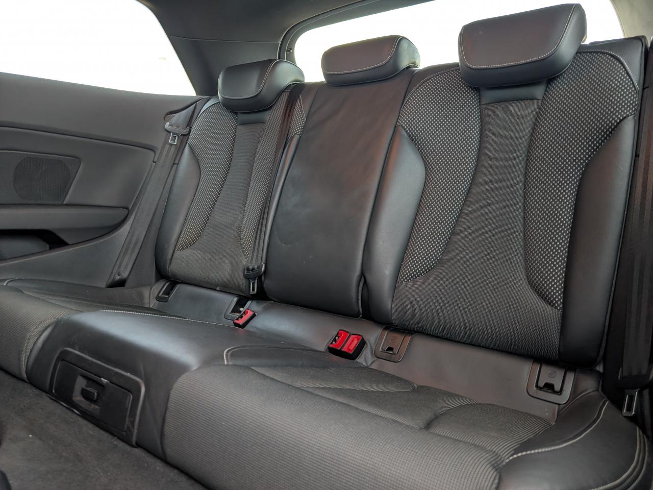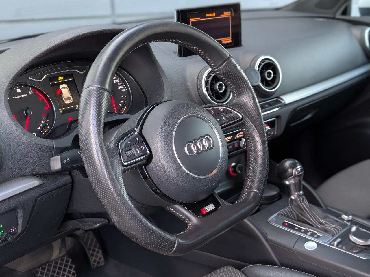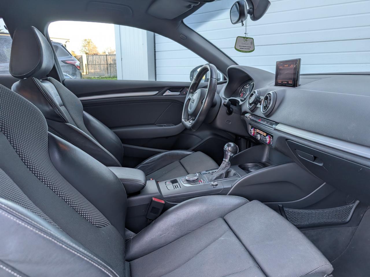 Accès confort : fonction étendue de basculement des sièges avant permettant un accès facile aux places arrièreAccoudoir central avant coulissant en longueur, avec vide-poches relevable et inclinaison réglableAirbag genoux conducteurAirbags grand volume pour le conducteur et le passagerAirbags latéraux à l'avant intégrés au dossier des siègesAllume-cigare et cendrier amovible, couvercle chromé avec anneaux AudiAntipatinage (ASR)Applications décoratives sur les contre-portes et tableau de bord "Aluminium brossé mat"Audi Drive SelectAudi Singleframe avec encadrement chromé de la calandreBecquet de pavillon laqué dans la couleur de la carrosserie, avec inserts aérodynamiques latéraux noir brillantBlocage électronique de différentiel (EDS)Boîte à gants grand volume côté passager avant, éclairéeCache-bagages amovibleCarrosserie galvaniséeCeintures de sécurité 3 points automatiques pour toutes les placesChâssis dynamique. À l'avant : suspension Mc-Pherson avec bras triangulés transversaux inférieurs, châssis auxiliaire en aluminium et barre stabilisatrice. À l'arrière : essieu arrière à quatre bras avec système d'amoChâssis Sport : carrosserie surbaissée de 15 mm, avec suspension et amortisseurs plus fermesCiel de pavillon en tissu noirClimatisation automatique Confort avec réglage asservi à la position du soleilContrôle de ceinture attachée pour toutes les placesContrôle de pression des pneus ( TPMS )Contrôle électronique de stabilisation (ESC) avec blocage transversal électroniqueContrôle électronique de stabilisation (ESC) désactivable, avec amplificateur hydraulique de freinage d'urgenceDétecteur de pluie et allumage automatique des projecteursDirection assistée électromécanique avec assistance asservie à la vitesse (servotronic)Dossier de banquette arrière rabattable en deux parties 40/60 ou complètementEclairage intérieur à l'avant et à l'arrièreEcrous antivolFeux arrière avec feux de recul blancs et feux de brouillard arrière, incluant troisième feu stop surélevé et éclairage de plaque à LEDFeux de freinage adaptatifsFixation pour sièges enfants ISOFIX et Top Tether pour les places arrièreIdentification du modèle/technologie sur le capot de coffreInscription “S line” sur les ailes avantJantes en aluminium coulé style 5 branches parallèles partiellement polies, 7,5 J x 18" avec pneus 225/40 R 18"Lave-essuie-glace 2 vitesses, 4 intervalles de balayage réglablesLave-pharesLève-vitres à l'avant, électriques, avec protection antipincement, ouverture/fermeture par le verrouillage centralisé, fonction ouverture/fermeture par impulsionLunette arrière dégivrante, avec minuterieMiroir de courtoisie côté conducteur et passagerMiroir de courtoisie éclairéMMI RadioMoulures de seuils avec insert en aluminium et inscription “S line”Œilletons de fixation, 4 dans le coffre, pour maintenir les bagages et objets dans le coffre, points de fixation pour le filet mixte en optionOutillage de bord dans le coffre incluant un cricPack aluminium extérieurPack rangement et coffrePare-brise acoustique, améliore l'isolation phonique du pare-brise et réduit les bruits extérieursPare-chocs dans la couleur de la carrosseriePare-soleil rabattables et pivotants, côtés conducteur et passager avant, avec miroir de courtoisie occultablePatères à vêtements sur les montants de pavillon centraux, à gauche et à droite, simplesPhares antibrouillard halogènes, intégrés à la jupe avantPhares halogènes à surfaces libres sous vitre transparente, réglage électrique du site des phares et commande de feux de stationnement, feux diurnesPoignées de maintien. 4 poignées avec mécanisme amortisseur, rabattables, encastrées dans le pavillonPommeau du levier/sélecteur de vitesses en cuir perforé noirPréparation pour téléphone portable (Bluetooth)Prise de courant 12 volts sur la console centrale à l'avantProtection antidémarrage électronique, intégrée à la gestion du moteur, activation automatique par la clé du véhiculeProtection latérale anticollision avec barres extrêmement rigides dans les portières et une structure latérale de carrosserie renforcéeRecommandation de repos qui analyse le comportement routier au moyen de différents capteursRétroviseur intérieur électrochromeRétroviseurs extérieurs avec clignotants à LED intégrésRétroviseurs extérieurs électriques et dégivrants incluant buses de lave-glaces dégivrantesRoue de secours temporaire de type galetteSellerie mixte en tissu Biathlon et cuirSièges à l'avant avec positionnement en longueur et inclinaison de dossier réglables manuellementSièges conducteur et passager avant réglables en hauteurSièges Sport à l'avant avec bourrelets latérauxSignal sonore pour oubli d'extinction des feuxSortie d'échappement simple chroméeSorties d'échappement doubles à gauche chroméesSystème d'airbags de têteSystème d'information du conducteur avec écran couleur haute résolution de 3,5 poucesSystème de freinage avec antiblocage (ABS) et répartiteur électronique de freinage (EBV)Système de ventilation et chauffage 4 diffuseurs d'air rondsTapis complémentaires à l'avant et à l'arrière assortis à la couleur de la moquetteTriangle de présignalisation fixé sur l'intérieur du capot du coffreTrousse de secours dans le vide-poches sous le siège passagerVerrouillage centralisé à télécommandeVide-poches sur les habillages des portières ainsi que sur la console centrale avec porte-boissonVolant réglable en hauteur et en profondeurVolant Sport 3 branches multifonction en cuir badgé S line avec méplat et poignées de volant en cuir perforé avec palettes de changement de vitesseXénon Plus