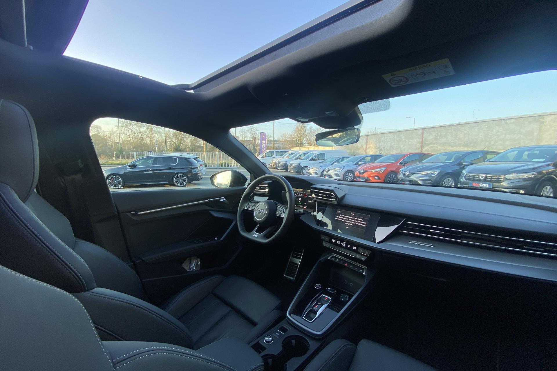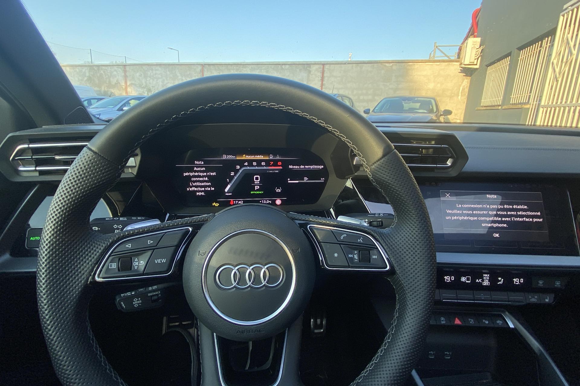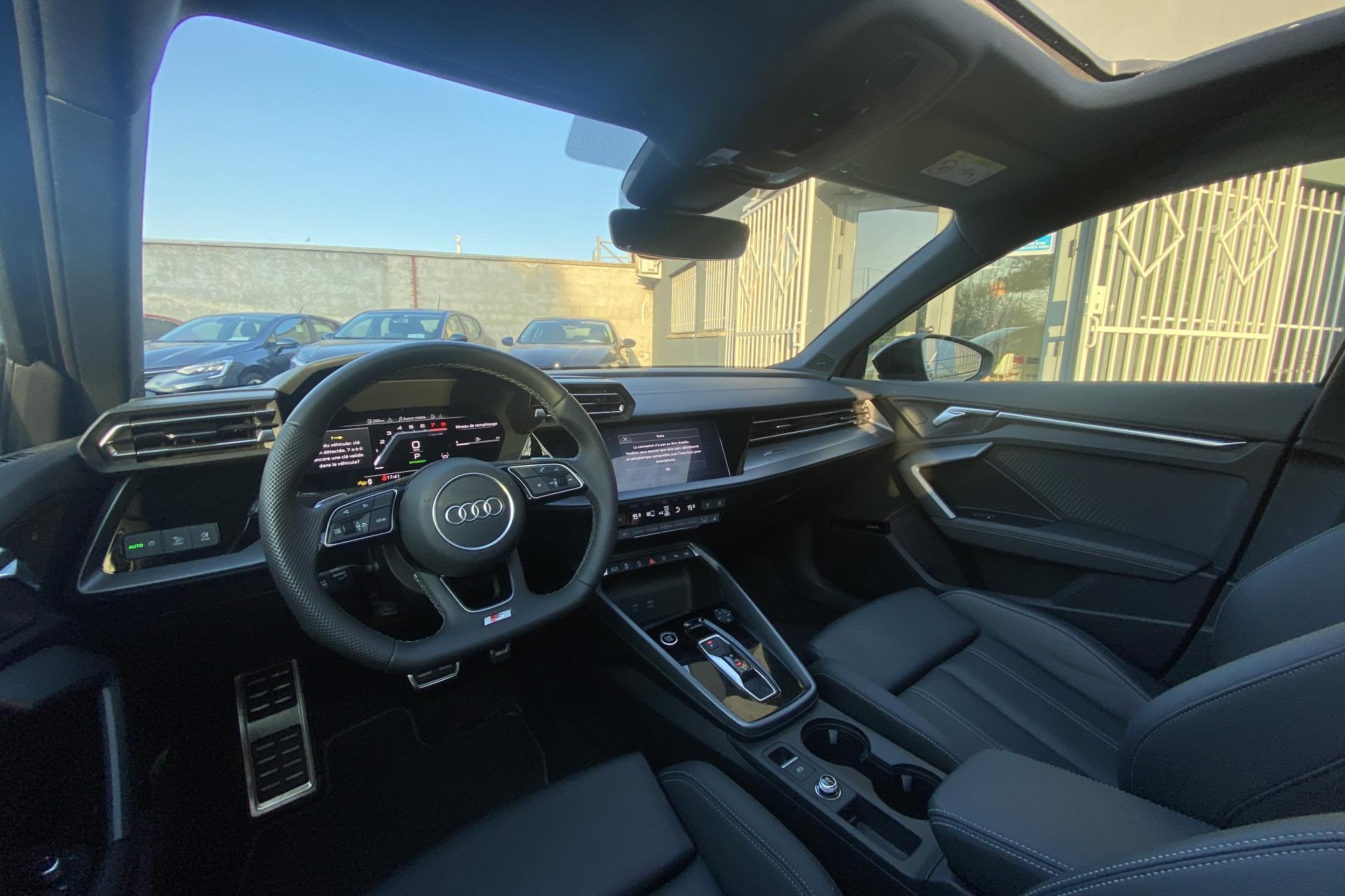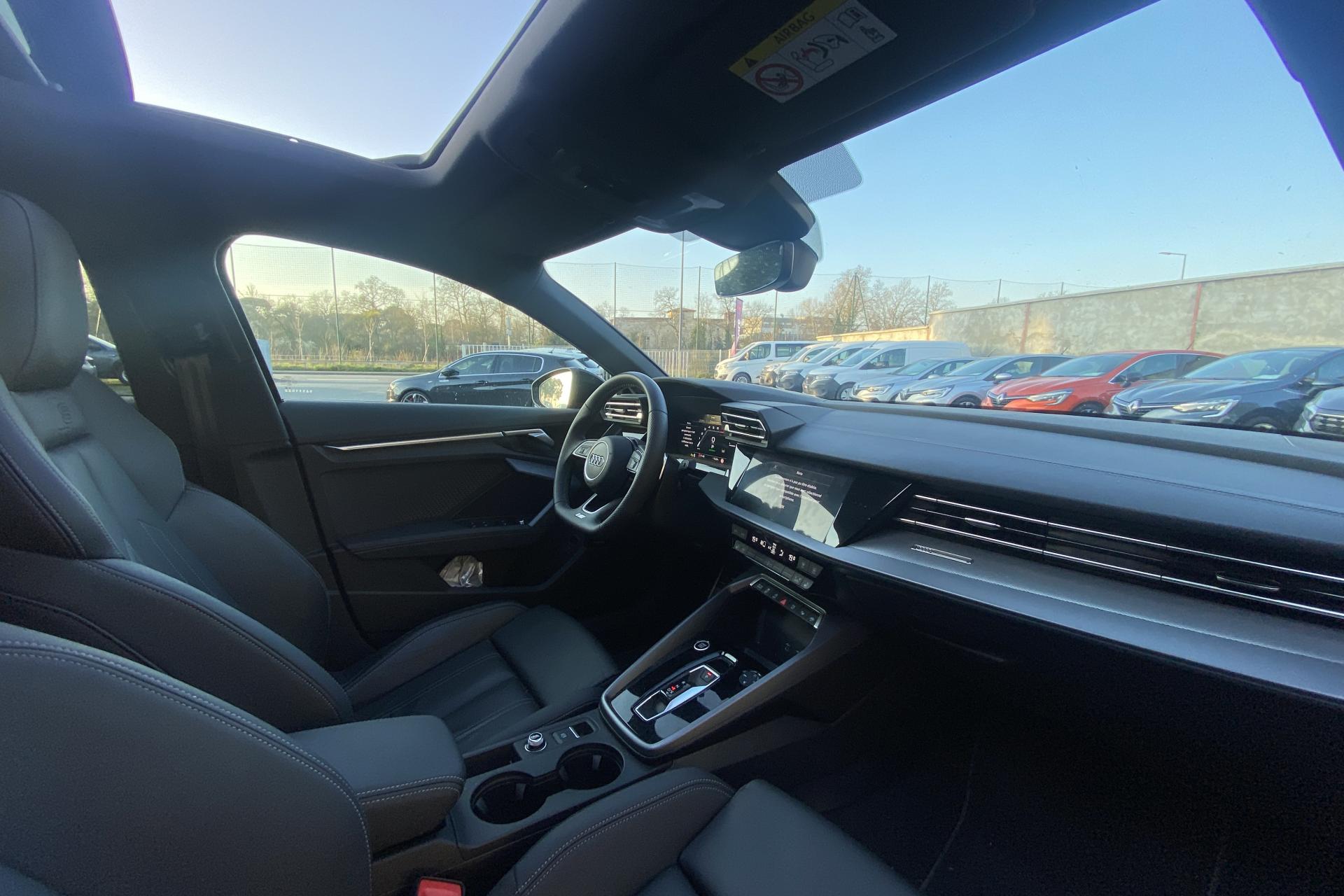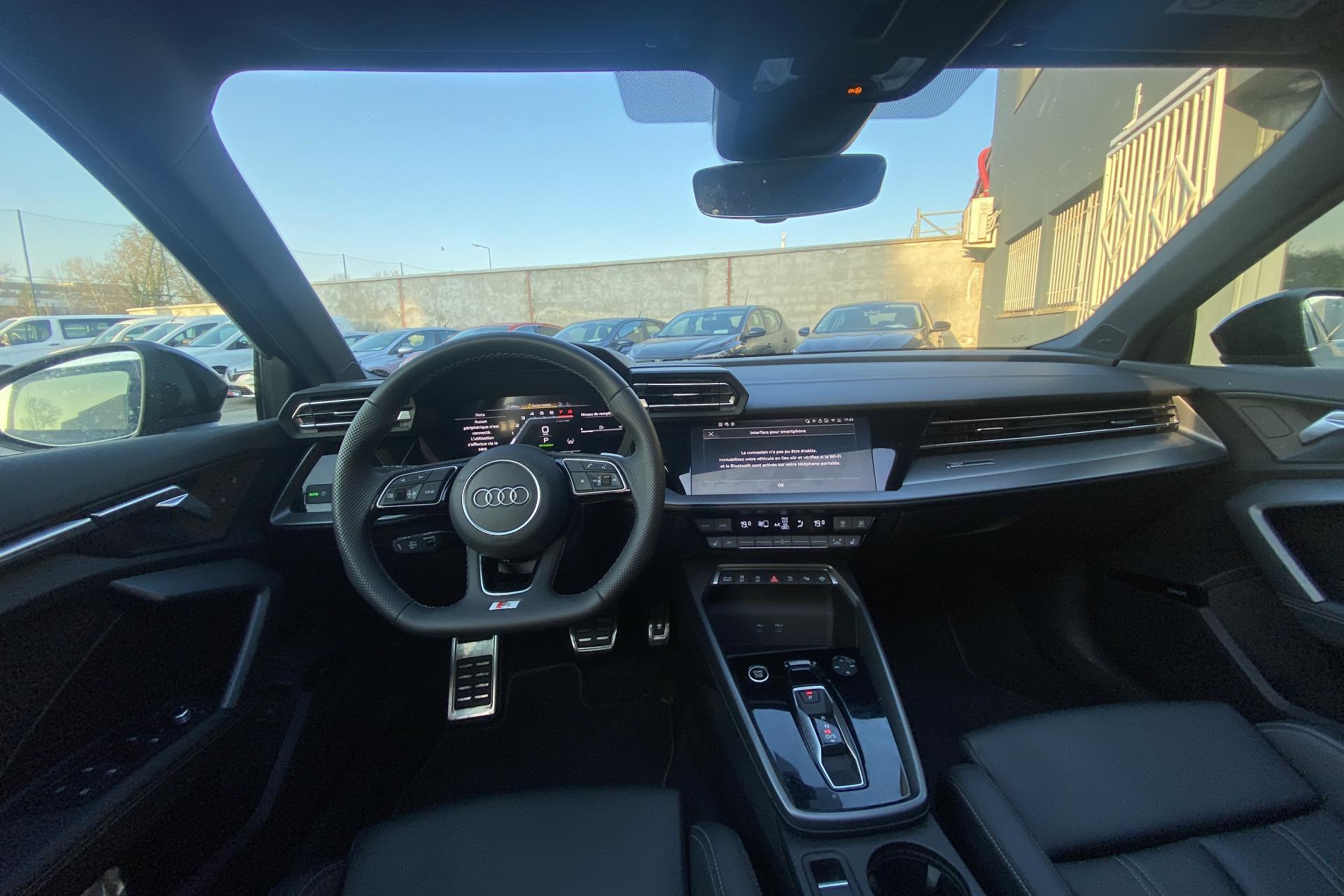 2 ports de charge USB dans le compartiment arrièreAccoudoir central coulissant en longueur, avec inclinaison réglableAirbags latérauxAlerte de sortie de voie avec assistance d'urgenceApplications décoratives en aluminium spectre foncéApplications en aluminium sur la tableau de bordAudi connect Appel d’urgence & ServiceAudi Drive SelectAudi Hold AssistAudi Park AssistAudi phone box lightAudi pre sense frontCâbles de recharge pour téléphone portableCaméra de reculClé confort incluant déverrouillage du coffre par capteurContrôle de pression des pneus ( TPMS )Désactivation de l'airbag du passager avantDétecteur de pluie et allumage automatique des projecteursDétection signalisation panneaux routiers par caméraDirection assistée électromécanique asservie à la vitesseDispositif de limitation de vitesseEcrous antivolHabillage tableau de bord noirI-Size et Top Tether pour les sièges arrière extérieursJantes en alliage léger, 5 branches en Y, Gris Graphite, tournées brillantes, dimension 8,0J x 18 avec pneus 225/40 R18Kit de réparationMMI Radio PlusOutillage de bordPack ConfortPack ConnectivitéPack Eclairage d’ambiance plusPack Extérieur S linePack intérieur S line #1Pare-brise à vitrage acoustiquePeinture vernie Blanc ArkonaPhares à LED avec clignotants dynamiques à l’arrièrePhares à LED avec clignotants dynamiques à l’arrièreRéception radio numérique (DAB)Rétroviseur extérieur passager indexé au passage de la marche arrièreRétroviseurs extérieurs couleur carrosserieRétroviseurs extérieurs réglables électriquement et dégivrantsRappel de ceinture de sécurité avant et arrièreSécurité enfant électriqueSièges avant réglables manuellementSystème d’assistance au maintien dans la voieTapis de sol noirTrousse de secoursVitres arrières surteintées (vitrage privacy)Volant cuir Sport multifonctions plus 3 branches avec méplat et palettes de commande au volant
