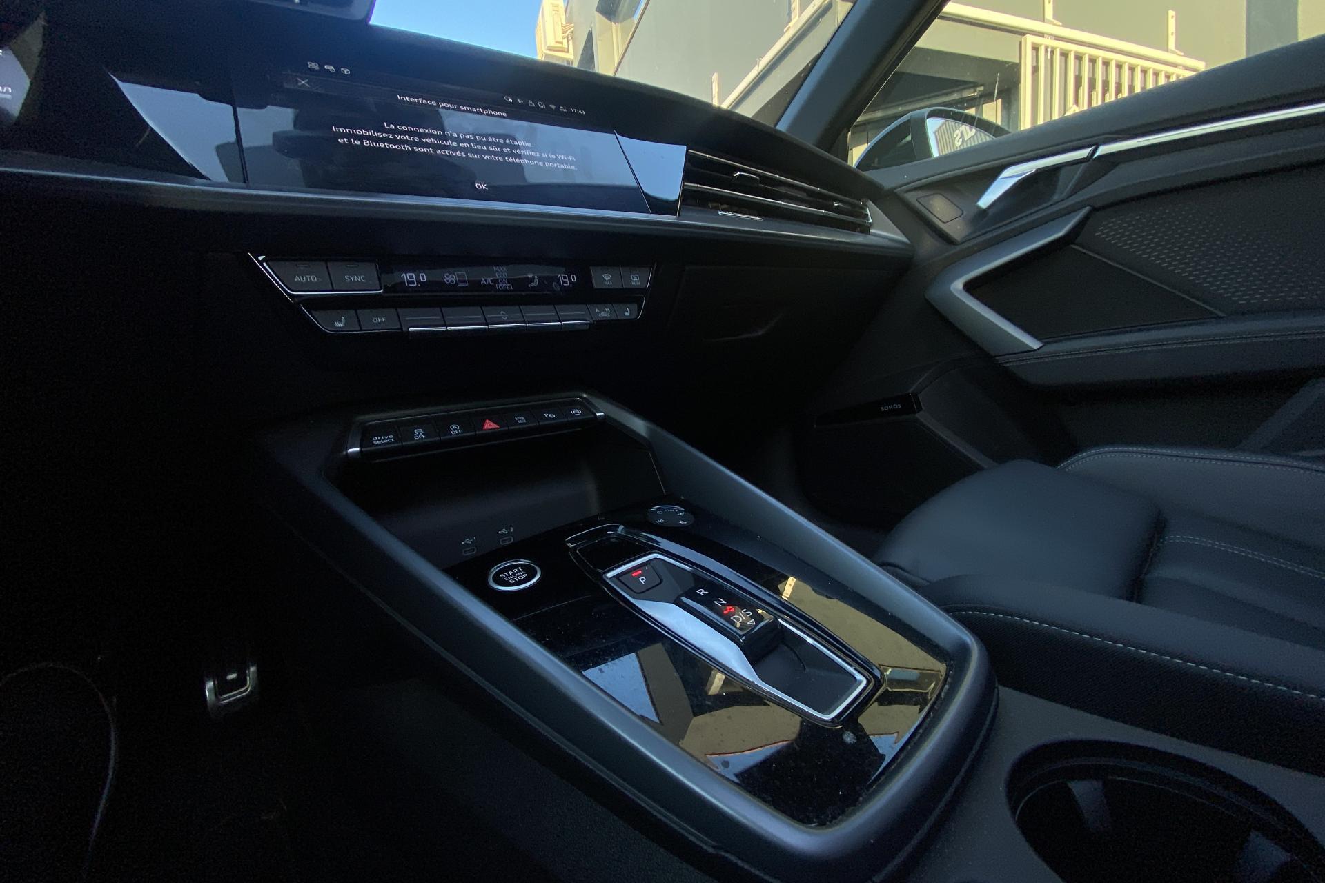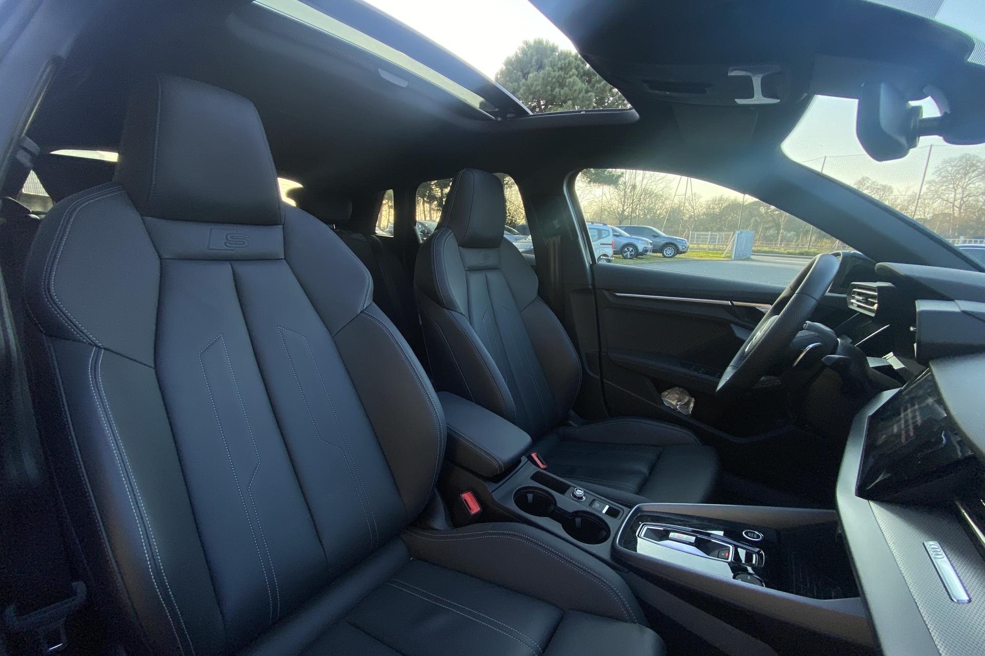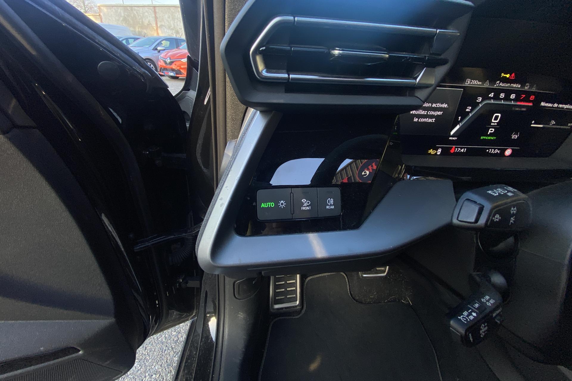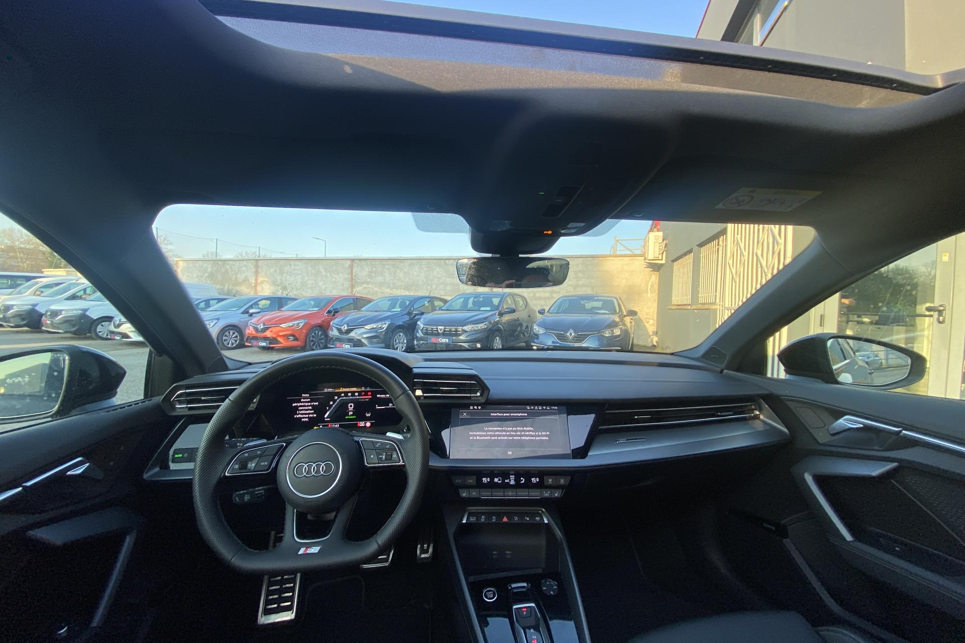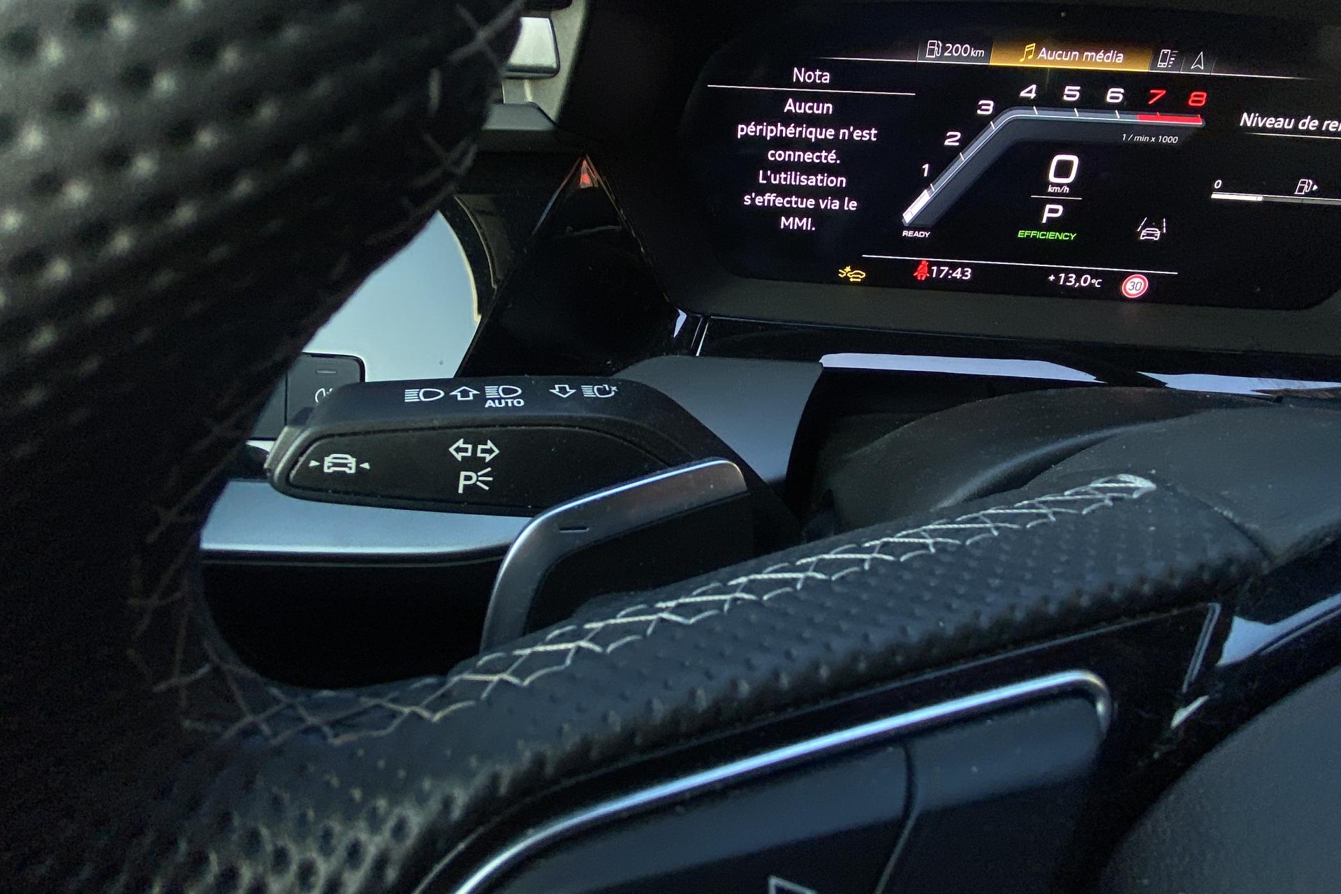 2 ports de charge USB dans le compartiment arrièreAccoudoir central coulissant en longueur, avec inclinaison réglableAirbags latérauxAlerte de sortie de voie avec assistance d'urgenceApplications décoratives en aluminium spectre foncéApplications en aluminium sur la tableau de bordAudi connect Appel d’urgence & ServiceAudi Drive SelectAudi Hold AssistAudi Park AssistAudi phone box lightAudi pre sense frontCâbles de recharge pour téléphone portableCaméra de reculClé confort incluant déverrouillage du coffre par capteurContrôle de pression des pneus ( TPMS )Désactivation de l'airbag du passager avantDétecteur de pluie et allumage automatique des projecteursDétection signalisation panneaux routiers par caméraDirection assistée électromécanique asservie à la vitesseDispositif de limitation de vitesseEcrous antivolHabillage tableau de bord noirI-Size et Top Tether pour les sièges arrière extérieursJantes en alliage léger, 5 branches en Y, Gris Graphite, tournées brillantes, dimension 8,0J x 18 avec pneus 225/40 R18Kit de réparationMMI Radio PlusOutillage de bordPack ConfortPack ConnectivitéPack Eclairage d’ambiance plusPack Extérieur S linePack intérieur S line #1Pare-brise à vitrage acoustiquePeinture vernie Blanc ArkonaPhares à LED avec clignotants dynamiques à l’arrièrePhares à LED avec clignotants dynamiques à l’arrièreRéception radio numérique (DAB)Rétroviseur extérieur passager indexé au passage de la marche arrièreRétroviseurs extérieurs couleur carrosserieRétroviseurs extérieurs réglables électriquement et dégivrantsRappel de ceinture de sécurité avant et arrièreSécurité enfant électriqueSièges avant réglables manuellementSystème d’assistance au maintien dans la voieTapis de sol noirTrousse de secoursVitres arrières surteintées (vitrage privacy)Volant cuir Sport multifonctions plus 3 branches avec méplat et palettes de commande au volant