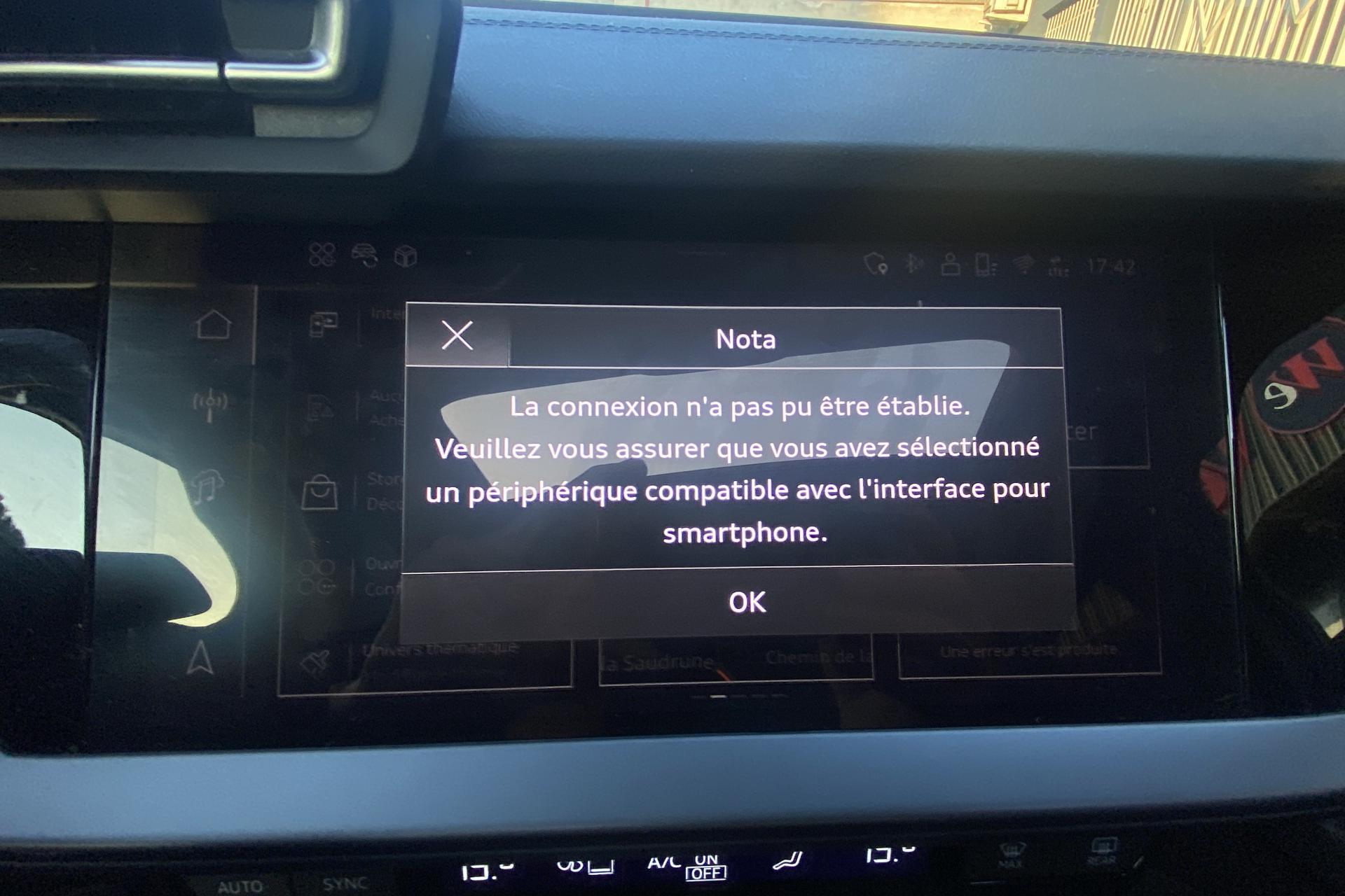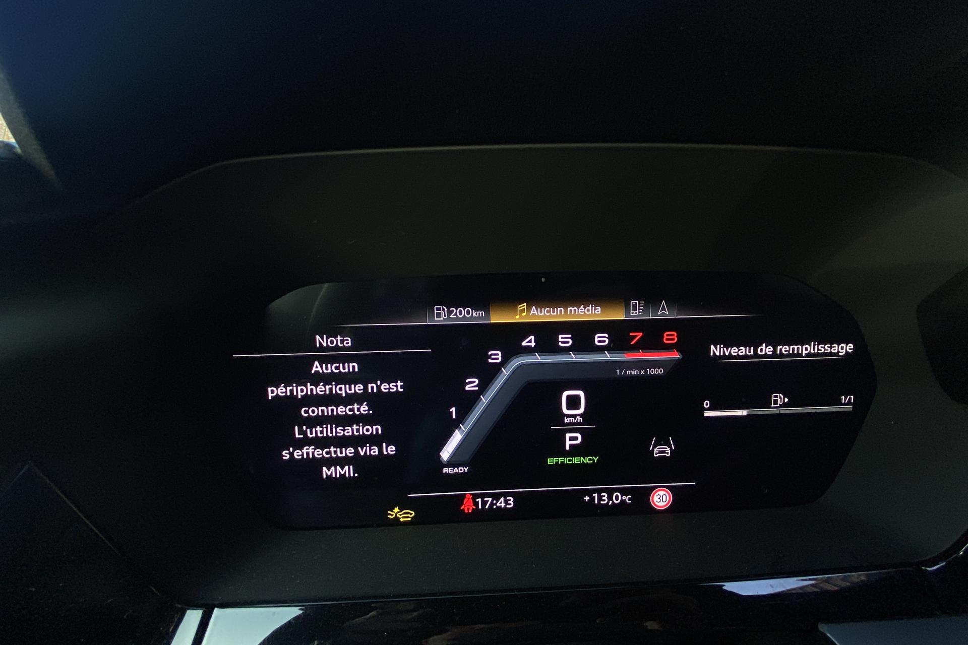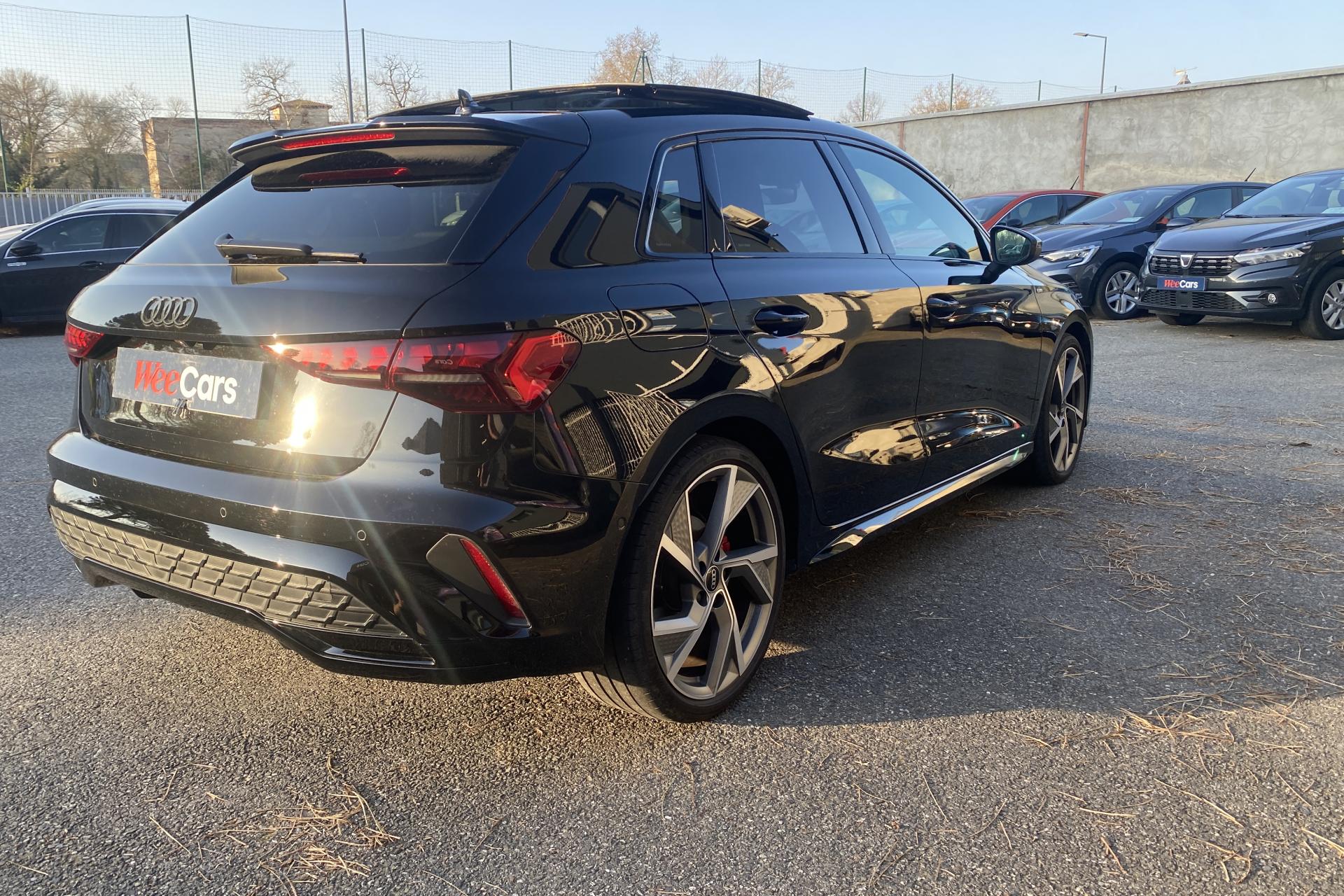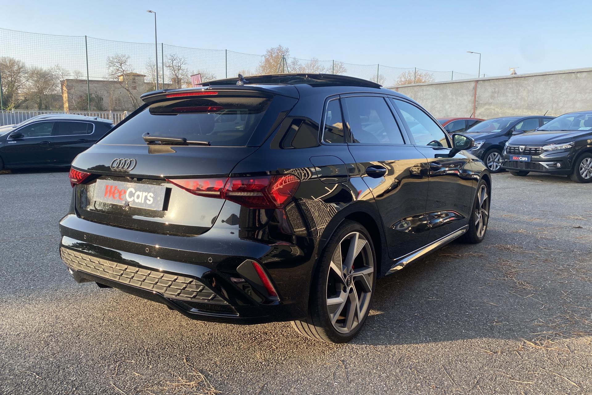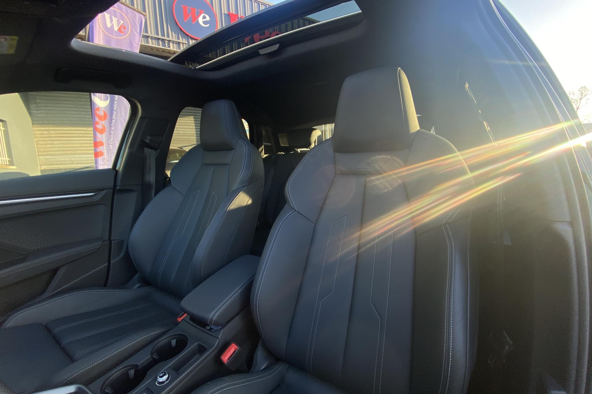 2 ports de charge USB dans le compartiment arrièreAccoudoir central coulissant en longueur, avec inclinaison réglableAirbags latérauxAlerte de sortie de voie avec assistance d'urgenceApplications décoratives en aluminium spectre foncéApplications en aluminium sur la tableau de bordAudi connect Appel d’urgence & ServiceAudi Drive SelectAudi Hold AssistAudi Park AssistAudi phone box lightAudi pre sense frontCâbles de recharge pour téléphone portableCaméra de reculClé confort incluant déverrouillage du coffre par capteurContrôle de pression des pneus ( TPMS )Désactivation de l'airbag du passager avantDétecteur de pluie et allumage automatique des projecteursDétection signalisation panneaux routiers par caméraDirection assistée électromécanique asservie à la vitesseDispositif de limitation de vitesseEcrous antivolHabillage tableau de bord noirI-Size et Top Tether pour les sièges arrière extérieursJantes en alliage léger, 5 branches en Y, Gris Graphite, tournées brillantes, dimension 8,0J x 18 avec pneus 225/40 R18Kit de réparationMMI Radio PlusOutillage de bordPack ConfortPack ConnectivitéPack Eclairage d’ambiance plusPack Extérieur S linePack intérieur S line #1Pare-brise à vitrage acoustiquePeinture vernie Blanc ArkonaPhares à LED avec clignotants dynamiques à l’arrièrePhares à LED avec clignotants dynamiques à l’arrièreRéception radio numérique (DAB)Rétroviseur extérieur passager indexé au passage de la marche arrièreRétroviseurs extérieurs couleur carrosserieRétroviseurs extérieurs réglables électriquement et dégivrantsRappel de ceinture de sécurité avant et arrièreSécurité enfant électriqueSièges avant réglables manuellementSystème d’assistance au maintien dans la voieTapis de sol noirTrousse de secoursVitres arrières surteintées (vitrage privacy)Volant cuir Sport multifonctions plus 3 branches avec méplat et palettes de commande au volant
