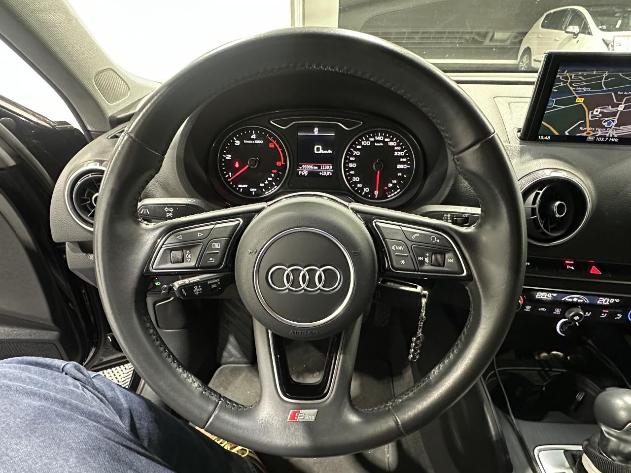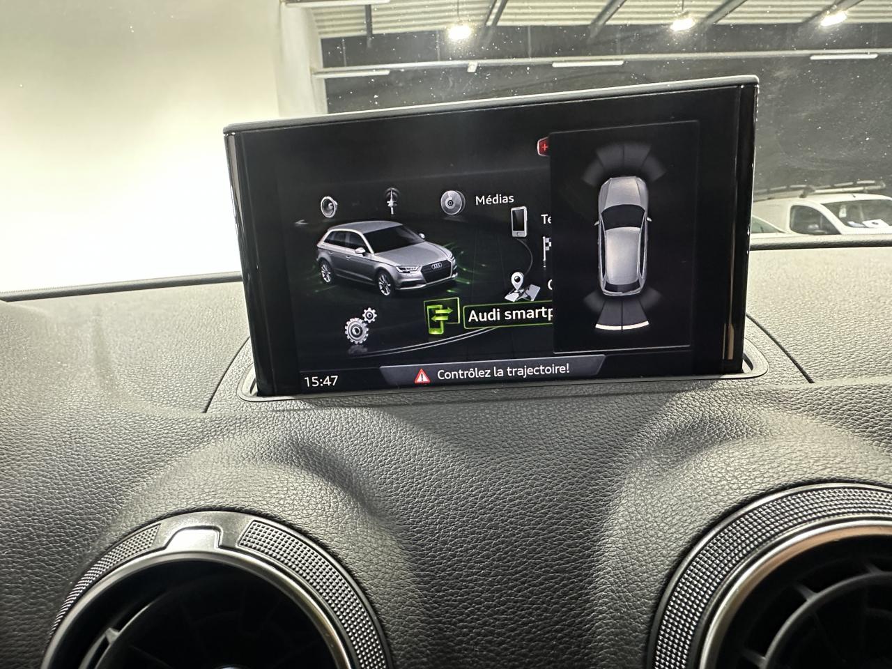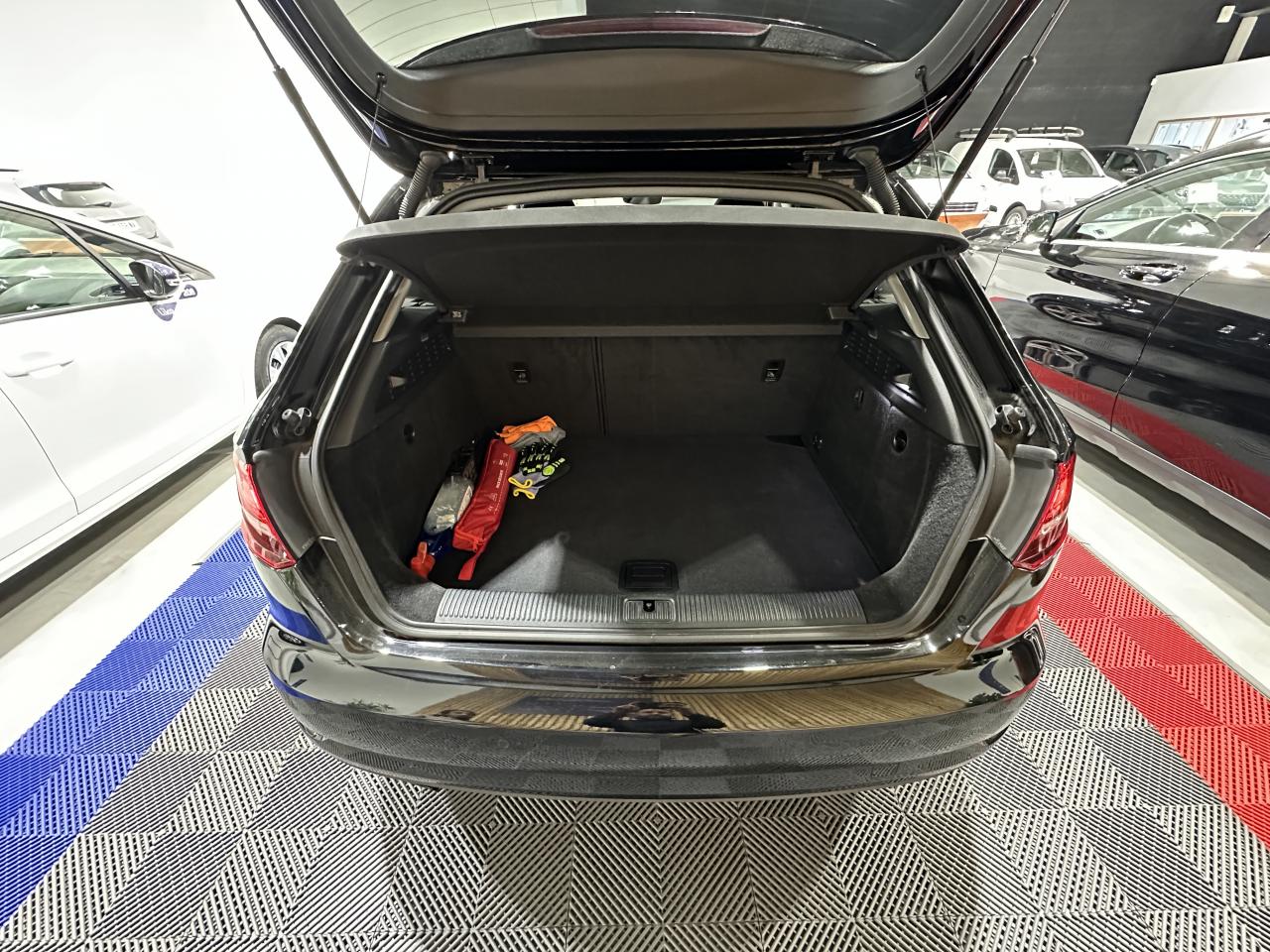 Accoudoir central avantAirbag de têteAirbags frontaux, latéraux et de genoux pour le conducteur et le passager avantApplications décoratives en aluminium brossé matAppuie-tête intégraux à l'avant et à l'arrièreASR (antipatinage) pour une motricité et une rigidité transversale optimales. Réduit le patinage des roues motricesAudi drive select, permet différents réglages:Efficience, Confort, Dynamique, Auto et IndividuelAudi Hold AssistAudi Parking SystemAudi sound system : 10 haut-parleurs incluant un haut-parleur central et un subwoofer ; amplificateur à 6 canaux avec une puissance totale de 180 wattsBoîtiers de rétroviseurs extérieurs dans la teinte du véhiculeBuses de lave-glace chauffantesCâbles de recharge pour téléphone portable, compatibles iPhone et AndroidCasquette de toitChâssis “Sport”Ciel de pavillon en tissu noirClimatisation automatique bi-zoneContrôle de la pression des pneumatiquesDésactivation de l'airbag du passager avantDétecteur de pluie et allumage automatique des projecteursDirection assistée ServotronicEcrous antivolESC : contrôle électronique de stabilisation. Relie ABS, EBV, ASR et EDSFixation pour sièges enfants ISOFIX et Top Tether pour les places arrière extérieuresFrein à disque sur les essieux avant et arrièreFrein de stationnement electromécaniqueInterface BluetoothJantes en aluminium coulé style 5 branches parallèles partiellement polies avec pneus 225/40 R18Kit anticrevaison (compresseur et produit de colmatage)Lecteur CD/MP3 avec un slot pour carte SDMMI navigationPack SmartphonePare-brise avec isolation acoustiquePeinture intégrale uniePhares à LED avec clignotants arrière à LED dynamiquesRégulateur de vitesseRétroviseur intérieur électrochromeRétroviseurs extérieurs avec clignotants à LED intégrésRétroviseurs extérieurs réglables, dégivrants et rabattables électriquement avec position automatique pour manoeuvre de stationnementSécurité enfants électriqueSellerie Tissu Séquence / CuirSièges avant sportSystème ABS avec répartiteur électronique de freinage EBV, programme électronique de stabilisation ESC avec détection de barres de toit et assistance au freinage d’urgenceSystème d'information du conducteur, avec écran couleurSystème Start/ Stop avec récupération d'énergie de freinageTapis de sol avant et arrièreTrousse de secours avec triangle de présignalisationVitres latérales et arrière athermiqueVolant réglable manuellement en hauteur et en profondeurVolant Sport multifonction 3 branches en cuir avec méplat et palettes de changement de vitesses