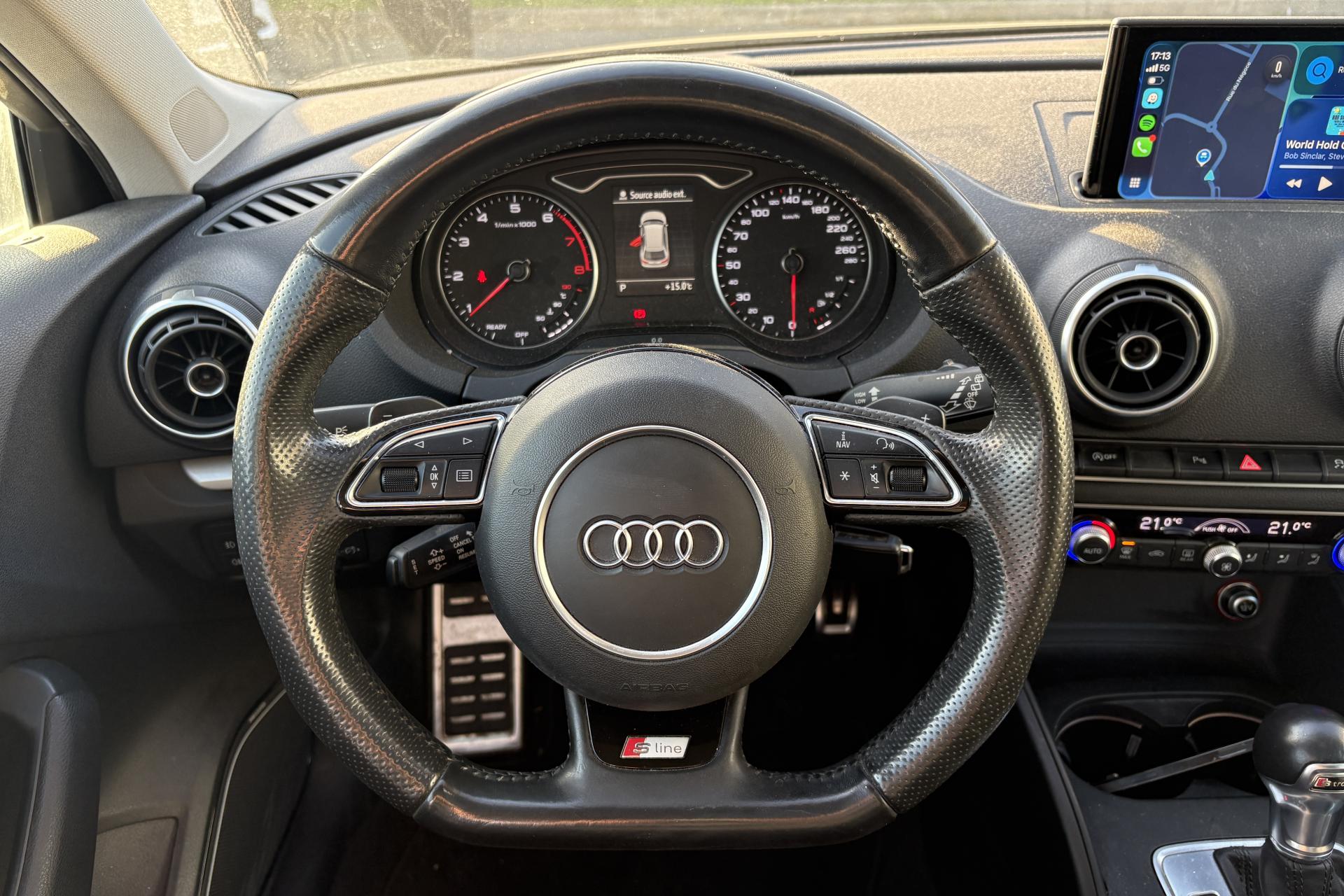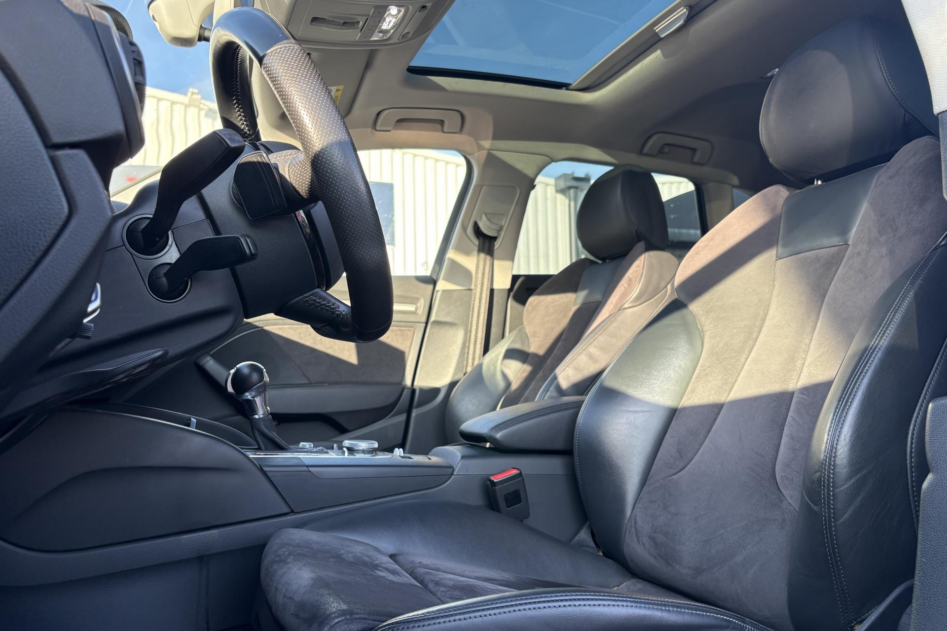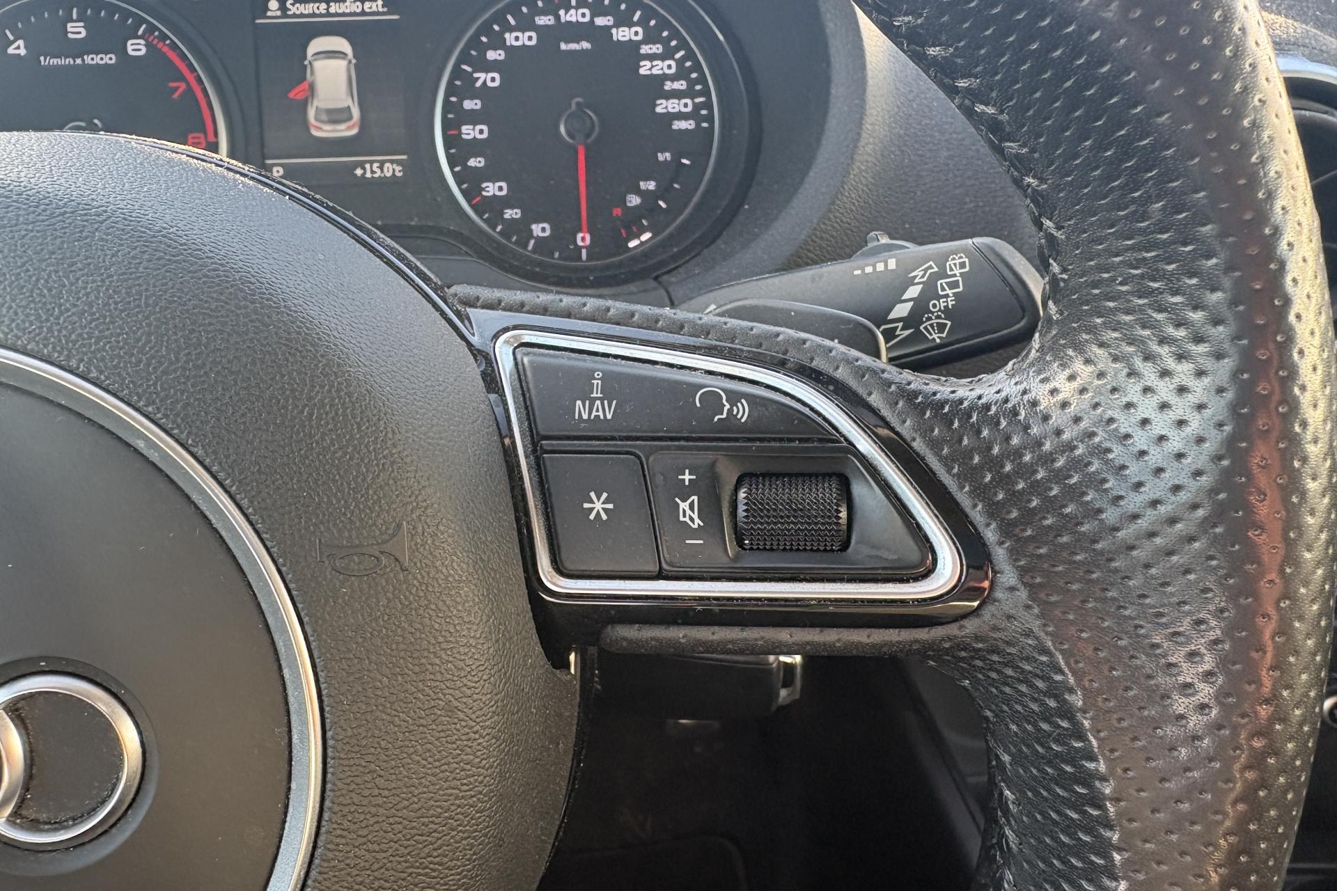 Accoudoir central avant coulissant en longueur, avec vide-poches relevable et inclinaison réglableAirbag genoux conducteurAirbags grand volume pour le conducteur et le passagerAirbags latéraux à l'avant intégrés au dossier des siègesAllume-cigare et cendrier amovible, couvercle chromé avec anneaux AudiAntipatinage (ASR)Applications décoratives sur les contre-portes et tableau de bord “Aluminium brossé mat”Audi drive select, permet différents réglages:Efficience, Confort, Dynamique, Auto et IndividuelAudi Singleframe avec encadrement chromé de la calandreBecquet de pavillon laqué dans la couleur de la carrosserie, avec inserts aérodynamiques latéraux noir brillantBlocage électronique de différentiel (EDS)Boîte à gants grand volume côté passager avant, éclairéeCache-bagages amovibleCarrosserie galvaniséeCeintures de sécurité 3 points automatiques pour toutes les places, prétensionneurs pyrotechniques, réglage des ceintures en hauteur à l'avant ; limiteurs de tension sur toutes les places extérieuresChâssis Sport, carrosserie surbaissée de 15 mm, avec suspension et amortisseurs plus fermesCiel de pavillon en tissu noirClimatisation automatique Confort avec réglage asservi à la position du soleilContrôle de ceinture attachée pour toutes les placesContrôle de pression des pneus ( TPMS )Contrôle électronique de stabilisation (ESC) désactivable, avec amplificateur hydraulique de freinage d'urgenceDétecteur de pluie et de luminosité incluant bande grise dans la partie supérieure du pare-briseDirection assistée électromécanique avec assistance asservie à la vitesse (servotronic)Dossier de banquette arrière rabattable en deux parties 40/60 ou complètementEclairage intérieur à l'avant et à l'arrièreEcrous antivolEssuie-glace arrière avec déclenchement automatique en marche arrièreExtension de bas de caisse pour réduire la valeur Cx et améliorer l'aérodynamiqueFeux arrière avec feux de recul blancs et feux de brouillard arrière, incluant troisième feu stop surélevé et éclairage de plaque à LEDFeux de freinage adaptatifsFixation pour sièges enfants ISOFIX et Top Tether pour les places arrière extérieuresIdentification du modèle/technologie sur le capot de coffreInscription “S line” sur les ailes avantInscription quattro sur la calandre, le capot de coffre et le tableau de bord côté passagerJantes en aluminium coulé style 5 branches parallèles partiellement polies, 7,5 J x 18" avec pneus 225/40 R 18"Lave-essuie-glace 2 vitesses, 4 intervalles de balayage réglablesLève-vitres à l'avant et à l'arrière, électriques, avec protection antipincement, ouverture/fermeture par le verrouillage centralisé, fonction ouverture/fermeture par impulsionLunette arrière dégivrante, avec minuterieMiroir de courtoisie éclairéMMI RadioMoulures de seuils avec insert en aluminium et inscription “S line”Œilletons de fixation, 4 dans le coffre, pour maintenir les bagages et objets dans le coffre, points de fixation pour le filet mixte en optionOutillage de bord dans le coffre incluant un cricPack aluminium extérieurPack rangement et coffrePare-brise acoustique, améliore l'isolation phonique du pare-brise et réduit les bruits extérieursPare-chocs dans la couleur de la carrosseriePare-soleil rabattables et pivotants, côtés conducteur et passager avant, avec miroir de courtoisie occultablePatères à vêtements sur les montants de pavillon centraux, à gauche et à droite, simplesPhares antibrouillard halogènes, intégrés à la jupe avantPoignées de maintien. 4 poignées avec mécanisme amortisseur, rabattables, encastrées dans le pavillonPommeau du levier/sélecteur de vitesses en cuir perforé noirPréparation pour téléphone portable (Bluetooth), commande sur volant multifonction, mains libres et audiostreamingPrise de courant 12 volts sur la console centrale à l'avantProtection antidémarrage électronique, intégrée à la gestion du moteur, activation automatique par la clé du véhiculeProtection latérale anticollision avec barres extrêmement rigides dans les portières et une structure latérale de carrosserie renforcéeRecommandation de repos qui analyse le comportement routier au moyen de différents capteursRégulateur de vitesseRétroviseur intérieur électrochromeRétroviseurs extérieurs avec clignotants à LED intégrés réglables électriquement et dégivrants, miroir asphérique à gauche, convexe à droite. Buses de lave-glace dégivrantesRoue de secours temporaire de type galetteSellerie mixte en tissu Biathlon et cuirSièges à l'avant avec positionnement en longueur et inclinaison de dossier réglables manuellementSièges conducteur et passager avant réglables en hauteurSièges Sport à l'avant avec bourrelets latérauxSignal sonore pour oubli d'extinction des feuxSorties d'échappement doubles à gauche chroméesSupport pour téléphone portable et clé avec compatiment séparé pour le rangement du téléphone portable et la clé du véhicule. Rangement intégré avec encadrement chromé sur la console centraleSystème d'airbags de têteSystème d'information du conducteur avec écran couleur haute résolution de 3,5 poucesSystème de freinage avec antiblocage (ABS) et répartiteur électronique de freinage (EBV)Système de ventilation et chauffage 4 diffuseurs d'air rondsTapis complémentaires à l'avant et à l'arrière assortis à la couleur de la moquetteTémoins de contrôle pour, entre autres : airbag, ABS, ESC/ASR, frein de stationnement serré, électronique EDS, phares, clignotants, circuit de freinage, pression d'huile moteur, fermeture du coffre, système électrique du moteur, système de pr&eacuTriangle de présignalisation fixé sur l'intérieur du capot du coffreTrousse de secours dans le vide-poches sous le siège passagerVerrouillage centralisé à télécommandeVide-poches sur les habillages des portières ainsi que sur la console centrale avec porte-boissonVolant réglable en