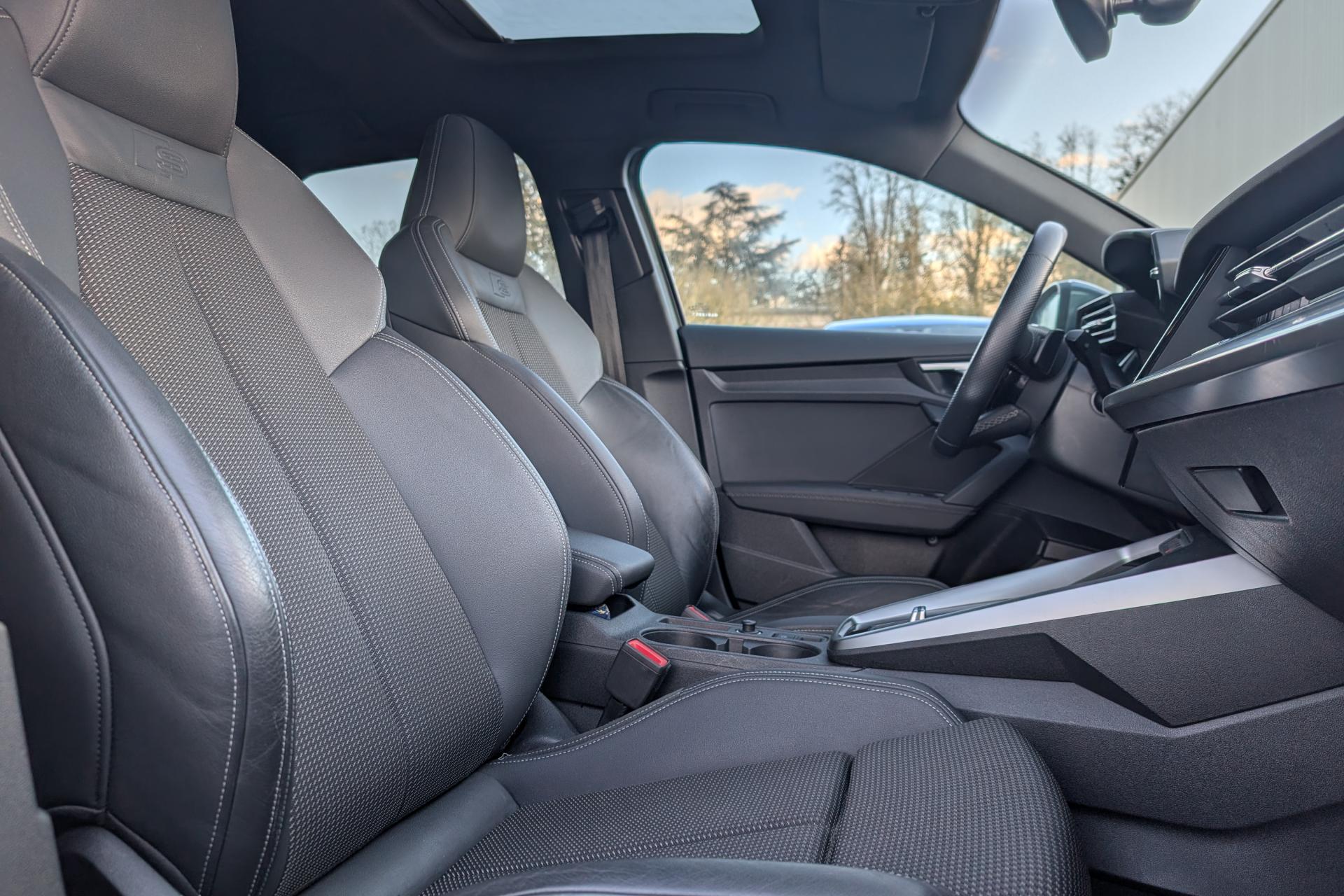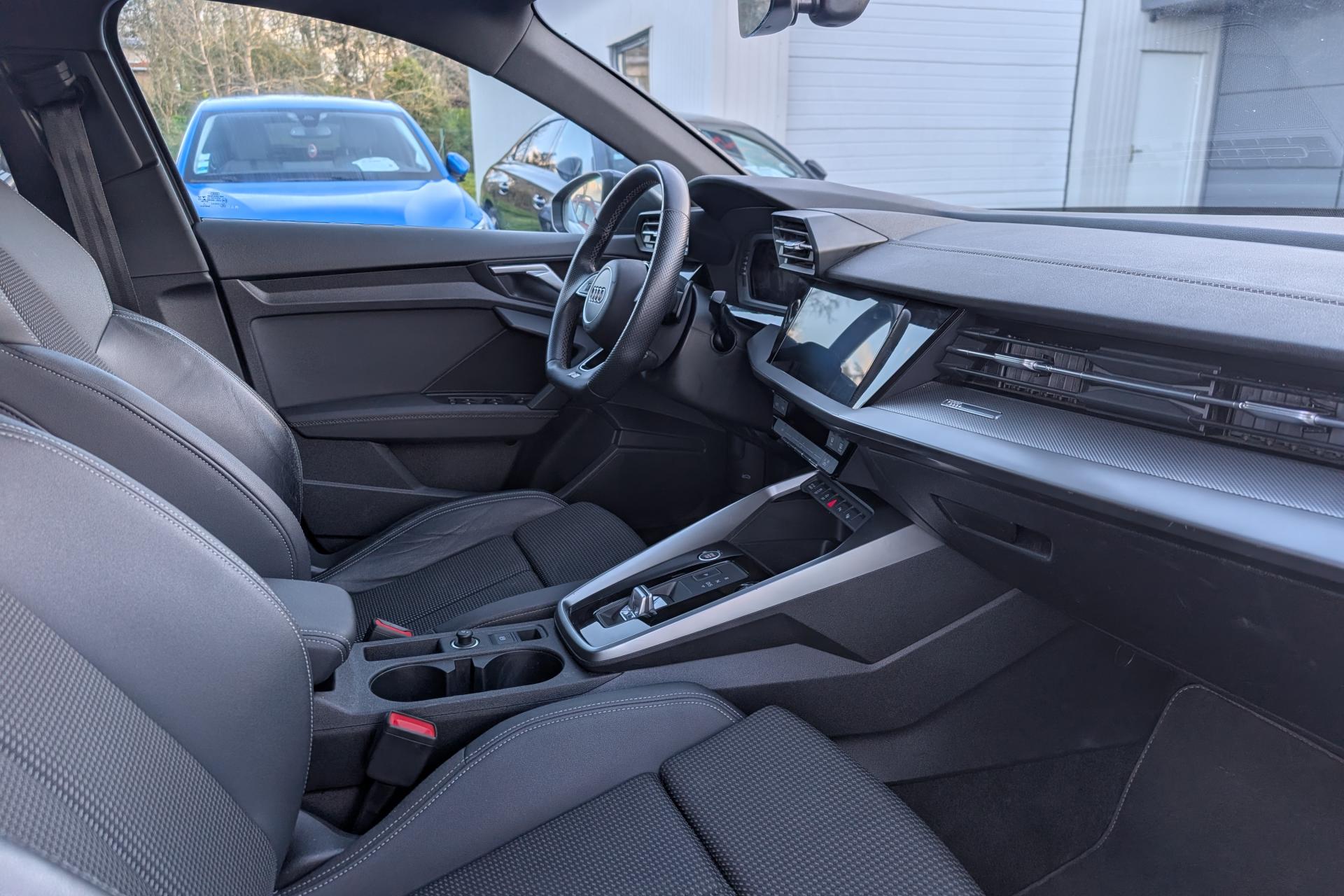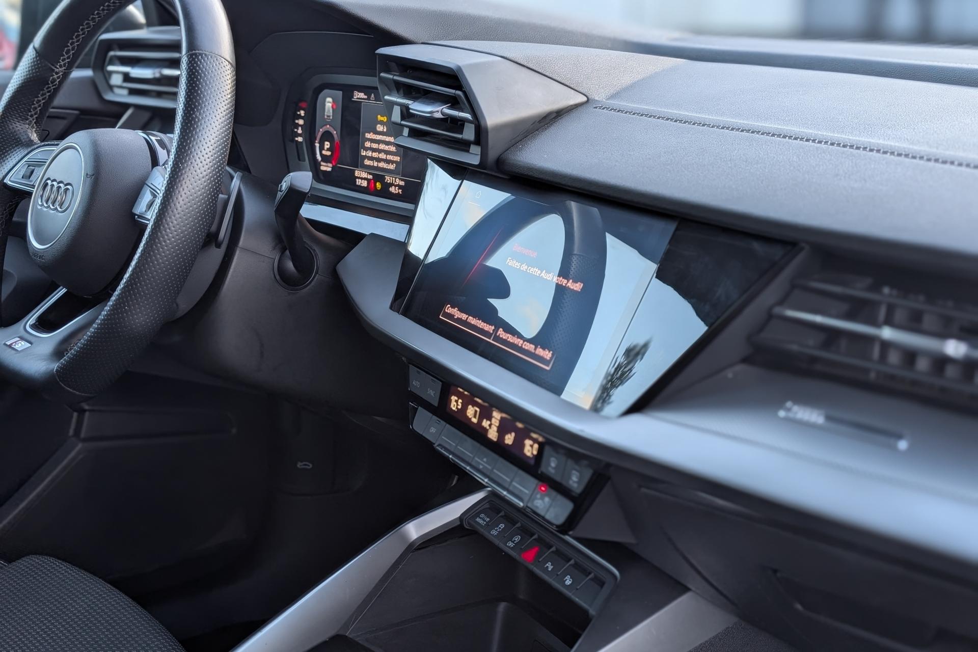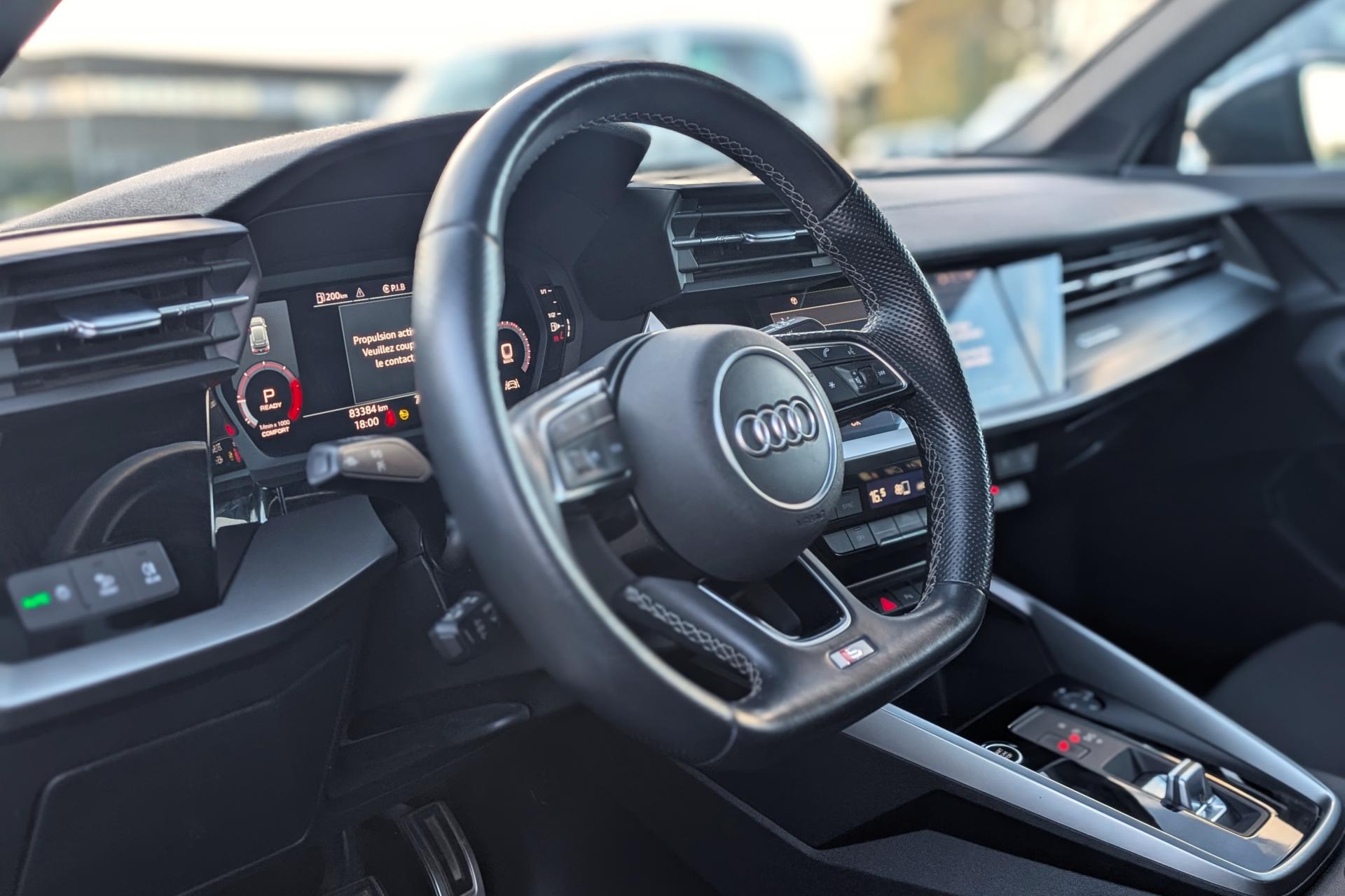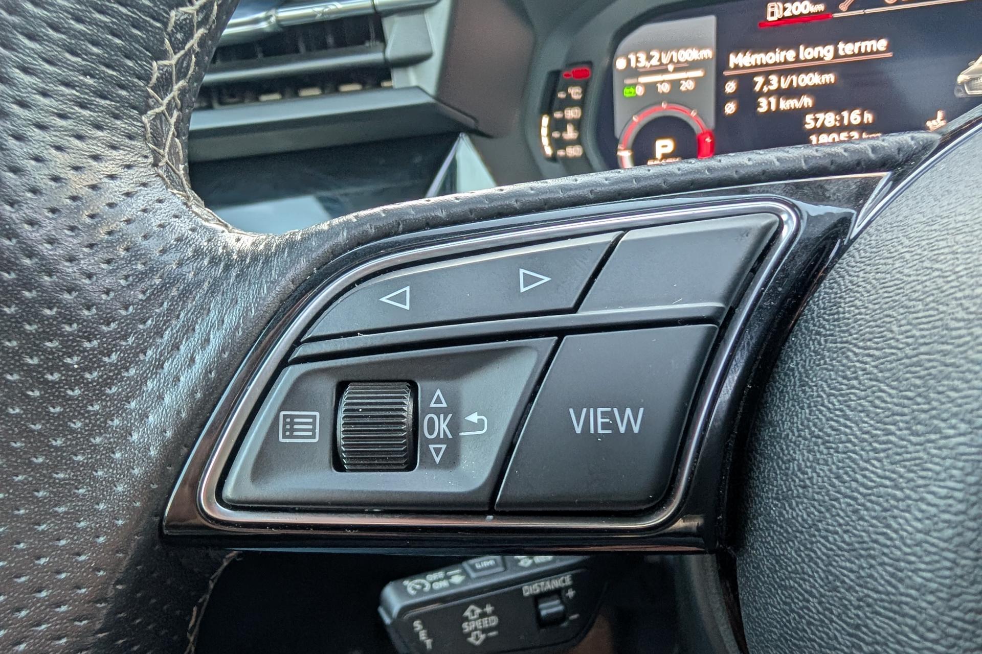 2 prises USB à l'arrièreAirbags latéraux à l'avant, avec airbags de têteAppel d’urgence Audi connectApplications décoratives en aluminium spectre foncéAudi connect Appel d’urgence & ServiceAudi Drive SelectAudi Park AssistAudi pre sense frontAudi smartphone interfaceAudi sound system : 10 haut-parleurs incluant un haut-parleur central et un subwoofer ; amplificateur à 6 canaux avec une puissance totale de 180 wattsAudi virtual cockpit : combiné d'instruments entièrement numérique de 10,25"Avertissement de sortie de voieBanquette arrière rabattable 40/60Caméra de reculCiel de pavillon en tissu noirClé à fréquence radio (sans safelock)Climatisation automatique confort 2 zonesCommande de désactivation d'airbag passager avantContrôle de la pression des pneumatiquesDétecteur de pluie et allumage automatique des projecteursDirection assistée électromécanique asservie à la vitesseEcrous antivolI-Size et Top Tether pour les sièges arrière extérieursInterface BluetoothJantes en alliage léger, 5 branches en Y, Gris Graphite, tournées brillantes, dimension 8,0J x 18 avec pneus 225/40 R18Kit anticrevaison (compresseur et produit de colmatage)Limiteur de vitesseMMI navigation plus avec MMI touchOutillage de bordPack Eclairage intérieurPack Extérieur S linePack Intérieur S linePare-brise avec isolation acoustiquePeinture verniePhares à LED avec clignotants dynamiques à l’arrièreRappel de ceinture de sécurité avec dispositif arrière de détection d’occupation du siègeRéception radio numérique (DAB)Régulateur de vitesseRétroviseur intérieur à position nuit automatique, sans encadrementRétroviseurs extérieurs couleur carrosserieRétroviseurs extérieurs réglables, dégivrants, rabattables électriquement avec fonction rabat automatique (côté passager avant, marche arrière enclenchée) et fonction jour/nuit automatique des deux côtésSécurité enfant électriqueSièges avant réglables manuellementTrousse de secours, triangle de présignalisation et 2 vestes de sécuritéVolant 3 branches multifonctions plus en cuir