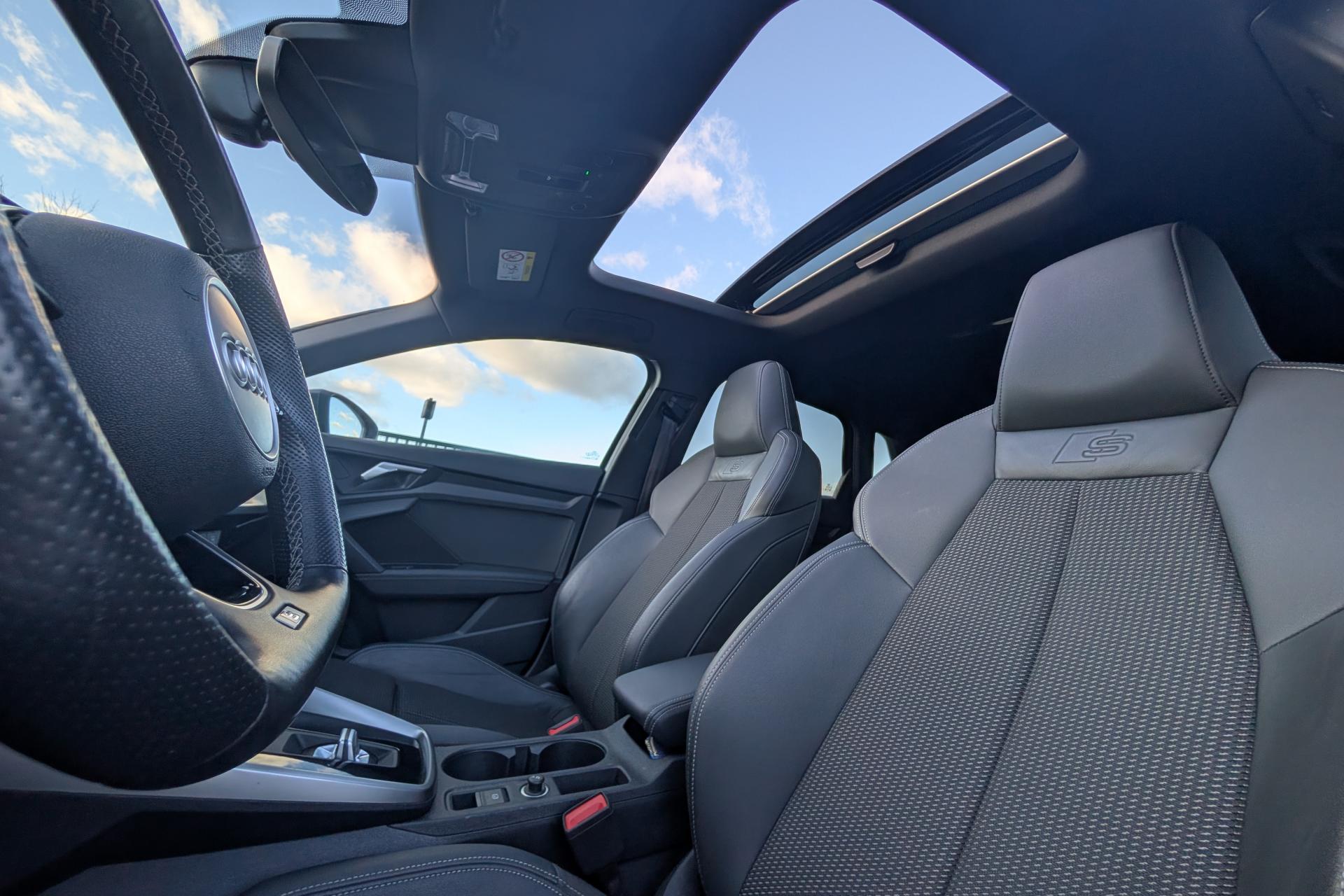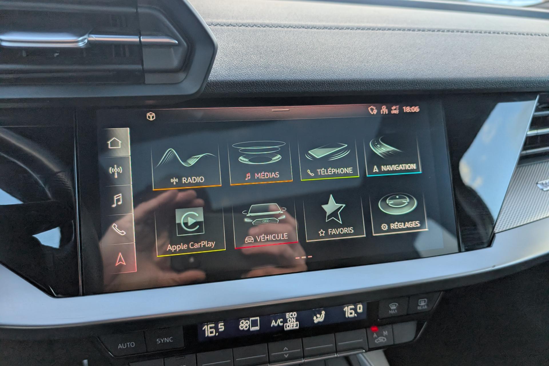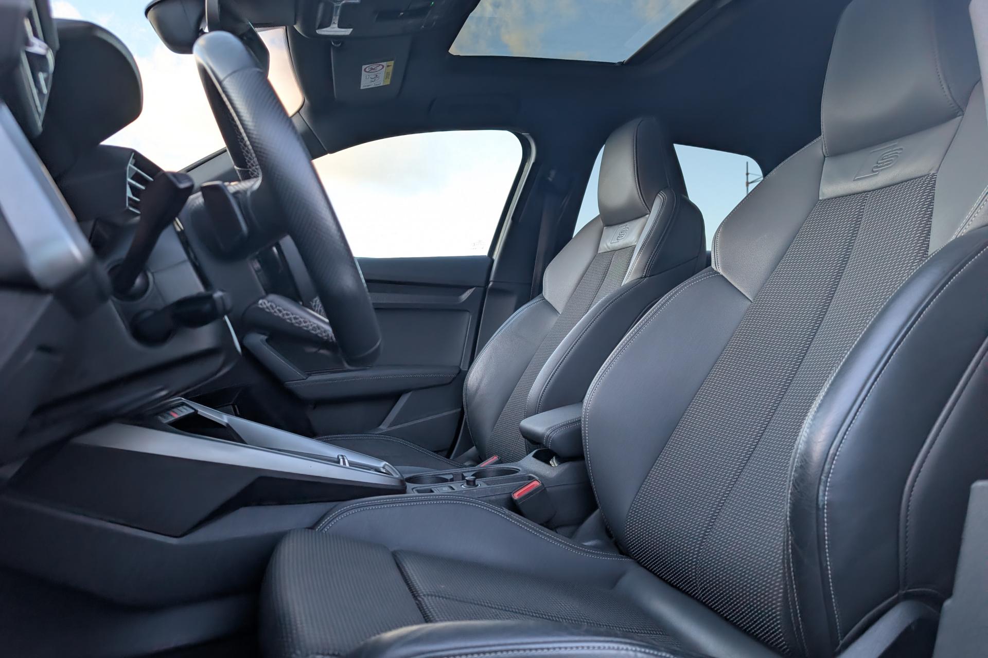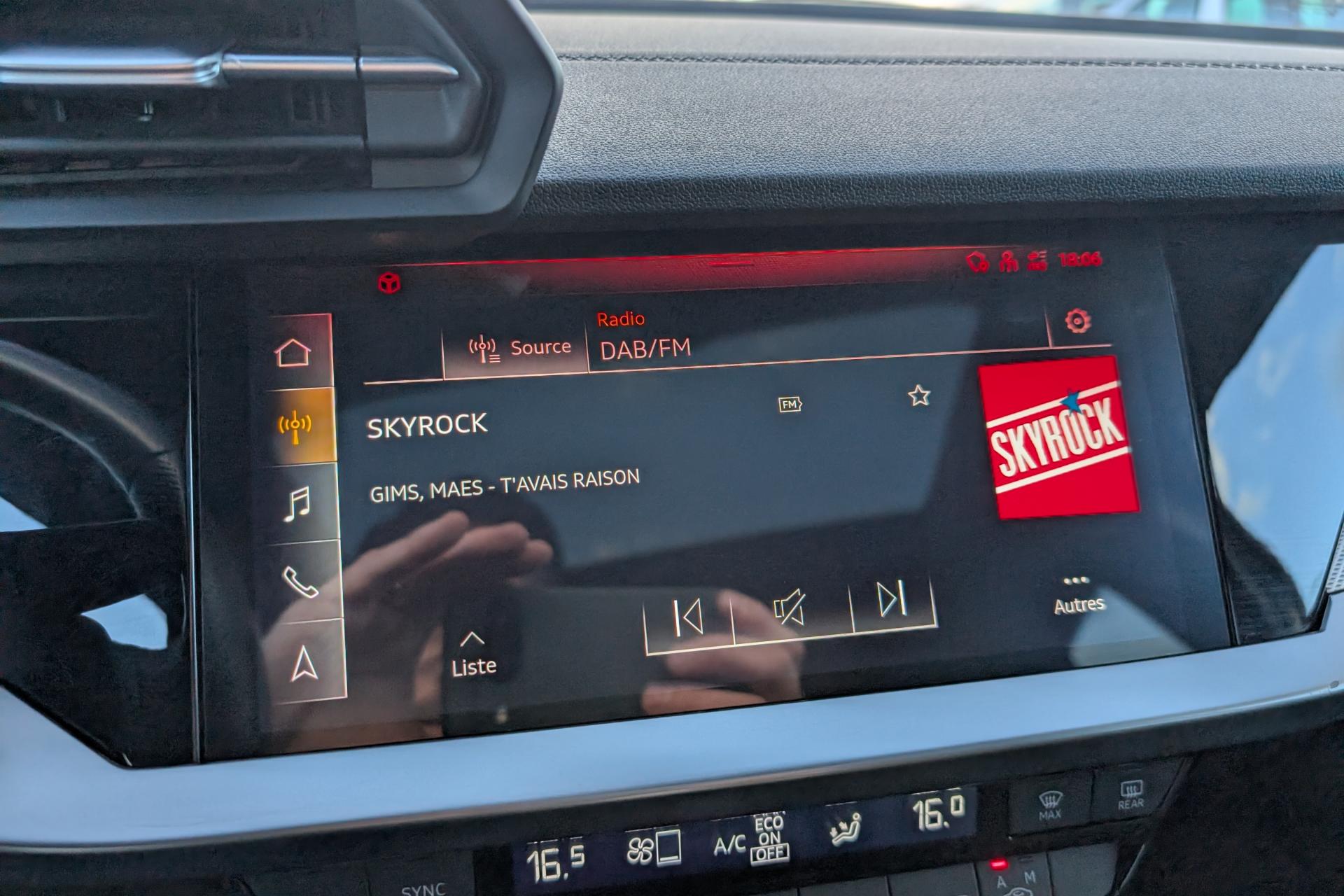 2 prises USB à l'arrièreAirbags latéraux à l'avant, avec airbags de têteAppel d’urgence Audi connectApplications décoratives en aluminium spectre foncéAudi connect Appel d’urgence & ServiceAudi Drive SelectAudi Park AssistAudi pre sense frontAudi smartphone interfaceAudi sound system : 10 haut-parleurs incluant un haut-parleur central et un subwoofer ; amplificateur à 6 canaux avec une puissance totale de 180 wattsAudi virtual cockpit : combiné d'instruments entièrement numérique de 10,25"Avertissement de sortie de voieBanquette arrière rabattable 40/60Caméra de reculCiel de pavillon en tissu noirClé à fréquence radio (sans safelock)Climatisation automatique confort 2 zonesCommande de désactivation d'airbag passager avantContrôle de la pression des pneumatiquesDétecteur de pluie et allumage automatique des projecteursDirection assistée électromécanique asservie à la vitesseEcrous antivolI-Size et Top Tether pour les sièges arrière extérieursInterface BluetoothJantes en alliage léger, 5 branches en Y, Gris Graphite, tournées brillantes, dimension 8,0J x 18 avec pneus 225/40 R18Kit anticrevaison (compresseur et produit de colmatage)Limiteur de vitesseMMI navigation plus avec MMI touchOutillage de bordPack Eclairage intérieurPack Extérieur S linePack Intérieur S linePare-brise avec isolation acoustiquePeinture verniePhares à LED avec clignotants dynamiques à l’arrièreRappel de ceinture de sécurité avec dispositif arrière de détection d’occupation du siègeRéception radio numérique (DAB)Régulateur de vitesseRétroviseur intérieur à position nuit automatique, sans encadrementRétroviseurs extérieurs couleur carrosserieRétroviseurs extérieurs réglables, dégivrants, rabattables électriquement avec fonction rabat automatique (côté passager avant, marche arrière enclenchée) et fonction jour/nuit automatique des deux côtésSécurité enfant électriqueSièges avant réglables manuellementTrousse de secours, triangle de présignalisation et 2 vestes de sécuritéVolant 3 branches multifonctions plus en cuir