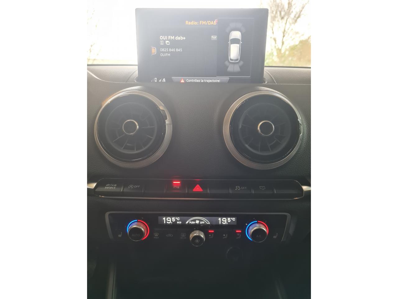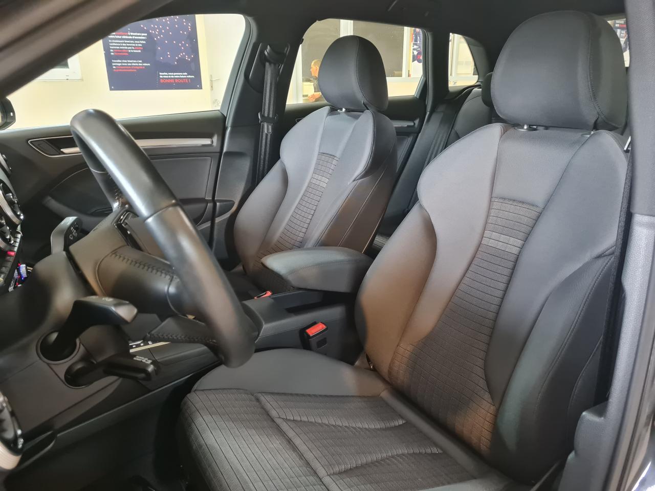 Accoudoir central avantAirbag de têteAirbags frontaux et latérauxApplications décoratives Aluminium MistralAppuie-tête intégraux à l'avant et à l'arrièreASR (antipatinage) pour une motricité et une rigidité transversale optimales. Réduit le patinage des roues motricesAudi drive select, permet différents réglages:Efficience, Confort, Dynamique, Auto et IndividuelAudi Hold AssistAudi Parking SystemBoîtiers de rétroviseurs extérieurs dans la teinte du véhiculeBuses de lave-glace chauffantesCâbles de recharge pour téléphone portable, compatibles iPhone et AndroidCasquette de toitChâssis “Sport”Ciel de pavillon en tissu gris rocheClimatisation automatique bi-zoneContrôle de la pression des pneumatiquesDétecteur de pluie et allumage automatique des projecteursDirection assistée ServotronicEcrous antivolESC : contrôle électronique de stabilisation. Relie ABS, EBV, ASR et EDSFeux tout-tempsFrein à disque sur les essieux avant et arrièreFrein de stationnement electromécaniqueInterface BluetoothJantes en aluminium coulé style 5 branches avec pneus 225/45 R 17Kit anticrevaison (compresseur et produit de colmatage)Lecteur CD/MP3 avec un slot pour carte SDPack Aluminium extérieurPack aluminium intérieurPack EclairagePack SmartphonePare-brise avec isolation acoustiquePeinture intégrale unieProjecteurs au Xénon Plus avec feux de jour à LEDRégulateur de vitesseRétroviseur intérieur électrochromeRétroviseurs extérieurs avec clignotants à LED intégrésRétroviseurs extérieurs réglables, dégivrants et rabattables électriquement avec position automatique pour manoeuvre de stationnementSellerie tissu “Rallye”Sièges avant sportSystème ABS avec répartiteur électronique de freinage EBV, programme électronique de stabilisation ESC avec détection de barres de toit et assistance au freinage d’urgenceSystème d'information du conducteur, avec écran couleurSystème Start/ Stop avec récupération d'énergie de freinageTapis de sol avant et arrièreTrousse de secours avec triangle de présignalisationVitres latérales et arrière athermiqueVolant réglable manuellement en hauteur et en profondeur