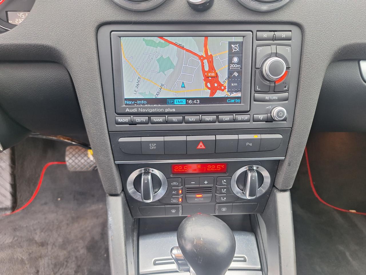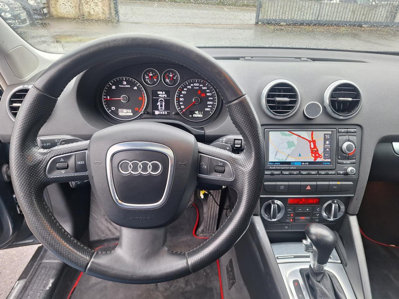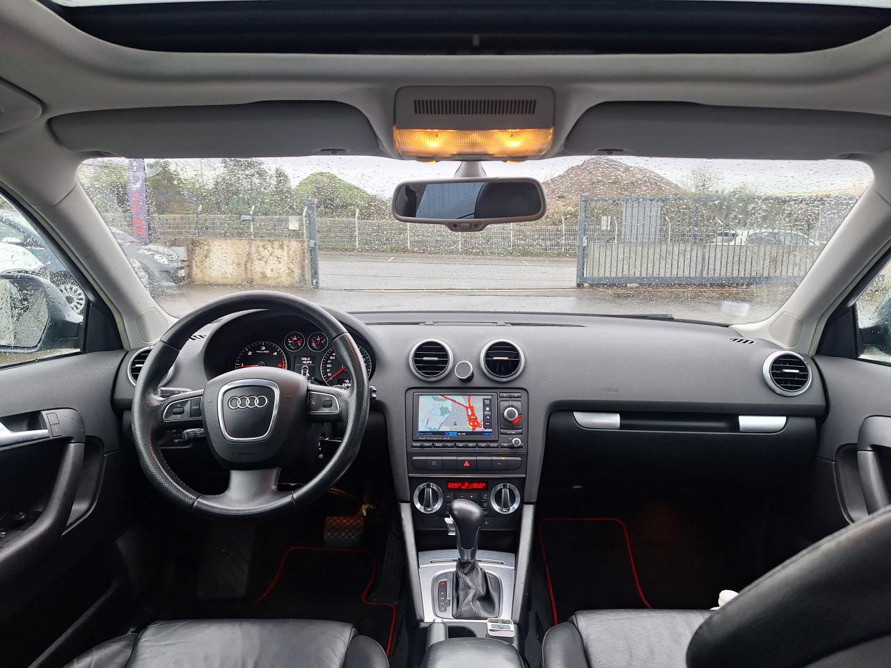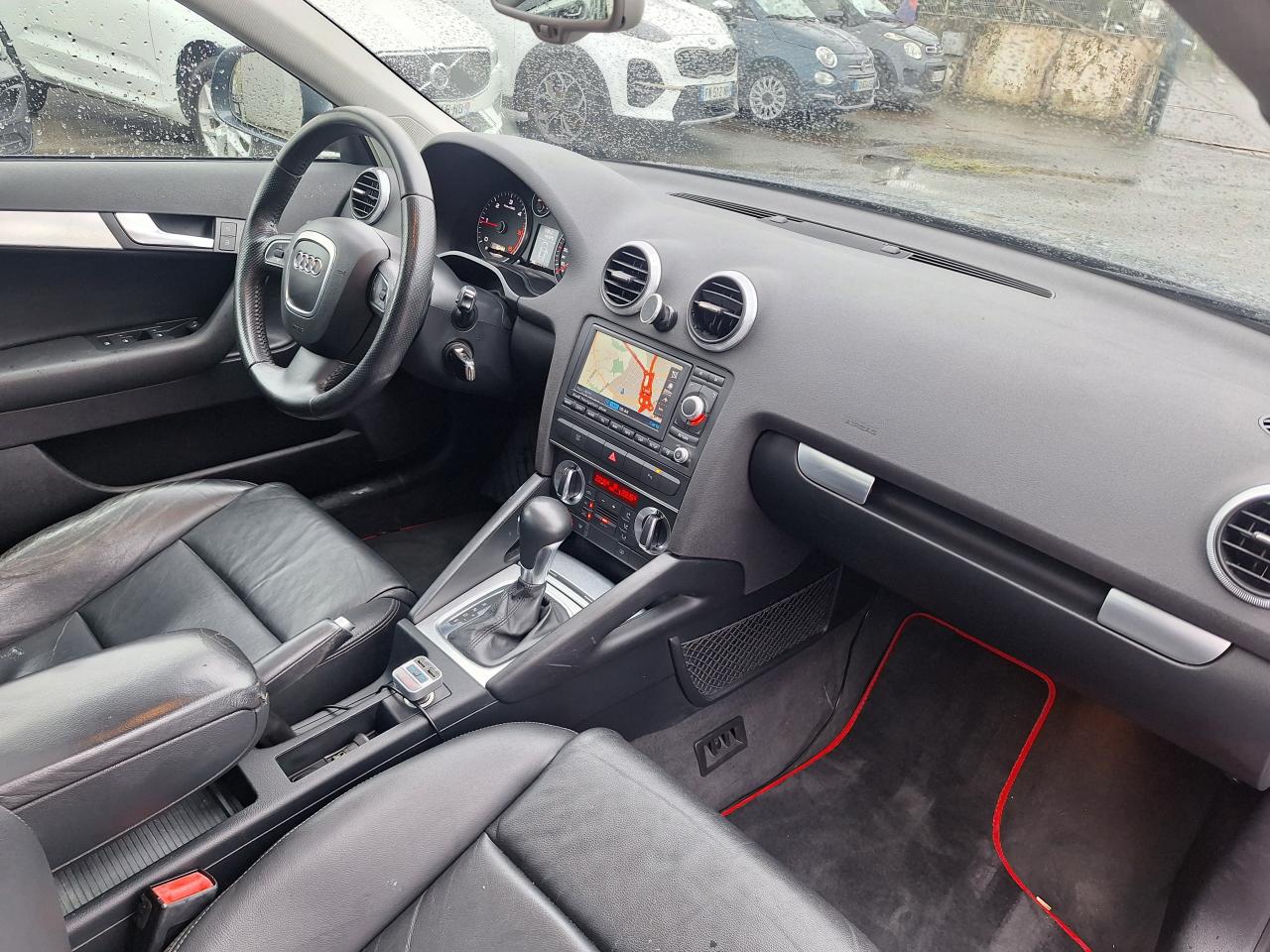 3ème feu stop arrièreABS (Antiblocage de roues)Accoudoir central avant, avec vide-poches relevable et inclinaison réglableAide au stationnement arrièreAirbags (conducteur, passager avant, airbag de tête)Airbags (conducteur, passager avant, airbag latéral, airbag de tête)Antipatinage ASR : empêche le patinage des roues motrices ; assure une motricité optimaleApplications décoratives en aluminium MédialApplications décoratives sur les portières, différentes selon la finition choisieAppuie-tête à toutes les places, actifs à l'avant ; réglables à l'avant et à l'arrièreAudi Backguard, en cas de collision arrière, la conception du siège permet l'amortissement du haut du corps et le soutien plus précoce de la têteAvertisseur ''2 tons''Baguettes de protection latérales couleur carrosserieBaguettes de seuil de portes avec inserts en aluminium et inscription AudiBanquette arrière rabattable 1/3-2/3BAS : amplificateur électronique de freinage d'urgenceBoîte à gants grand volume côté passager avant, éclairéeCache-bagagesCarrosserie galvanisée, autoportante, soudée au groupe plancherCatadioptres de portière passifsCeintures de sécurité trois points à enrouleur à toutes les placesChâssis “Sport”Climatisation automatique Confort avec réglage asservi à la position du soleilColonne de direction de sécuritéCommande des feux pour feux de stationnement, feux de route, projecteurs antibrouillards et feu arrière de brouillardConsole centrale avec commandes du chauffage et vide-pochesCrochets pour sacs à gauche et à droite dans le coffreDétecteur d'occupation des sièges avantDétecteur de pluie et allumage automatique des projecteursDéverrouillage du coffre par touche assistée électriquement, commande supplémentaire pour déverrouiller le coffre depuis la place conducteurDirection assistée électromécanique, assistance asservie à la vitesseEBV : Répartiteur électronique de freinageEclairage blanc, réglable, sur les instruments ; éclairage rouge sur les commandes et le tableau de la climatisationEclairage intérieur à extinction temporisée et contacteurs sur toutes les portièresEcrous antivolEDS (blocage électronique de différentiel)Essuie-glace arrière avec commande de lavage-balayage automatiqueEssuie-glace deux vitesses avec commande automatiqueFeux arrière rouges, feu de recul blanc, avec feu arrière de brouillardFreins à disques à l'avant et à l'arrière, ventilés à l'avantHabillage de portières avec partie centrale en tissu et accoudoir intégréIndicateur de température extérieureInscriptions sur le capot de coffre. À gauche : A3, au centre : anneaux Audi, à droite : identification du modèleInstrumentation à éclairage réglableJantes en aluminium coulé style 5 branches, 7,5 J x 17”, avec pneus 225/45 R 17.Lave-phares haute pressionLunette arrière dégivrante, avec minuterieMiroir de courtoisie côté conducteur et passagerMoquetteOeilletons de fixation dans le coffreOutillage de bordPack EclairagePack EclairagePack EclairagePack RangementPare-chocs dans la couleur de la carrosseriePare-soleil gauche et droite rabattables et orientables avec miroir de courtoisie éclairé et occultable, troisième pare-soleil rabattable au-dessus du rétroviseur intérieurPare-soleil pour la lunette arrièrePare-soleil pour lunette arrière rabattable manuellementParking System : système acoustique d'aide au stationnement arrièrePatères sur les montants de pavillon centraux, 2 patèresPoignées de maintien, quatre, encastrées dans le pavillon, rabattables avec amortisseurPoignées de portières affleurantes dans la couleur de carrosseriePommeau et soufflet de levier de vitesse en cuir, anneau décoratif style aluminiumPorte-boissons avant avec jalousie, double, sur le tunnel centralPréparation pour téléphone 2 W BluetoothPrise de courant à l'avant, avec vide-poches sur la console centraleProgramme de stabilité électronique (ESP)Projecteurs antibrouillard ellipsoïdaux intégrés au bouclier avantProjecteurs antibrouillard halogène AVProjecteurs au Xénon Plus, phares à décharge pour feux de croisement et feux de route inclaunt lave-phare et réglage automatique dynamique du site des pharesProjecteurs halogènes à surfaces libres sous vitre transparente, feux diurnes, réglage électrique du site des phares et commande de feu de stationnementProtection anticollision latérale dans les portières, constituée de profilés d'aluminium rigidesProtection antidémarrage électroniqueProtection durable sous le plancher et dans les passages de roueRadio Symphony, avec changeur 6 CD en façade et compatibilité MP3,Régulateur de vitesseRepose-pied à côté de la pédale d'embrayageRéservoir situé dans une zone protégéeRétroviseur intérieur jour/nuit dans la couleur du ciel de pavillonRétroviseurs extérieurs avec rappels de clignotant à diodes, réglables électriquement, boîtiers dans la couleur de la carrosserie, miroir convexe côté passagerRoue de secours temporaireSellerie cuir Vienna, partie centrale et bourrelets latéraux des sièges ainsi qu'appuie-têtes en cuirSiège conducteur réglable en hauteurSiège passager avant réglable en hauteur manuellementSiège passager réglable en hauteurSièges avant avec position avant/arrière et inclinaison du dossier réglables manuellement ; appuie-têtes réglables et ceintures réglables en hauteurSièges avant Sport avec bourrelets latéraux enveloppant pour un meilleur maintien dans les viragesSièges avant Sport en cuir, partie centrale et bourrelets latéraux des sièges ainsi qu'appuie-tête en cuir ViennaSignal sonore pour oubli d'extinction des feux ; éclairage des instruments réglable en continuSingleframe : encadrement décoratif chromé sur la calandre avec anneaux Audi anodisés au centreSite des phares réglable manuellementSoft Touch : Assistance électrique permettant un déverrouillage sans effort du capot de coffreSortie d'échappement visible, do