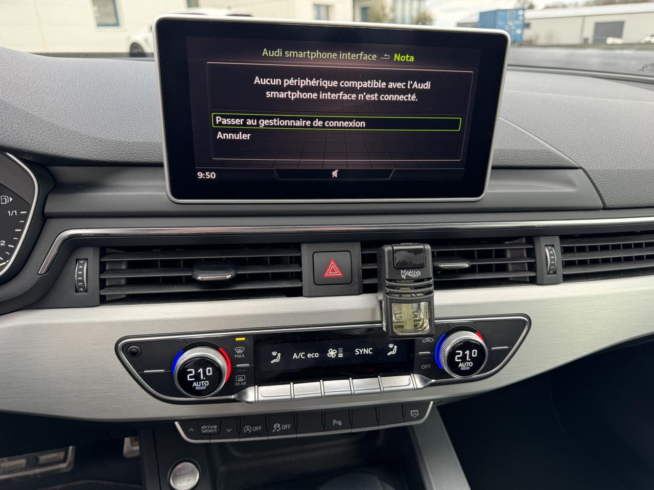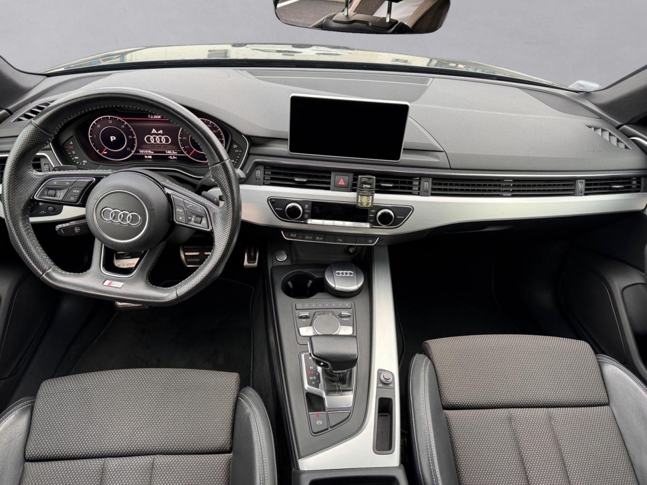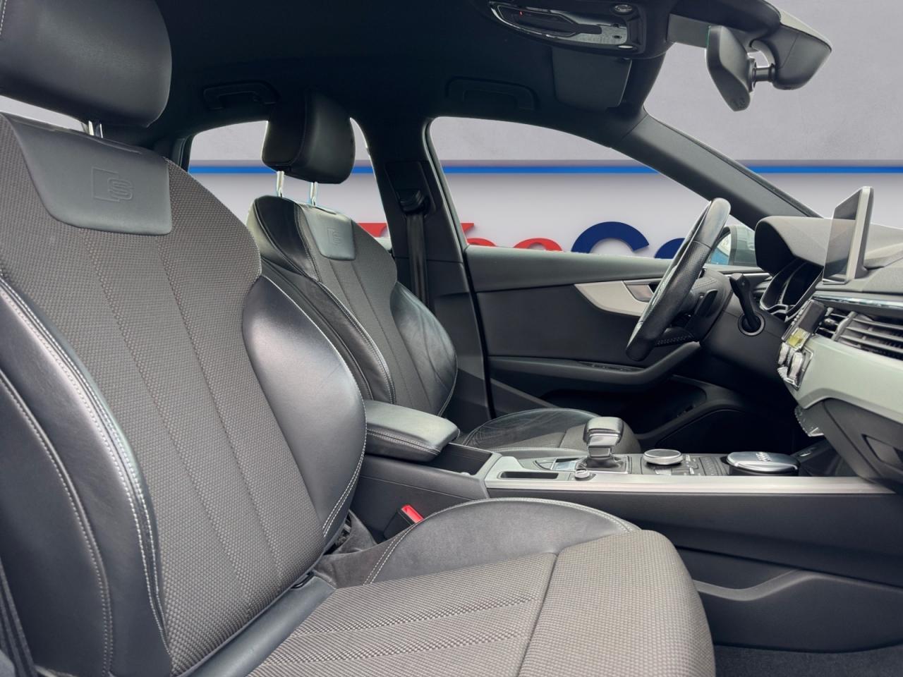4 oeilletons de fixation dans le coffreAccoudoir central confort à l'avant avec inclinaison réglable et coulissant en longueurAffichage du contrôle de la pression des pneumatiquesAirbags grand volume pour le conducteur et le passagerAirbags latéraux à l'avant et système d'airbags de têteAllume cigare et cendrierAntipatinage ASR pour une motricité optimale, empêche le patinage des roues motricesApplications décoratives en aluminium brossé matAppuis-tête réglables en hauteurAudi connect "Sécurité et Service"Audi connect avec une carte SIM de données intégréeAudi Drive SelectAudi Music InterfaceAudi parking system plus : signal acoustique et visuel d'aide au stationnement avant et arrière par pictogrammes sur l'écranAudi pre sense cityAudi smartphone interfaceAudi Sound SystemAudi virtual cockpitBlocage électronique de différentiel (EDS)Boîte à gants éclairéeBoîte de vitesses S tronic séquentielle à 7 rapports à double embrayage avec commande électrohydrauliqueCalandre en gris crépuscule mat, lamelles chroméesCapot de coffre à ouverture automatique lors du déverrouillage du coffre par la télécommande, par la touche située sur la portière ou par actionnement de la touche douce sur le capot de coffre. Fermeture manuelleCatadioptres de portière passifsCeintures de sécurité, automatiques à trois points pour tous les sièges, contrôle de port de ceinture à l'avant, couleur assortie à celle de l'habitacleChâssis DynamiqueCiel de pavillon en tissu noirClimatisation automatique confort 3 zonesColonne de direction de sécurité, contient un système mécanique de déplacement avec fonction d'amortissement qui complète le potentiel de sécurité de la ceinture et de l'airbagDésactivation de l'airbag passager (désactive aussi l'airbag latéral passager)Détecteur de pluie et allumage automatique des projecteursDiffuseur arrière en gris crépuscule mat avec baguette horizontale chroméeDirection assistée électromécaniqueDispositif anti-erreur de carburantDossier de la banquette arrière rabattable et réglable 40/20/40Eclairage d'ambiance de la console centraleEclairage de coffreEcrous antivolEmblême S line sur les ailes avantESC (contrôle électronique de stabilisation)Feux arrière rouges, avec feux de recul blancs et feux de brouillard arrière intégrés, feux de plaque arrière à LED ; incluant troisième feu stop surélevéFixation pour sièges enfants ISOFIX et Top Tether pour les places arrière extérieuresFixation pour sièges enfants ISOFIX sur le siège passager AV avec commande de désactivation d'airbag passager AVFrein de stationnement electromécaniqueFreins à disque à l'avantGrilles d'entrée d'air latérales en noir titane mat avec applications chroméesIdentification du modèle/technologie sur le capot de coffre ; sur demande sans identification du modèle à l'arrièreInterface BluetoothJantes en aluminium coulé style 5 branches doubles en étoile, 8 J x 18” avec pneus 245/40 R 18Keyless go : système d'autorisation de démarrage du véhicule sans l'utilisation de la cléLecteur de carte SDXC supplémentaireLimitateur et régulateur de vitesseMMI Navigation plusMMI radio plus, inclut radios AM/FM, lecteur de cartes SDCX, prise d'entrée AUX, lecteur CD, interface USB avec fonction de charge, commande MMI et 8 haut-parleurs passifs (4 à l'avant + 4 à l'arrière)Module de pavillon avant et arrière incluant spots de lecture avec commande capacitive à l'avantMoulures de seuil avec insert en aluminium dans les ouvertures des portières avantMoulures de seuil de portes avec inscription SOutillage de bord et cricPack Brillance ExtérieurPare-soleilPommeau du levier/sélecteur de vitesses en cuir perforé noirPréparation de navigationPréparation pour crochet d'attelageProtection antidémarrage électronique, intégrée à la gestion du moteur, activation automatique par la clé du véhiculeRecommandation de repos qui analyse le comportement routier au moyen de différents capteursRéglage d'appuis lombaires électriques sur 4 plans pour sièges avantRéservoir AdBlue de 12 LRétroviseur intérieur électrochromeRétroviseurs extérieurs avec clignotants à LED intégrésRétroviseurs extérieurs réglables et escamotables électriquement, dégivrants des deux côtés et buses de lave-glaces dégivrantesRoue de secours temporaireSécurité enfants électrique pour portes arrièresSellerie mixte en tissu Séquence et cuir avec estampillage S sur le dossier des sièges avantSièges avant réglables manuellement en hauteur et en profondeurSièges Sport à l'avantSortie d'échappement monoflux avec 1 sortie à gaucheSorties d'échappement chroméesStyle aluminium à l'intérieur éléments sur le bouton d'éclairage, la commande de la climatisation, la commande MMI, les diffuseurs d'air, le bouton de réglage des rétroviseurs, les lève-vitresSystème Start/ Stop avec récupération d'énergie de freinageTapis complémentaires à l'avant et à l'arrièreTriangle de pré-signalisationTrousse de secoursVide-pochesVitres athermiquesVolant 3 branches multifonction plus en cuir badgé S line avec méplat et poignées de volant en cuir perforé, avec palettes de changement de vitesseXénon plus incluant réglage automatique du site des phares et feux diurnes par bandeau de LED (n'inclut pas les LED à l'arrière et les lave-phares)