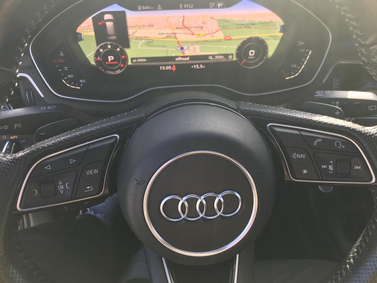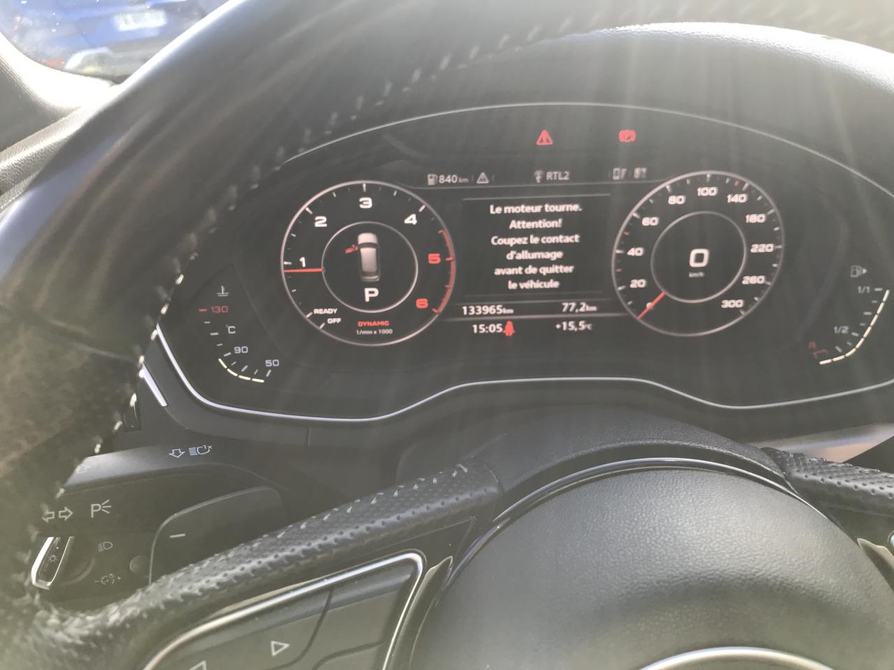 4 oeilletons de fixation dans le coffreAccoudoir central confort à l'avant avec inclinaison réglable et coulissant en longueurAffichage du contrôle de la pression des pneumatiquesAirbags grand volume pour le conducteur et le passagerAirbags latéraux à l'avant et système d'airbags de têteAllume cigare et cendrierAntipatinage ASR pour une motricité optimale, empêche le patinage des roues motricesApplications décoratives en aluminium brossé matAppuis-tête réglables en hauteurAudi connect "Sécurité et Service"Audi connect avec une carte SIM de données intégréeAudi Drive SelectAudi Music InterfaceAudi parking system plus : signal acoustique et visuel d'aide au stationnement avant et arrière par pictogrammes sur l'écranAudi pre sense cityAudi smartphone interfaceAudi Sound SystemAudi virtual cockpitBlocage électronique de différentiel (EDS)Boîte à gants éclairéeCache-bagages électriqueCalandre en gris crépuscule mat, lamelles chroméesCatadioptres de portière passifsCeintures de sécurité, automatiques à trois points pour tous les sièges, contrôle de port de ceinture à l'avant, couleur assortie à celle de l'habitacleChâssis “Sport”Châssis DynamiqueCiel de pavillon en tissu noirClimatisation automatique confort 3 zonesCoffre à ouverture et fermeture électriqueColonne de direction de sécurité, contient un système mécanique de déplacement avec fonction d'amortissement qui complète le potentiel de sécurité de la ceinture et de l'airbagDésactivation de l'airbag passager (désactive aussi l'airbag latéral passager)Détecteur de pluie et allumage automatique des projecteursDiffuseur arrière en gris crépuscule mat avec baguette horizontale chroméeDirection assistée électromécaniqueDispositif anti-erreur de carburantDossier de la banquette arrière rabattable et réglable 40/20/40Double éclairage de coffreEclairage d'ambiance de la console centraleEclairage du hayonEcrous antivolEmblême S line sur les ailes avantESC (contrôle électronique de stabilisation)Feux arrière rouges, avec feux de recul blancs et feux de brouillard arrière intégrés, feux de plaque arrière à LED ; incluant troisième feu stop surélevéFilet de séparation vertical amovibleFixation pour sièges enfants ISOFIX et Top Tether pour les places arrière extérieuresFixation pour sièges enfants ISOFIX sur le siège passager AV avec commande de désactivation d'airbag passager AVFrein de stationnement electromécaniqueFreins à disque à l'avantGrilles d'entrée d'air latérales en noir titane mat avec applications chroméesIdentification du modèle/technologie sur le capot de coffre ; sur demande sans identification du modèle à l'arrièreInterface BluetoothJantes en aluminium coulé style 5 branches doubles en étoile, 8 J x 18” avec pneus 245/40 R 18Keyless go : système d'autorisation de démarrage du véhicule sans l'utilisation de la cléLecteur de carte SDXC supplémentaireLimitateur et régulateur de vitesseMMI Navigation plusMMI radio plus, inclut radios AM/FM, lecteur de cartes SDCX, prise d'entrée AUX, lecteur CD, interface USB avec fonction de charge, commande MMI et 8 haut-parleurs passifs (4 à l'avant + 4 à l'arrière)Module de pavillon avant et arrière incluant spots de lecture avec commande capacitive à l'avantMoulures de seuil avec insert en aluminium dans les ouvertures des portières avantMoulures de seuil de portes avec inscription SOutillage de bord et cricPack Brillance ExtérieurPare-soleilPlancher de chargement réversiblePommeau du levier/sélecteur de vitesses en cuir perforé noirPréparation de navigationPréparation pour crochet d'attelagePrise 12V dans le coffreProtection antidémarrage électronique, intégrée à la gestion du moteur, activation automatique par la clé du véhiculeRampes de pavillon en aluminium poliRecommandation de repos qui analyse le comportement routier au moyen de différents capteursRéglage d'appuis lombaires électriques sur 4 plans pour sièges avantRéservoir AdBlue de 12 LRétroviseur intérieur électrochromeRétroviseurs extérieurs avec clignotants à LED intégrésRétroviseurs extérieurs réglables et escamotables électriquement, dégivrants des deux côtés et buses de lave-glaces dégivrantesRoue de secours temporaireSécurité enfants électrique pour portes arrièresSellerie mixte en tissu Séquence et cuir avec estampillage S sur le dossier des sièges avantSièges avant réglables manuellement en hauteur et en profondeurSièges Sport à l'avantSorties d'échappement : visible monoflux, deux sorties à gaucheSorties d'échappement chroméesStyle aluminium à l'intérieur éléments sur le bouton d'éclairage, la commande de la climatisation, la commande MMI, les diffuseurs d'air, le bouton de réglage des rétroviseurs, les lève-vitresSystème Start/ Stop avec récupération d'énergie de freinageTapis complémentaires à l'avant et à l'arrièreTriangle de pré-signalisationTrousse de secoursVide-pochesVitres athermiquesVolant 3 branches multifonction plus en cuir badgé S line avec méplat et poignées de volant en cuir perforéXénon plus incluant réglage automatique du site des phares et feux diurnes par bandeau de LED (n'inclut pas les LED à l'arrière et les lave-phares)