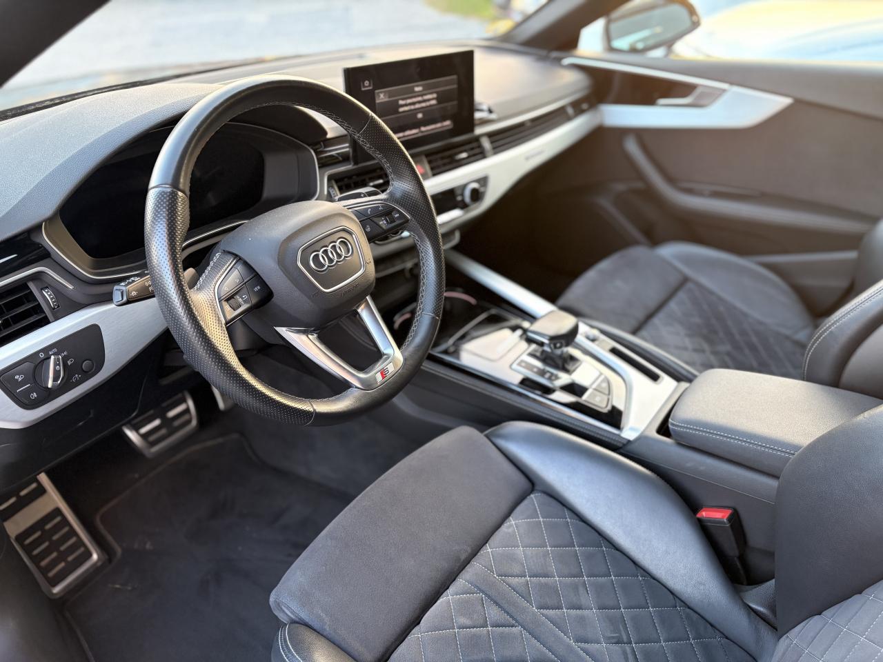 Accoudoir central confort à l'avant avec inclinaison réglable et coulissant en longueurAffichage du contrôle de la pression des pneumatiquesAirbags grand volume pour le conducteur et le passagerAirbags latéraux à l'avant et système d'airbags de têteAntipatinage ASR pour une motricité optimale, empêche le patinage des roues motricesAppel d’urgence et service Audi connect incluant commande du véhiculeApplications décoratives en aluminium brossé matAppui lombaire à 4 axes pour les sièges avant, réglage électrique, horizontal et verticalAppuie-tête à l'avant (sans réglages de distance de l'appuie-tête)Audi connect avec carte SIM intégrée (e-SIM) et licence d'utilisation pour 3 ansAudi Drive SelectAudi phone box avec charge du téléphone par induction (standard Qi)Audi pre sense cityAudi smartphone interface (Apple CarPlay ou Google Android Auto)Audi sound system : 10 haut-parleurs incluant un haut-parleur central et un subwoofer ; amplificateur à 6 canaux avec une puissance totale de 180 wattsAudi virtual cockpit plusBanquette 3 places avec appuie-tête en L réglables en hauteurBlocage électronique de différentiel (EDS)Boîte de vitesses S tronic séquentielle à 7 rapports à double embrayage avec commande électrohydrauliqueBoitiers de rétroviseurs extérieurs noir brillantCâbles de recharge pour téléphone portable, compatibles iPhone et AndroidCaméra multifonctionCeintures de sécurité automatiques à trois points pour tous les sièges et contrôle de port de ceinture à l’avantChâssis “Sport”Ciel de pavillon en tissu noirClé Audi connectClé confort (sans safelock)Climatisation automatique confort 3 zonesColonne de direction de sécurité, contient un système mécanique de déplacement avec fonction d'amortissement qui complète le potentiel de sécurité de la ceinture et de l'airbagCommande de désactivation d'airbag passager avantContrôle électronique de stabilité (ESC)Détecteur de pluie et allumage automatique des projecteursDiffuseur avec finition symétrique des sorties d’échappement de style en chrome à gauche et à droiteDirection assistée électromécaniqueDispositif anti-erreur de carburantDossier de banquette arrière rabattable en trois parties 40 : 20 : 40 ou complètementEcrous antivolEléments de l'habitacle en similicuirFinition extérieure S LineFixation pour sièges enfants ISOFIX et Top Tether pour les sièges extérieurs arrière support normalisé pour une fixation pratique des sièges enfants ISOFIXFonction massage des sièges avantFrein de stationnement électromécanique : comprend la fonction de frein de stationnement à l'arrêt, assistance de démarrage avec désactivation automatique lors du démarrage et fonction de freinage d'urgence sur les quatre rouesHayon de coffre à ouverture et fermeture électriquesIdentification du modèle selon le nouveau marquage de puissanceInterface BluetoothInterfaces de charge USB pour les passagers arrièreJantes en aluminium coulé Audi Sport en style étoile à 10 branches, polies brillant, 8,5 J x 19 avec pneus 255/35 R 19KEYLESS-GO : système de démarrage sans cléMMI navigation plus avec MMI touchMotorisations avec technologie hybride léger (Mild Hybrid)Moulures de seuil à l'avant avec insert en aluminium et inscription S, éclairéesPack Assistance PlusPack Eclairage d'ambiancePack Eclairage intérieurPack Esthétique NoirPack Rangement et coffrePare soleil avant conducteur et passagerPédales et repose-pied en acier inoxydablePeinture vernie Blanc ibisPhares Matrix LED, feux arrière à LEDPréparation pour crochet d'attelageProtection antidémarrage électronique, intégrée à la gestion du moteur, activation automatique par la clé du véhiculeQuattro : transmission intégrale permanente avec répartition asymétrique et dynamique de coupleRéception radio numérique, réception des signaux DAB, DAB+ et DMB AudioRecommandation de reposRécupération d'énergieRégulateur et limiteur de vitesseRéservoir AdBlue 24LRétroviseur intérieur à position nuit automatique, sans encadrementRétroviseurs extérieurs réglables et escamotables électriquement, jour/nuit automatique, dégivrants des deux côtés et buses de lave-glaces dégivrantesSécurité enfantsSellerie Microfibre Dinamica / Cuir combinés avec logo "S" dans le dossier des sièges avantSièges avant chauffantsSièges avant réglables électriquementSièges avant réglables manuellement en hauteur et en profondeurSièges Sport S à l'avantSurfaces d’accentuation façon verre en noirSystème Start/Stop désactivableTapis complémentaires à l'avant et à l'arrièreTire Mobility System : compresseur et produit de colmatage en cas de crevaisonVide-poches dans la contre-porte côté passager avant et aux places arrièreVitres arrières surteintées (vitrage privacy)Vitres athermiquesVolant 3 branches multifonction plus en cuir badgé S line avec méplat et poignées de volant en cuir perforé, avec palettes de changement de vitesseVolant réglable manuellement en hauteur et en profondeur