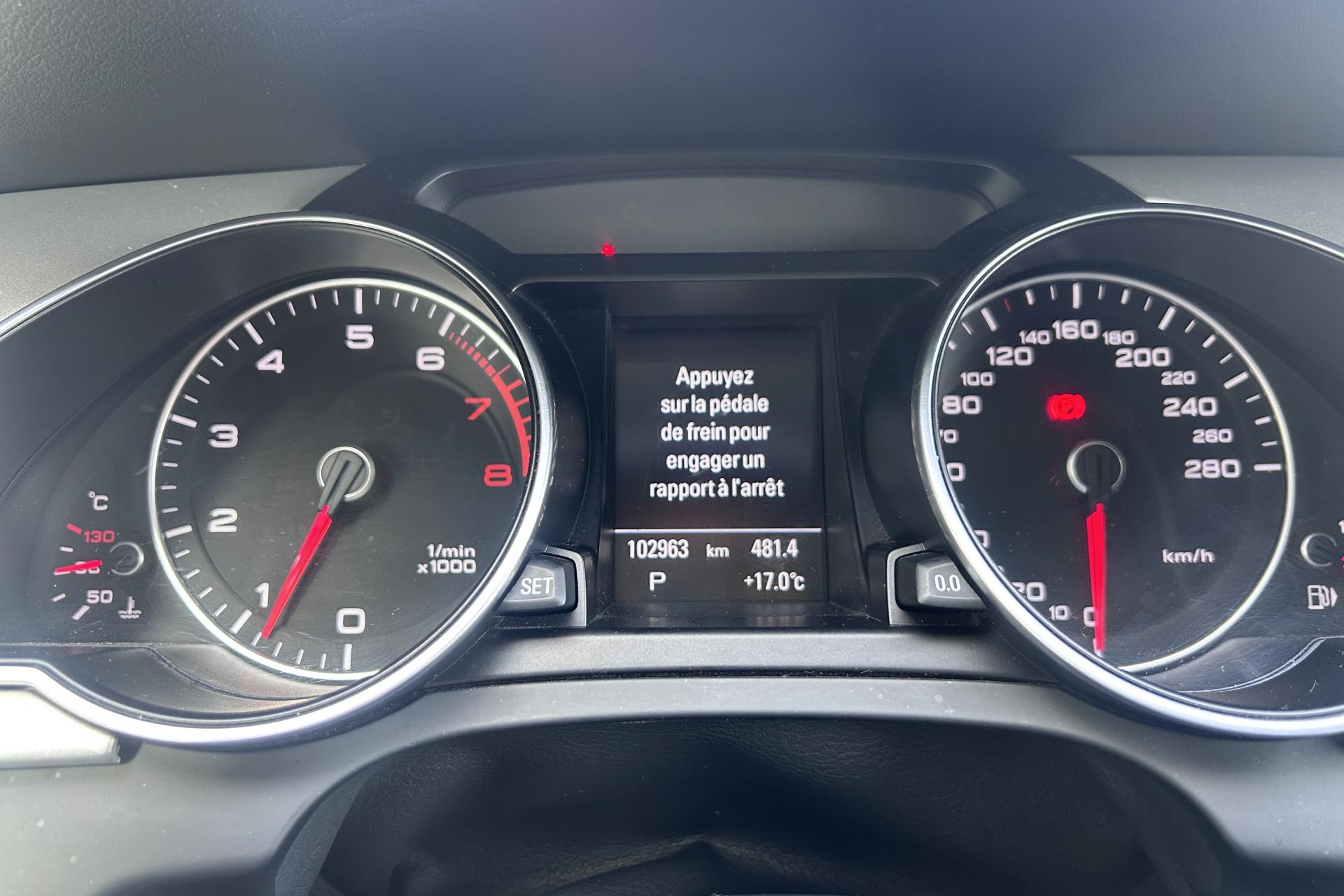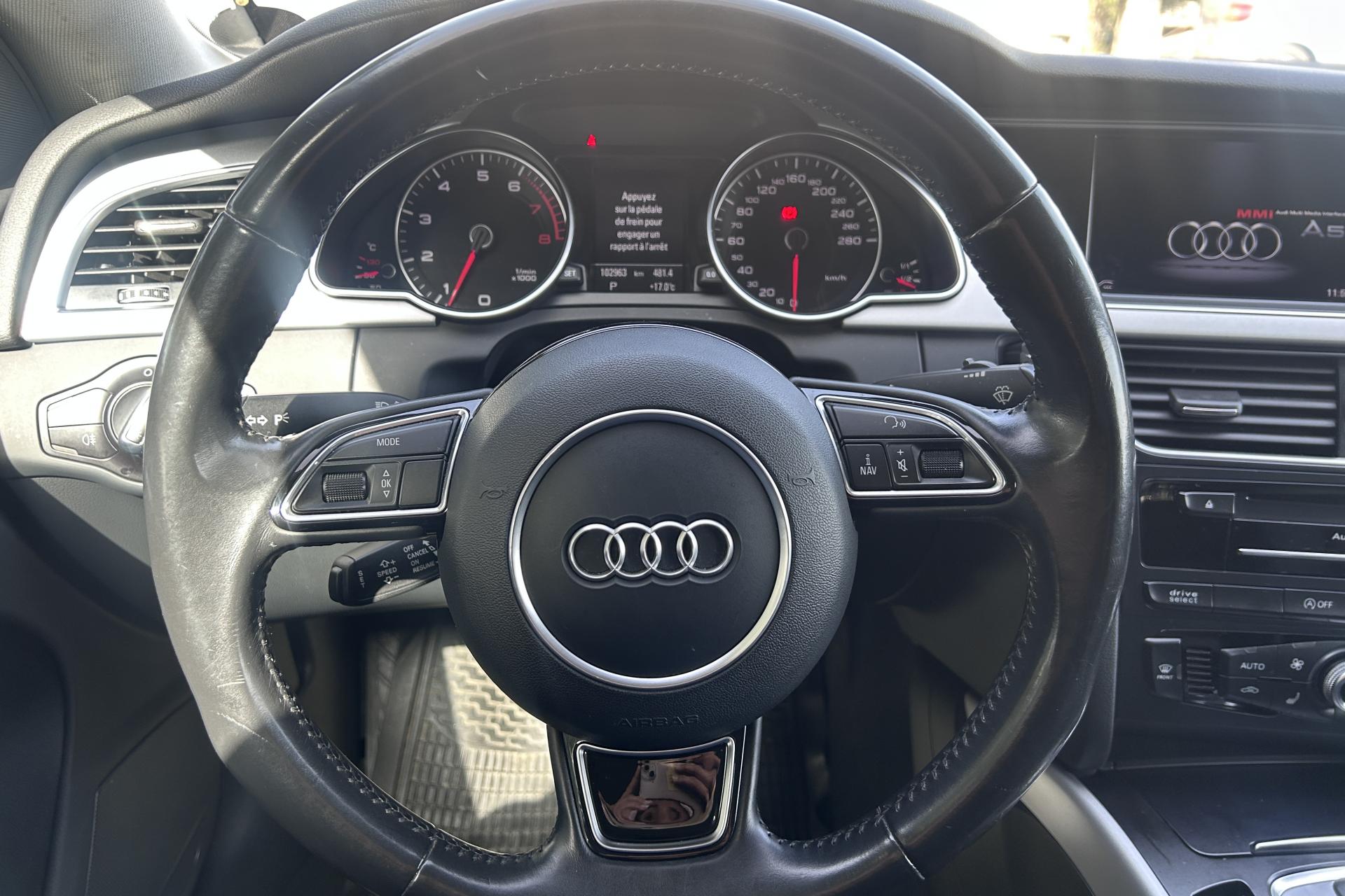 Accoudoir central avant avec vide-poches et 2 prises 12 V dans la console centraleAirbags grand volume pour conducteur et passager avant avec détecteur de la position d'assise ; airbag adaptatif pour le conducteur et passager avantAirbags latérauxAllume-cigare intégré dans le cendrier avantAntipatinage ASR pour une motricité optimale, empêche le patinage des roues motricesApplications en aluminium Trigon sur contre portes et console centraleAppuie-têtes réglables à l'avant et à l'arrièreAudi Music InterfaceAutoradio Concert lecteur CD et lecteur cartes SDHCAvertisseur deux tons avec commande au centre du volantBanquette arrière 3 placesBlocage électronique de différentiel EDS, aide au démarrage intervenant jusqu'à une vitesse d'environ 100 km/h, freinant automatiquement les roues motrices sur route glissante et inégalement adhérenteCalandre Singleframe avec lamelles horizontales noires brillantesCapot de coffre à déverrouillage par la télécommande ou par actionnement de la touche douce sur le capot du coffreCarrosserie galvaniséeCeintures de sécurité, automatiques à 3 points pour les 5 places, contrôle de port de ceinture, couleur assortie à celle de l'habitacleCendrier dans la console centrale à l'avant et à l'arrièreChâssis DynamiqueCiel de pavillon en tissu, selon la couleur choisie, argent lunaire, noir ou beige pashminaClimatisation automatiqueColonne de direction de sécuritéContact d'allumage électronique ; clé de contact pouvant mémoriser différentes données d'entretienContrôle de pression des pneus, vérifie durant la marche la pression de chacune des roues en serviceContrôle électronique de stabilisation ESC, relie ABS, ASR et EDS à ses propres capteursCric dans le coffreDésactivation de l'airbag passager (désactive aussi l'airbag latéral passager)Détecteur de pluie et allumage automatique des projecteursDirection asservie à la vitesse servotronicDossier des sièges arrière rabattable séparément 2/3 - 1/3, avec déverrouillage à distance des dossiers depuis le coffreEclairage intérieur à extinction temporisée et contacteurs sur toutes les portières ; éclairage coffre, conducteur passager avant et arrière, deux spots de lecture à l'avant, éclairage intérieur de l'arrière, miroir de cEcran 6,5” monochrome sur le tableau de bord pour l'affichage des fonctions radio, climatisation et menu du véhicule, ainsi que de l'heureEcrous antivolEntourages de vitre en aluminium, revêtement noir brillant sur les montants de pavillon centraux et les triangles des portières arrièreÉtui à lunettes, dans le module d'éclairage intérieur avant, au-dessus du rétroviseur intérieurFonction Start/StopFrein de stationnement electromécaniqueIndicateur d'usure des disques à l'avant, affichage sur le système d'information du conducteurIndicateur de température extérieure dans le système d'information du conducteurInstrumentation à éclairage réglable, tachymètre électronique avec compteur kilométrique totalisateur et journalier, compte-tours, horloge, indicateur de température du liquide de refroidissement et jauge de carburantJantes en aluminium coulé style 5 branches structurées, 7,5 J x 17”, avec pneus 225/50 R 17Lave-glace, deux vitesses, réglage d'intermittence sur 4 niveaux, commande de balayage coup par coup, lavage-balayage automatiqueLève-vitres électriques à l'avant et à l'arrière avec protection antipincement et fonction ouverture/fermeture Confort par impulsionLimiteurs d'effort des ceintures de sécurité avantLunette arrière dégivrante avec minuterieOrdinateur de bord couleur et système de contrôle AutocheckOutillage de bord dans le coffreParking System : système acoustique d'aide au stationnement arrièrePhares antibrouillard intégrés dans le pare-chocsPoignées de maintien, amorties, rabattables dans les deux sens, dans le ciel de pavillonPoignées de portières extérieures laquées dans la couleur de carrosserie, poignées cintrées agréables à utiliserPré-équipement attelagePréparation audio Basic Plus : amplificateur 4 canaux, 8 HP, puissance totale 80 WPréparation ISOFIX pour sièges latéraux arrière et siège passager avantPréparation téléphone 2 W bi-bande (D et E), sans support pour adaptateur ni antenne de toit, commande sur volant multifonction, mains libres, interface BluetoothPrétensionneurs des ceintures de sécurité avantProtection antidémarrage électronique, intégrée à la gestion du moteur, activation automatique par la clé du véhiculeQuatre oeilletons de fixation, pour maintenir les bagages et objets dans le coffre, points de suspension pour le filet mixteRangements dans les contre-portes à l'avant avec casier de rangement pour boissons, rangements à l'arrière sur les côtés du siège et dans les garnitures latérales arrièreRéglage d'appuis lombaires électriques sur 4 plans pour sièges avantRégulateur de vitesse électronique actif dès 30 km/h. Inclut fonction de freinage. Affichage de la vitesse paramétrée sur l'écran de l'ordinateur de bordRétroviseur intérieur jour/nuit automatique incluant une bande grise en haut du pare-briseRétroviseurs extérieurs avec clignotant latéral intégré à diodes, réglable électriquement, boîtiers dans la couleur de la carrosserie, miroir asphériqueRétroviseurs extérieurs et buses de lave-glace chauffantsRoue de secours temporaireSellerie tissu ArcadeSideguard, système d'airbags de tête grand formatSièges avant réglables manuellement en hauteur et en profondeurSortie d'échappement visible double, une sortie à gauche et une à droiteStyle aluminium, dans l'habitacle sur les commutateurs d'éclairage, la commande de la climatisation, la commande MMI, les diffuseurs d'air et autour du soufflet et du levier de vitesseSystème d'information du conducteur avec affichage monochromeSystème de freinage à double circuit en diagonale, système antiblocage ABS avec répartiteur de freinage EBV, avec as