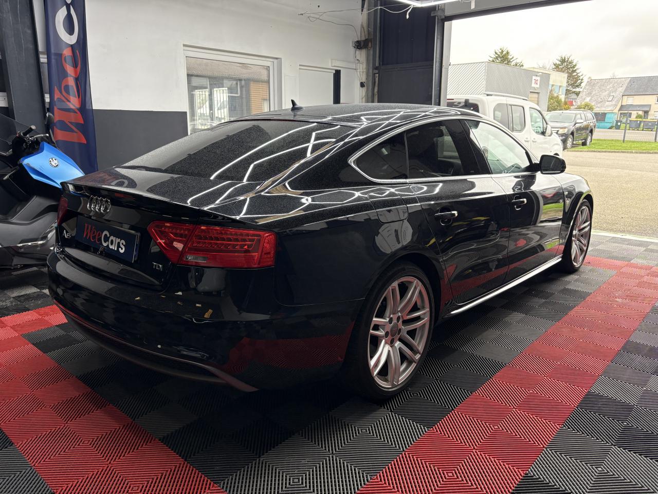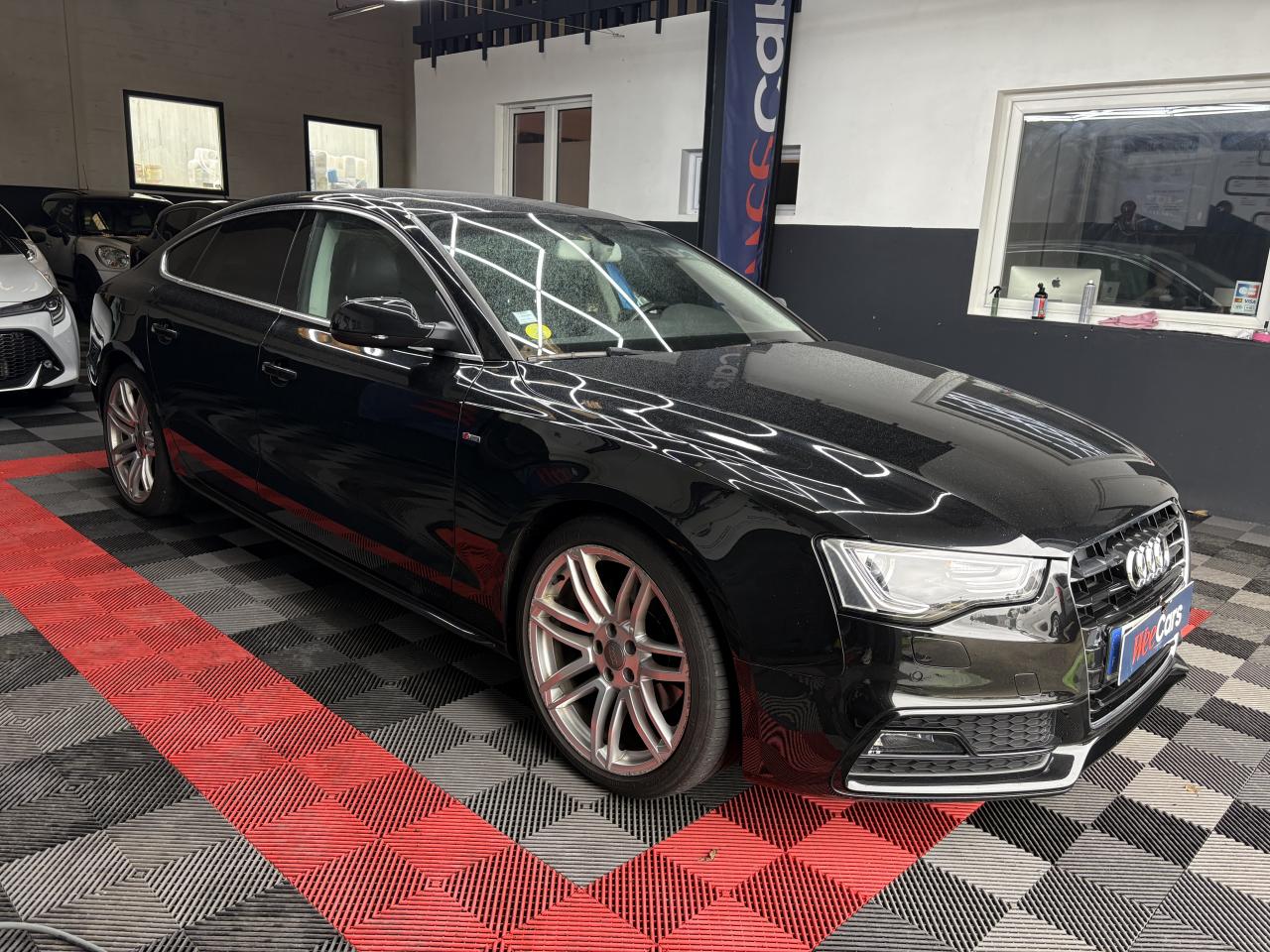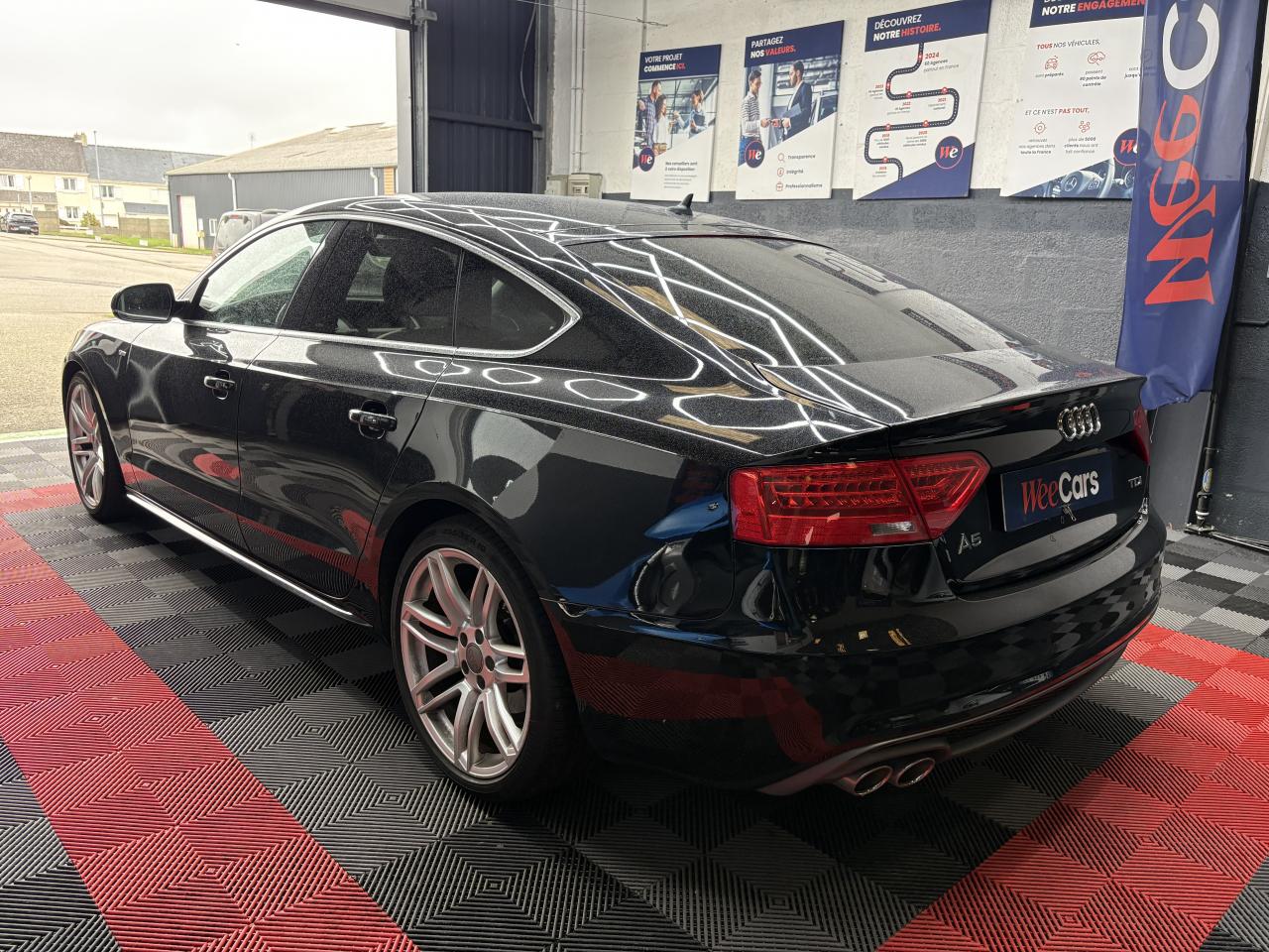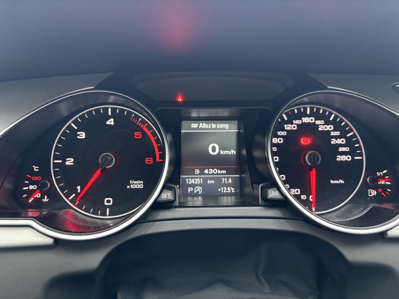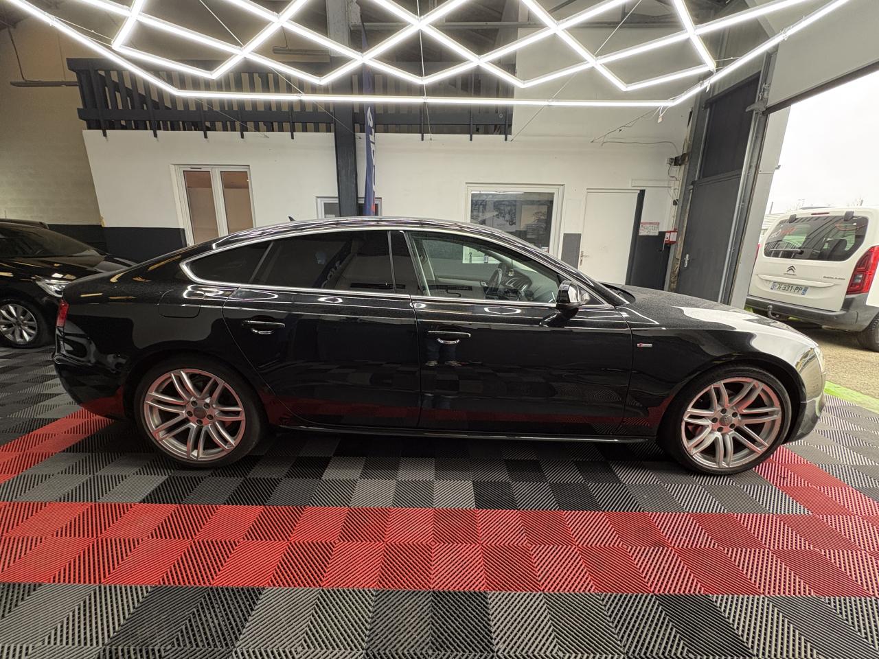 Accoudoir central avant avec vide-poches et 2 prises 12 V dans la console centraleAdvanced Key : système d'autorisation d'accès et de démarrage main libreAirbags grand volume pour conducteur et passager avant avec détecteur de la position d'assise ; airbag adaptatif pour le conducteur et passager avantAirbags latérauxAllume-cigare intégré dans le cendrier avantAntipatinage ASR pour une motricité optimale, empêche le patinage des roues motricesApplications en aluminium Trigon sur contre portes et console centraleAppuie-têtes réglables à l'avant et à l'arrièreAudi Hold Assist : maintient le véhicule à l'arrêt en côte comme en descente, sans limite de temps. Le système est activé par pression sur une touche et permet au conducteur un redémarrage confortable sans actionner le frein à mainAudi Music InterfaceAvertisseur deux tons avec commande au centre du volantBanquette arrière 3 placesBlocage électronique de différentiel EDS, aide au démarrage intervenant jusqu'à une vitesse d'environ 100 km/h, freinant automatiquement les roues motrices sur route glissante et inégalement adhérenteCalandre Singleframe avec lamelles horizontales noires brillantesCapot de coffre à déverrouillage par la télécommande ou par actionnement de la touche douce sur le capot du coffreCarrosserie galvaniséeCeintures de sécurité, automatiques à 3 points pour les 5 places, contrôle de port de ceinture, couleur assortie à celle de l'habitacleCendrier dans la console centrale à l'avant et à l'arrièreChâssis DynamiqueCiel de pavillon en tissu, selon la couleur choisie, argent lunaire, noir ou beige pashminaClimatisation automatique Confort Plus 3 zones à fonctionnalités étendues et affichage numériqueColonne de direction de sécuritéContact d'allumage électronique ; clé de contact pouvant mémoriser différentes données d'entretienContrôle de pression des pneus, vérifie durant la marche la pression de chacune des roues en serviceContrôle électronique de stabilisation ESC, relie ABS, ASR et EDS à ses propres capteursCric dans le coffreDésactivation de l'airbag passager (désactive aussi l'airbag latéral passager)Détecteur de pluie et allumage automatique des projecteursDirection asservie à la vitesse servotronicDossier des sièges arrière rabattable séparément 2/3 - 1/3, avec déverrouillage à distance des dossiers depuis le coffreEclairage intérieur à extinction temporisée et contacteurs sur toutes les portières ; éclairage coffre, conducteur passager avant et arrière, deux spots de lecture à l'avant, éclairage intérieur de l'arrière, miroir de cEcrous antivolEntourages de vitre en aluminium, revêtement noir brillant sur les montants de pavillon centraux et les triangles des portières arrièreÉtui à lunettes, dans le module d'éclairage intérieur avant, au-dessus du rétroviseur intérieurFonction Start/StopFrein de stationnement electromécaniqueGPS AdvancedIndicateur d'usure des disques à l'avant, affichage sur le système d'information du conducteurIndicateur de température extérieure dans le système d'information du conducteurInstrumentation à éclairage réglable, tachymètre électronique avec compteur kilométrique totalisateur et journalier, compte-tours, horloge, indicateur de température du liquide de refroidissement et jauge de carburantJantes Audi Sport en aluminium coulé style 10 branches fines, 8,5 J x 18”, avec pneus 245/40 R 18Lave-glace, deux vitesses, réglage d'intermittence sur 4 niveaux, commande de balayage coup par coup, lavage-balayage automatiqueLève-vitres électriques à l'avant et à l'arrière avec protection antipincement et fonction ouverture/fermeture Confort par impulsionLimiteurs d'effort des ceintures de sécurité avantLunette arrière dégivrante avec minuterieOrdinateur de bord couleur et système de contrôle AutocheckOutillage de bord dans le coffrePack EclairagePack RangementParking System Plus avec caméra de recul : signal acoustique et visuel d'aide au stationnement avant et arrière avec caméra de recul permettant de visualiser l'arrière du véhicule sur l'écran couleur du MMI.Phares antibrouillard intégrés dans le pare-chocsPoignées de maintien, amorties, rabattables dans les deux sens, dans le ciel de pavillonPoignées de portières extérieures laquées dans la couleur de carrosserie, poignées cintrées agréables à utiliserPré-équipement attelagePréparation ISOFIX pour sièges latéraux arrière et siège passager avantPréparation téléphone 2 W bi-bande (D et E), sans support pour adaptateur ni antenne de toit, commande sur volant multifonction, mains libres, interface BluetoothPrétensionneurs des ceintures de sécurité avantProtection antidémarrage électronique, intégrée à la gestion du moteur, activation automatique par la clé du véhiculeQuatre oeilletons de fixation, pour maintenir les bagages et objets dans le coffre, points de suspension pour le filet mixteRangements dans les contre-portes à l'avant avec casier de rangement pour boissons, rangements à l'arrière sur les côtés du siège et dans les garnitures latérales arrièreRéglage d'appuis lombaires électriques sur 4 plans pour sièges avantRégulateur de vitesse électronique actif dès 30 km/h. Inclut fonction de freinage. Affichage de la vitesse paramétrée sur l'écran de l'ordinateur de bordRéservoir avec protection contre les erreurs de ravitaillementRétroviseur intérieur jour/nuit automatique incluant une bande grise en haut du pare-briseRétroviseurs extérieurs avec clignotant latéral intégré à diodes, réglable électriquement, boîtiers dans la couleur de la carrosserie, miroir asphériqueRoue de secours temporaireSellerie, appuie-tête et accoudoir central avant en cuir MilanoSideguard, système d'airbags de tête grand formatSièges avant chauffants : chauffe-dossier et assise y compris partie latérale des siègesSièges avant électriques et conducteur à mémoire 2 combinaison