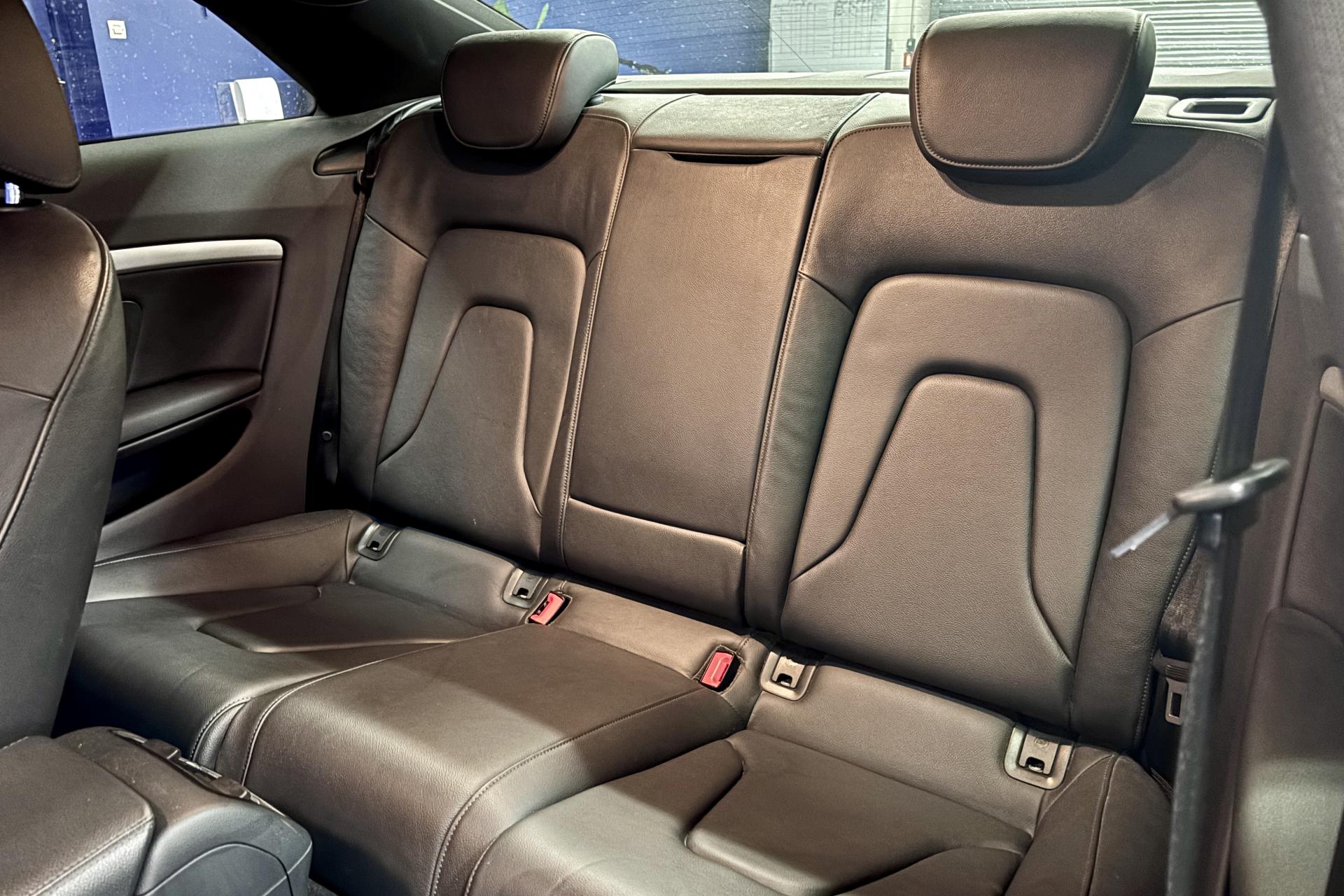 - Sellerie mixte cuir/Alcantara perforé avec logo S line sur le dossier des sièges avant ; parties latérales d'assise et de dossier, appuie-têtes et accoudoir central en cuir, partie centrale d'assise et de dossier, contre-portes en Alcantara. Surpiqûres arge