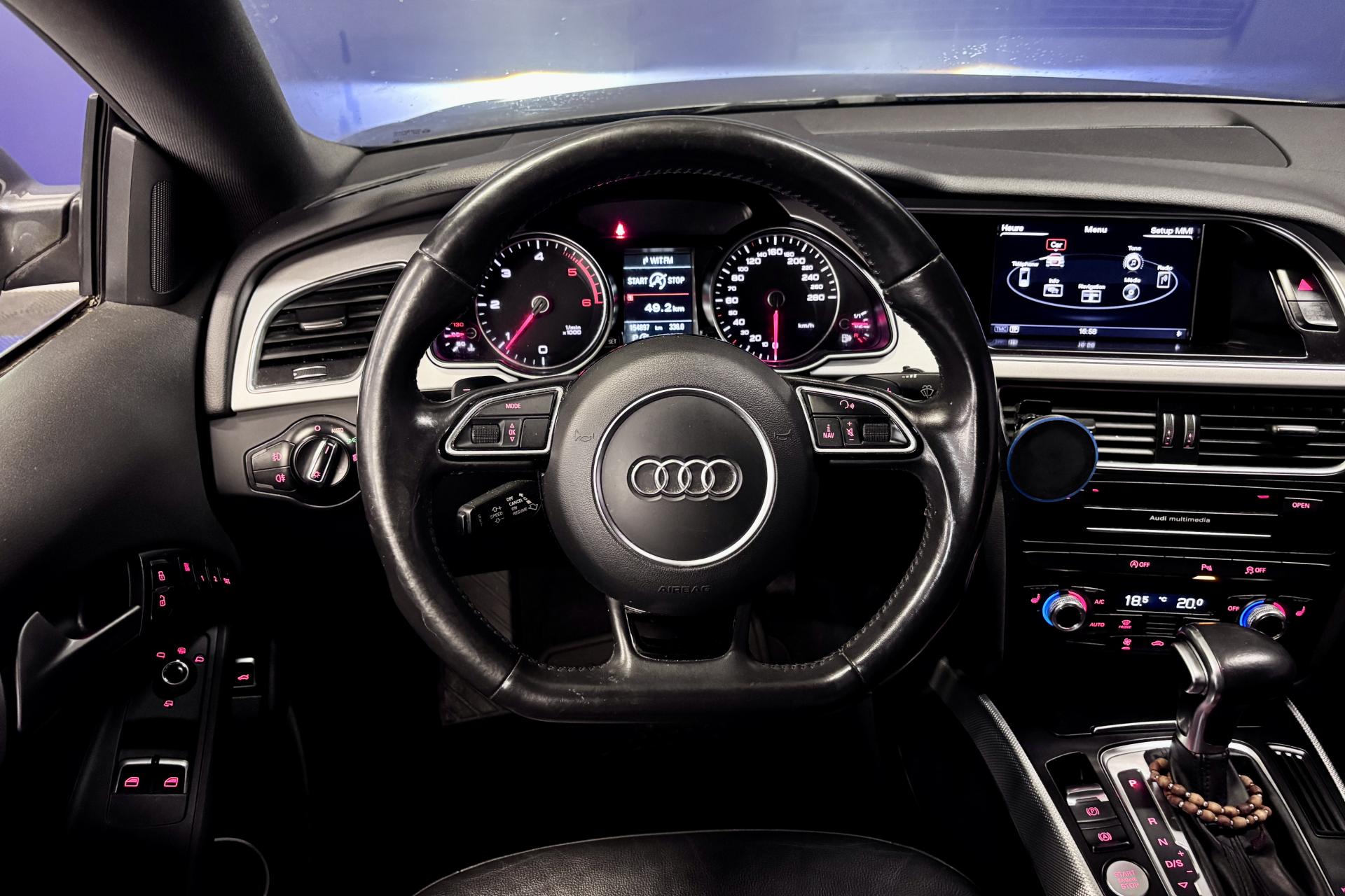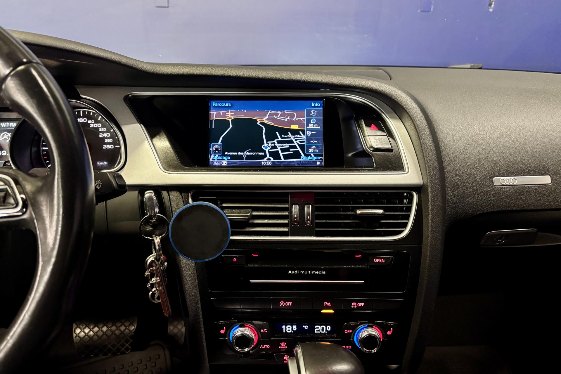 - Système audiophonique Audi : amplificateurs à 6 canaux, 10 HP dont un central dans le tableau de bord et un HP de basse dans la plage arrière; puissance totale 180 W