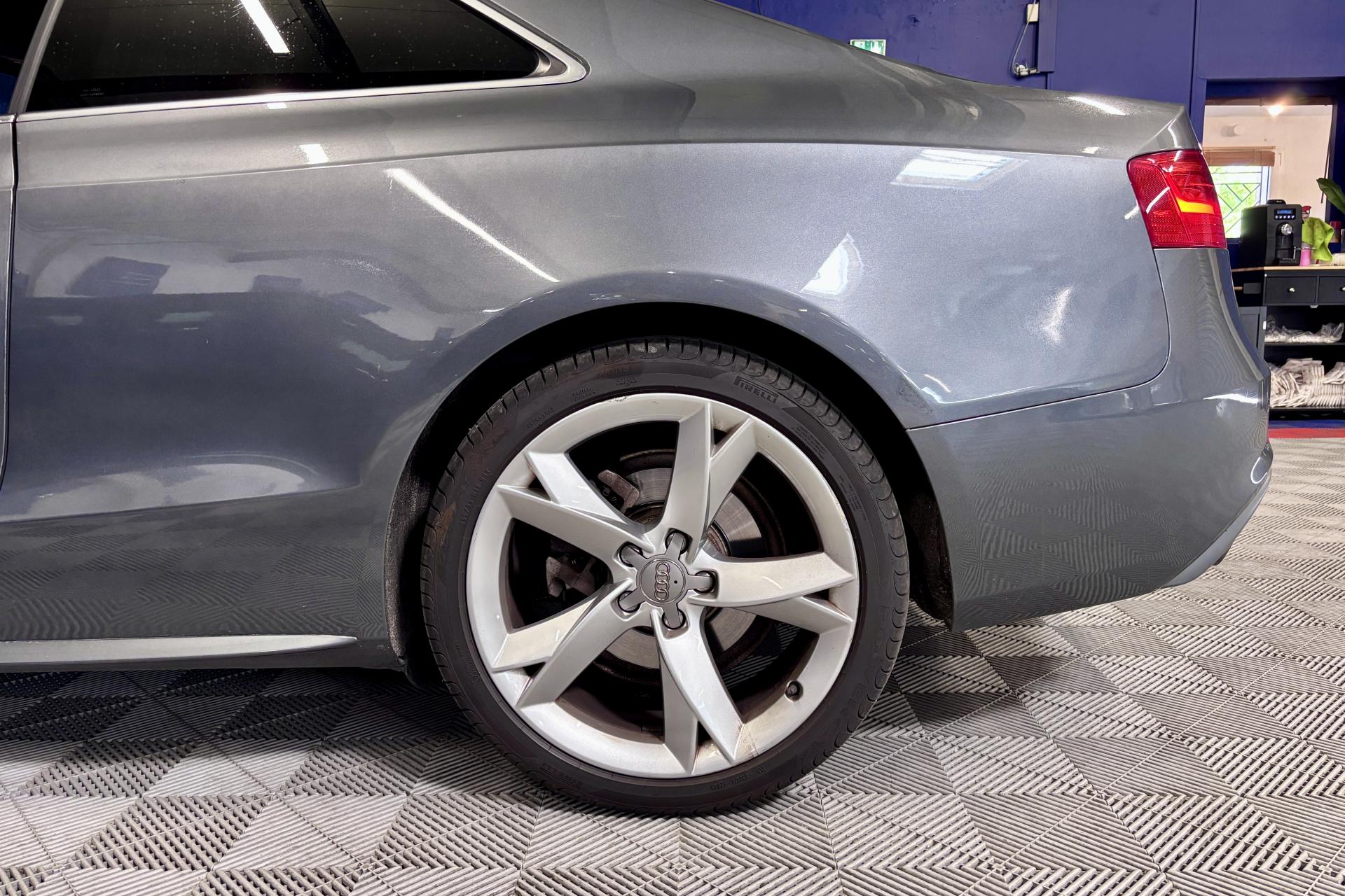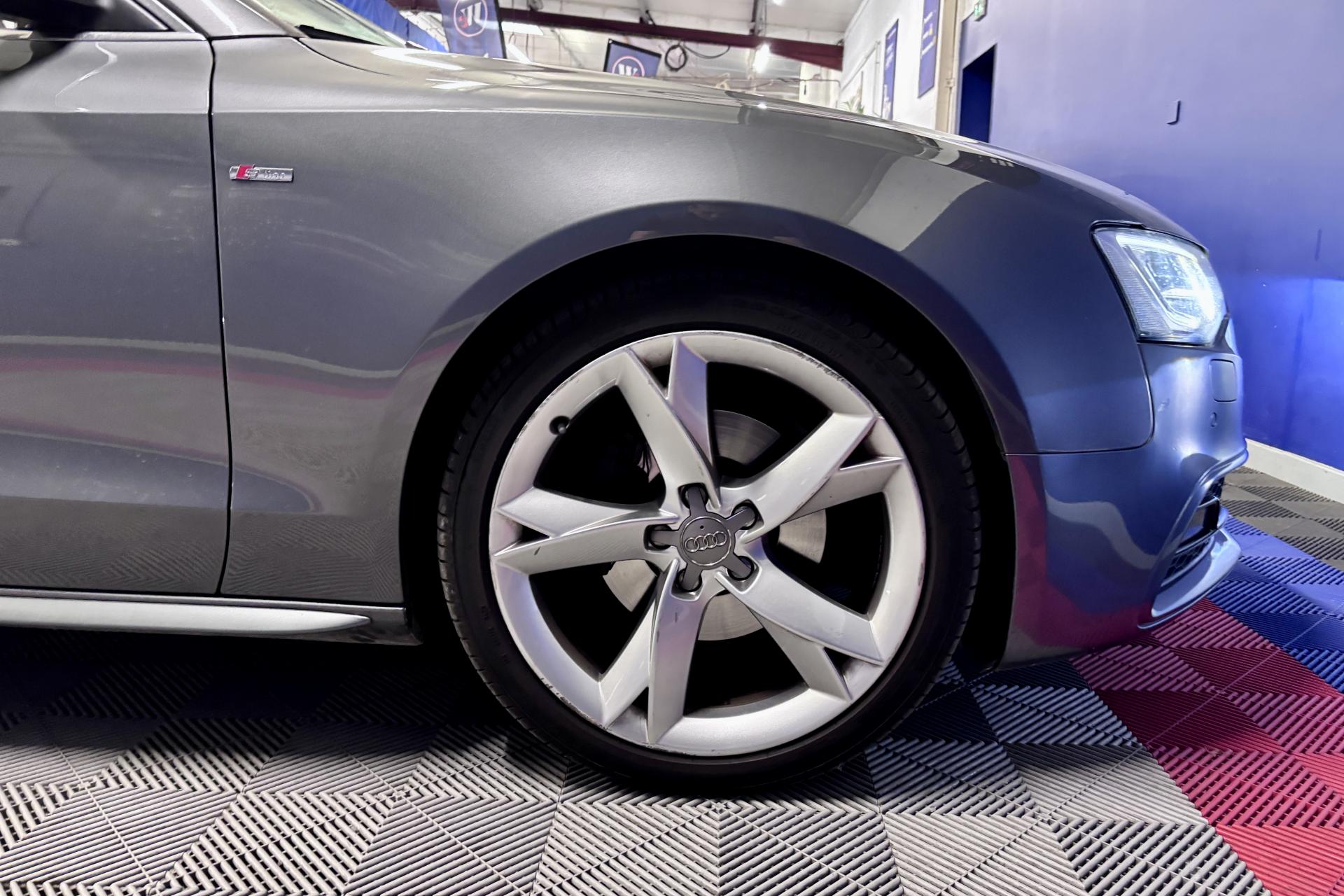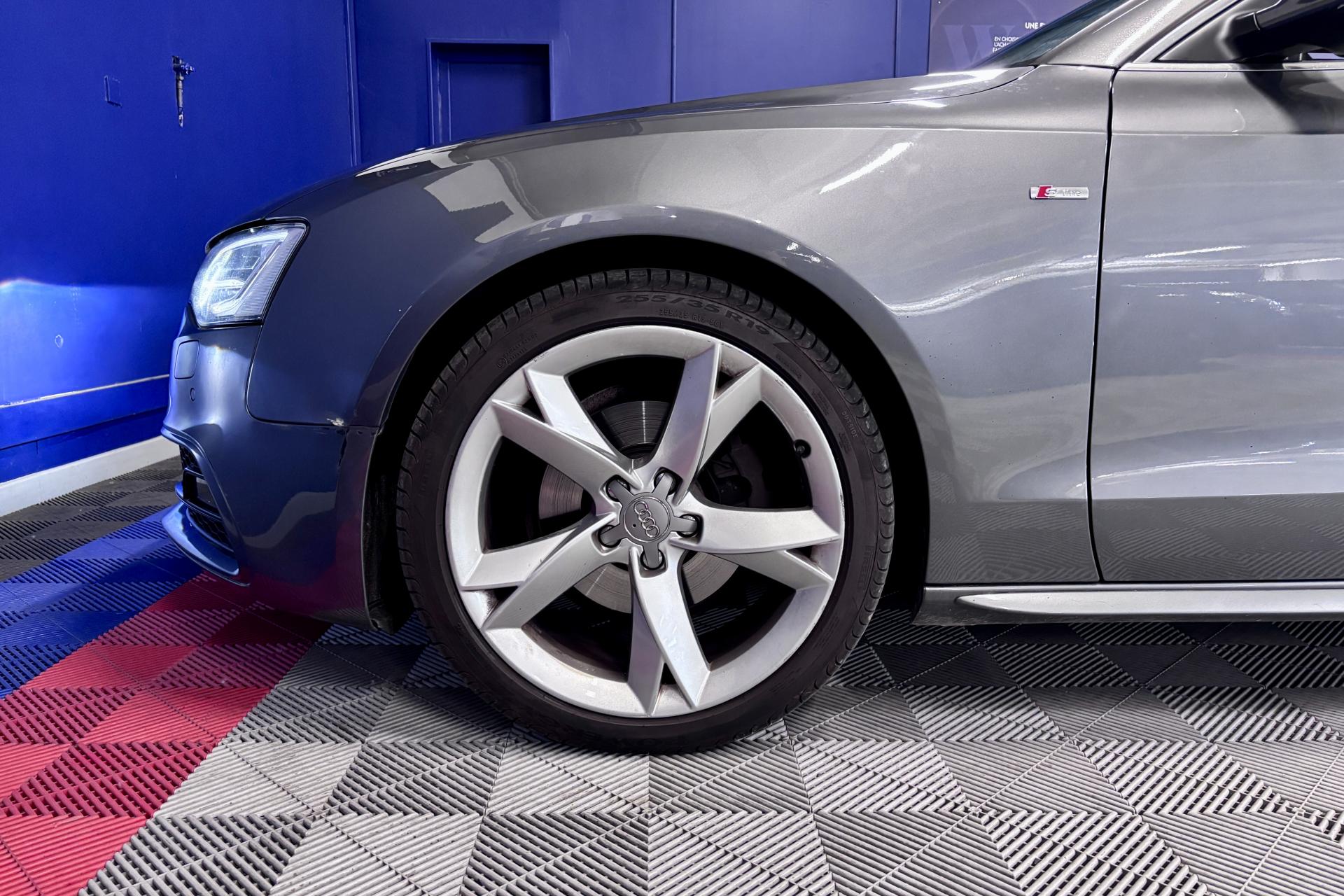 - Jantes Audi Sport en aluminium coulé style 5 branches « Rotor », finition titane, polies, 9 J x 19”, avec pneus 255/35 R19