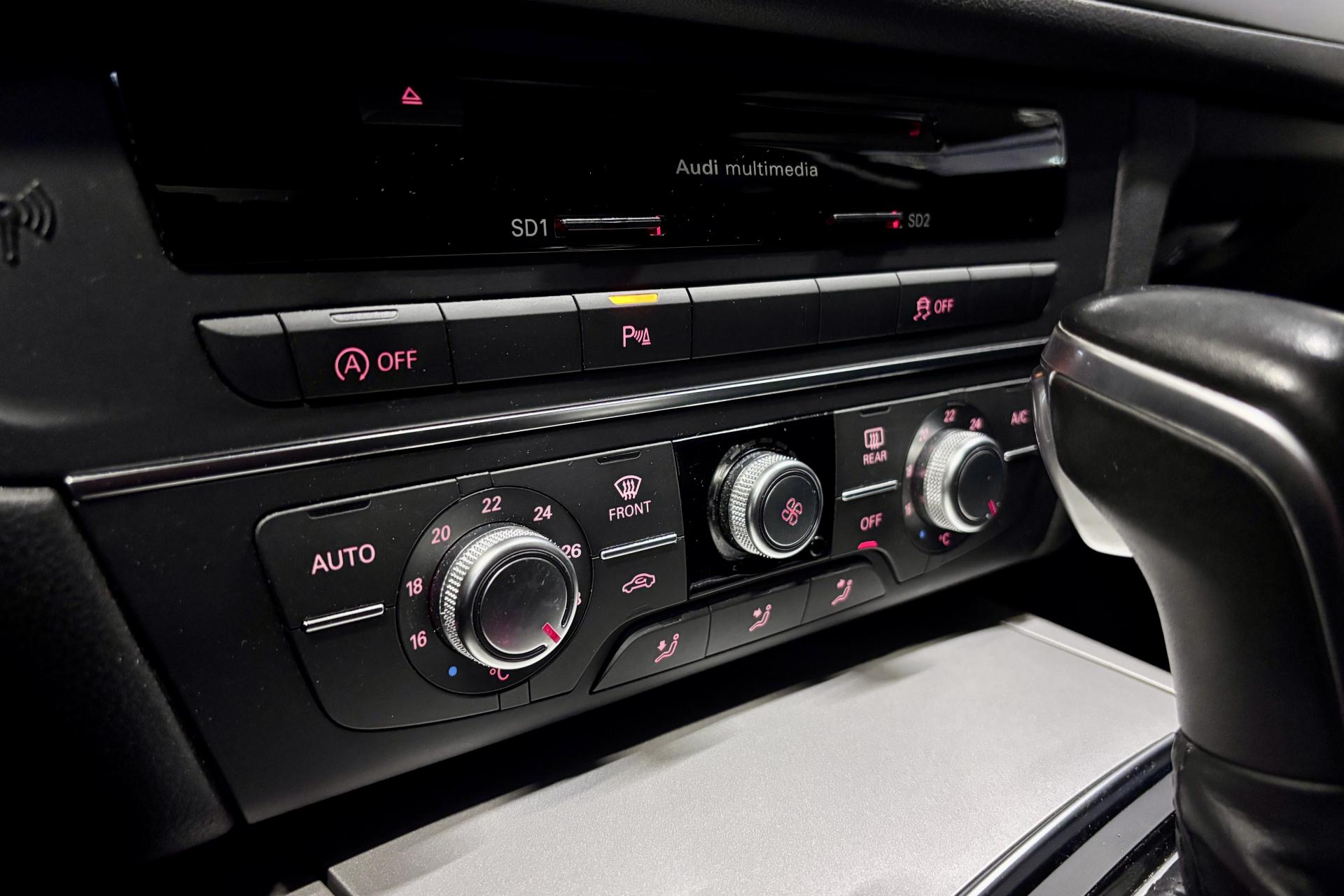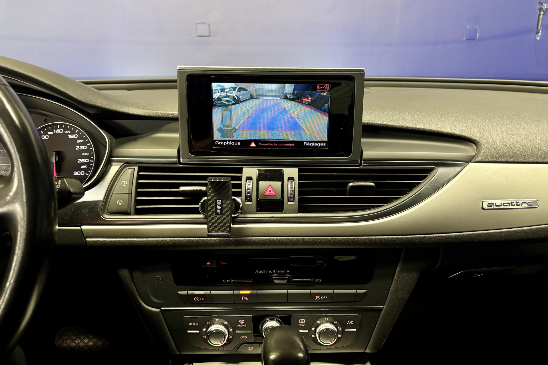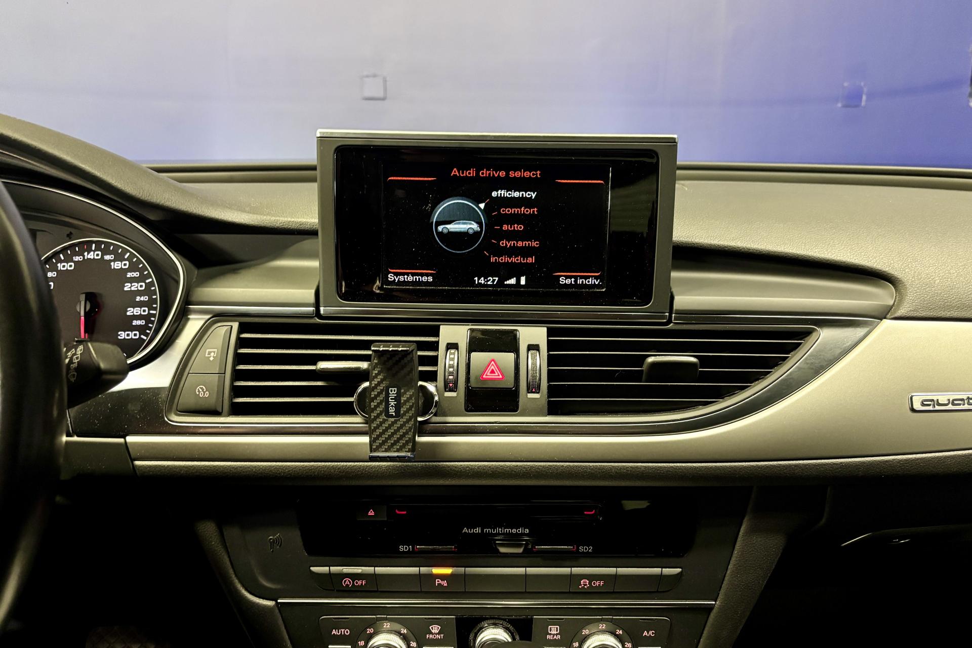 4 oeilletons de fixation sur le plancher du coffre, avec prise de courant de 12 voltsABS (antiblocage de roue) avec répartiteur de freinage EBV et assistance hydraulique au freinage d'urgenceAccoudoir central arrière, rabattable, avec vide-pochesAccoudoir central avant et arrière en cuirAccoudoir central avant pour conducteur et passager avant, avec 2 porte-boissons intégrésAirbags conducteur et passagerAirbags frontaux conducteur et passager grand volume, à deux niveaux de gonflement suivant la gravité du choc, latéraux avant et arrière intégrés aux dossiers des siègesApplications aluminium autour des diffuseurs d'air, de l'écran MMI, sur la commande du frein de stationnement électromécanique et les lève-vitresApplications décoratives en vernis rétro-réfléchissant sur le tableau de bord, les contre-portes et la console centraleAppuie-têtes intégraux à l'avant et à l'arrièreASR (antipatinage)Audi Drive SelectAudi Hold AssistAudi Music InterfaceAudi pre senseAudi sound system : amplificateurs à 6 canaux, 10 haut-parleurs dont un central dans le tableau de bord et subwoofer dans le coffre.Puissance totale 180 WBaguette décorative style aluminium entre le pare-chocs et l'ouverture du capot de coffreBanquette arrière : trois places, rabattable 40/60Banquette arrière rabattable : système de déverrouillage à distance des dossiers situé dans la garniture latérale du coffreBoîte à gants grand volume, éclairée et verrouillableCalandre Audi Singleframe chromée avec lamelles horizontales laquées noirCapacité du réservoir : 73 litresCapteur de pluieCarrosserie hybride en aluminium (capot moteur, hayon, portières et ailes)Ceintures de sécurité trois points à enrouleur à toutes les places avec prétensionneur réversibleCendrier et allume-cigare éclairés à l'avant et à l'arrièreCiel de pavillon en tissu, en combinaison avec la couleur intérieure choisie, en argent lunaire, beige soie ou noirClignotants avec fonction autoroute : une brève impulsion sur le comodo active 3 cycles de clignotementClimatisation automatique confort avec ventilation indirecteCoffre à bagages à ouverture et fermeture automatiques et assisté électriquementCoffre à bagages grand volume à grande largeur de chargementColonne de direction réglable en hauteur / profondeurContrôle de la pression des pneus avec signaux acoustique et visuel de perte de pressionCouvre-bagages coulissant automatiquement par glissière le long du montant DDémarrage et arrêt du moteur par simple impulsion sur le bouton moteur Start/Stop intégré à la console centrale, nécessite simplement d'avoir la clé sur soiDétecteur de luminosité : allume et éteint automatiquement les feux de croisement suivant les conditions de luminosité ; inclut fonction coming home/leaving homeDirection électromécanique à assistance variableDouble vérin pneumatique d'ouverture de hayonEclairage intérieur à temporisation à l'avant et à l'arrière avec contacteurs sur toutes les portières, configurable par MMIEDS (blocage électronique de différentiel)Ergots de maintien pour sacs à provisionsESC (programme électronique de stabilisation)Essuie glace arrièreFeux de freinage adaptatifs (déclenchement des feux de détresse automatique)Feux stop, feux arrière de recul et antibrouillard halogènes, feux de plaque arrière à LEDFixations pour sièges enfant ISOFIX aux places extérieures arrièreFrein de stationnement électromécanique avec fonction Hold AssistIdentification du modèle et de la technologie sur la malle arrièreInterface Bluetooth avec Bluetooth AudiostreamingLevier de vitesses en cuir assorti à la couleur intérieure choisieLunette arrière dégivrante, avec minuterieMMI navigationOrdinateur de bord (écran monochrome) avec affichage des informations au conducteur, du média utilisé, du rapport de vitesse, de la température extérieure, commandé via le volant multifonctionPack brillancePare-Brise feuilleté AthermiquePare-soleil conducteur et passager avant rabattables et orientables avec miroir de courtoisie éclairé et occultableParking System Plus avec caméra de reculPréparation pour crochet d'attelagePrise AUX-INProjecteurs Xénon plus et feux de jour à LEDProtections latérales anticollisionRampes de pavillon en aluminium poliRégulateur de vitesse, disponible à partir de 30 km/h jusqu'à 250 km/hRétroviseur intérieur électrochromeRétroviseurs extérieurs électriques et dégivrants avec clignotants à LED et laqués dans la couleur de la carrosserieRétroviseurs extérieurs électriques rabattables et dégivrantsRoue de secours temporaire avec cric de levageSécurité enfant sur les portières arrière et les vitres électriques arrièreSellerie cuir MilanoSignal sonore pour oubli d'extinction des feuxSorties d'échappement trapézoïdales doubles chromées de chaque côtéSystème Start/ Stop avec récupération d'énergie de freinageTapis de sol complémentaires avant et arrière dans la couleur de la moquetteTélécommande de verrouillage centralisé à fréquence radio avec ouverture/fermeture confort pour les vitres électriques, le coffre et la trappe à carburantTémoins de contrôle pour airbags, ESC/ASR, EDS, frein de stationnement électromécanique, régulateur de vitesse, feux de route,feux arrière antibrouillard, clignotants, électronique moteur et protection antidémarrageTroisième feu stop intégré au becquet de pavillonVide-poches dans les portières avant ; filets de rangement sur le dossier des sièges avant ; tiroirs de rangement sous les sièges avantVitres avant et arrière électriques avec fonction d'ouverture/fermeture par impulsion sur toutes les vitres et protection antipincementVitres latérales avant et pare-brise vitrés acoustiquement : meilleure isolation phoniqueVolant multifonction 4 branches en cuir avec airbag grand volume, permet de commander : radio, téléphone, commande vocale, ordinateur de bord