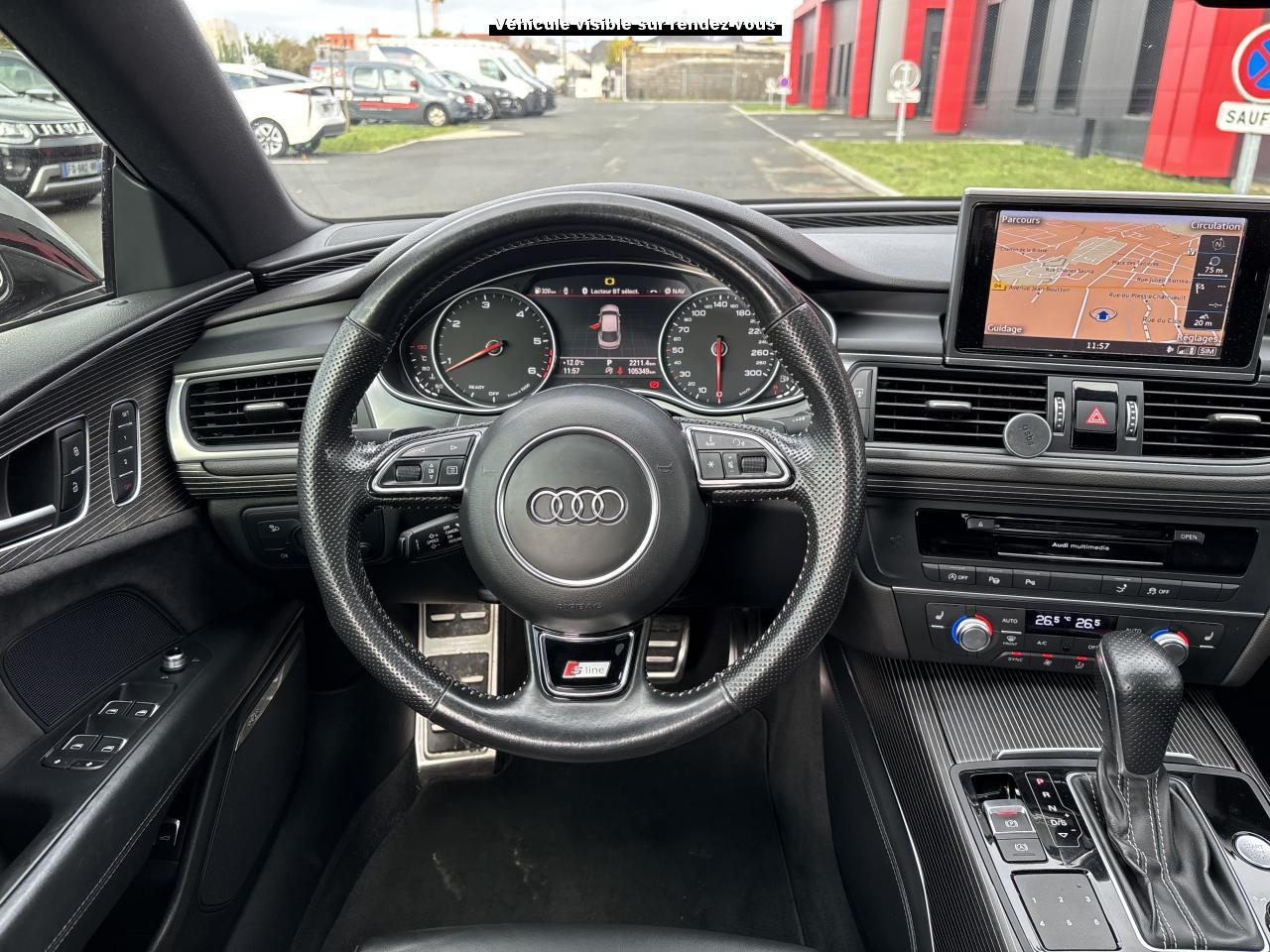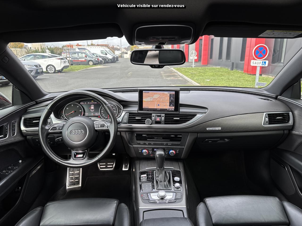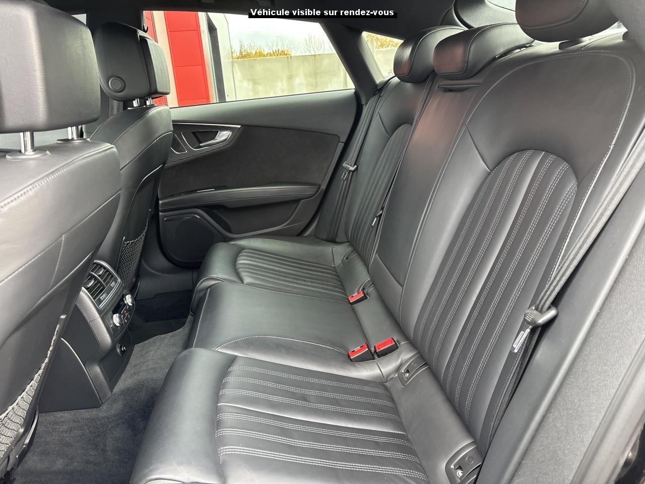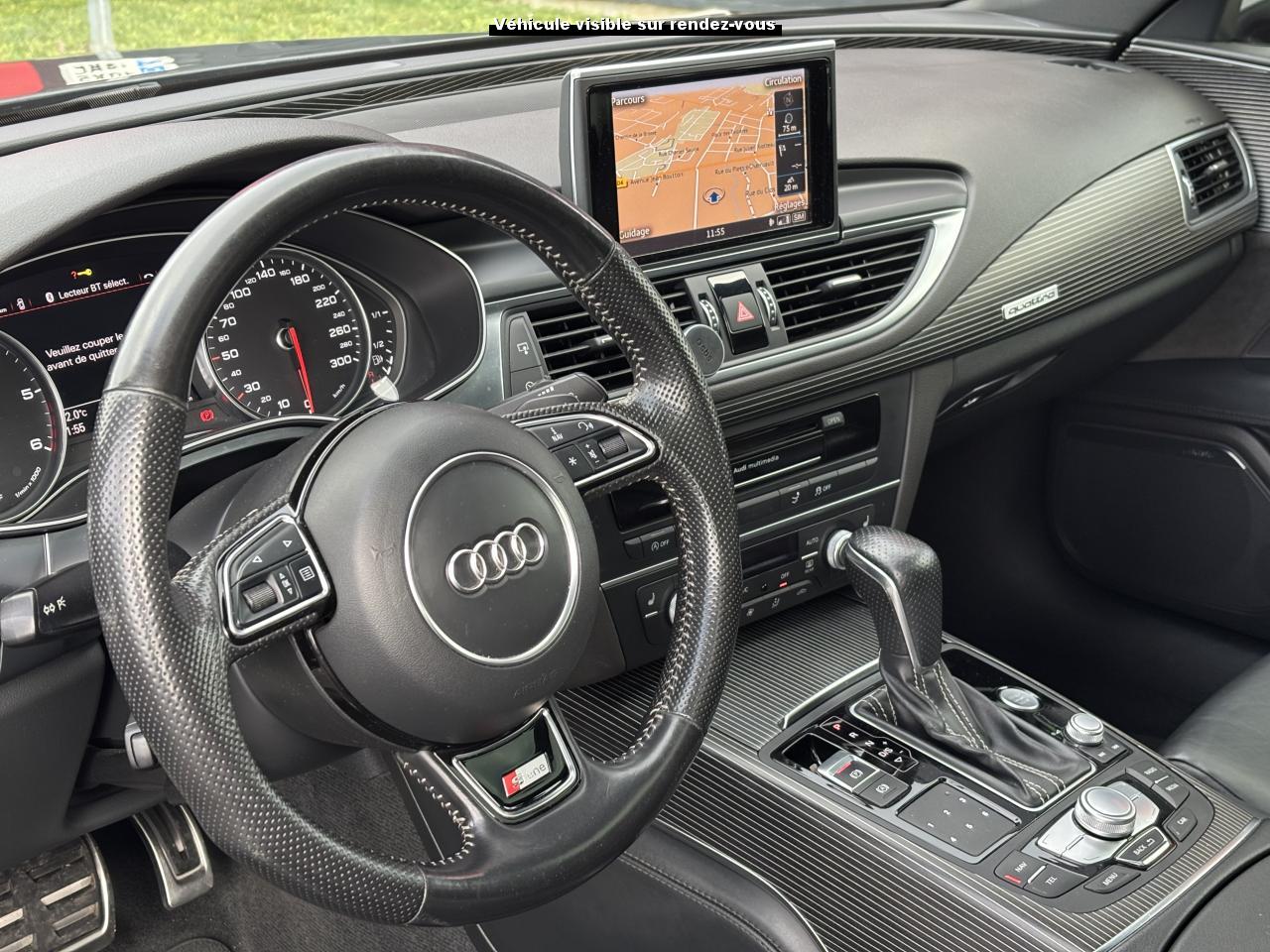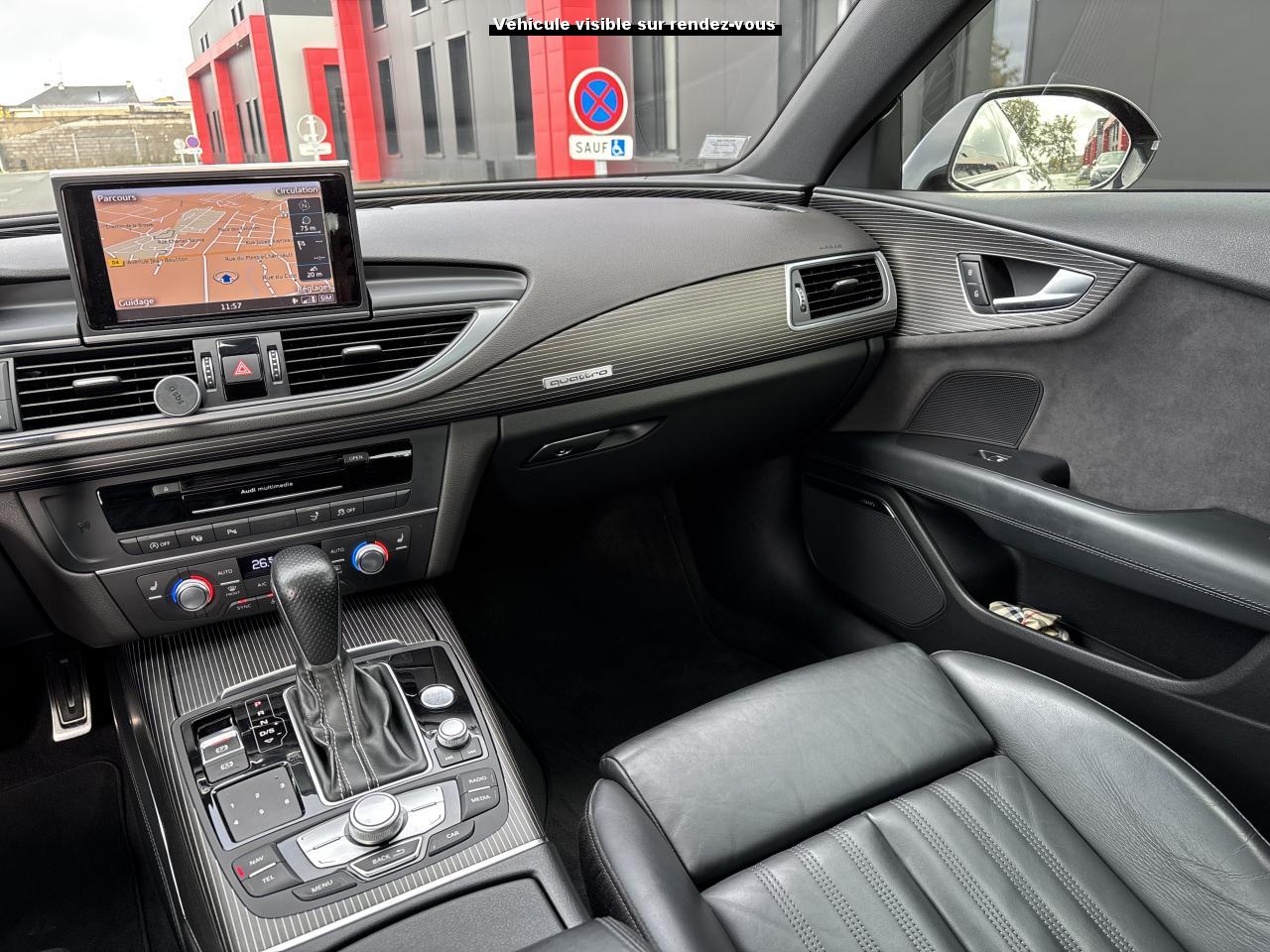 ABS (antiblocage de roue) avec répartiteur de freinage EBV et assistance hydraulique au freinage d'urgenceAccoudoir central avant en cuirAccoudoir central avant pour conducteur et passager avant, avec 2 porte-boissons intégrésAirbags conducteur et passagerAirbags frontaux conducteur et passager grand volume, à deux niveaux de gonflement suivant la gravité du choc, latéraux avant et arrière intégrés aux dossiers des siègesApplications aluminium autour des diffuseurs d'air, de l'écran MMI, sur la commande du frein de stationnement électromécanique et les lève-vitresApplications décoratives en bois noir (Chêne Beaufort) avec inserts en aluminiumAppuie-tête avant et arrièreASR (antipatinage) pour une motricité et une rigidité transversale optimales. Réduit le patinage des roues motricesAudi Drive Select avec mode «efficiency»Audi Hold Assist, maintient le véhicule à l'arrêt, aussi bien en côte qu'en descente, sans limite de tempsAudi Music InterfaceAudi Park AssistAudi Parking System Plus avant et arrièreAudi pre senseAudi sound system : amplificateurs à 6 canaux, 10 haut-parleurs dont un central dans le tableau de bord et subwoofer dans le coffre.Puissance totale 180 WBanquette arrière : trois places, rabattable 40/60Becquet arrière asservi à la vitesseBoîte à gants grand volume, éclairée et verrouillableCapacité du réservoir : 73 litresCarrosserie hybride en aluminium (capot moteur, hayon, portières et ailes)Ceintures de sécurité trois points à enrouleur à toutes les places avec prétensionneur réversible, limiteur de tension et réglage en hauteur à l'avantCendrier et allume-cigare éclairés à l'avant et à l'arrièreChâssis Sport : suspensions et amortisseurs dynamiques, abaissement de 10 mmCiel de pavillon en tissu noirClignotants arrière dynamiques à LEDClignotants arrière et clignotants intégrés aux rétroviseurs extérieurs à diodes électroluminescentesClimatisation automatique confort avec ventilation indirecteCoffre à bagages à ouverture et fermeture automatiquesCoffre à bagages grand volume, avec filet mixte, oeilletons de fixation, filet à bagages sur le côté droit du coffre et 1 prise 12 voltsColonne de direction réglable en hauteur / profondeurContrôle de la pression des pneus avec signaux acoustique et visuel de perte de pressionCoques de rétroviseurs noiresCouleur des ceintures assortie à celle de l'habitacleDémarrage et arrêt du moteur par simple impulsion sur le bouton moteur "Start/Stop engine" intégré à la console centrale, nécessite simplement d'avoir la clé sur soiDétecteur de pluie et de luminosité incluant rétroviseur intérieur jour/nuit automatiqueDétecteur de port de ceinture avec signaux acoustique et visuel à l'avantDirection électromécanique à assistance variable (asservie à la vitesse)Direction servotronicEclairage de la plaque minéralogique arrière à LEDEclairage intérieur à temporisation à l'avant et à l'arrière avec contacteurs sur toutes les portières, configurable par MMIEcrous antivolEDS (blocage électronique de différentiel)ESC (programme électronique de stabilisation)Etriers de frein rougesFeux de freinage adaptatif (déclenchement des feux de détresse automatique)Feux diurnes, feux stop et clignotants arrière à LED, 3e feu stop surélevé ; 2 feux de recul blancs et 2 feux antibrouillard arrièreFixations pour sièges enfant ISOFIX aux places extérieures arrièreFrein de stationnement électromécanique avec fonction Hold Assist, désactivation automatique au démarrage et fonction frein de secours sur les quatre roues durant la marcheGestionnaire de batterie, commande à l'aide de capteurs une alimentation électrique optimale du véhicule durant la marche et à l'arrêtIdentification du modèle et de la technologie sur la malle arrière ainsi qu'inscription quattro sur la calandre et sur le tableau de bord côté passagerInscription « V6T » sur les ailes avantInterface Bluetooth avec Bluetooth AudiostreamingJantes en aluminium 5 branches en W contrastées noires 265/35 R20Livre de bord avec étuiLunette arrière dégivrante, avec minuterieNavigation MMI avec carte SD 8Go incluseOrdinateur de bord (écran monochrome)Pack EclairagePack Esthétique noirPack extérieur S linePare-brise en verre feuilleté athermique teinté vertPare-soleil conducteur et passager avant rabattables et orientables avec miroir de courtoisie éclairé et occultablePeinture métallisée ou nacréePhares avant intégralement à LEDPommeau de levier de vitesses en cuir perforé avec surpiqûres gris jetPréparation pour crochet d'attelageProtections latérales anticollisionRégulateur de vitesseRétroviseurs extérieurs électriques et à mémoire, dégivrants et rabattables avec clignotants à LEDRoue de secours type galette avec cric de levageSécurité enfants sur le verrouillage des ceintures à enrouleur côté passager avant et à l'arrièreSécurité enfants sur les portières et les vitres électriques arrièreSellerie cuir de haute qualité Valcona avec logo S line ; cuir souple et grainage finSeuils de portes avec inscription "quattro"Sièges avant à réglages électriques avec fonction mémoire pour siège conducteur. Inclut appuis lombaires électriquesSièges avant sportSignal sonore pour oubli d'extinction des feuxSorties d'échappement noir brillantSystème Start/ Stop avec récupération d'énergie de freinageTapis de sol complémentaires avant et arrière dans la couleur de la moquetteTélécommande de verrouillage centralisé à fréquence radio avec ouverture/fermeture confort pour les vitres électriques, le coffre et la trappe à carburantTémoins de contrôle pour airbags, ESC/ASR, adaptive air suspension, EDS, frein de stationnement électromécanique, régulateur de vitesse, feux de route,feux arrière antibrouillard, clignotants, électronique moteur et protection antidémarrageTransmission intégrale permanente quattroTriangle de présignalisation, trouss