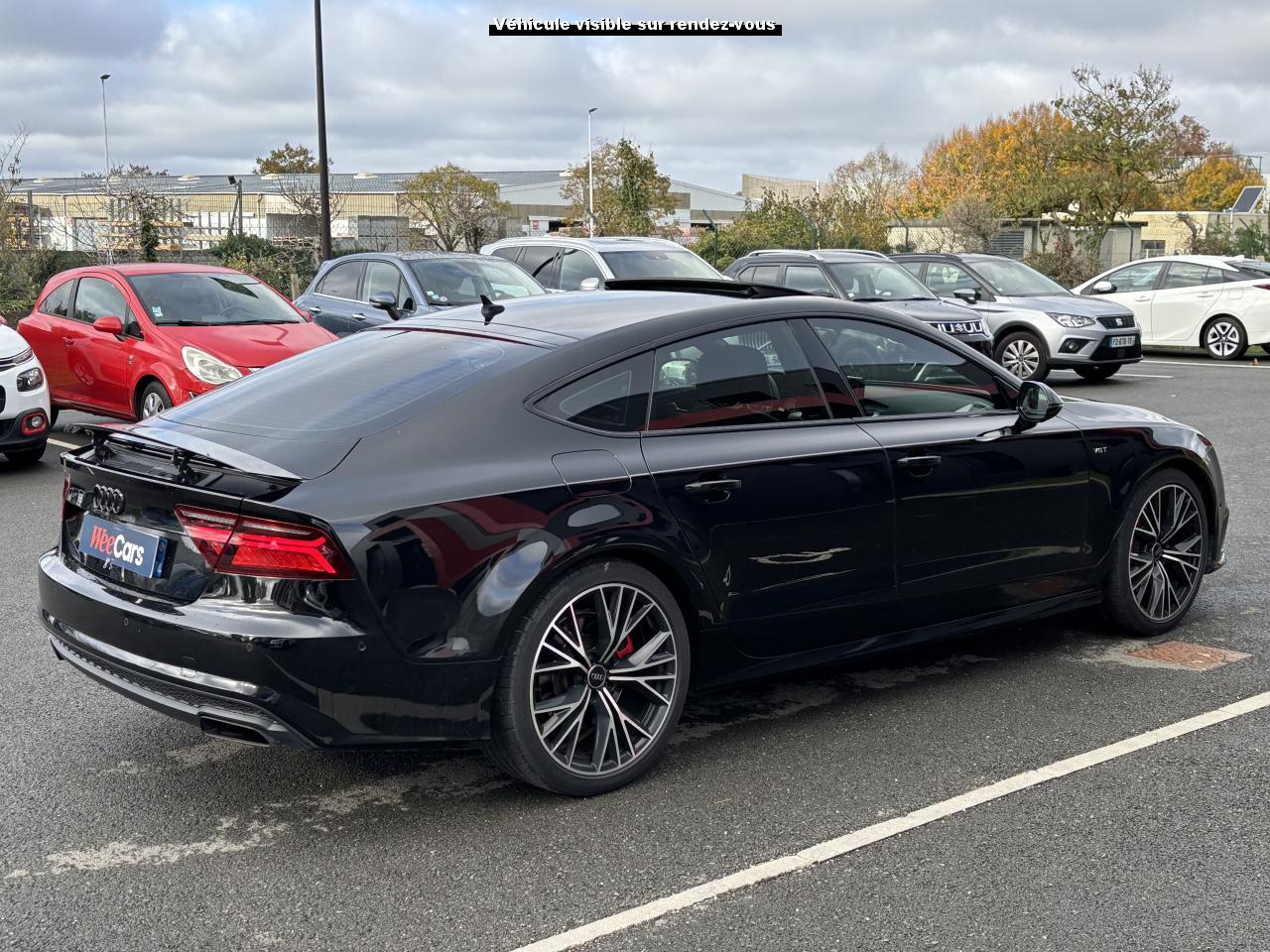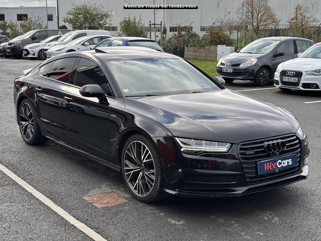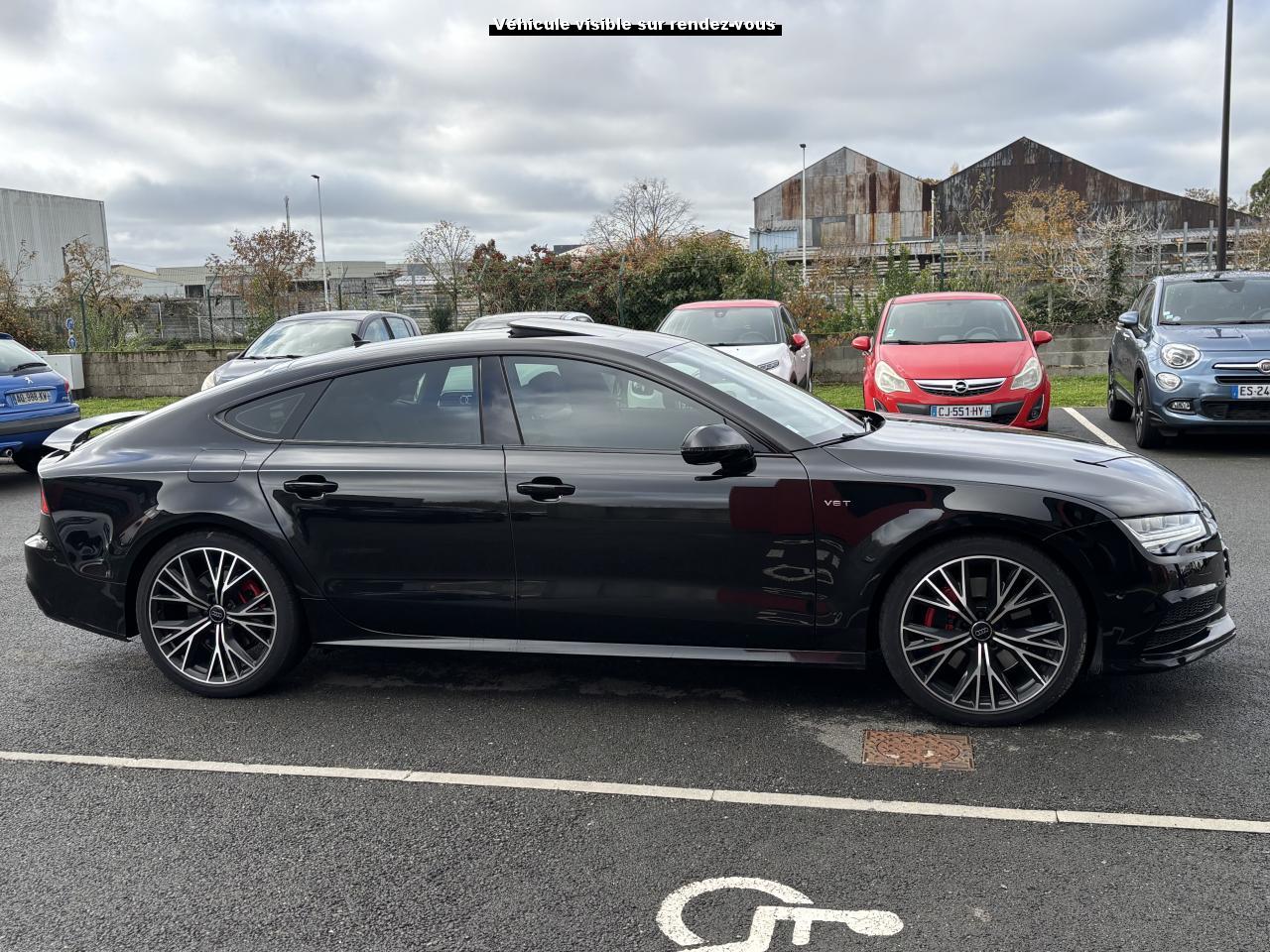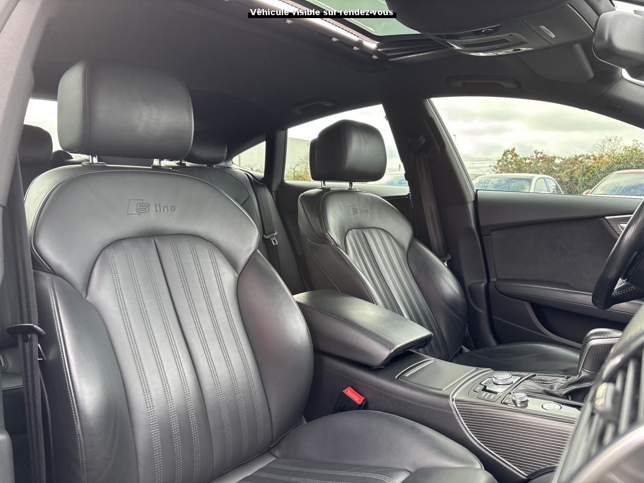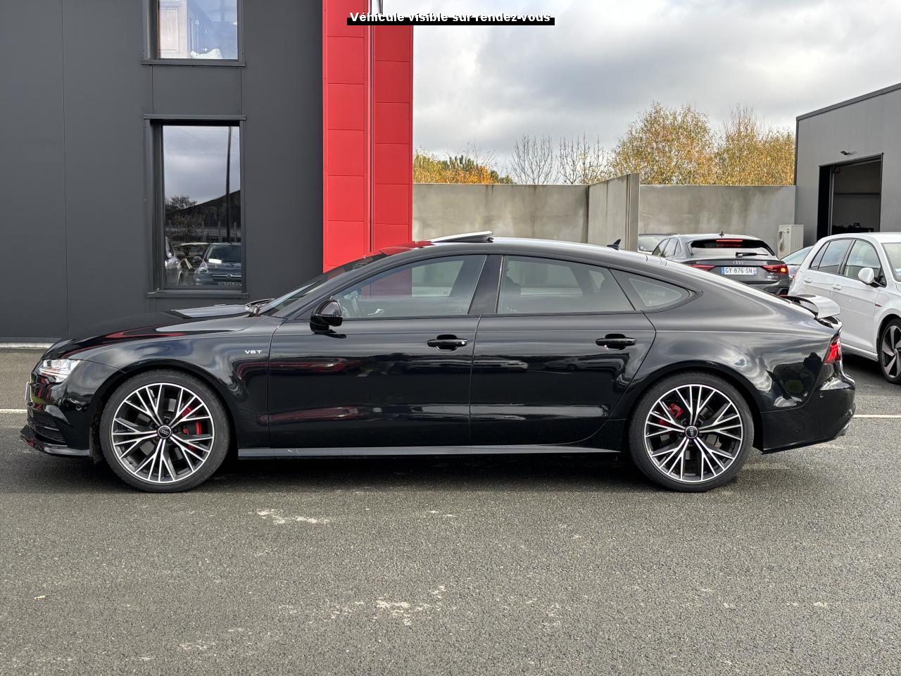 ABS (antiblocage de roue) avec répartiteur de freinage EBV et assistance hydraulique au freinage d'urgenceAccoudoir central avant en cuirAccoudoir central avant pour conducteur et passager avant, avec 2 porte-boissons intégrésAirbags conducteur et passagerAirbags frontaux conducteur et passager grand volume, à deux niveaux de gonflement suivant la gravité du choc, latéraux avant et arrière intégrés aux dossiers des siègesApplications aluminium autour des diffuseurs d'air, de l'écran MMI, sur la commande du frein de stationnement électromécanique et les lève-vitresApplications décoratives en bois noir (Chêne Beaufort) avec inserts en aluminiumAppuie-tête avant et arrièreASR (antipatinage) pour une motricité et une rigidité transversale optimales. Réduit le patinage des roues motricesAudi Drive Select avec mode «efficiency»Audi Hold Assist, maintient le véhicule à l'arrêt, aussi bien en côte qu'en descente, sans limite de tempsAudi Music InterfaceAudi Park AssistAudi Parking System Plus avant et arrièreAudi pre senseAudi sound system : amplificateurs à 6 canaux, 10 haut-parleurs dont un central dans le tableau de bord et subwoofer dans le coffre.Puissance totale 180 WBanquette arrière : trois places, rabattable 40/60Becquet arrière asservi à la vitesseBoîte à gants grand volume, éclairée et verrouillableCapacité du réservoir : 73 litresCarrosserie hybride en aluminium (capot moteur, hayon, portières et ailes)Ceintures de sécurité trois points à enrouleur à toutes les places avec prétensionneur réversible, limiteur de tension et réglage en hauteur à l'avantCendrier et allume-cigare éclairés à l'avant et à l'arrièreChâssis Sport : suspensions et amortisseurs dynamiques, abaissement de 10 mmCiel de pavillon en tissu noirClignotants arrière dynamiques à LEDClignotants arrière et clignotants intégrés aux rétroviseurs extérieurs à diodes électroluminescentesClimatisation automatique confort avec ventilation indirecteCoffre à bagages à ouverture et fermeture automatiquesCoffre à bagages grand volume, avec filet mixte, oeilletons de fixation, filet à bagages sur le côté droit du coffre et 1 prise 12 voltsColonne de direction réglable en hauteur / profondeurContrôle de la pression des pneus avec signaux acoustique et visuel de perte de pressionCoques de rétroviseurs noiresCouleur des ceintures assortie à celle de l'habitacleDémarrage et arrêt du moteur par simple impulsion sur le bouton moteur "Start/Stop engine" intégré à la console centrale, nécessite simplement d'avoir la clé sur soiDétecteur de pluie et de luminosité incluant rétroviseur intérieur jour/nuit automatiqueDétecteur de port de ceinture avec signaux acoustique et visuel à l'avantDirection électromécanique à assistance variable (asservie à la vitesse)Direction servotronicEclairage de la plaque minéralogique arrière à LEDEclairage intérieur à temporisation à l'avant et à l'arrière avec contacteurs sur toutes les portières, configurable par MMIEcrous antivolEDS (blocage électronique de différentiel)ESC (programme électronique de stabilisation)Etriers de frein rougesFeux de freinage adaptatif (déclenchement des feux de détresse automatique)Feux diurnes, feux stop et clignotants arrière à LED, 3e feu stop surélevé ; 2 feux de recul blancs et 2 feux antibrouillard arrièreFixations pour sièges enfant ISOFIX aux places extérieures arrièreFrein de stationnement électromécanique avec fonction Hold Assist, désactivation automatique au démarrage et fonction frein de secours sur les quatre roues durant la marcheGestionnaire de batterie, commande à l'aide de capteurs une alimentation électrique optimale du véhicule durant la marche et à l'arrêtIdentification du modèle et de la technologie sur la malle arrière ainsi qu'inscription quattro sur la calandre et sur le tableau de bord côté passagerInscription « V6T » sur les ailes avantInterface Bluetooth avec Bluetooth AudiostreamingJantes en aluminium 5 branches en W contrastées noires 265/35 R20Livre de bord avec étuiLunette arrière dégivrante, avec minuterieNavigation MMI avec carte SD 8Go incluseOrdinateur de bord (écran monochrome)Pack EclairagePack Esthétique noirPack extérieur S linePare-brise en verre feuilleté athermique teinté vertPare-soleil conducteur et passager avant rabattables et orientables avec miroir de courtoisie éclairé et occultablePeinture métallisée ou nacréePhares avant intégralement à LEDPommeau de levier de vitesses en cuir perforé avec surpiqûres gris jetPréparation pour crochet d'attelageProtections latérales anticollisionRégulateur de vitesseRétroviseurs extérieurs électriques et à mémoire, dégivrants et rabattables avec clignotants à LEDRoue de secours type galette avec cric de levageSécurité enfants sur le verrouillage des ceintures à enrouleur côté passager avant et à l'arrièreSécurité enfants sur les portières et les vitres électriques arrièreSellerie cuir de haute qualité Valcona avec logo S line ; cuir souple et grainage finSeuils de portes avec inscription "quattro"Sièges avant à réglages électriques avec fonction mémoire pour siège conducteur. Inclut appuis lombaires électriquesSièges avant sportSignal sonore pour oubli d'extinction des feuxSorties d'échappement noir brillantSystème Start/ Stop avec récupération d'énergie de freinageTapis de sol complémentaires avant et arrière dans la couleur de la moquetteTélécommande de verrouillage centralisé à fréquence radio avec ouverture/fermeture confort pour les vitres électriques, le coffre et la trappe à carburantTémoins de contrôle pour airbags, ESC/ASR, adaptive air suspension, EDS, frein de stationnement électromécanique, régulateur de vitesse, feux de route,feux arrière antibrouillard, clignotants, électronique moteur et protection antidémarrageTransmission intégrale permanente quattroTriangle de présignalisation, trouss
