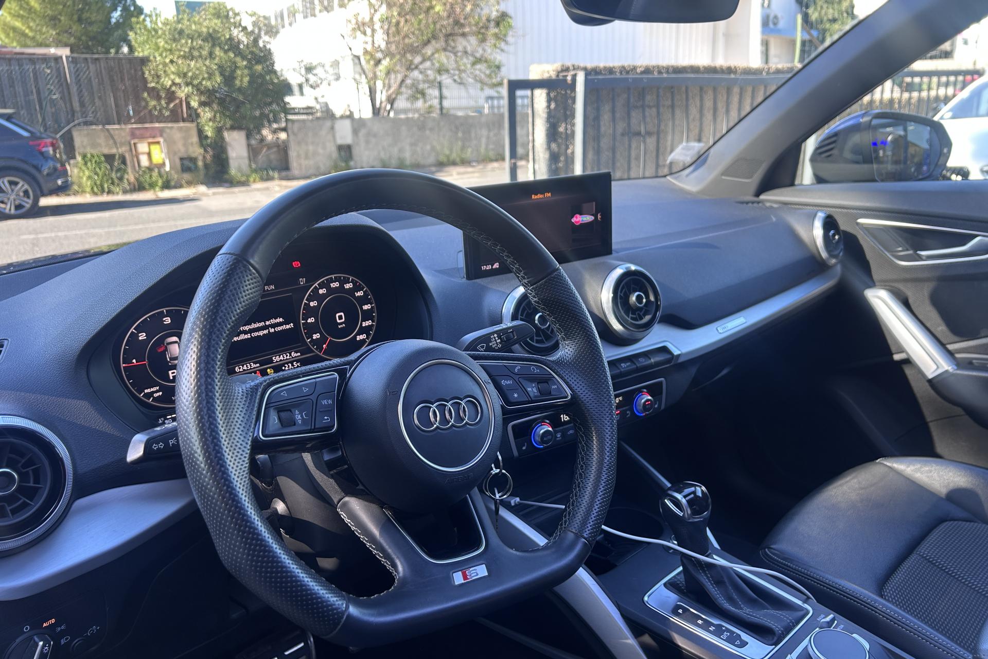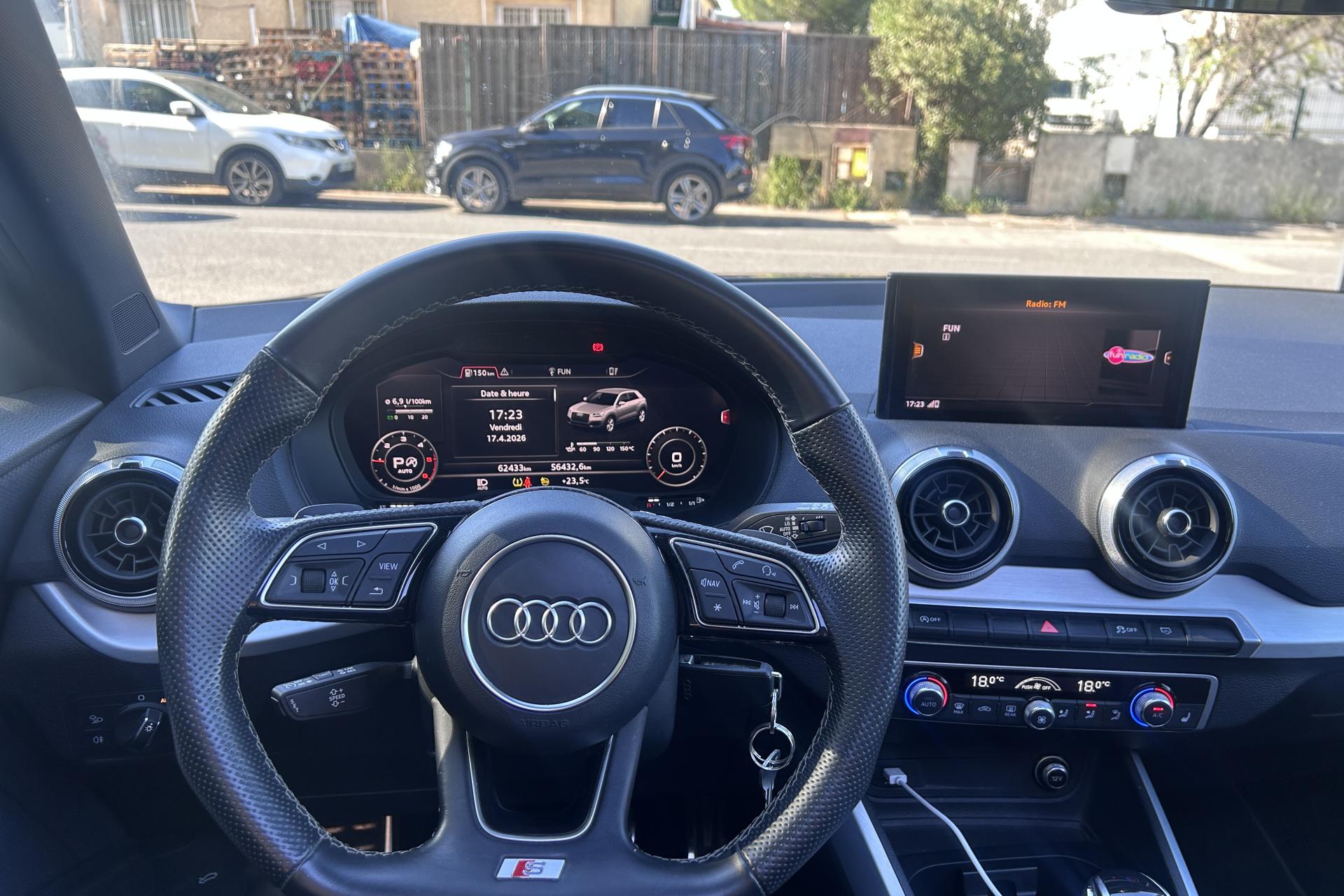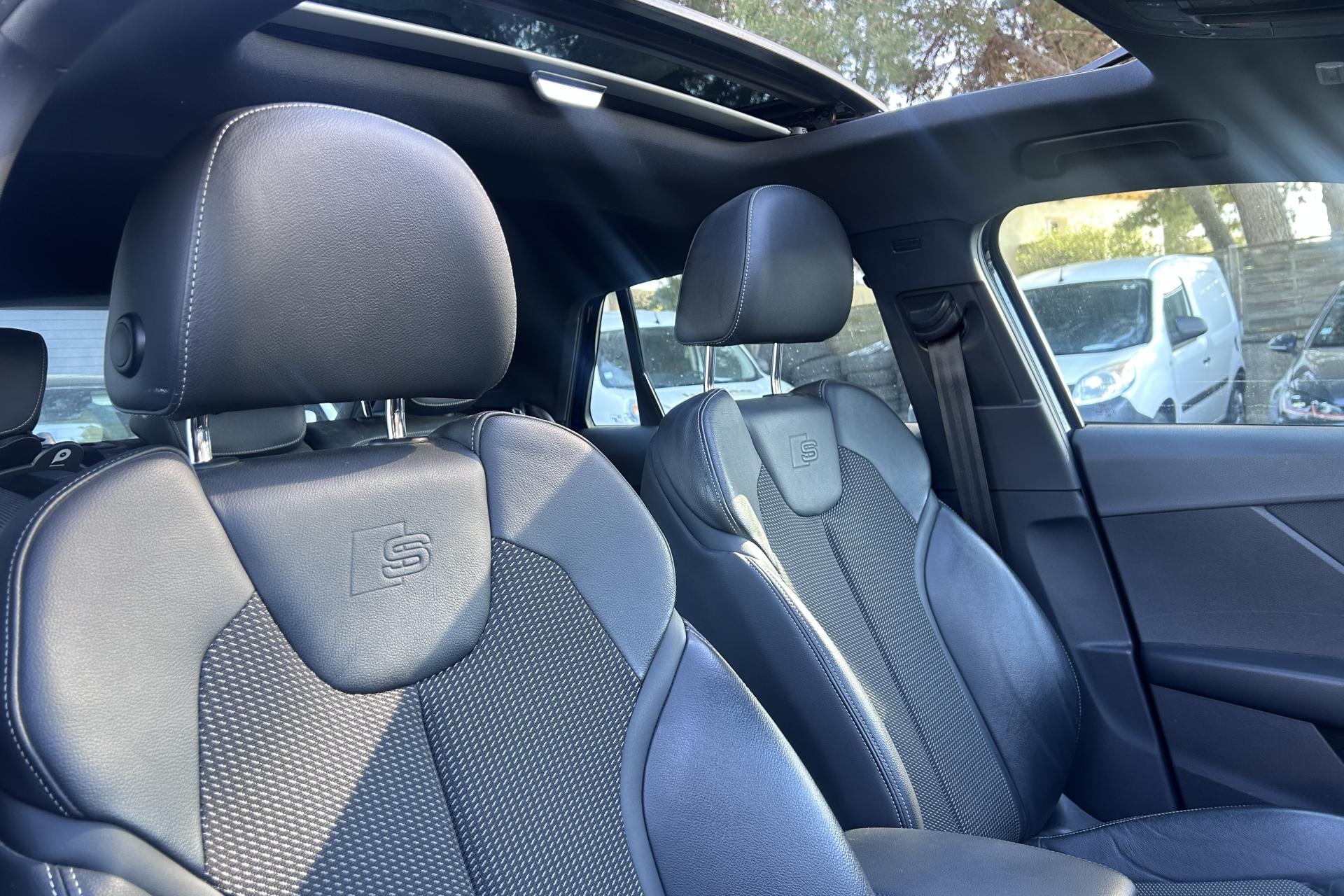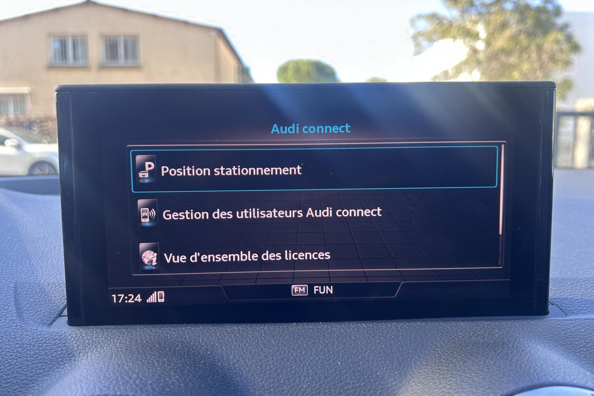 Affichage du contrôle de la pression des pneumatiquesAirbags latéraux à l'avant et système d'airbags de têteToit ouvrant électrique panoramique ouvrant/coulissant en verreApplications décoratives en aluminium brossé matAssistant de feux de routeAudi connect navigation et divertissementAudi connect sécurité et assistance en ligneAudi Drive SelectAudi Hold AssistAudi Music InterfaceAudi Parking System : système acoustique d'aide au stationnement arrièreAudi pre sense frontAudi smartphone interfaceAudi sound system : 10 haut-parleurs incluant un haut-parleur central et un subwoofer ; amplificateur à 6 canaux avec une puissance totale de 180 wattsBlade en Argent MagnesiumClé à fréquence radioClimatisation automatique confort 2 zonesDésactivation de l'airbag du passager avantDétecteur d'occupation des sièges avantDétecteur de pluie et allumage automatique des projecteursDirection progressiveDossier de banquette arrière rabattable en deux parties 40:60 ou entièrementEléments de contrastes en gris mat grainéFeux arrière à LEDFixation Isofix pour siege passager AVInscription “S line” sur les ailes avantInterface BluetoothJantes en alliage léger, 5 branches segmentées (style S), 7,0J x 18, pneus 215/50 R18Lecteur de carte SDXC supplémentaireLève-vitres électriques à l'avant et à l'arrièreLimiteur de vitesseMMI navigation avec MMI touchMoulures de seuils avec insert en aluminium et emblème S, éclairéesPack ConfortPack Intérieur S linePare-brise avec bandeau pare-soleil grisPeinture intégralePeinture vernie Blanc ibisPhares Matrix LED avec clignotants dynamiques à l’arrièreRéception radio numérique, réception des signaux DAB, DAB+ et DMB AudioRégulateur de vitesseRétroviseurs extérieurs couleur carrosserieSécurité enfant électrique arrièreSet de réparation pour pneus avec compresseur 12 volts et produit de colmatage pour les pneus, vitesse maximale 80 km/hSystème d'information du conducteur avec écran couleurTapis de sol AV et ARTriangle de présignalisation et trousse de secoursVitres athermiquesVolant Sport S line en cuir style 3 branches avec multifonction avec emblème S (poignées de volant en cuir perforé)