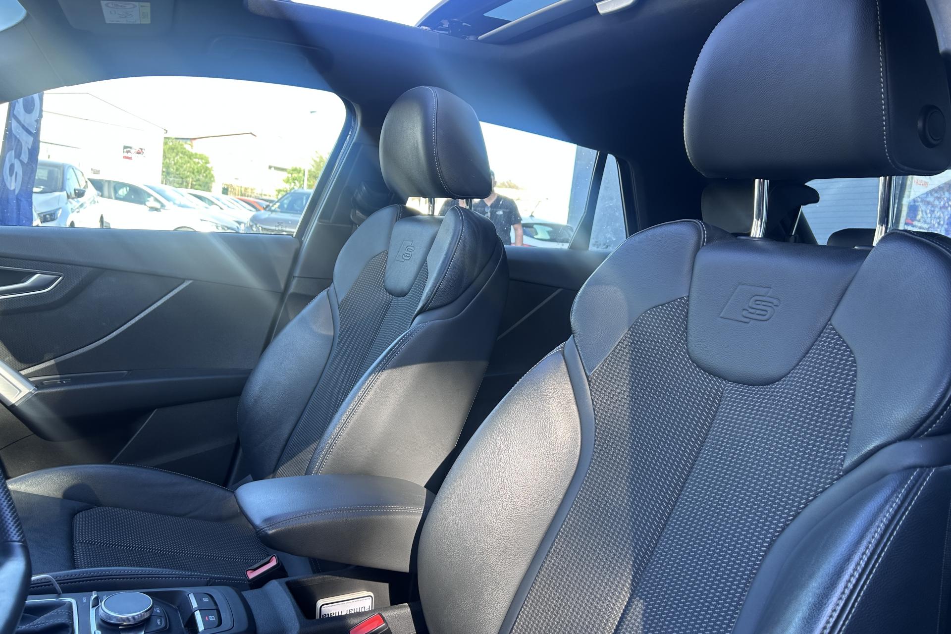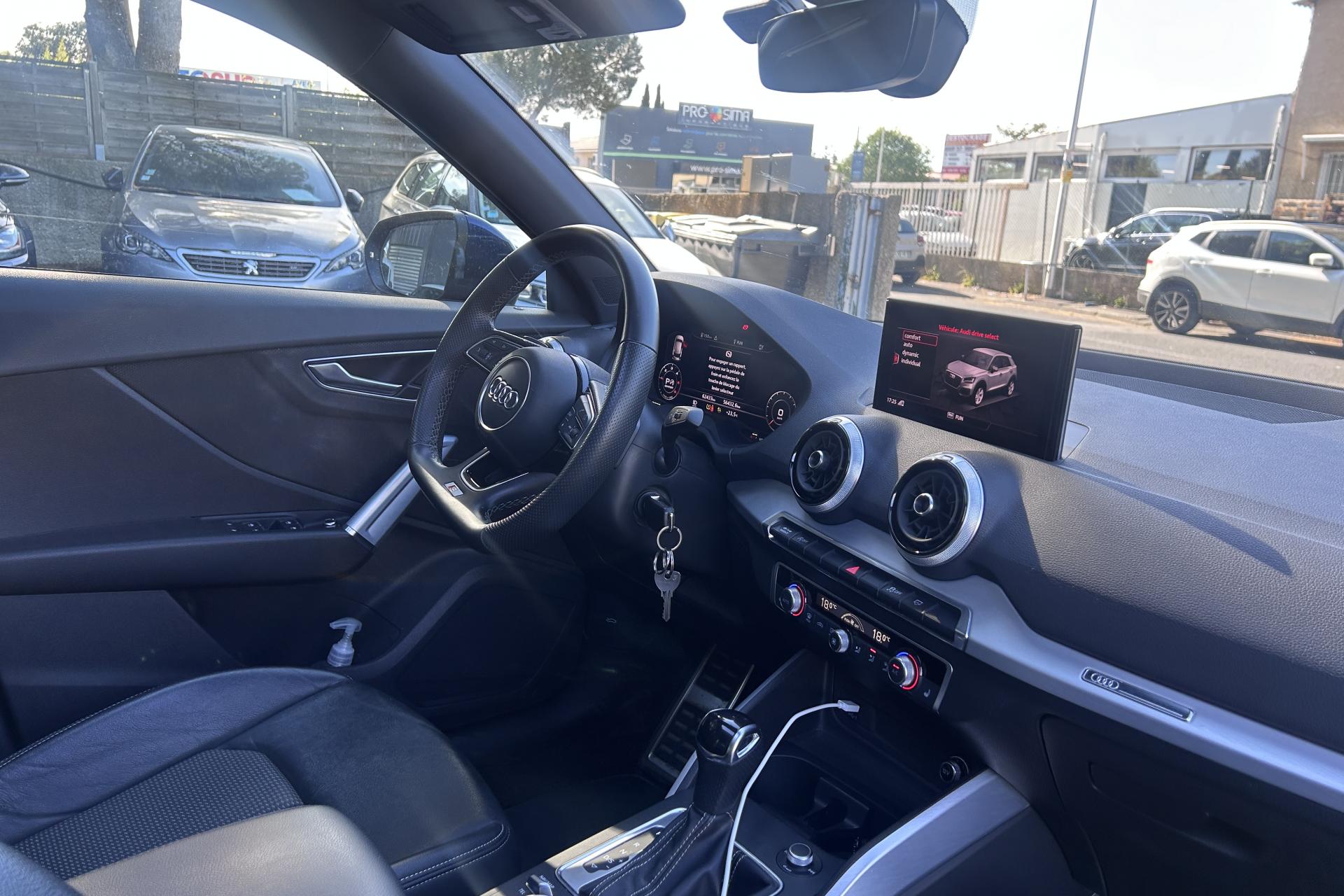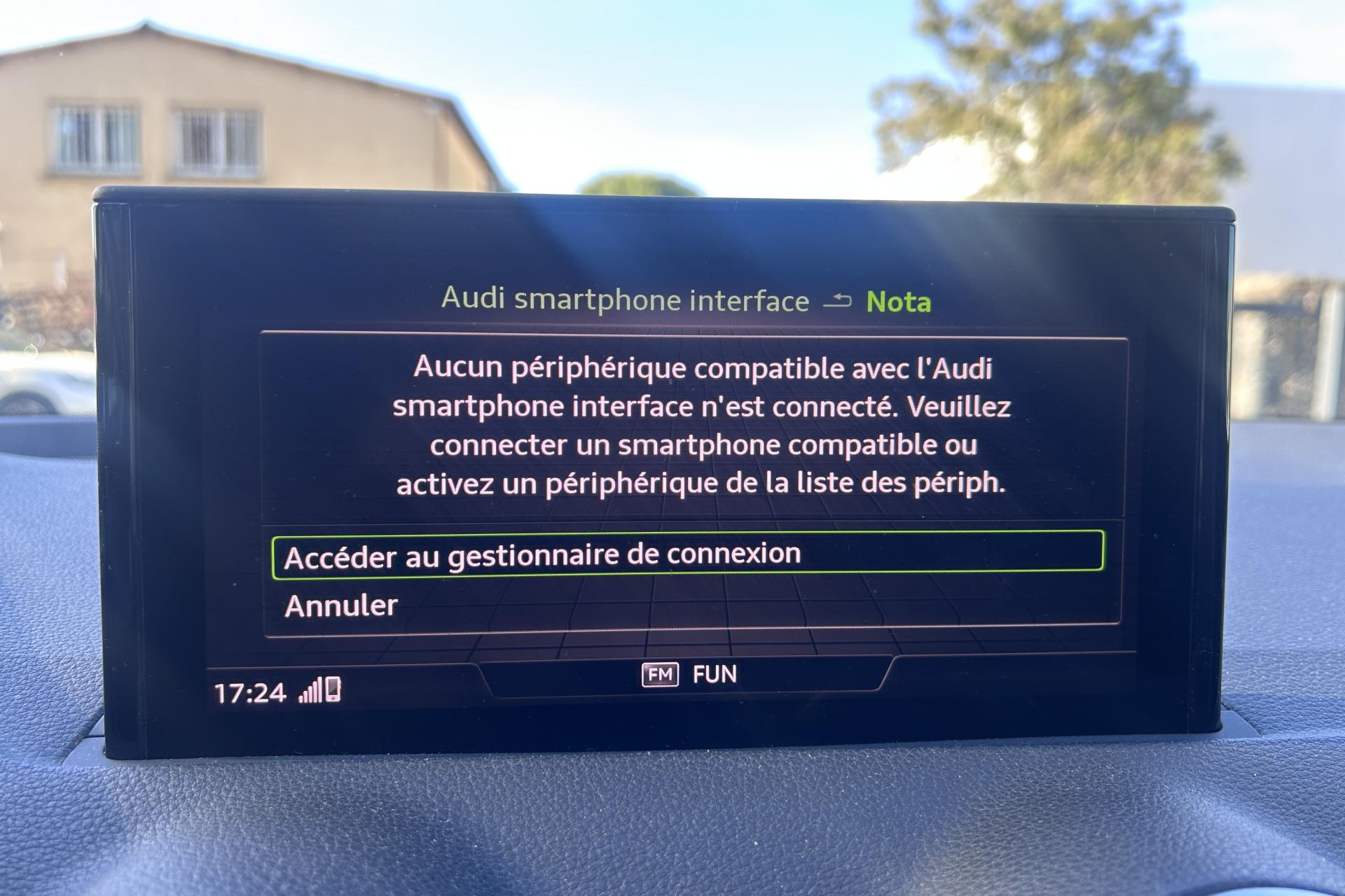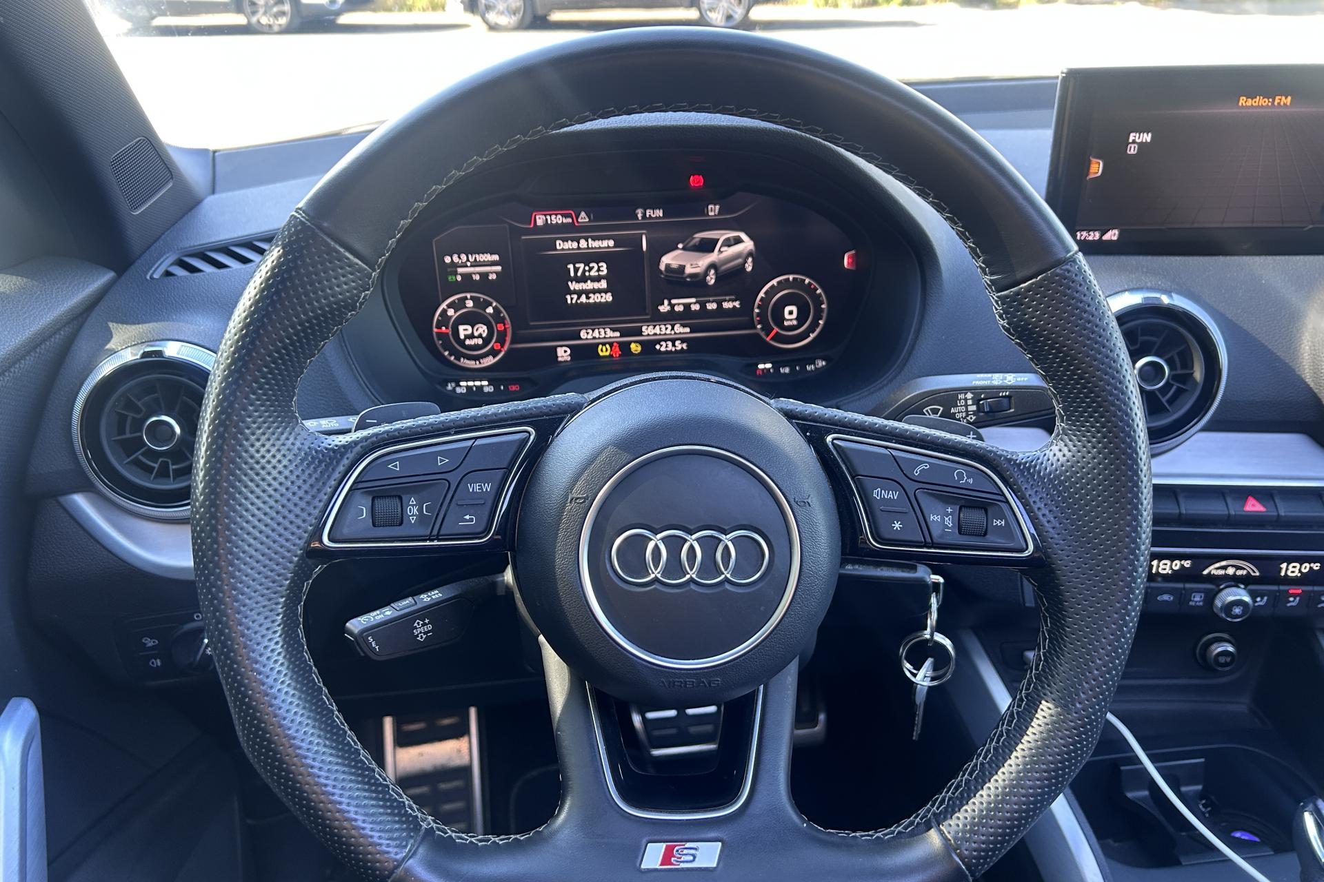 Affichage du contrôle de la pression des pneumatiquesAirbags latéraux à l'avant et système d'airbags de têteToit ouvrant électrique panoramique ouvrant/coulissant en verreApplications décoratives en aluminium brossé matAssistant de feux de routeAudi connect navigation et divertissementAudi connect sécurité et assistance en ligneAudi Drive SelectAudi Hold AssistAudi Music InterfaceAudi Parking System : système acoustique d'aide au stationnement arrièreAudi pre sense frontAudi smartphone interfaceAudi sound system : 10 haut-parleurs incluant un haut-parleur central et un subwoofer ; amplificateur à 6 canaux avec une puissance totale de 180 wattsBlade en Argent MagnesiumClé à fréquence radioClimatisation automatique confort 2 zonesDésactivation de l'airbag du passager avantDétecteur d'occupation des sièges avantDétecteur de pluie et allumage automatique des projecteursDirection progressiveDossier de banquette arrière rabattable en deux parties 40:60 ou entièrementEléments de contrastes en gris mat grainéFeux arrière à LEDFixation Isofix pour siege passager AVInscription “S line” sur les ailes avantInterface BluetoothJantes en alliage léger, 5 branches segmentées (style S), 7,0J x 18, pneus 215/50 R18Lecteur de carte SDXC supplémentaireLève-vitres électriques à l'avant et à l'arrièreLimiteur de vitesseMMI navigation avec MMI touchMoulures de seuils avec insert en aluminium et emblème S, éclairéesPack ConfortPack Intérieur S linePare-brise avec bandeau pare-soleil grisPeinture intégralePeinture vernie Blanc ibisPhares Matrix LED avec clignotants dynamiques à l’arrièreRéception radio numérique, réception des signaux DAB, DAB+ et DMB AudioRégulateur de vitesseRétroviseurs extérieurs couleur carrosserieSécurité enfant électrique arrièreSet de réparation pour pneus avec compresseur 12 volts et produit de colmatage pour les pneus, vitesse maximale 80 km/hSystème d'information du conducteur avec écran couleurTapis de sol AV et ARTriangle de présignalisation et trousse de secoursVitres athermiquesVolant Sport S line en cuir style 3 branches avec multifonction avec emblème S (poignées de volant en cuir perforé)
