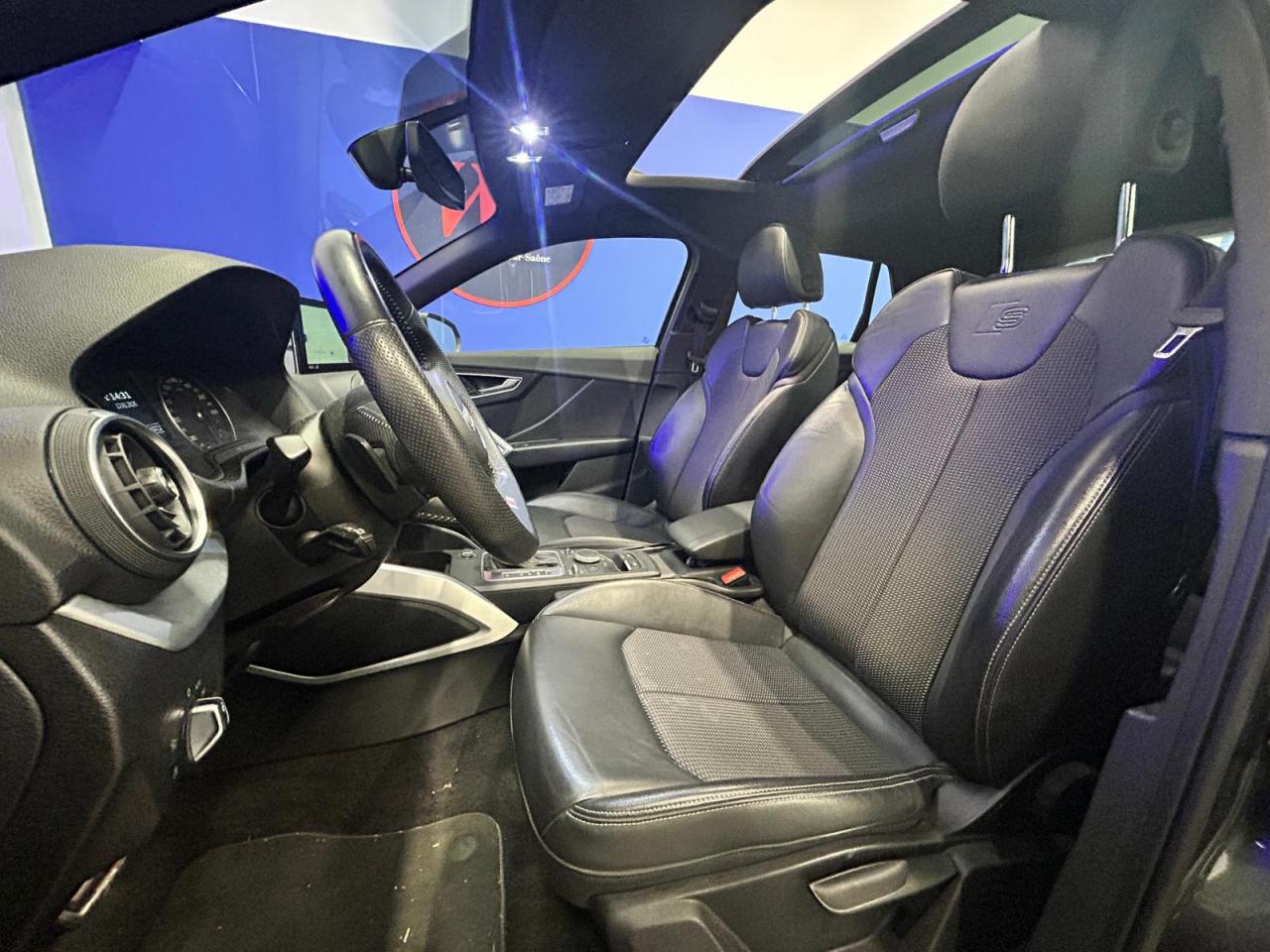 Accoudoir central avantAffichage du contrôle de la pression des pneumatiquesAirbags grand volume pour le conducteur et le passagerAirbags latéraux à l'avant et système d'airbags de têteAntipatinage ASR pour une motricité optimale, empêche le patinage des roues motricesApplications décoratives en aluminium brossé matAppuie-tête à l'avant, réglables en hauteurAudi connect 3 moisAudi Drive SelectAudi Hold AssistAudi Music InterfaceAudi Parking System : système acoustique d'aide au stationnement arrièreAudi pre sense front avec détection des piétonsAudi smartphone interfaceAudi Sound SystemBande grise en haut du pare-briseBlade Argent glacierBlocage électronique de différentiel (EDS)Boîte de vitesses S tronic séquentielle à 7 rapports à double embrayage avec commande électrohydrauliqueBoîtiers de rétroviseurs extérieurs dans la teinte du véhiculeCâbles de recharge pour téléphone portable, compatibles iPhone et AndroidCeinture de sécurité réglable en hauteurCeintures de sécurité 3 points automatiques pour toutes les placesCeintures de sécurité assorties à la couleur des garnituresChâssis “Sport”Ciel de pavillon en tissu noirClimatisation automatiqueColonne de direction de sécuritéContrôle de port de ceinture sur siège conducteur et passager AVContrôle électronique de stabilité (ESC)Désactivation de l'airbag du passager avantDétecteur de pluie et allumage automatique des projecteursDéverrouillage de coffre par touche douce : déverrouillage avec assistance électriqueDirection assistée électromécaniqueDirection progressiveDispositif anti-erreur de carburantDossier de banquette arrière rabattable en deux parties , 1/3, 2/3 ou complétementEclairage intérieur, à temporisation avec contacteurs sur toutes les portières ; éclairage du coffreEcrous antivolFeux arrière rouges, avec feux de recul blancs et feux de brouillard arrière intégrés, feux de plaque arrière à LED ; incluant troisième feu stop surélevéFixation pour sièges enfants ISOFIX et Top Tether pour les places arrière extérieuresFrein de stationnement electromécaniqueFreins à disque à l'avant et à l'arrièreIdentification du modèle/technologie sur le capot de coffre ; sur demande sans identification du modèle à l'arrièreInscription “S line” sur les ailes avantInterface BluetoothJantes en aluminium coulé style 5 branches en Y, 7 J x 18 avec pneus 215/50 R 18Lave-pharesLimitateur et régulateur de vitesseMMI navigationMoulures de seuils avec insert en aluminium et emblème S, éclairéesPare-soleil avec miroirs de courtoisiePédales et repose-pied en acier inoxydablePeinture intégralePhares à LED avec clignotants arrière à LED dynamiquesPommeau du levier/sélecteur de vitesses en cuir perforé noirProtection antidémarrage électronique, intégrée à la gestion du moteur, activation automatique par la clé du véhiculeRéception radio numérique, réception des signaux DAB, DAB+ et DMB AudioRécupération d'énergie, générée lors des phases de freinage ou de décélération permettant une économie de carburantRepose-genoux et diffuseurs d'air laquésRéservoir AdBlue de 12 LRétroviseurs extérieurs avec clignotants à LED intégrésRétroviseurs extérieurs rabattables automatiquementRétroviseurs extérieurs réglables et escamotables électriquement, dégivrants des deux côtés et buses de lave-glaces dégivrantesSécurité enfantsSellerie S line en tissu Pulse/cuir noirSet de réparation pour pneus avec compresseur 12 volts et produit de colmatage pour les pneus, vitesse maximale 80 km/hSièges avant réglables manuellement en hauteur et en profondeurSièges avant sportSortie d'échappement avec embout chroméSorties d'échappement monoflux avec 2 sorties à gaucheSurpiqûres contrastées sur les selleries, volant Sport en cuir, soufflet de levier/sélecteur de vitesses ainsi que tapis complémentairesSuspension sportSystème d'information du conducteur avec écran couleurSystème Start/Stop désactivableTapis complémentaires à l'avant et à l'arrièreTriangle de pré-signalisationTrousse de secoursVide-pochesVitres électriques avant et arrièreVitres latérales et arrière athermiqueVolant réglable manuellement en hauteur et en profondeurVolant Sport S line en cuir style 3 branches avec multifonction avec emblème S (poignées de volant en cuir perforé)