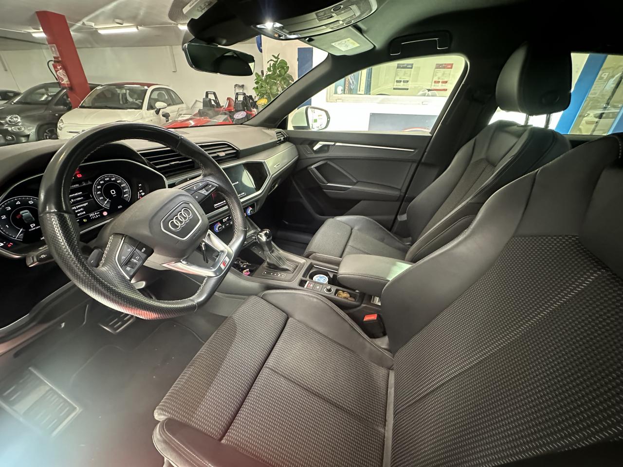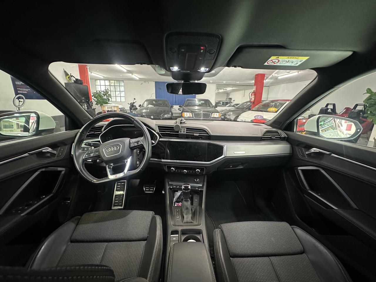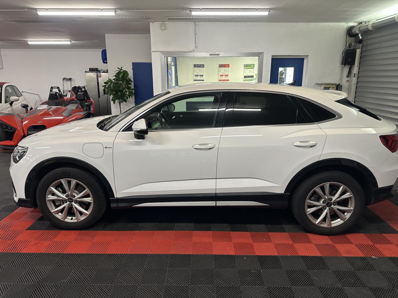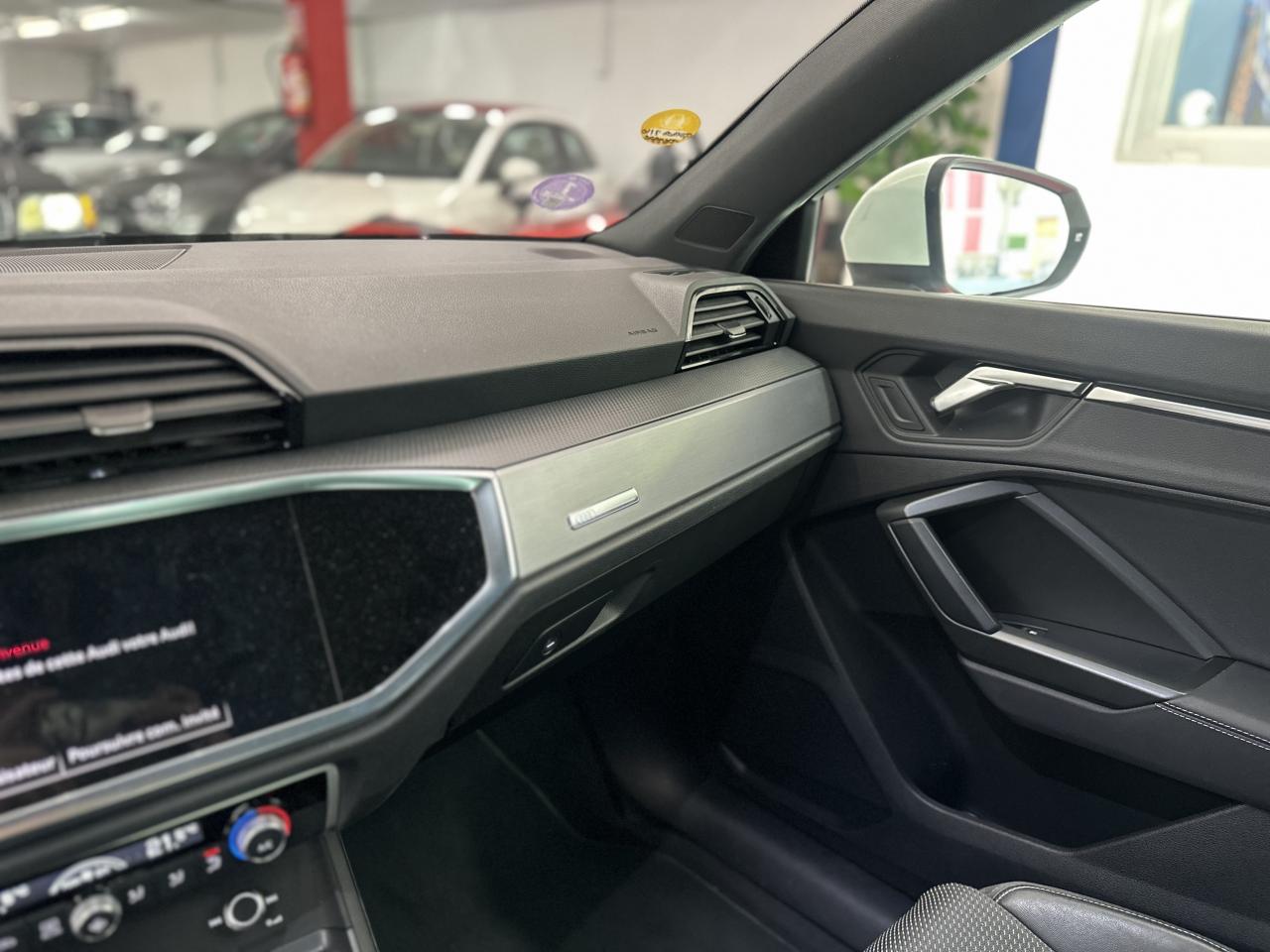 2 prises USB à l’arrière (type-C) et prise 12 volts dans la console centrale arrière6 haut-parleurs passifs ; 4 à l’avant avec 40 watts et 2 à l’arrière avec 20 wattsAccoudoir central coulissant en longueur, avec inclinaison réglable et vide-poches relevableAccoudoirs des contre-portes en similicuir monopur 550Affichage du contrôle de la pression des pneumatiquesAlerte de franchissement de ligne avec maintien de voieAppel d’urgence Audi connectApplications décoratives en aluminium brossé mat foncéAppui lombaire à 4 axes pour les sièges avant, réglage électrique, horizontal et verticalAssise de banquette arrière coulissante en longueurAudi connect navigation et divertissementAudi connect sécurité et assistance en ligneAudi Drive SelectAudi Hold AssistAudi Parking System PlusAudi pre sense basicAudi pre sense frontAudi virtual cockpitBanquette arrière rabattable 40/20/40Câble de recharge HH Type E (8 A)Ciel de pavillon en tissu noirClé à fréquence radioClimatisation automatique confort 2 zonesCombiné d’instruments entièrement numérique 10,25 poucesDétecteur de pluie et allumage automatique des projecteursDirection assistée électromécanique asservie à la vitesseDossier de banquette AR réglables en inclinaisonEcrous antivolFixation pour sièges enfants ISOFIX et Top Tether pour les places arrière extérieuresInterface BluetoothInterface USBJantes en aluminium coulé 5 branches en V, 7 J x 18 avec pneus 235/55 R18Kit réparationMMI navigation plus avec MMI touchOutillage de bordPack aluminium intérieurPack Eclairage intérieurPack S line extérieurPack S line intérieurPack SécuritéPare-brise feuilleté, athermique et acoustiquePeinture vernie Blanc ibisPhares à LED avec clignotants dynamiques à l’arrièrePorte-gobelets dans l'accoudoir central ARRampes de pavillon noiresRéception radio numérique (DAB)Régulateur de vitesseRétroviseur intérieur à position nuit automatique, sans encadrementRétroviseurs extérieurs couleur carrosserieRétroviseurs extérieurs réglables, dégivrants et rabattables électriquement, incluant fonction rabat automatique pour le rétroviseur côté passager avantSièges avant réglables manuellement : hauteur d’assise, positionnement en longueur, inclinaison du dossier, hauteur des appuie-tête et hauteur des ceinturesTrousse de secours, triangle de présignalisation et 2 vestes de sécuritéVolant 3 branches multifonction plus en cuir