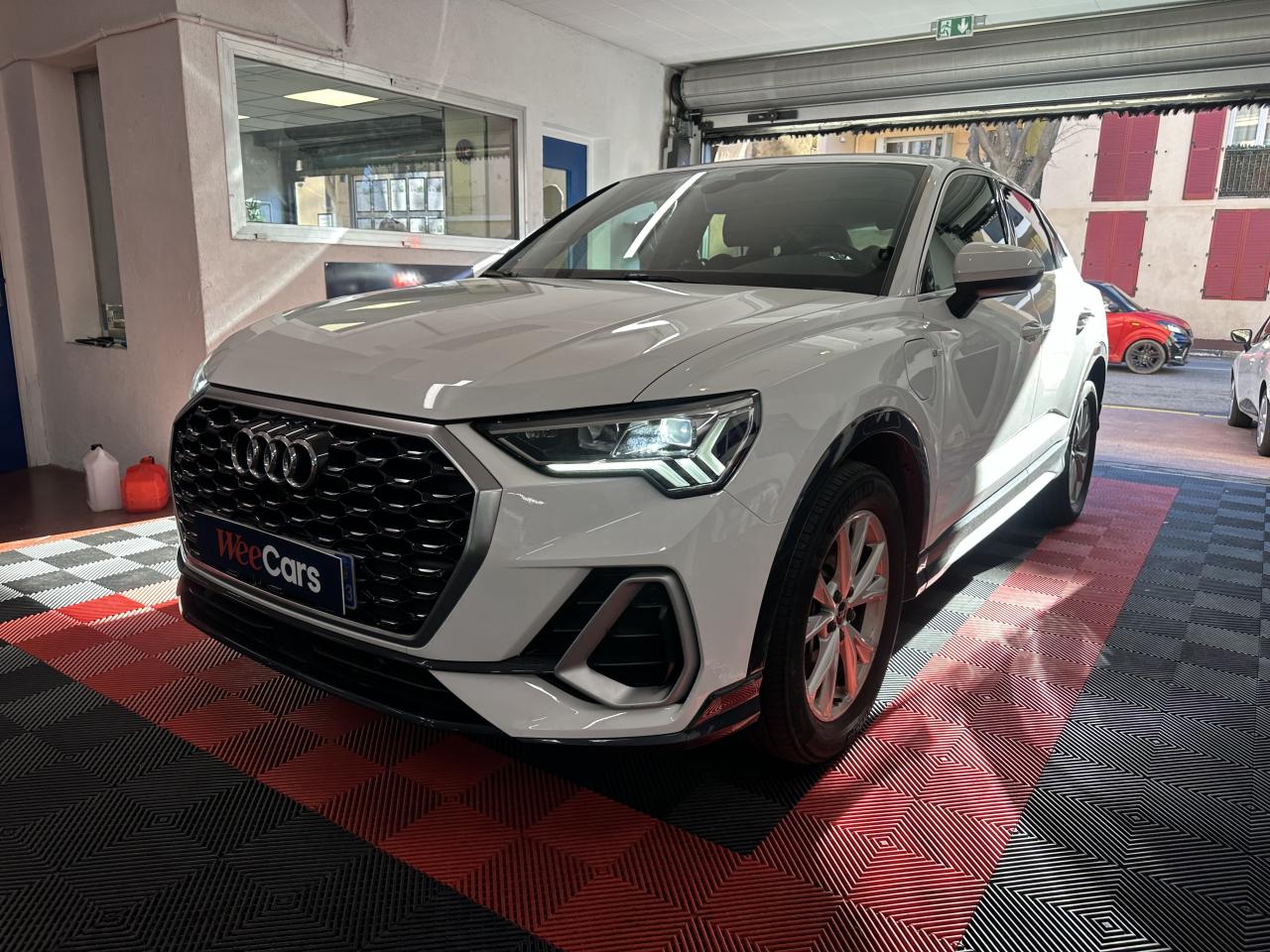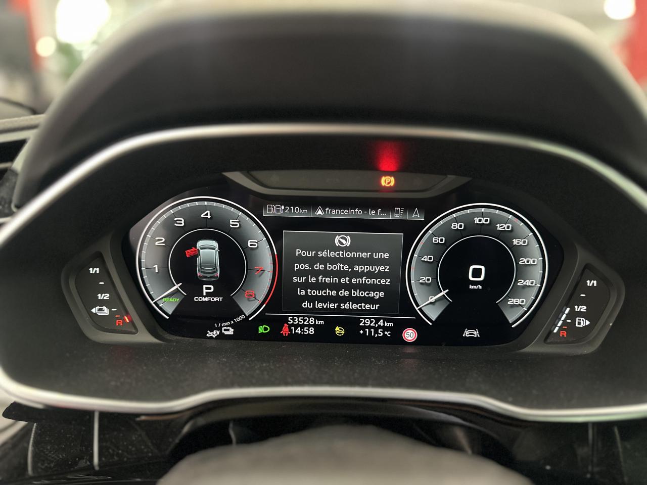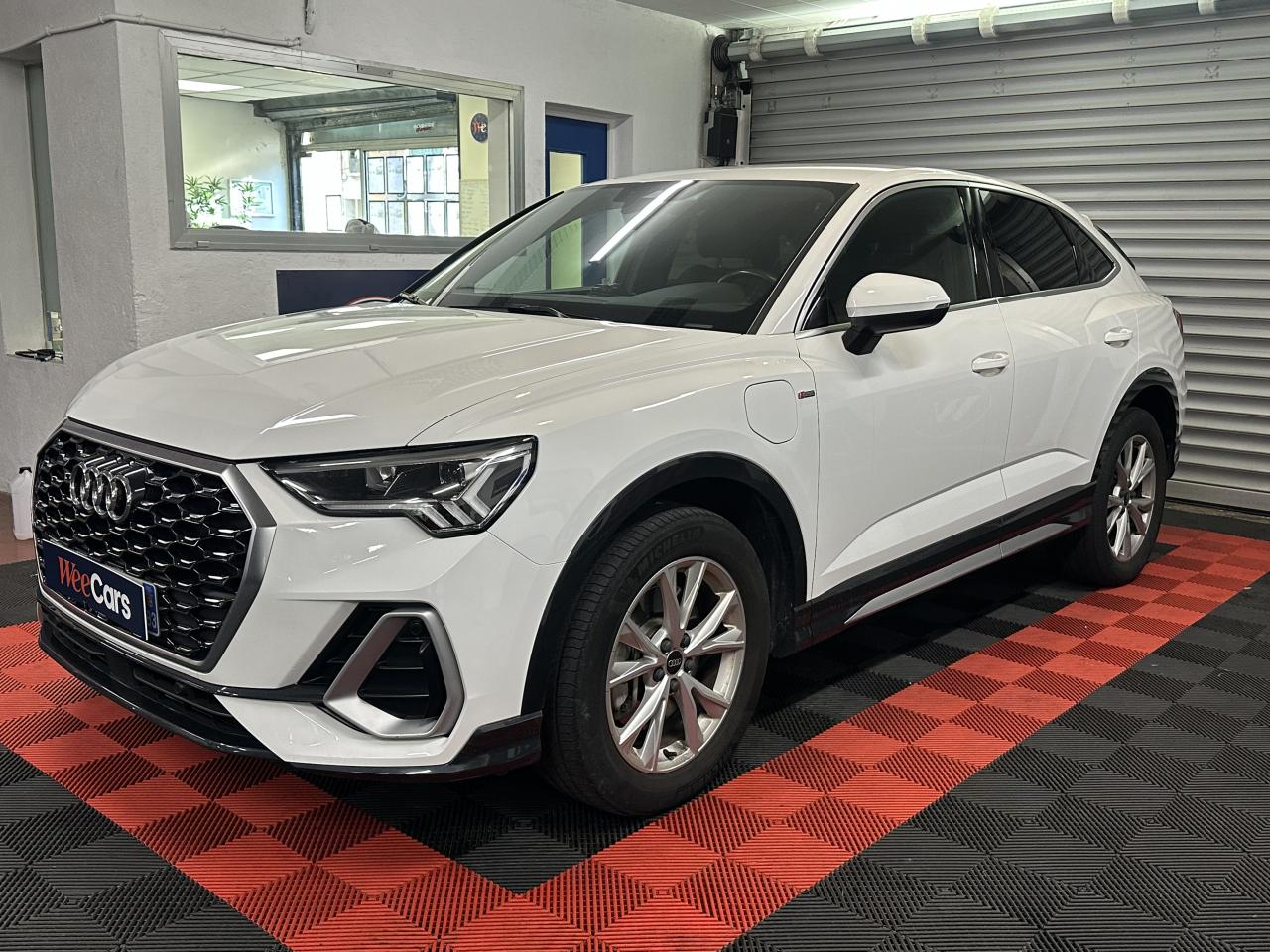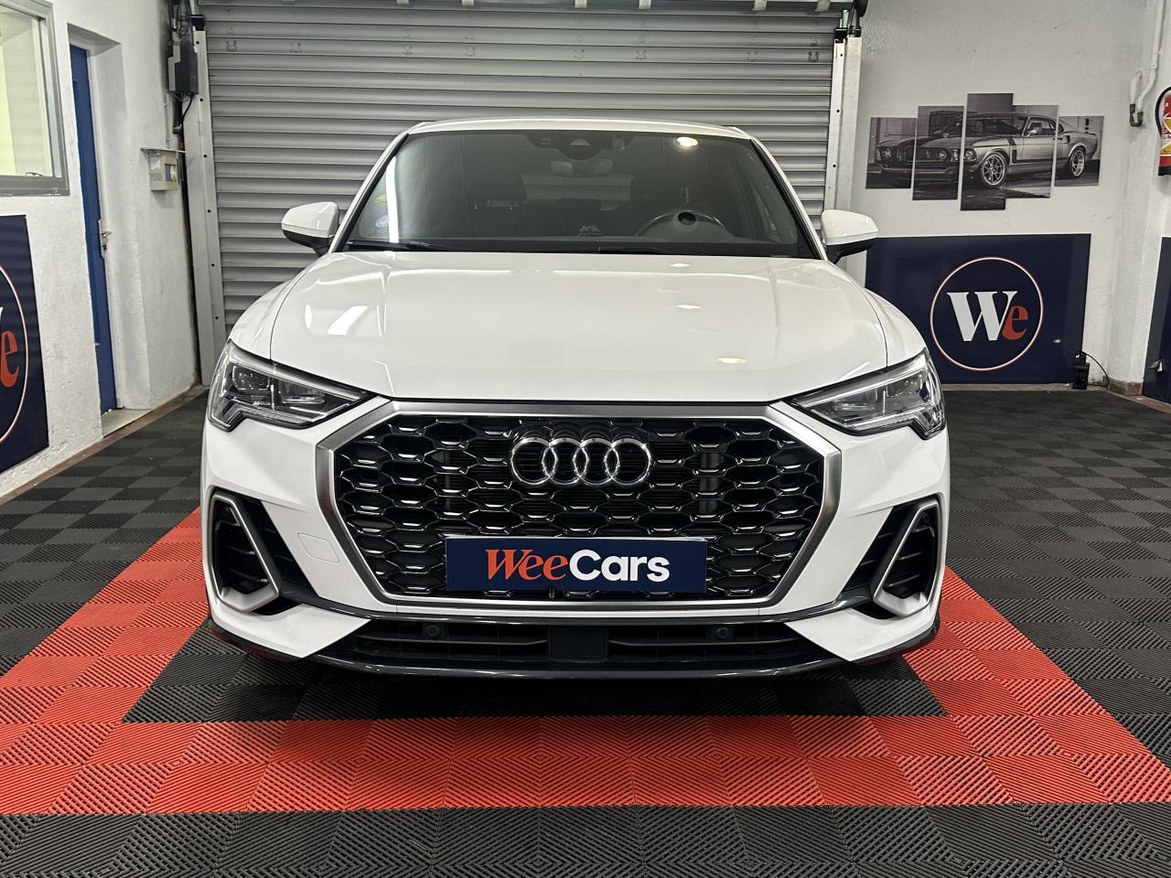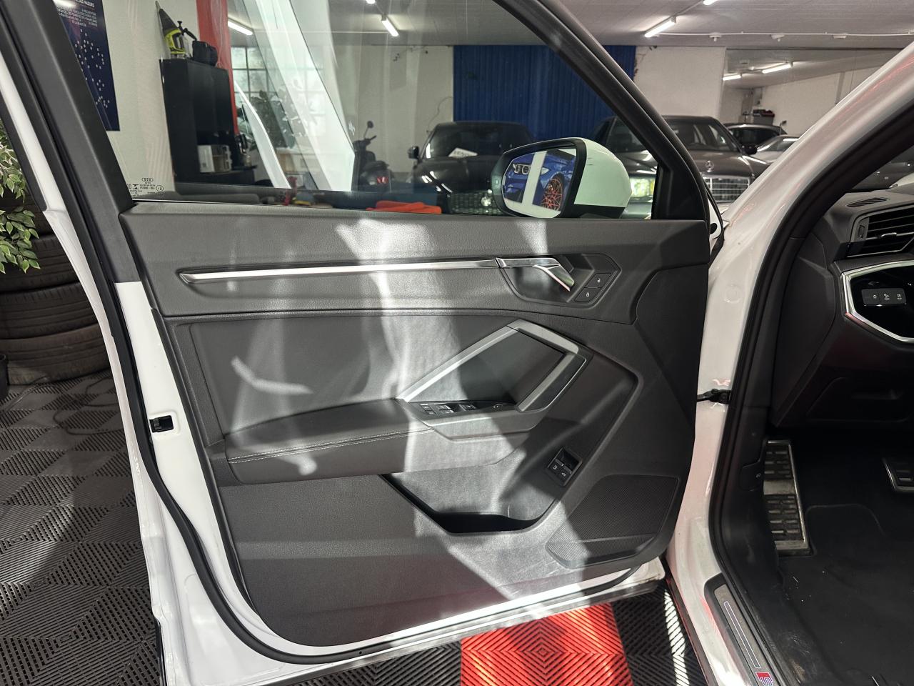 2 prises USB à l’arrière (type-C) et prise 12 volts dans la console centrale arrière6 haut-parleurs passifs ; 4 à l’avant avec 40 watts et 2 à l’arrière avec 20 wattsAccoudoir central coulissant en longueur, avec inclinaison réglable et vide-poches relevableAccoudoirs des contre-portes en similicuir monopur 550Affichage du contrôle de la pression des pneumatiquesAlerte de franchissement de ligne avec maintien de voieAppel d’urgence Audi connectApplications décoratives en aluminium brossé mat foncéAppui lombaire à 4 axes pour les sièges avant, réglage électrique, horizontal et verticalAssise de banquette arrière coulissante en longueurAudi connect navigation et divertissementAudi connect sécurité et assistance en ligneAudi Drive SelectAudi Hold AssistAudi Parking System PlusAudi pre sense basicAudi pre sense frontAudi virtual cockpitBanquette arrière rabattable 40/20/40Câble de recharge HH Type E (8 A)Ciel de pavillon en tissu noirClé à fréquence radioClimatisation automatique confort 2 zonesCombiné d’instruments entièrement numérique 10,25 poucesDétecteur de pluie et allumage automatique des projecteursDirection assistée électromécanique asservie à la vitesseDossier de banquette AR réglables en inclinaisonEcrous antivolFixation pour sièges enfants ISOFIX et Top Tether pour les places arrière extérieuresInterface BluetoothInterface USBJantes en aluminium coulé 5 branches en V, 7 J x 18 avec pneus 235/55 R18Kit réparationMMI navigation plus avec MMI touchOutillage de bordPack aluminium intérieurPack Eclairage intérieurPack S line extérieurPack S line intérieurPack SécuritéPare-brise feuilleté, athermique et acoustiquePeinture vernie Blanc ibisPhares à LED avec clignotants dynamiques à l’arrièrePorte-gobelets dans l'accoudoir central ARRampes de pavillon noiresRéception radio numérique (DAB)Régulateur de vitesseRétroviseur intérieur à position nuit automatique, sans encadrementRétroviseurs extérieurs couleur carrosserieRétroviseurs extérieurs réglables, dégivrants et rabattables électriquement, incluant fonction rabat automatique pour le rétroviseur côté passager avantSièges avant réglables manuellement : hauteur d’assise, positionnement en longueur, inclinaison du dossier, hauteur des appuie-tête et hauteur des ceinturesTrousse de secours, triangle de présignalisation et 2 vestes de sécuritéVolant 3 branches multifonction plus en cuir