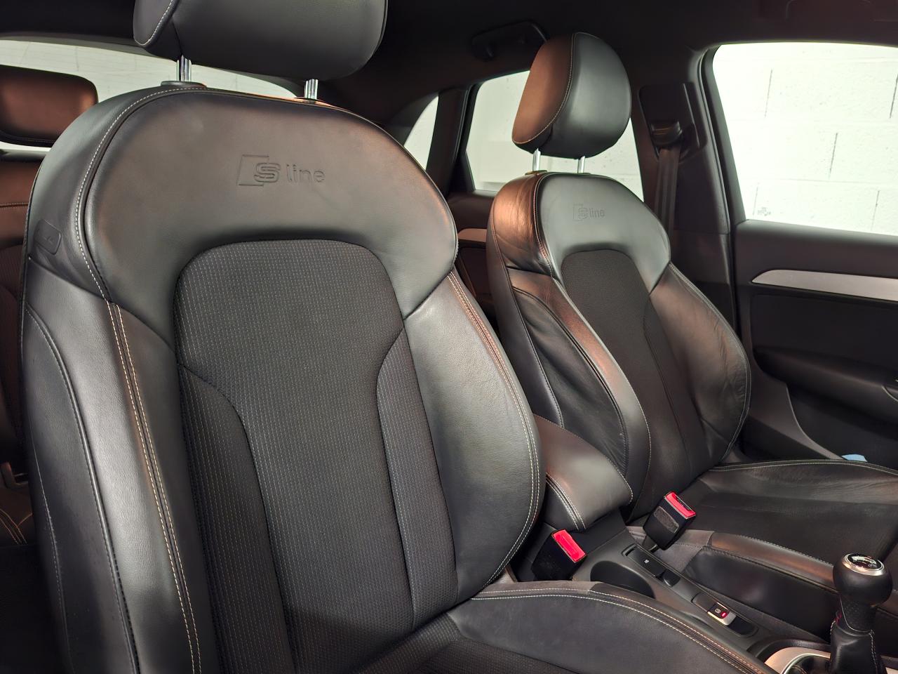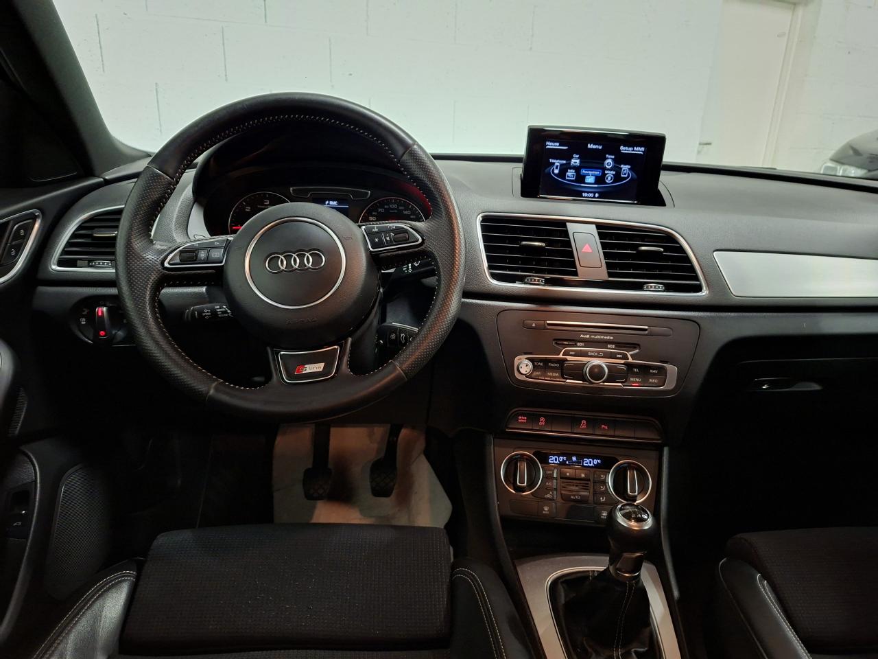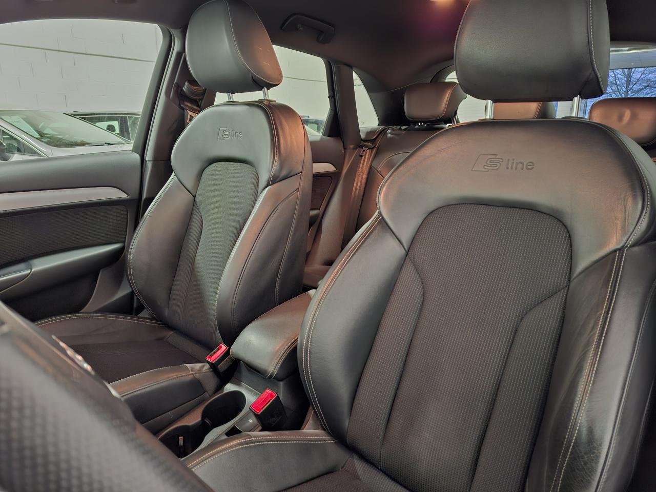 ABS (antiblocage de roue) avec répartiteur de freinage EBV et assistance hydraulique au freinage d'urgenceAccoudoir central avant avec vide-pochesAirbags conducteur et passagerAirbags frontaux conducteur et passager grand volume, à deux niveaux de gonflement suivant la gravité du choc, latéraux avant et arrière intégrés aux dossiers des siègesApplications décoratives S line en aluminium brossé matAppuie-têtes intégraux à l'avant et à l'arrièreASR (antipatinage) pour une motricité et une rigidité transversale optimalesAudi Drive Select avec mode «efficiency»Audi Parking System PlusAudi Singleframe, encadrement gris pierre d'une seule pièce sur la calandre, avec anneaux Audi anodisés au centreAudi Sound SystemAvertisseur deux tons sur le moyeu du volantBanquette arrière rabattable 60/40, déverrouillage à distance des dossiers via un levier dans la garniture latérale du coffreBecquet de pavillonCarrosserie galvaniséeCeintures de sécurité trois points à enrouleur à toutes les places avec prétensionneur réversible, limiteur de tension et réglage en hauteur à l'avantChâssis DynamiqueChâssis Sport S line, surbaissé de 20 mm avec réglages plus dynamiquesCiel de pavillon en tissu noirClimatisation automatique "Confort"Colonne de direction réglable manuellement en hauteur et en profondeurConsole centrale, surélevée, avec vide-poches pouvant être utilisé comme porte-boissons avec volet ouvertContact d'allumage électroniqueContrôle de la pression des pneus avec signaux acoustique et visuel de perte de pressionCouvre-bagages amovible coulissant automatiquement par glissièresDétecteur de pluie et allumage automatique des projecteursDétecteur de port de ceinture avec signaux acoustique et visuel à l'avantDéverrouillage de coffre par touche douceDirection électromécanique à assistance variableEclairage du coffre et de la boîte à gantsEclairage intérieurEcrous antivolEDS (blocage électronique de différentiel)ESP (programme électronique de stabilisation)Essuie-glace arrière avec déclenchement automatique en marche arrièreEssuie-glace deux vitessesFeux arrière à technologie LEDFixations pour sièges enfant ISOFIX aux places extérieures arrièreFrein de stationnement electromécaniqueIndicateur de rapport de vitesse dans le système d'information du conducteurInscription “S line” sur les ailes avantInstrumentation, avec éclairage réglableInterface BluetoothJantes en aluminium coulé 5 branches doubles, 7J x 18'', avec pneus 235/50 R18Lève-vitres électriques à l'avant et à l'arrière avec protection antipincement et fonction ouverture/fermeture Confort par impulsionLunette arrière dégivrante avec minuterieMiroir de courtoisieMMI Radio/Autoradio concertMoulures de seuils avec inscription S line, protection du seuil de chargement supplémentaire en acier inoxydableOEilletons de fixation, quatre oeilletons dans le coffre pour maintenir les bagages et objetsOrdinateur de bord couleur, contrôle Autocheck et programme efficiencyOutillage de bord dans le coffrePack Aluminium extérieurPack brillancePack ConnectivityPack navigation avec données de navigation (carte SD)Pare-brise acoustique avec bande grisePare-soleil rabattables et pivotants, côtés conducteur et passager avant, avec miroir de courtoisie occultablePeinture intégrale : pare-chocs avant, arrière, bas de caisse et passage de roues peints de couleur carrosseriePlancher de chargement réversiblePoignées de maintien avec mécanisme amortisseurPoignées de portes couleur carrosseriePorte-boissons double dans la console centralePréparation pour crochet d'attelagePréparation pour système de repérage satellite permettant la localisation du véhicule en cas de volProjecteurs Xénon plus et feux de jour à LEDProtection antidémarrage électronique, intégrée à la gestion du moteur, activation automatique par la clé du véhiculeProtections latérales anticollisionRampes de pavillon en aluminium poliRégulateur de vitesseRétroviseur intérieur électrochromeRétroviseurs extérieurs escamotables électriquement, dégivrants des deux côtés et buses de lave-glaces dégivrantesRétroviseurs extérieurs réglables électriquement et dégivrants avec clignotants intégrés à LED, boîtiers dans la couleur de carrosserie, miroir asphérique à gauche, convexe à droiteRoue de secours temporaire avec cric de levageSécurité enfants sur le verrouillage des ceintures à enrouleur côté passager avant et à l'arrièreSécurité enfants sur les portières et les vitres électriques arrièreSellerie mixte en cuir et tissu Sprint avec estampillage S lineSièges avant avec réglage manuel de la hauteur, de la longueur et des appuie-tête, ainsi que réglage de l‘inclinaison du dossierSièges avant Sport à réglages manuels et supports lombaires réglables électriquementSingleframe : calandre monobloc, couleur gris pierreSorties d'échappement : visible monoflux, deux sorties à gauche, avec embout chroméSystème d'information du conducteur avec écran blanc TFT monochrome de 3,5 poucesSystème Start/ Stop avec récupération d'énergie de freinageTapis complémentaires à l'avant et à l'arrière, couleur assortie à celle de la moquette, en veloursTémoins de contrôle pour airbags, ESC/ASR, adaptive air suspension, EDS, frein de stationnement électromécanique, régulateur de vitesse, feux de route,feux arrière antibrouillard, clignotants, électronique moteur et protection antidémarrageTriangle de présignalisation, trousse de secours et outillage de bordVerrouillage centralisé avec fonction Autolock et télécommande à fréquence radio intégrée dans la clé du véhiculeVerrouillage électrique de la colonne de directionVide-poches dans les contre-portes à l'avant et à l'arrière pouvant contenir une bouteille de 1,5 litreVitres arrières surteintéesVitres athermiques teintées vertes, pare-brise en verre feuilletéVolant Sport S line multifonction 3 branches en c