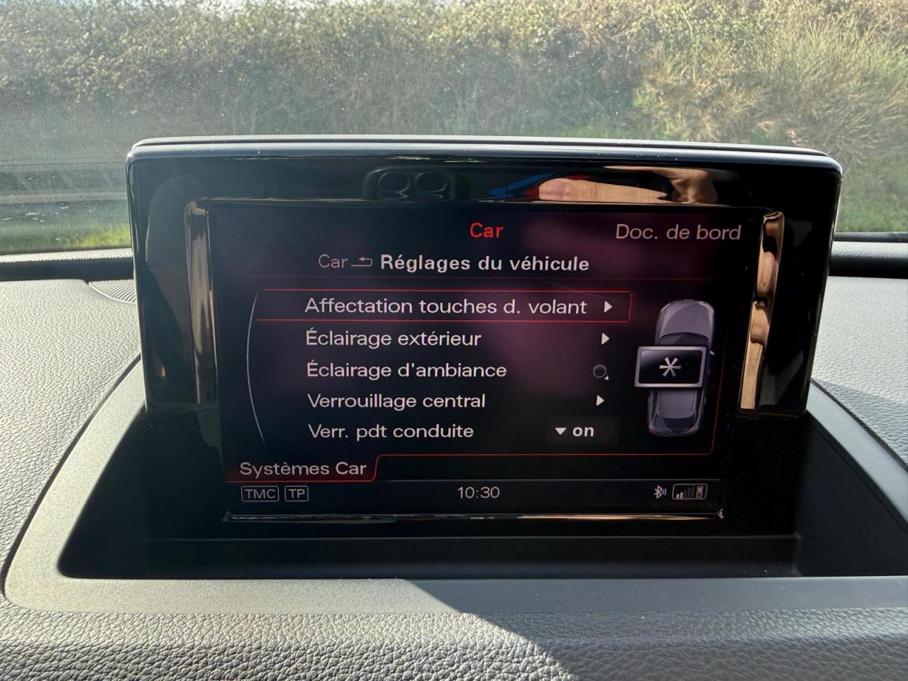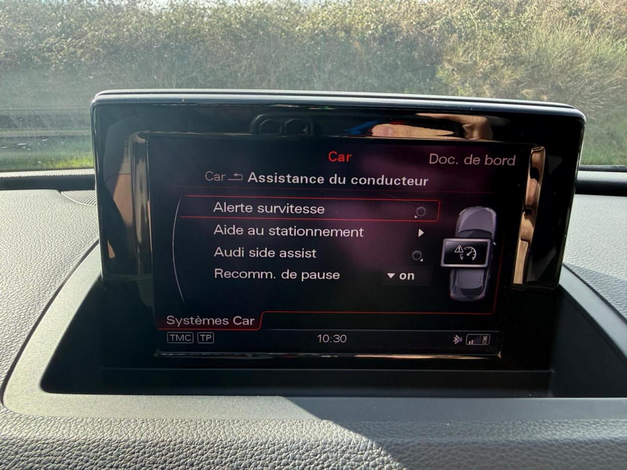 ABS (antiblocage de roue) avec répartiteur de freinage EBV et assistance hydraulique au freinage d'urgenceAccoudoir central avant avec vide-pochesAirbags conducteur et passagerAirbags frontaux conducteur et passager grand volume, à deux niveaux de gonflement suivant la gravité du choc, latéraux avant et arrière intégrés aux dossiers des siègesApplications décoratives S line en aluminium brossé matAppuie-têtes intégraux à l'avant et à l'arrièreASR (antipatinage) pour une motricité et une rigidité transversale optimalesAudi Drive Select avec mode «efficiency»Audi Parking System PlusAudi Singleframe, encadrement gris pierre d'une seule pièce sur la calandre, avec anneaux Audi anodisés au centreAudi Sound SystemAvertisseur deux tons sur le moyeu du volantBanquette arrière rabattable 60/40, déverrouillage à distance des dossiers via un levier dans la garniture latérale du coffreBecquet de pavillonCarrosserie galvaniséeCeintures de sécurité trois points à enrouleur à toutes les places avec prétensionneur réversible, limiteur de tension et réglage en hauteur à l'avantChâssis DynamiqueCiel de pavillon en tissu noirClimatisation automatique "Confort"Colonne de direction réglable manuellement en hauteur et en profondeurConsole centrale, surélevée, avec vide-poches pouvant être utilisé comme porte-boissons avec volet ouvertContact d'allumage électroniqueContrôle de la pression des pneus avec signaux acoustique et visuel de perte de pressionCouvre-bagages amovible coulissant automatiquement par glissièresDétecteur de pluie et allumage automatique des projecteursDétecteur de port de ceinture avec signaux acoustique et visuel à l'avantDéverrouillage de coffre par touche douceDirection électromécanique à assistance variableEclairage intérieurEcrous antivolEDS (blocage électronique de différentiel)ESP (programme électronique de stabilisation)Essuie-glace arrière avec déclenchement automatique en marche arrièreEssuie-glace deux vitessesFeux arrière à technologie LEDFixations pour sièges enfant ISOFIX aux places extérieures arrièreFrein de stationnement electromécaniqueIdentification du modèle à l'arrière, inscription “quattro” à l'arrière, sur la calandre et sur le tableau de bord côté passager avant ; sur demande sans identification du modèleIndicateur de rapport de vitesse dans le système d'information du conducteurInscription “S line” sur les ailes avantInstrumentation, avec éclairage réglableInterface BluetoothJantes en aluminium coulé 5 branches doubles, 7J x 18'', avec pneus 235/50 R18Lève-vitres électriques à l'avant et à l'arrière avec protection antipincement et fonction ouverture/fermeture Confort par impulsionLunette arrière dégivrante avec minuterieMiroir de courtoisieMMI Radio/Autoradio concertMoulures de seuils avec inscription S line, protection du seuil de chargement supplémentaire en acier inoxydableOEilletons de fixation, quatre oeilletons dans le coffre pour maintenir les bagages et objetsOrdinateur de bord couleur, contrôle Autocheck et programme efficiencyOutillage de bord dans le coffrePack Aluminium extérieurPack brillancePack ConnectivityPack navigation avec données de navigation (carte SD)Palettes de passage des vitesses au volantPare-brise acoustique avec bande grisePare-soleil rabattables et pivotants, côtés conducteur et passager avant, avec miroir de courtoisie occultablePeinture intégrale : pare-chocs avant, arrière, bas de caisse et passage de roues peints de couleur carrosseriePlancher de chargement réversiblePoignées de maintien avec mécanisme amortisseurPoignées de portes couleur carrosseriePorte-boissons double dans la console centralePréparation pour crochet d'attelagePréparation pour système de repérage satellite permettant la localisation du véhicule en cas de volProjecteurs Xénon plus et feux de jour à LEDProtection antidémarrage électronique, intégrée à la gestion du moteur, activation automatique par la clé du véhiculeProtections latérales anticollisionRampes de pavillon en aluminium poliRégulateur de vitesseRétroviseur intérieur électrochromeRétroviseurs extérieurs escamotables électriquement, dégivrants des deux côtés et buses de lave-glaces dégivrantesRétroviseurs extérieurs réglables électriquement et dégivrants avec clignotants intégrés à LED, boîtiers dans la couleur de carrosserie, miroir asphérique à gauche, convexe à droiteRoue de secours temporaire avec cric de levageSécurité enfants sur le verrouillage des ceintures à enrouleur côté passager avant et à l'arrièreSécurité enfants sur les portières et les vitres électriques arrièreSellerie mixte en cuir et tissu Sprint avec estampillage S lineSièges avant avec réglage manuel de la hauteur, de la longueur et des appuie-tête, ainsi que réglage de l‘inclinaison du dossierSièges avant Sport à réglages manuels et supports lombaires réglables électriquementSingleframe : calandre monobloc, couleur gris pierreSorties d'échappement : visible monoflux, deux sorties à gauche, avec embout chroméSystème d'information du conducteur avec écran blanc TFT monochrome de 3,5 poucesSystème Start/ Stop avec récupération d'énergie de freinageTapis complémentaires à l'avant et à l'arrière, couleur assortie à celle de la moquette, en veloursTémoins de contrôle pour airbags, ESC/ASR, adaptive air suspension, EDS, frein de stationnement électromécanique, régulateur de vitesse, feux de route,feux arrière antibrouillard, clignotants, électronique moteur et protection antidémarrageTriangle de présignalisation, trousse de secours et outillage de bordVerrouillage centralisé avec fonction Autolock et télécommande à fréquence radio intégrée dans la clé du véhiculeVerrouillage électrique de la colonne de directionVide-poches dans les contre-portes à l'avant et à l'arrière pouvant contenir une bouteille de 1,5 litreVitres arrières surteintéesV