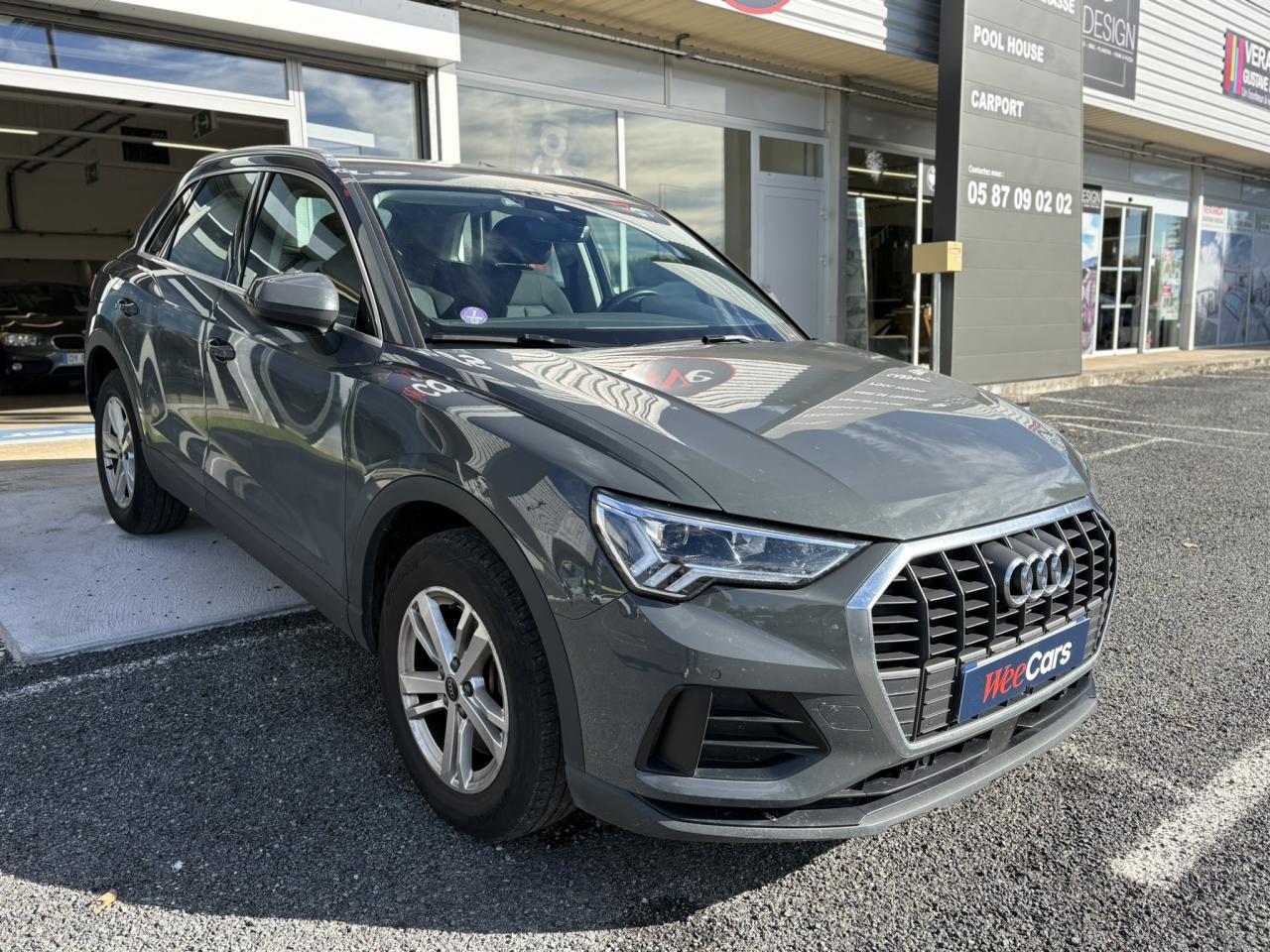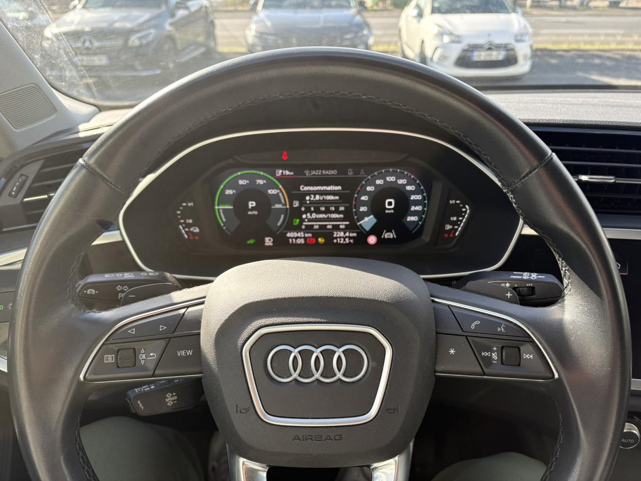 2 prises USB à l’arrière (type-C) et prise 12 volts dans la console centrale arrière6 haut-parleurs passifs ; 4 à l’avant avec 40 watts et 2 à l’arrière avec 20 wattsAccoudoir central coulissant en longueur, avec inclinaison réglable et vide-poches relevableAffichage du contrôle de la pression des pneumatiquesAlerte de franchissement de ligne avec maintien de voieAppel d’urgence Audi connectApplications décoratives Argent micrométalliqueAppui lombaire à 4 axes pour les sièges avant, réglage électrique, horizontal et verticalAssise de banquette arrière coulissante en longueurAudi connect navigation et divertissement plusAudi connect sécurité et assistance en ligneAudi Drive SelectAudi Hold AssistAudi Parking System PlusAudi pre sense basicAudi pre sense frontAudi virtual cockpitBanquette arrière rabattable 40/20/40Câble de recharge HH Type E (8 A)Câbles de recharge pour téléphone portable, compatibles iPhone et AndroidCalandre grenueCaméra de reculClé à fréquence radioClimatisation automatique confort 2 zonesCombiné d’instruments entièrement numérique 10,25 poucesDétecteur de pluie et allumage automatique des projecteursDiffuseur anthraciteDirection assistée électromécanique asservie à la vitesseDossier de banquette AR réglables en inclinaisonEcrous antivolFixation pour sièges enfants ISOFIX et Top Tether pour les places arrière extérieuresInterface BluetoothInterface USBJantes en aluminium coulé 5 branches doubles, 7 J x 17" avec pneus 215/65 R17Kit réparationMMI navigation plus avec MMI touchMoulures de seuils de portes en plastiqueOutillage de bordPack aluminium intérieurPack Brillance extérieurPack Eclairage intérieurPack SécuritéPare-brise feuilleté, athermique et acoustiquePare-chocs, passage de roue et extensions de bas de caisse grenues, en noirPeinture vernie Blanc ibisPhares à LED avec clignotants dynamiques à l’arrièreProtection de seuil de chargement en plastiqueRampes de pavillon en aluminium anodiséRéception radio numérique (DAB)Régulateur de vitesseRétroviseur intérieur à position nuit automatique, sans encadrementRétroviseurs extérieurs couleur carrosserieRétroviseurs extérieurs réglables, dégivrants et rabattables électriquement, incluant fonction rabat automatique pour le rétroviseur côté passager avantSellerie Tissu "Argument"Sièges avant classiquesSièges avant réglables manuellement : hauteur d’assise, positionnement en longueur, inclinaison du dossier, hauteur des appuie-tête et hauteur des ceinturesSuspension ConfortTapis de sol AV et ARTrousse de secours, triangle de présignalisation et 2 vestes de sécuritéVolant 3 branches multifonctions plus en cuir et palettes de changement de vitesses