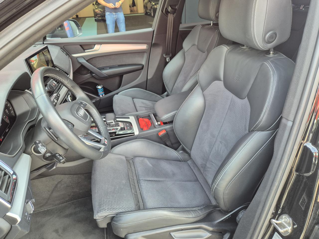Accoudoir central confort à l'avant avec inclinaison réglable et coulissant en longueurAffichage du contrôle de la pression des pneumatiquesAirbags grand volume pour le conducteur et le passagerAirbags latéraux à l'avant et système d'airbags de têteAntipatinage ASR pour une motricité optimale, empêche le patinage des roues motricesAppel d’urgence et service Audi connect incluant commande du véhiculeApplications décoratives en aluminium brossé matAppui lombaire à 4 axes pour les sièges avant, réglage électrique, horizontal et verticalAudi connect avec carte SIM intégrée (e-SIM) et licence d'utilisation pour 3 ansAudi Drive SelectAudi Hold AssistAudi parking system plus : signal acoustique et visuel d'aide au stationnement avant et arrière par pictogrammes sur l'écranAudi phone box lightAudi pre sense cityAudi smartphone interface (Apple CarPlay ou Google Android Auto)Audi Sound SystemAudi virtual cockpit plus : combiné d'instruments entièrement numérique de 12,3" en résolution Full HDBanquette arrière plusBlocage électronique de différentiel (EDS)Câbles de recharge pour téléphone portable, compatibles iPhone et AndroidCaméra de reculCaméra multifonction pour système d'assistance à la conduiteCeintures de sécurité automatiques à trois points pour tous les sièges et contrôle de port de ceinture à l’avantChâssis sport SCiel de pavillon en tissu noirClimatisation automatique confort 3 zonesColonne de direction de sécurité, contient un système mécanique de déplacement avec fonction d'amortissement qui complète le potentiel de sécurité de la ceinture et de l'airbagCommande de désactivation d'airbag passager avantDétecteur de pluie et allumage automatique des projecteursDirection assistée électromécaniqueDispositif anti-erreur de carburantEcrous antivolESC (contrôle électronique de stabilisation)Finitions Extérieures S lineFixation pour sièges enfants ISOFIX et Top Tether pour les sièges extérieurs arrière support normalisé pour une fixation pratique des sièges enfants ISOFIXHayon de coffre à ouverture et fermeture électriquesIdentification du modèle selon le nouveau marquage de puissanceInterface BluetoothInterfaces de charge USB pour les passagers arrièreJantes en aluminium en style étoile à 5 bras, 8,0J x 18’’ Pneus : 235/60 R 18Keyless Entry et Keyless GoLave-phares haute pressionMMI navigation plus avec MMI touchMotorisations avec technologie hybride léger (Mild Hybrid)Moulures de seuil avec insert en aluminium à l’avant, éclairées, avec inscription SOutillage de bordPack Brillance ExtérieurPack EclairagePack Eclairage intérieurPack Rangement et CoffrePare-soleil côté conducteur et passagerPédalier et repose-pied en acier inoxydablePeinture vernie Blanc ibisPréparation pour crochet d'attelageProjecteurs Matrix LED et feux arrière à LED avec clignotants dynamiquesProtection antidémarrage électronique, intégrée à la gestion du moteur, activation automatique par la clé du véhiculeRéception radio numérique : réception des signaux DAB, DAB+ et DMB audioRecommandation de reposRécupération en augmentant la tension du générateur, l'énergie cinétique est convertie en énergie électrique utilisable durant les phases de décélération ou de freinageRégulateur et limiteur de vitesseRéservoir AdBlue 24LRéservoir de 70 litresRétroviseur intérieur à position nuit automatique, sans encadrementRétroviseurs extérieurs avec clignotants à LED intégrés couleur carrosserieRétroviseurs extérieurs réglables et escamotables électriquement, jour/nuit automatique, dégivrants des deux côtés et buses de lave-glaces dégivrantesS tronic : boîte séquentielle 7 vitesses à double embrayageSans barre de toit longitudinalesSécurité enfants manuelleSellerie mixte Cuir / Séquence S lineSièges avant réglables manuellement en hauteur et en profondeur, appuie-tête réglables manuellementSièges Sport à l'avantSurfaces d’accentuation façon verre en noirSystème Start/Stop réduit la consommation de carburant ainsi que les émissions de CO2Tapis complémentaires à l'avant et à l'arrièreTapis de coffreTire Mobility System : compresseur et produit de colmatage en cas de crevaisonTriangle de présignalisation et trousse de secoursVide-poches dans les contre-portes avant et arrièreVitrage acoustique pour les vitres de portières avantVitres athermiquesVitres surteintées (vitrage Privacy) lunette arrière et vitres latérales arrière surteintéesVolant réglable manuellement en hauteur et en profondeurVolant Sport contour en cuir style 3 branches aplati en bas avec multifonction plus et palettes de changement de vitesses