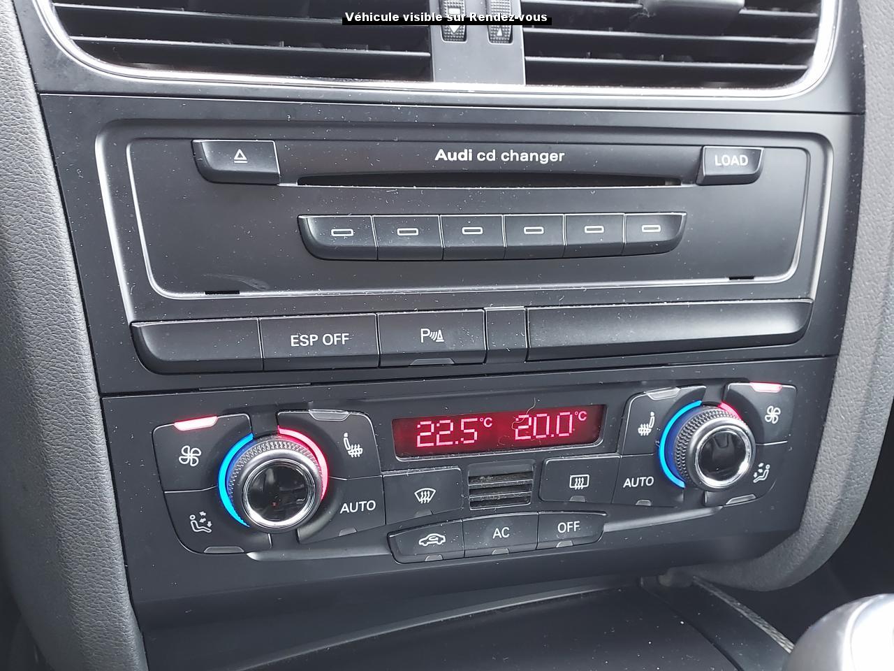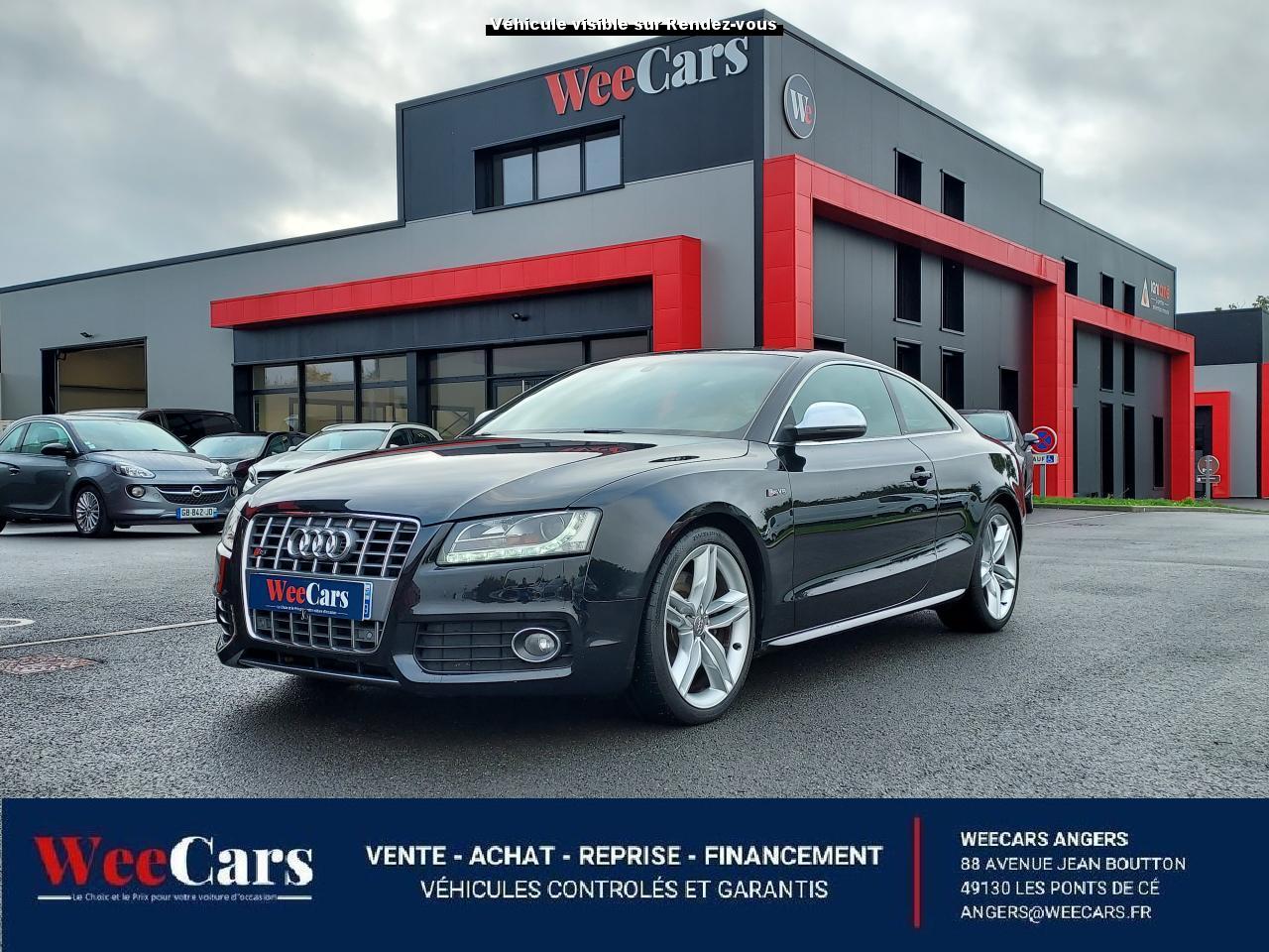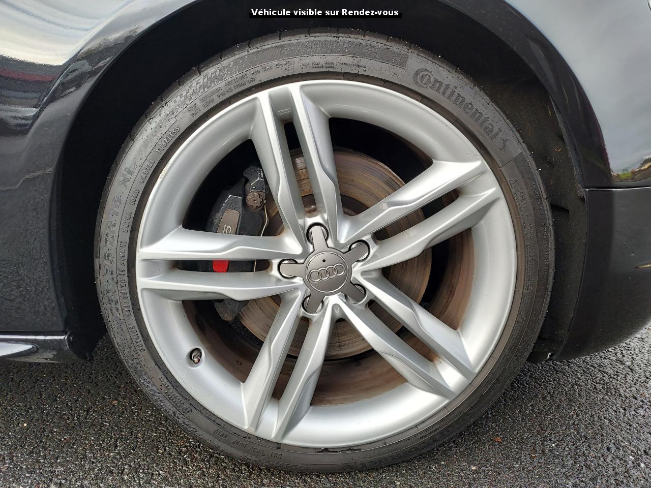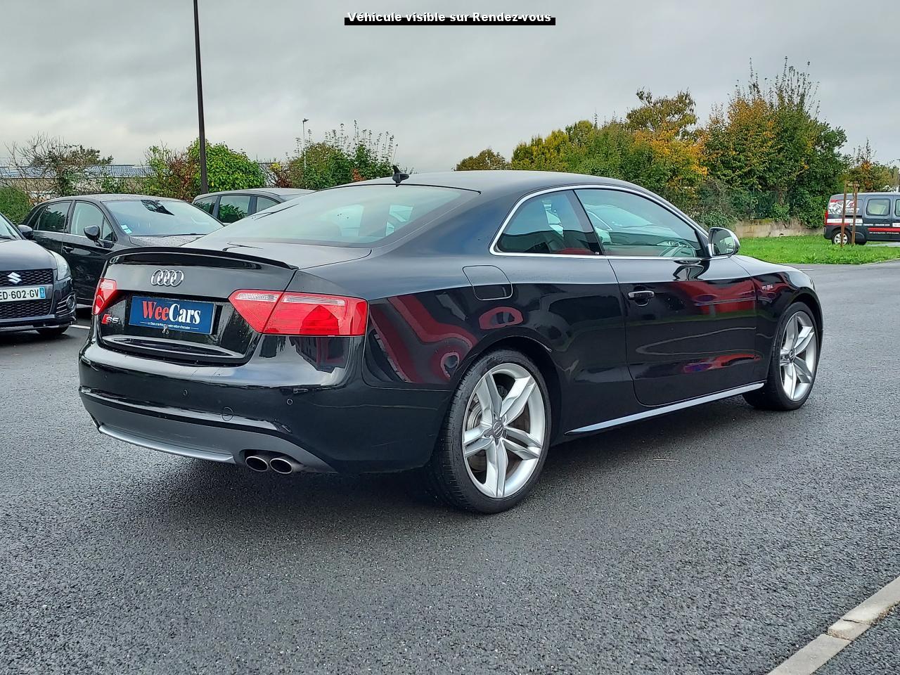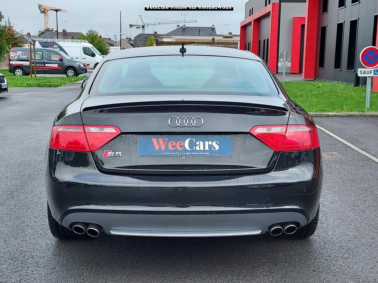 Accoudoir central avant avec vide-poches et 2 prises 12 VAccoudoir central dans le dossier des sièges arrière, rabattable ; compartiment avec trousse de secoursAirbags grand volume pour le conducteur et le passagerAirbags latéraux (airbag thorax et bassin à l'avant)Allume-cigareAntipatinage ASR : empêche le patinage des roues motrices ; assure une motricité optimaleAppuie-têtes, réglables à l'avant et à l'arrièreAudi Hold Assist : système désactivable maintenant le véhicule à l'arrêt en descente comme en côte; permet un redémarrage confortable sans mettre le frein à mainBlocage électronique de différentiel (EDS)Boîte manuelle 6 vitesses entièrement synchronisée, embrayage monodisque à sec commandé hydrauliquement avec garnitures sans amianteBuses de lave-glace chauffantesCarrosserie entièrement galvanisée contre la corrosionChâssis Sport spécifique S : suspension réglée pour un contact plus direct avec la route et un comportement sportifClimatisation automatique Confort Plus 3 zonesColonne de direction de sécuritéContact d'allumage électronique, clé de contact mémorisant différentes données d'entretienDétecteur de pluie et allumage automatique des projecteursDirection assistée ServotronicEclairage intérieur à extinction temporisée et contacteurs sur toutes les portièresFixation pour sièges enfants ISOFIX à l'arrièreFrein de stationnement electromécaniqueIndicateur de rapport de vitesse dans le système d'information du conducteur : apporte assistance au conducteur dans le choix du rapport de vitesse adaptéInstrumentation, avec éclairage réglable, compteur de vitesse électronique avec compteur kilométrique et compteur journalier, compte-tours, horloge, affichage de la température du liquide de refroidissement et jauge de carburantJantes en aluminium coulé style S 5 branches doubles, 8,5 J x 18”, avec pneus 245/40 R18Lave-glace, deux vitesses, 4 réglages d'intermittence, balayage coup par coup et lavage-balayage automatiqueLève-vitres électriques à l'avant avec protection antipincement, fonction ouverture/fermeture confort par impulsions ; vitres arrière fixesOuverture de coffre automatiquePack EclairagePorte-boissons sur la console centralePrétensionneurs des ceintures de sécurité avantPrétensionneurs et limiteurs d'effort des ceintures de sécurité à l'avantProgramme de stabilité électronique (ESP)Projecteurs antibrouillardProjecteurs au Xenon plusProtection antidémarrage électroniqueQuattro : transmission intégrale permanente avec répartition asymétrique et dynamique de coupleRadio Concert lecteur CD et lecteur cartes SD compatibles MP3, concept d'utilisation MMI, écran couleur de 6,5 pouces, fonction Memo-TP, GALA, phase diversifiéeRéglage d'appuis lombaires électriques sur 4 plans pour sièges avantRégulateur de vitesseRétroviseurs extérieurs électriques et dégivrantsRoue de secours temporaireSellerie cuirSièges Sport S à l'avant avec appuis-têtes intégrésSorties d'échappement : visible, à double flux, une sortie à gauche et une à droiteSystème acoustique d'aide au stationnement arrièreSystème antiblocage ABS avec répartiteur de freinage EBV, programme électronique de stabilisation ESP avec amplificateur hydraulique de freinage d'urgenceSystème antiblocage ABS avec répartiteur électronique de freinage EBVTélécommande à fréquence radio pour le verrouillage centraliséTransmission intégrale permanente quattroVerrouillage centralisé avec fonction Autolock et télécommande à fréquence radioVerrouillage électrique de la colonne de directionVolant réglable en hauteur et en profondeurVolant Sport multifonction en cuir style 3 branches avec emblème S5 et airbag grand volume