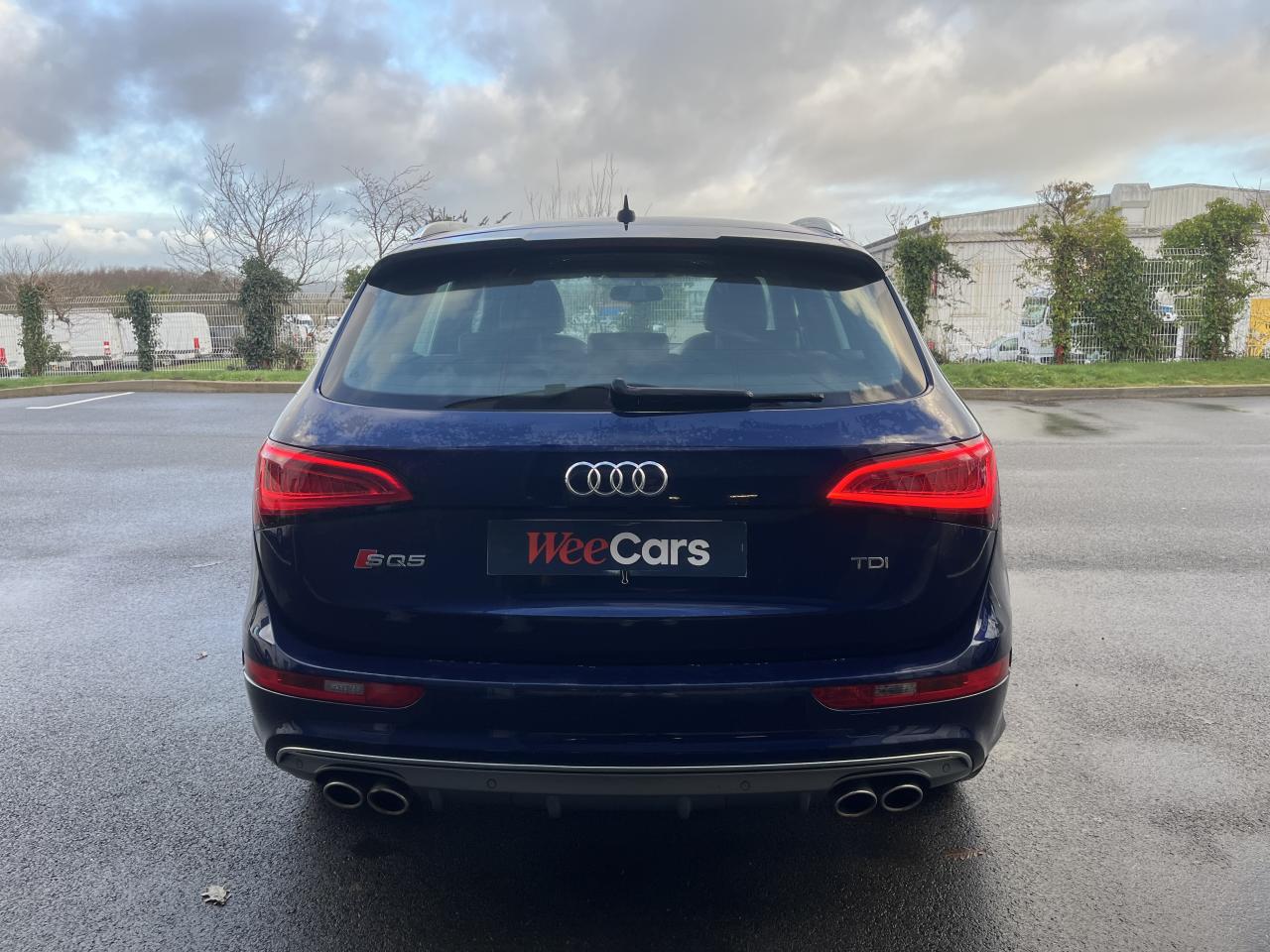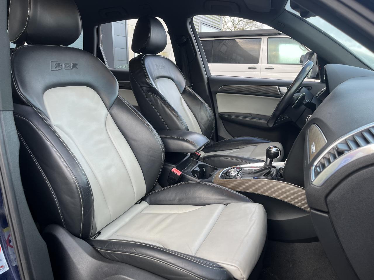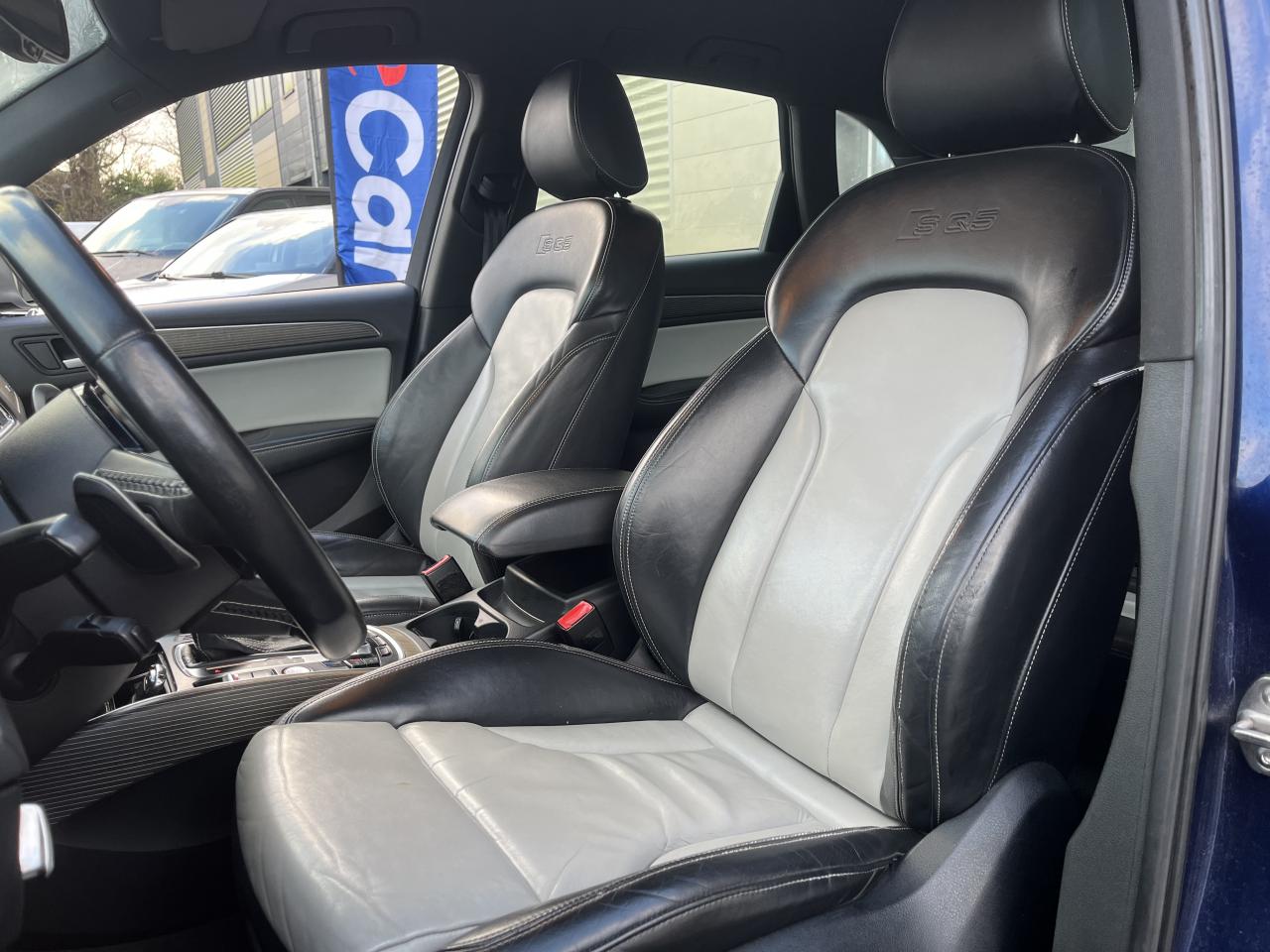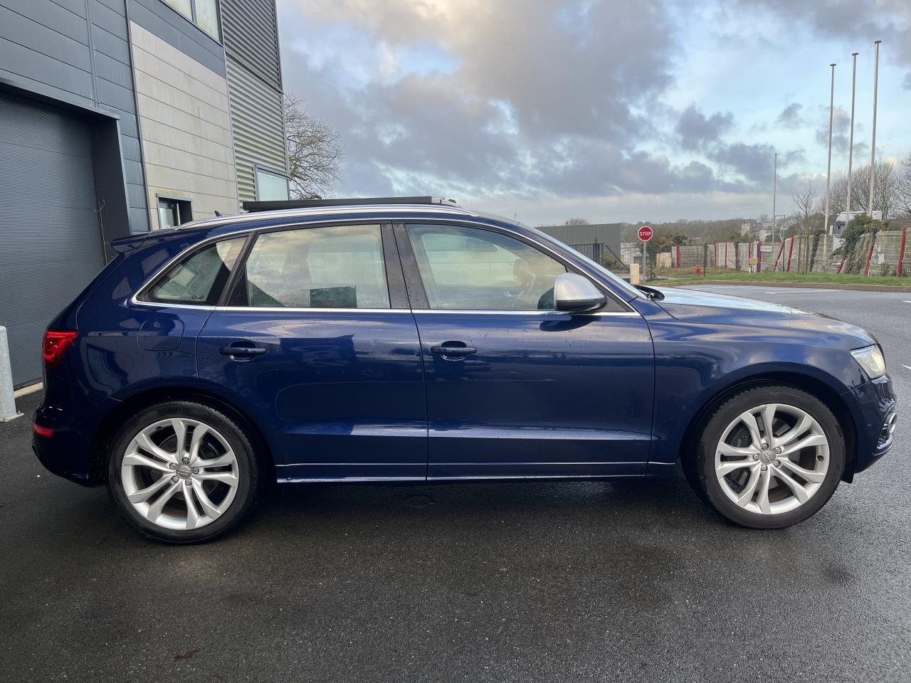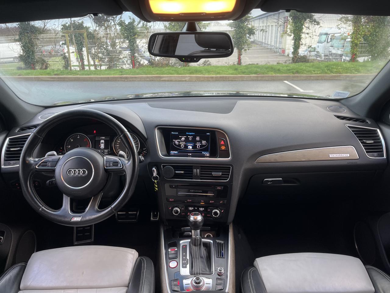 Accoudoir central à l'avant, pour conducteur et passager avant, coulissant en longueur de 65 mm, inclinaison réglable rabattable, avec vide-poches sous l'accoudoir central, incluant deux porte-boissons et prise de 12 V dans la console centraleAccoudoir central avant avec vide-poches et 2 prises 12 VAccoudoir central dans le dossier des sièges arrière, rabattableAdaptive Light : projecteurs directionnelsAdvanced Key : système d'autorisation d'accès et de démarrage main libreAirbag grand volume conducteur et le passager avant, détection de la position du siège, airbag adaptatif conducteur et passager avantAirbags latéraux (airbag thorax et bassin à l'avant)Antidémarrage électronique intégré à la commande du moteur ; activation automatique par la clé du véhiculeAntipatinage électronique ASRApplications décoratives en aluminium brossé matAppuie-tête, réglables à l'avant et à l'arrièreAssistance au freinage d'urgence, amplificateurs de freins en tandemAudi BackguardAudi connect (inclut GPS Advanced et préparation téléphone 8W)Audi Hold AssistAudi Music InterfaceAudi Sound System (180 W)Audi Tracking SystemAvertisseur de freinage d'urgence et fonction de séchage de disques de freins automatiqueAvertisseur deux tons sur le moyeu du volantBadges “V6T” sur les ailes avant et emblème “SQ5” sur les étriers de freinsBanquette arrière rabattable 60/40, déverrouillage à distance des dossiers via un levier dans la garniture latérale du coffreBecquet de pavillonBoîte à gants éclairéeCarrosserie galvanisée: autoportante, soudée au groupe-plancher, zones de déformation définies à l'avant et à l'arrièreCeintures de sécurité : ceintures trois points à enrouleur pour tous les sièges, avec contrôle du port à l'avant, assorties à la couleur de l'habitacleCendrier dans la console centrale à l'avant et à l'arrière, allume-cigare à l'avantCendrier éclairé à l'avantChâssis DynamiqueClimatisation automatique confort 3 zonesCoffre et hayon éclairésColonne de direction de sécuritéConsole centrale, surélevée, avec compartiment de rangement et volet roulantContact d'allumage électroniqueContrôle de pression des pneus ( TPMS )Contrôle électronique de stabilisation (ESC) avec détection de barres de toit et mode offroadDétecteur de pluie et de luminosité incluant rétroviseur intérieur jour/nuit automatiqueDéverrouillage de coffre par touche douce : déverrouillage avec assistance électriqueDirection assistée électromécanique, direction à crémaillère sans entretien avec asistance asservie à la vitesseEclairage intérieur, à temporisation avec contacteur sur toutes les portièresEcran central avec affichage en couleurEcrous antivolEssuie-glace arrière avec déclenchement automatique en marche arrièreEssuie-glace deux vitesses : réglage d'intermittence sur 4 niveaux, commande de balayage coup par coup, lavage-balayage automatiqueÉtui à lunettes, dans le module d'éclairage intérieur avant, au-dessus du rétroviseur intérieurFeux arrière, rouges, avec feux de recul blancs, feux arrière de brouillard intégrés, avec capot de coffre ouvert : fonction feux arrière dans le bandeau d'éclairage du pare-chocsFeux de route assistés : gestion automatique du passage de feux de croisement à pleins phares et inversementFilet de séparation, vertical, amovibleFrein de stationnement electromécaniqueHayon assisté électriquement pour l'ouverture et la fermetureIdentification du modèle à l'arrière, inscription “SQ5” à l'arrière, sur la calandre et sur l'embase du volantIndicateur de rapport de vitesse dans le système d'information du conducteurIndication de l'usure des garnitures de freins à l'avant ; affichage sur l'écran centralInstrumentation, avec éclairage réglable : tachymètre électronique avec compteur kilométrique totalisateur et journalier, compte-tours, heure, affichage de la température du liquide de refroidissement et de la réserve de carburantJantes en aluminium coulé style 5 branches double S, 8,5 J x 20” avec pneus 255/45 R20 100WLampe à l'avant avec deux spots de lecture supplémentairesLampes à l'arrière avec fonction spots de lectureLève-vitres électriques à l'avant et à l'arrière avec protection antipincement et fonction ouverture/fermeture Confort par impulsionLimiteurs d'effort sur les ceintures de sécurité avantLunette arrière dégivrante avec minuterieMiroir de courtoisieOEilletons de fixation, quatre oeilletons dans le coffre pour arrimer le chargementOrdinateur de bord couleur, système de contrôle Autocheck et programme efficiencyOutillage de bord dans le coffrePack Aluminium extérieurPack Éclairage intérieurPack RangementPare-soleil, rabattables et pivotants, côté conducteur et passager avantParking System Plus avec caméra de reculPeinture intégrale : pare-chocs avant et arrière et bas de caisse en couleur carrosseriePhares antibrouillard intégrés dans le bouclier avantPoignées de maintien avec mécanisme amortisseur : quatre poignées encastrées dans le ciel de pavillonPoignées de portes couleur carrosseriePorte-boissons double dans la console centralePréparation pour crochet d'attelagePréparation pour siège enfant ISOFIX pour sièges latéraux arrièrePrétensionneurs des ceintures de sécurité avantProjecteurs antibrouillardProjecteurs Xénon Plus incluant lave-phares, feux de jour à LEDQuattro, transmission intégrale permanente avec répartition asymétrique et dynamique de couple, différentiel central autobloquant, blocage électronique de différentiel EDS par intervention sur les freins des roues motricesRampes de pavillon en aluminium poli incluant barres de toit transversalesRégulateur de vitesseRéservoir avec protection contre les erreurs de ravitaillementRétroviseurs extérieurs : avec clignotants à diodes intégrés, réglables et rabattable électriquement, dégivrants avec coques laquées dans la couleur de carrosserie, miroir asphéri