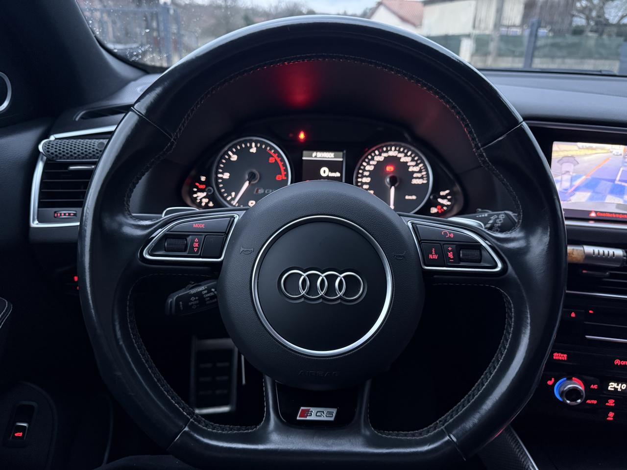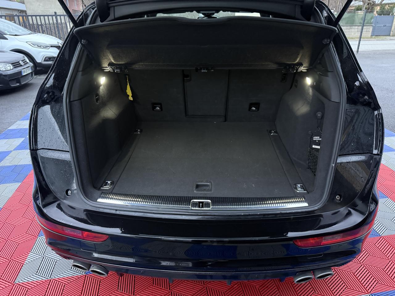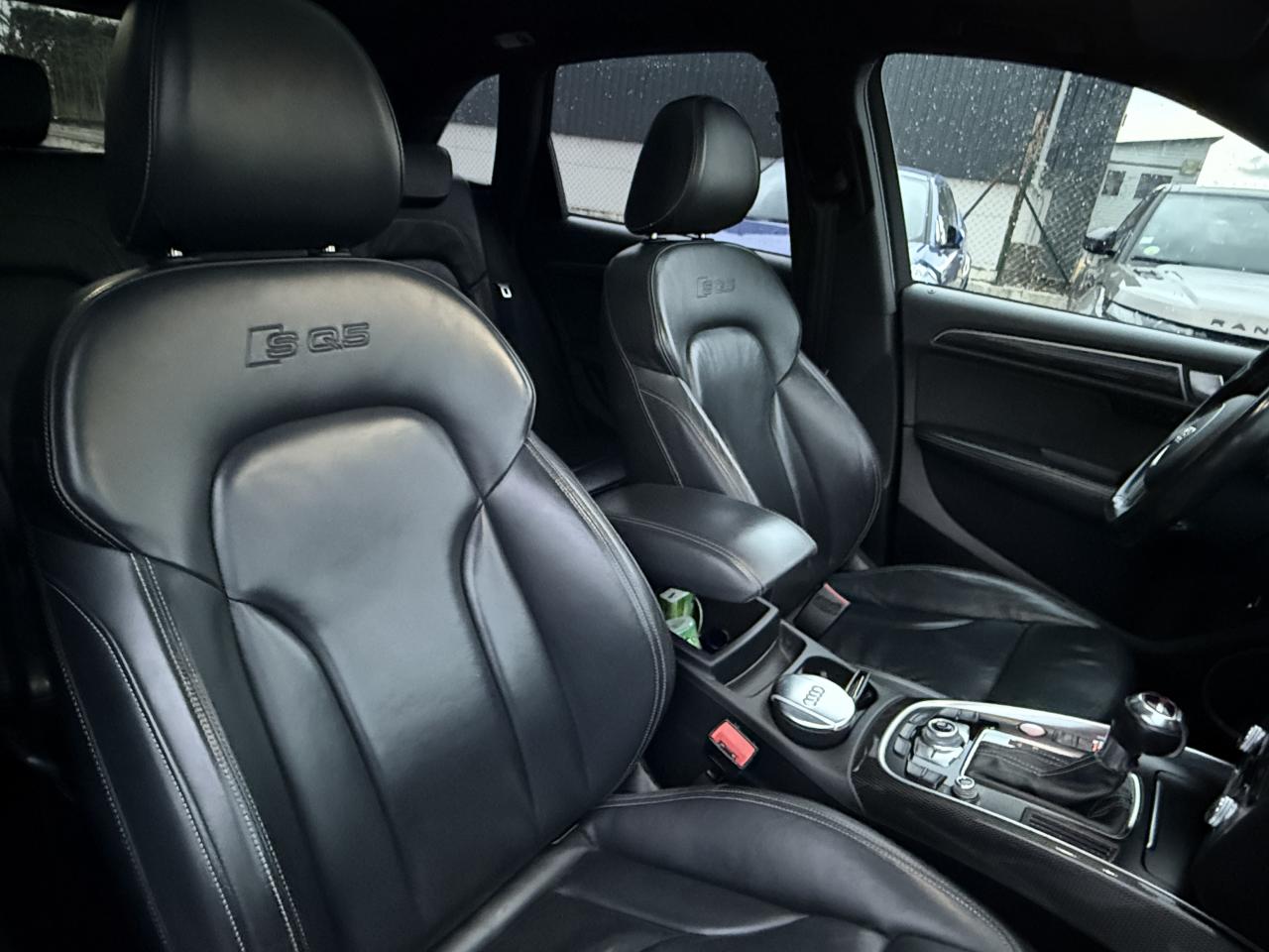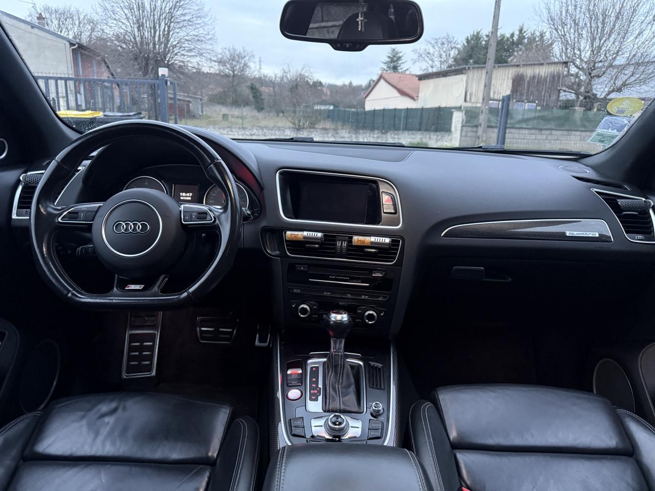 Accoudoir central à l'avant, pour conducteur et passager avant, coulissant en longueur de 65 mm, inclinaison réglable rabattable, avec vide-poches sous l'accoudoir central, incluant deux porte-boissons et prise de 12 V dans la console centraleAccoudoir central avant avec vide-poches et 2 prises 12 VAccoudoir central dans le dossier des sièges arrière, rabattableAdaptive Light : projecteurs directionnelsAdvanced Key : système d'autorisation d'accès et de démarrage main libreAirbag grand volume conducteur et le passager avant, détection de la position du siège, airbag adaptatif conducteur et passager avantAirbags latéraux (airbag thorax et bassin à l'avant)Antidémarrage électronique intégré à la commande du moteur ; activation automatique par la clé du véhiculeAntipatinage électronique ASRApplications décoratives en aluminium brossé matAppuie-tête, réglables à l'avant et à l'arrièreAssistance au freinage d'urgence, amplificateurs de freins en tandemAudi BackguardAudi connect (inclut GPS Advanced et préparation téléphone 8W)Audi Hold AssistAudi Music InterfaceAudi Sound System (180 W)Audi Tracking SystemAvertisseur de freinage d'urgence et fonction de séchage de disques de freins automatiqueAvertisseur deux tons sur le moyeu du volantBadges “V6T” sur les ailes avant et emblème “SQ5” sur les étriers de freinsBanquette arrière rabattable 60/40, déverrouillage à distance des dossiers via un levier dans la garniture latérale du coffreBecquet de pavillonBoîte à gants éclairéeCarrosserie galvanisée: autoportante, soudée au groupe-plancher, zones de déformation définies à l'avant et à l'arrièreCeintures de sécurité : ceintures trois points à enrouleur pour tous les sièges, avec contrôle du port à l'avant, assorties à la couleur de l'habitacleCendrier dans la console centrale à l'avant et à l'arrière, allume-cigare à l'avantCendrier éclairé à l'avantChâssis DynamiqueClimatisation automatique confort 3 zonesCoffre et hayon éclairésColonne de direction de sécuritéConsole centrale, surélevée, avec compartiment de rangement et volet roulantContact d'allumage électroniqueContrôle de pression des pneus ( TPMS )Contrôle électronique de stabilisation (ESC) avec détection de barres de toit et mode offroadDétecteur de pluie et de luminosité incluant rétroviseur intérieur jour/nuit automatiqueDéverrouillage de coffre par touche douce : déverrouillage avec assistance électriqueDirection assistée électromécanique, direction à crémaillère sans entretien avec asistance asservie à la vitesseEclairage intérieur, à temporisation avec contacteur sur toutes les portièresEcran central avec affichage en couleurEcrous antivolEssuie-glace arrière avec déclenchement automatique en marche arrièreEssuie-glace deux vitesses : réglage d'intermittence sur 4 niveaux, commande de balayage coup par coup, lavage-balayage automatiqueÉtui à lunettes, dans le module d'éclairage intérieur avant, au-dessus du rétroviseur intérieurFeux arrière, rouges, avec feux de recul blancs, feux arrière de brouillard intégrés, avec capot de coffre ouvert : fonction feux arrière dans le bandeau d'éclairage du pare-chocsFeux de route assistés : gestion automatique du passage de feux de croisement à pleins phares et inversementFilet de séparation, vertical, amovibleFrein de stationnement electromécaniqueFreins à disques ventilés à l'avant et à l'arrièreHayon assisté électriquement pour l'ouverture et la fermetureIdentification du modèle à l'arrière, inscription “SQ5” à l'arrière, sur la calandre et sur l'embase du volantIndicateur de rapport de vitesse dans le système d'information du conducteurIndication de l'usure des garnitures de freins à l'avant ; affichage sur l'écran centralInstrumentation, avec éclairage réglable : tachymètre électronique avec compteur kilométrique totalisateur et journalier, compte-tours, heure, affichage de la température du liquide de refroidissement et de la réserve de carburantJantes en aluminium coulé style 5 branches double S, 8,5 J x 20” avec pneus 255/45 R20 100WLampe à l'avant avec deux spots de lecture supplémentairesLampes à l'arrière avec fonction spots de lectureLève-vitres électriques à l'avant et à l'arrière avec protection antipincement et fonction ouverture/fermeture Confort par impulsionLimiteurs d'effort sur les ceintures de sécurité avantLunette arrière dégivrante avec minuterieMiroir de courtoisieOEilletons de fixation, quatre oeilletons dans le coffre pour arrimer le chargementOrdinateur de bord couleur, système de contrôle Autocheck et programme efficiencyOutillage de bord dans le coffrePack Aluminium extérieurPack Éclairage intérieurPack RangementPare-soleil, rabattables et pivotants, côté conducteur et passager avantParking System Plus avec caméra de reculPeinture intégrale : pare-chocs avant et arrière et bas de caisse en couleur carrosseriePhares antibrouillard intégrés dans le bouclier avantPoignées de maintien avec mécanisme amortisseur : quatre poignées encastrées dans le ciel de pavillonPoignées de portes couleur carrosseriePorte-boissons double dans la console centralePréparation pour crochet d'attelagePréparation pour siège enfant ISOFIX pour sièges latéraux arrièrePrétensionneurs des ceintures de sécurité avantProjecteurs antibrouillardProjecteurs Xénon Plus incluant lave-phares, feux de jour à LEDQuattro, transmission intégrale permanente avec répartition asymétrique et dynamique de couple, différentiel central autobloquant, blocage électronique de différentiel EDS par intervention sur les freins des roues motricesRampes de pavillon en aluminium poli incluant barres de toit transversalesRégulateur de vitesseRéservoir avec protection contre les erreurs de ravitaillementRétroviseurs extérieurs : avec clignotants à diodes intégrés, réglables et rabattable électriquement, dégivrants avec coques l