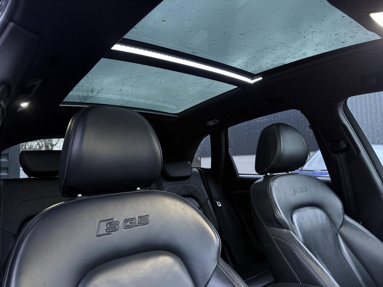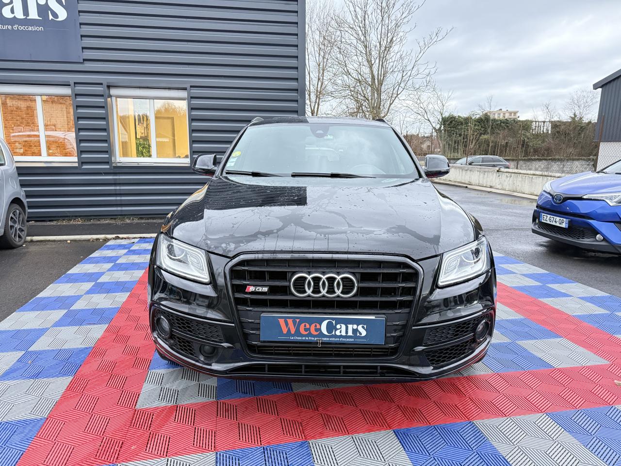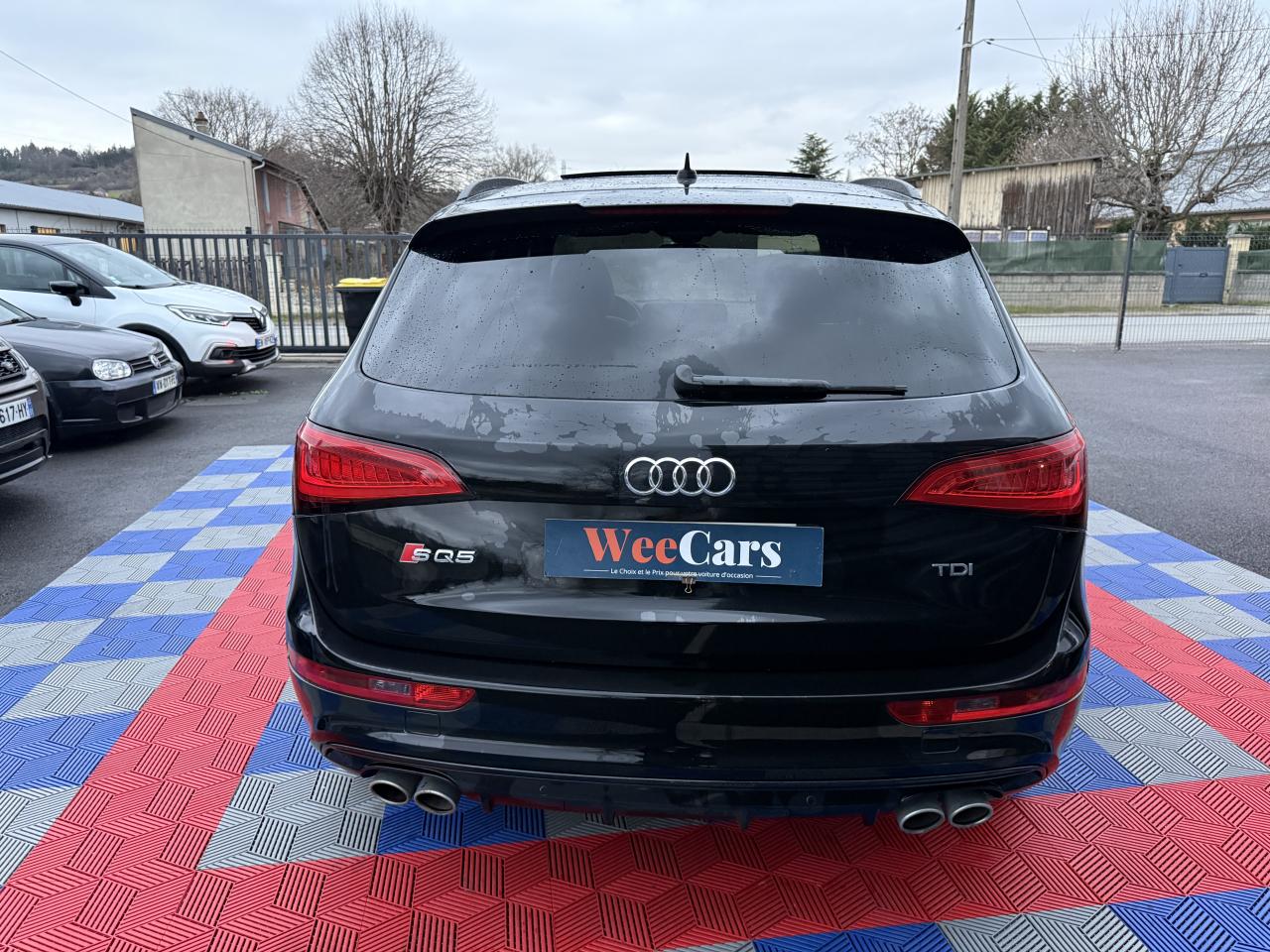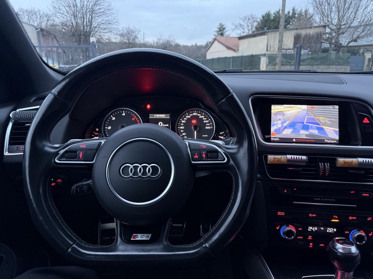 Accoudoir central à l'avant, pour conducteur et passager avant, coulissant en longueur de 65 mm, inclinaison réglable rabattable, avec vide-poches sous l'accoudoir central, incluant deux porte-boissons et prise de 12 V dans la console centraleAccoudoir central avant avec vide-poches et 2 prises 12 VAccoudoir central dans le dossier des sièges arrière, rabattableAdaptive Light : projecteurs directionnelsAdvanced Key : système d'autorisation d'accès et de démarrage main libreAirbag grand volume conducteur et le passager avant, détection de la position du siège, airbag adaptatif conducteur et passager avantAirbags latéraux (airbag thorax et bassin à l'avant)Antidémarrage électronique intégré à la commande du moteur ; activation automatique par la clé du véhiculeAntipatinage électronique ASRApplications décoratives en aluminium brossé matAppuie-tête, réglables à l'avant et à l'arrièreAssistance au freinage d'urgence, amplificateurs de freins en tandemAudi BackguardAudi connect (inclut GPS Advanced et préparation téléphone 8W)Audi Hold AssistAudi Music InterfaceAudi Sound System (180 W)Audi Tracking SystemAvertisseur de freinage d'urgence et fonction de séchage de disques de freins automatiqueAvertisseur deux tons sur le moyeu du volantBadges “V6T” sur les ailes avant et emblème “SQ5” sur les étriers de freinsBanquette arrière rabattable 60/40, déverrouillage à distance des dossiers via un levier dans la garniture latérale du coffreBecquet de pavillonBoîte à gants éclairéeCarrosserie galvanisée: autoportante, soudée au groupe-plancher, zones de déformation définies à l'avant et à l'arrièreCeintures de sécurité : ceintures trois points à enrouleur pour tous les sièges, avec contrôle du port à l'avant, assorties à la couleur de l'habitacleCendrier dans la console centrale à l'avant et à l'arrière, allume-cigare à l'avantCendrier éclairé à l'avantChâssis DynamiqueClimatisation automatique confort 3 zonesCoffre et hayon éclairésColonne de direction de sécuritéConsole centrale, surélevée, avec compartiment de rangement et volet roulantContact d'allumage électroniqueContrôle de pression des pneus ( TPMS )Contrôle électronique de stabilisation (ESC) avec détection de barres de toit et mode offroadDétecteur de pluie et de luminosité incluant rétroviseur intérieur jour/nuit automatiqueDéverrouillage de coffre par touche douce : déverrouillage avec assistance électriqueDirection assistée électromécanique, direction à crémaillère sans entretien avec asistance asservie à la vitesseEclairage intérieur, à temporisation avec contacteur sur toutes les portièresEcran central avec affichage en couleurEcrous antivolEssuie-glace arrière avec déclenchement automatique en marche arrièreEssuie-glace deux vitesses : réglage d'intermittence sur 4 niveaux, commande de balayage coup par coup, lavage-balayage automatiqueÉtui à lunettes, dans le module d'éclairage intérieur avant, au-dessus du rétroviseur intérieurFeux arrière, rouges, avec feux de recul blancs, feux arrière de brouillard intégrés, avec capot de coffre ouvert : fonction feux arrière dans le bandeau d'éclairage du pare-chocsFeux de route assistés : gestion automatique du passage de feux de croisement à pleins phares et inversementFilet de séparation, vertical, amovibleFrein de stationnement electromécaniqueFreins à disques ventilés à l'avant et à l'arrièreHayon assisté électriquement pour l'ouverture et la fermetureIdentification du modèle à l'arrière, inscription “SQ5” à l'arrière, sur la calandre et sur l'embase du volantIndicateur de rapport de vitesse dans le système d'information du conducteurIndication de l'usure des garnitures de freins à l'avant ; affichage sur l'écran centralInstrumentation, avec éclairage réglable : tachymètre électronique avec compteur kilométrique totalisateur et journalier, compte-tours, heure, affichage de la température du liquide de refroidissement et de la réserve de carburantJantes en aluminium coulé style 5 branches double S, 8,5 J x 20” avec pneus 255/45 R20 100WLampe à l'avant avec deux spots de lecture supplémentairesLampes à l'arrière avec fonction spots de lectureLève-vitres électriques à l'avant et à l'arrière avec protection antipincement et fonction ouverture/fermeture Confort par impulsionLimiteurs d'effort sur les ceintures de sécurité avantLunette arrière dégivrante avec minuterieMiroir de courtoisieOEilletons de fixation, quatre oeilletons dans le coffre pour arrimer le chargementOrdinateur de bord couleur, système de contrôle Autocheck et programme efficiencyOutillage de bord dans le coffrePack Aluminium extérieurPack Éclairage intérieurPack RangementPare-soleil, rabattables et pivotants, côté conducteur et passager avantParking System Plus avec caméra de reculPeinture intégrale : pare-chocs avant et arrière et bas de caisse en couleur carrosseriePhares antibrouillard intégrés dans le bouclier avantPoignées de maintien avec mécanisme amortisseur : quatre poignées encastrées dans le ciel de pavillonPoignées de portes couleur carrosseriePorte-boissons double dans la console centralePréparation pour crochet d'attelagePréparation pour siège enfant ISOFIX pour sièges latéraux arrièrePrétensionneurs des ceintures de sécurité avantProjecteurs antibrouillardProjecteurs Xénon Plus incluant lave-phares, feux de jour à LEDQuattro, transmission intégrale permanente avec répartition asymétrique et dynamique de couple, différentiel central autobloquant, blocage électronique de différentiel EDS par intervention sur les freins des roues motricesRampes de pavillon en aluminium poli incluant barres de toit transversalesRégulateur de vitesseRéservoir avec protection contre les erreurs de ravitaillementRétroviseurs extérieurs : avec clignotants à diodes intégrés, réglables et rabattable électriquement, dégivrants avec coques l