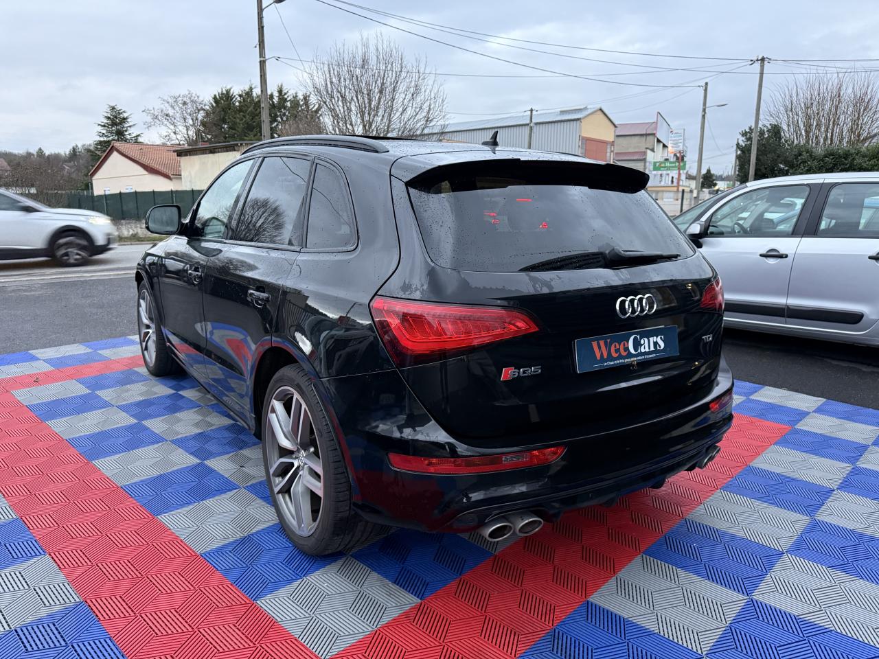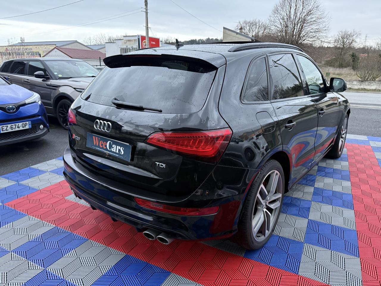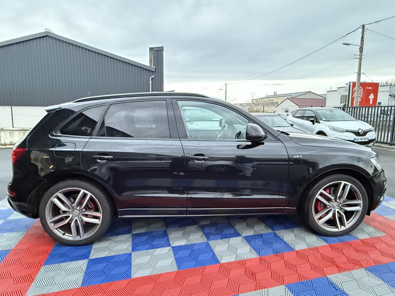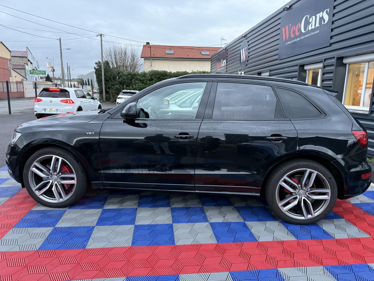 Accoudoir central à l'avant, pour conducteur et passager avant, coulissant en longueur de 65 mm, inclinaison réglable rabattable, avec vide-poches sous l'accoudoir central, incluant deux porte-boissons et prise de 12 V dans la console centraleAccoudoir central avant avec vide-poches et 2 prises 12 VAccoudoir central dans le dossier des sièges arrière, rabattableAdaptive Light : projecteurs directionnelsAdvanced Key : système d'autorisation d'accès et de démarrage main libreAirbag grand volume conducteur et le passager avant, détection de la position du siège, airbag adaptatif conducteur et passager avantAirbags latéraux (airbag thorax et bassin à l'avant)Antidémarrage électronique intégré à la commande du moteur ; activation automatique par la clé du véhiculeAntipatinage électronique ASRApplications décoratives en aluminium brossé matAppuie-tête, réglables à l'avant et à l'arrièreAssistance au freinage d'urgence, amplificateurs de freins en tandemAudi BackguardAudi connect (inclut GPS Advanced et préparation téléphone 8W)Audi Hold AssistAudi Music InterfaceAudi Sound System (180 W)Audi Tracking SystemAvertisseur de freinage d'urgence et fonction de séchage de disques de freins automatiqueAvertisseur deux tons sur le moyeu du volantBadges “V6T” sur les ailes avant et emblème “SQ5” sur les étriers de freinsBanquette arrière rabattable 60/40, déverrouillage à distance des dossiers via un levier dans la garniture latérale du coffreBecquet de pavillonBoîte à gants éclairéeCarrosserie galvanisée: autoportante, soudée au groupe-plancher, zones de déformation définies à l'avant et à l'arrièreCeintures de sécurité : ceintures trois points à enrouleur pour tous les sièges, avec contrôle du port à l'avant, assorties à la couleur de l'habitacleCendrier dans la console centrale à l'avant et à l'arrière, allume-cigare à l'avantCendrier éclairé à l'avantChâssis DynamiqueClimatisation automatique confort 3 zonesCoffre et hayon éclairésColonne de direction de sécuritéConsole centrale, surélevée, avec compartiment de rangement et volet roulantContact d'allumage électroniqueContrôle de pression des pneus ( TPMS )Contrôle électronique de stabilisation (ESC) avec détection de barres de toit et mode offroadDétecteur de pluie et de luminosité incluant rétroviseur intérieur jour/nuit automatiqueDéverrouillage de coffre par touche douce : déverrouillage avec assistance électriqueDirection assistée électromécanique, direction à crémaillère sans entretien avec asistance asservie à la vitesseEclairage intérieur, à temporisation avec contacteur sur toutes les portièresEcran central avec affichage en couleurEcrous antivolEssuie-glace arrière avec déclenchement automatique en marche arrièreEssuie-glace deux vitesses : réglage d'intermittence sur 4 niveaux, commande de balayage coup par coup, lavage-balayage automatiqueÉtui à lunettes, dans le module d'éclairage intérieur avant, au-dessus du rétroviseur intérieurFeux arrière, rouges, avec feux de recul blancs, feux arrière de brouillard intégrés, avec capot de coffre ouvert : fonction feux arrière dans le bandeau d'éclairage du pare-chocsFeux de route assistés : gestion automatique du passage de feux de croisement à pleins phares et inversementFilet de séparation, vertical, amovibleFrein de stationnement electromécaniqueFreins à disques ventilés à l'avant et à l'arrièreHayon assisté électriquement pour l'ouverture et la fermetureIdentification du modèle à l'arrière, inscription “SQ5” à l'arrière, sur la calandre et sur l'embase du volantIndicateur de rapport de vitesse dans le système d'information du conducteurIndication de l'usure des garnitures de freins à l'avant ; affichage sur l'écran centralInstrumentation, avec éclairage réglable : tachymètre électronique avec compteur kilométrique totalisateur et journalier, compte-tours, heure, affichage de la température du liquide de refroidissement et de la réserve de carburantJantes en aluminium coulé style 5 branches double S, 8,5 J x 20” avec pneus 255/45 R20 100WLampe à l'avant avec deux spots de lecture supplémentairesLampes à l'arrière avec fonction spots de lectureLève-vitres électriques à l'avant et à l'arrière avec protection antipincement et fonction ouverture/fermeture Confort par impulsionLimiteurs d'effort sur les ceintures de sécurité avantLunette arrière dégivrante avec minuterieMiroir de courtoisieOEilletons de fixation, quatre oeilletons dans le coffre pour arrimer le chargementOrdinateur de bord couleur, système de contrôle Autocheck et programme efficiencyOutillage de bord dans le coffrePack Aluminium extérieurPack Éclairage intérieurPack RangementPare-soleil, rabattables et pivotants, côté conducteur et passager avantParking System Plus avec caméra de reculPeinture intégrale : pare-chocs avant et arrière et bas de caisse en couleur carrosseriePhares antibrouillard intégrés dans le bouclier avantPoignées de maintien avec mécanisme amortisseur : quatre poignées encastrées dans le ciel de pavillonPoignées de portes couleur carrosseriePorte-boissons double dans la console centralePréparation pour crochet d'attelagePréparation pour siège enfant ISOFIX pour sièges latéraux arrièrePrétensionneurs des ceintures de sécurité avantProjecteurs antibrouillardProjecteurs Xénon Plus incluant lave-phares, feux de jour à LEDQuattro, transmission intégrale permanente avec répartition asymétrique et dynamique de couple, différentiel central autobloquant, blocage électronique de différentiel EDS par intervention sur les freins des roues motricesRampes de pavillon en aluminium poli incluant barres de toit transversalesRégulateur de vitesseRéservoir avec protection contre les erreurs de ravitaillementRétroviseurs extérieurs : avec clignotants à diodes intégrés, réglables et rabattable électriquement, dégivrants avec coques l