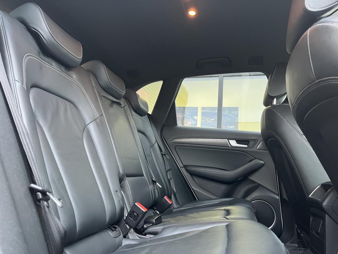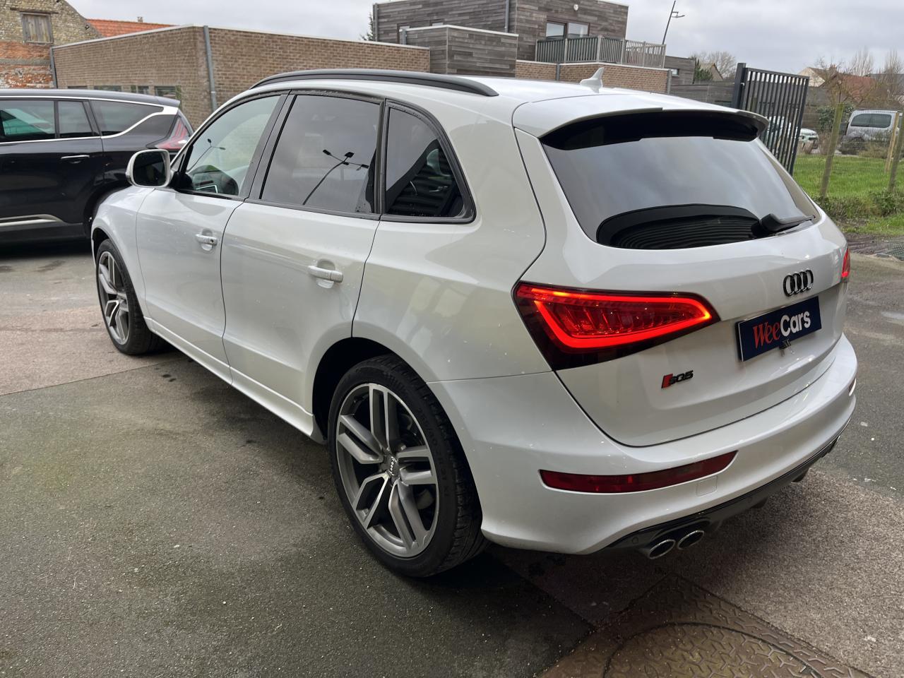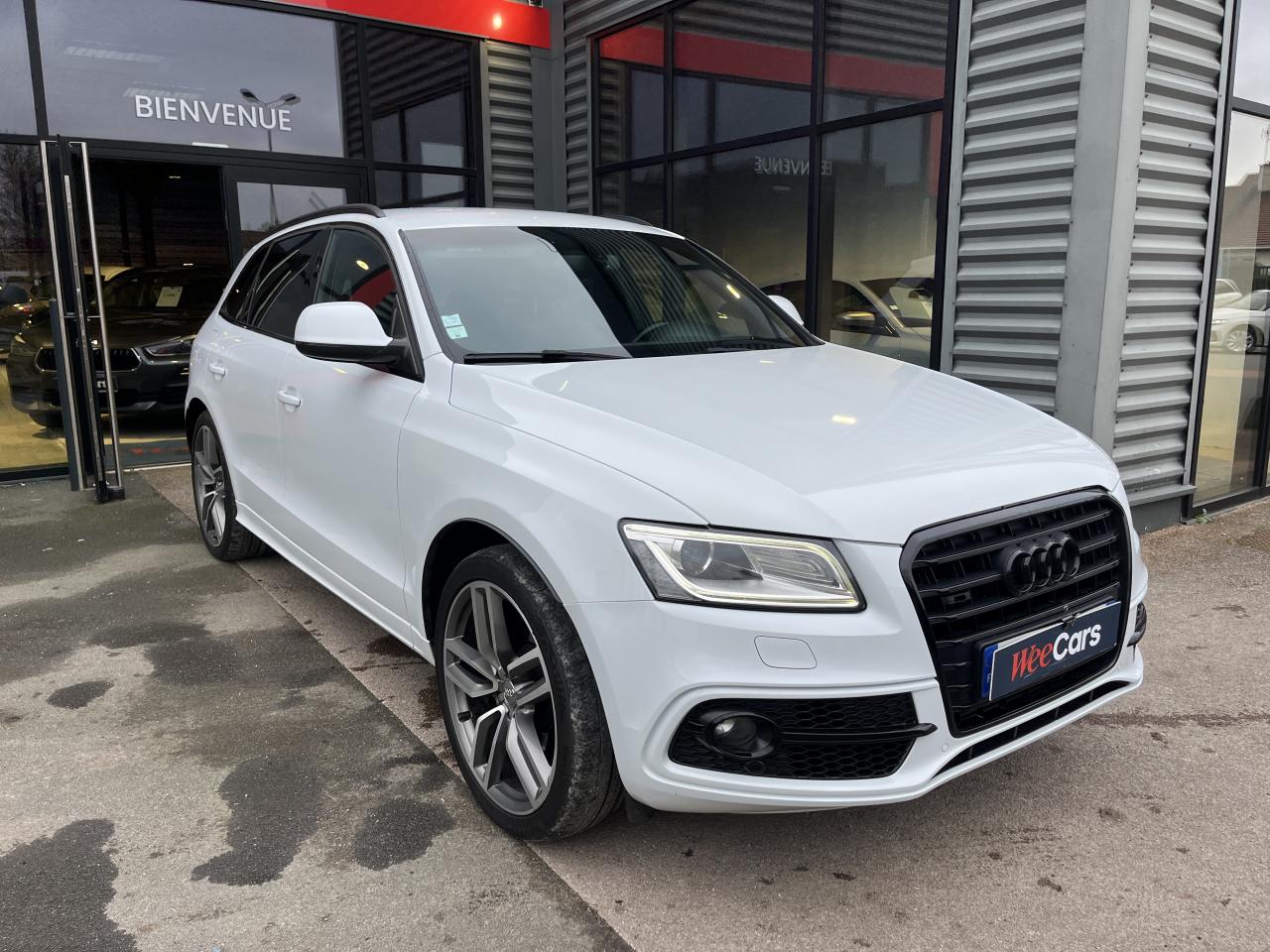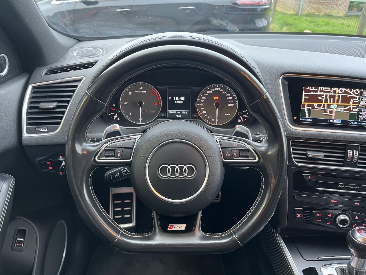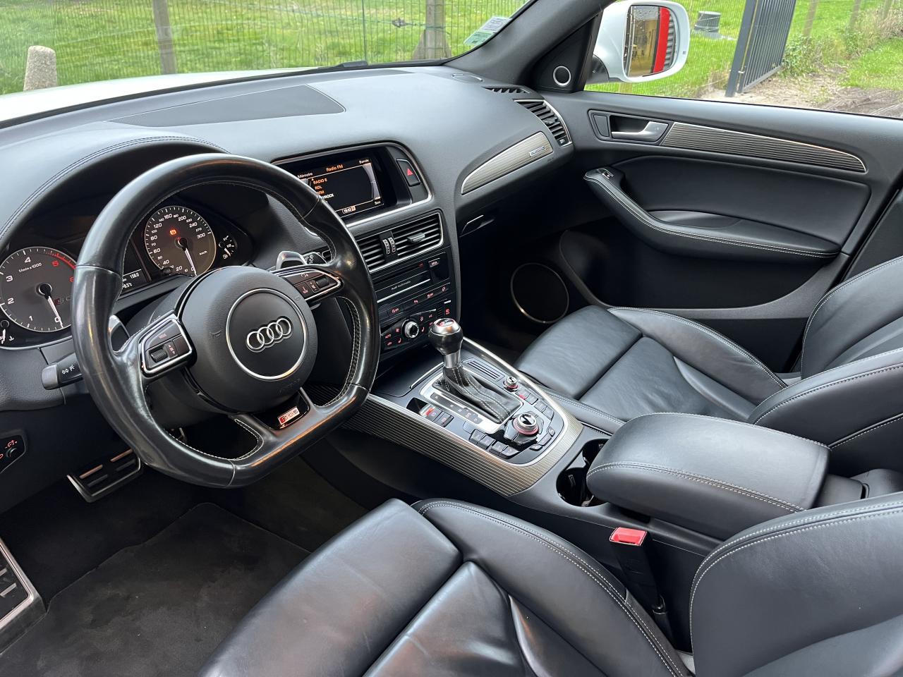 Accoudoir central à l'avant, pour conducteur et passager avant, coulissant en longueur de 65 mm, inclinaison réglable rabattable, avec vide-poches sous l'accoudoir central, incluant deux porte-boissons et prise de 12 V dans la console centraleAccoudoir central avant avec vide-poches et 2 prises 12 VAccoudoir central dans le dossier des sièges arrière, rabattableAdaptive Light : projecteurs directionnelsAdvanced Key : système d'autorisation d'accès et de démarrage main libreAirbag grand volume conducteur et le passager avant, détection de la position du siège, airbag adaptatif conducteur et passager avantAirbags latéraux (airbag thorax et bassin à l'avant)Antidémarrage électronique intégré à la commande du moteur ; activation automatique par la clé du véhiculeAntipatinage électronique ASRApplications décoratives en aluminium brossé matAppuie-tête, réglables à l'avant et à l'arrièreAssistance au freinage d'urgence, amplificateurs de freins en tandemAudi BackguardAudi connect (inclut GPS Advanced et préparation téléphone 8W)Audi Hold AssistAudi Music InterfaceAudi Sound System (180 W)Audi Tracking SystemAvertisseur de freinage d'urgence et fonction de séchage de disques de freins automatiqueAvertisseur deux tons sur le moyeu du volantBadges “V6T” sur les ailes avant et emblème “SQ5” sur les étriers de freinsBanquette arrière rabattable 60/40, déverrouillage à distance des dossiers via un levier dans la garniture latérale du coffreBecquet de pavillonBoîte à gants éclairéeCarrosserie galvanisée: autoportante, soudée au groupe-plancher, zones de déformation définies à l'avant et à l'arrièreCeintures de sécurité : ceintures trois points à enrouleur pour tous les sièges, avec contrôle du port à l'avant, assorties à la couleur de l'habitacleCendrier dans la console centrale à l'avant et à l'arrière, allume-cigare à l'avantCendrier éclairé à l'avantChâssis DynamiqueClimatisation automatique confort 3 zonesCoffre et hayon éclairésColonne de direction de sécuritéConsole centrale, surélevée, avec compartiment de rangement et volet roulantContact d'allumage électroniqueContrôle de pression des pneus ( TPMS )Contrôle électronique de stabilisation (ESC) avec détection de barres de toit et mode offroadDétecteur de pluie et de luminosité incluant rétroviseur intérieur jour/nuit automatiqueDéverrouillage de coffre par touche douce : déverrouillage avec assistance électriqueDirection assistée électromécanique, direction à crémaillère sans entretien avec asistance asservie à la vitesseEclairage intérieur, à temporisation avec contacteur sur toutes les portièresEcran central avec affichage en couleurEcrous antivolEssuie-glace arrière avec déclenchement automatique en marche arrièreEssuie-glace deux vitesses : réglage d'intermittence sur 4 niveaux, commande de balayage coup par coup, lavage-balayage automatiqueÉtui à lunettes, dans le module d'éclairage intérieur avant, au-dessus du rétroviseur intérieurFeux arrière, rouges, avec feux de recul blancs, feux arrière de brouillard intégrés, avec capot de coffre ouvert : fonction feux arrière dans le bandeau d'éclairage du pare-chocsFeux de route assistés : gestion automatique du passage de feux de croisement à pleins phares et inversementFilet de séparation, vertical, amovibleFrein de stationnement electromécaniqueHayon assisté électriquement pour l'ouverture et la fermetureIdentification du modèle à l'arrière, inscription “SQ5” à l'arrière, sur la calandre et sur l'embase du volantIndicateur de rapport de vitesse dans le système d'information du conducteurIndication de l'usure des garnitures de freins à l'avant ; affichage sur l'écran centralInstrumentation, avec éclairage réglable : tachymètre électronique avec compteur kilométrique totalisateur et journalier, compte-tours, heure, affichage de la température du liquide de refroidissement et de la réserve de carburantJantes en aluminium coulé style 5 branches double S, 8,5 J x 20” avec pneus 255/45 R20 100WLampe à l'avant avec deux spots de lecture supplémentairesLampes à l'arrière avec fonction spots de lectureLève-vitres électriques à l'avant et à l'arrière avec protection antipincement et fonction ouverture/fermeture Confort par impulsionLimiteurs d'effort sur les ceintures de sécurité avantLunette arrière dégivrante avec minuterieMiroir de courtoisieOEilletons de fixation, quatre oeilletons dans le coffre pour arrimer le chargementOrdinateur de bord couleur, système de contrôle Autocheck et programme efficiencyOutillage de bord dans le coffrePack Aluminium extérieurPack Éclairage intérieurPack RangementPare-soleil, rabattables et pivotants, côté conducteur et passager avantParking System Plus avec caméra de reculPeinture intégrale : pare-chocs avant et arrière et bas de caisse en couleur carrosseriePhares antibrouillard intégrés dans le bouclier avantPoignées de maintien avec mécanisme amortisseur : quatre poignées encastrées dans le ciel de pavillonPoignées de portes couleur carrosseriePorte-boissons double dans la console centralePréparation pour crochet d'attelagePréparation pour siège enfant ISOFIX pour sièges latéraux arrièrePrétensionneurs des ceintures de sécurité avantProjecteurs antibrouillardProjecteurs Xénon Plus incluant lave-phares, feux de jour à LEDQuattro, transmission intégrale permanente avec répartition asymétrique et dynamique de couple, différentiel central autobloquant, blocage électronique de différentiel EDS par intervention sur les freins des roues motricesRampes de pavillon en aluminium poli incluant barres de toit transversalesRégulateur de vitesseRéservoir avec protection contre les erreurs de ravitaillementRétroviseurs extérieurs : avec clignotants à diodes intégrés, réglables et rabattable électriquement, dégivrants avec coques laquées dans la couleur de carrosserie, miroir asphéri
