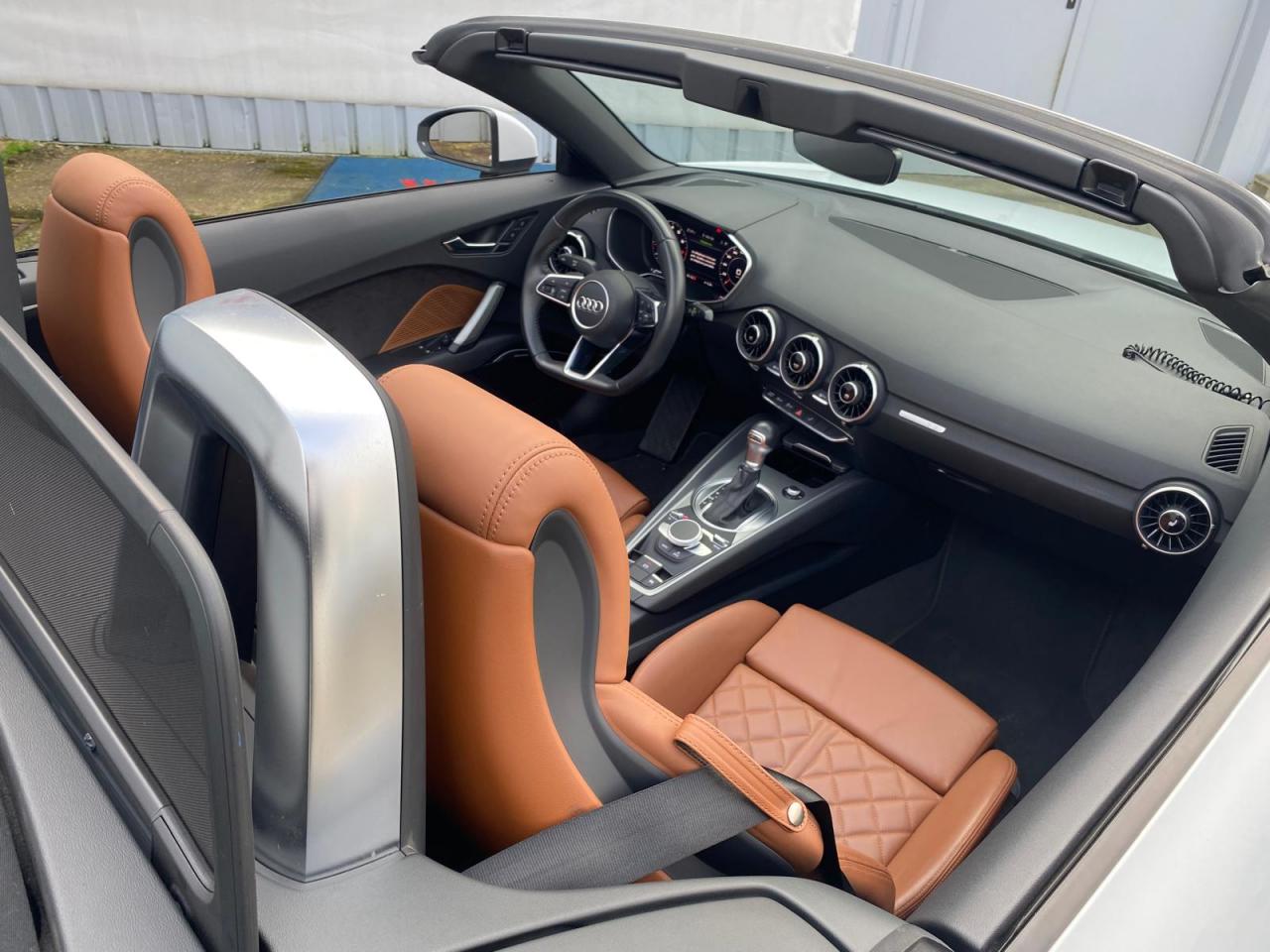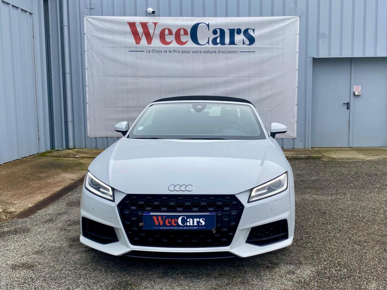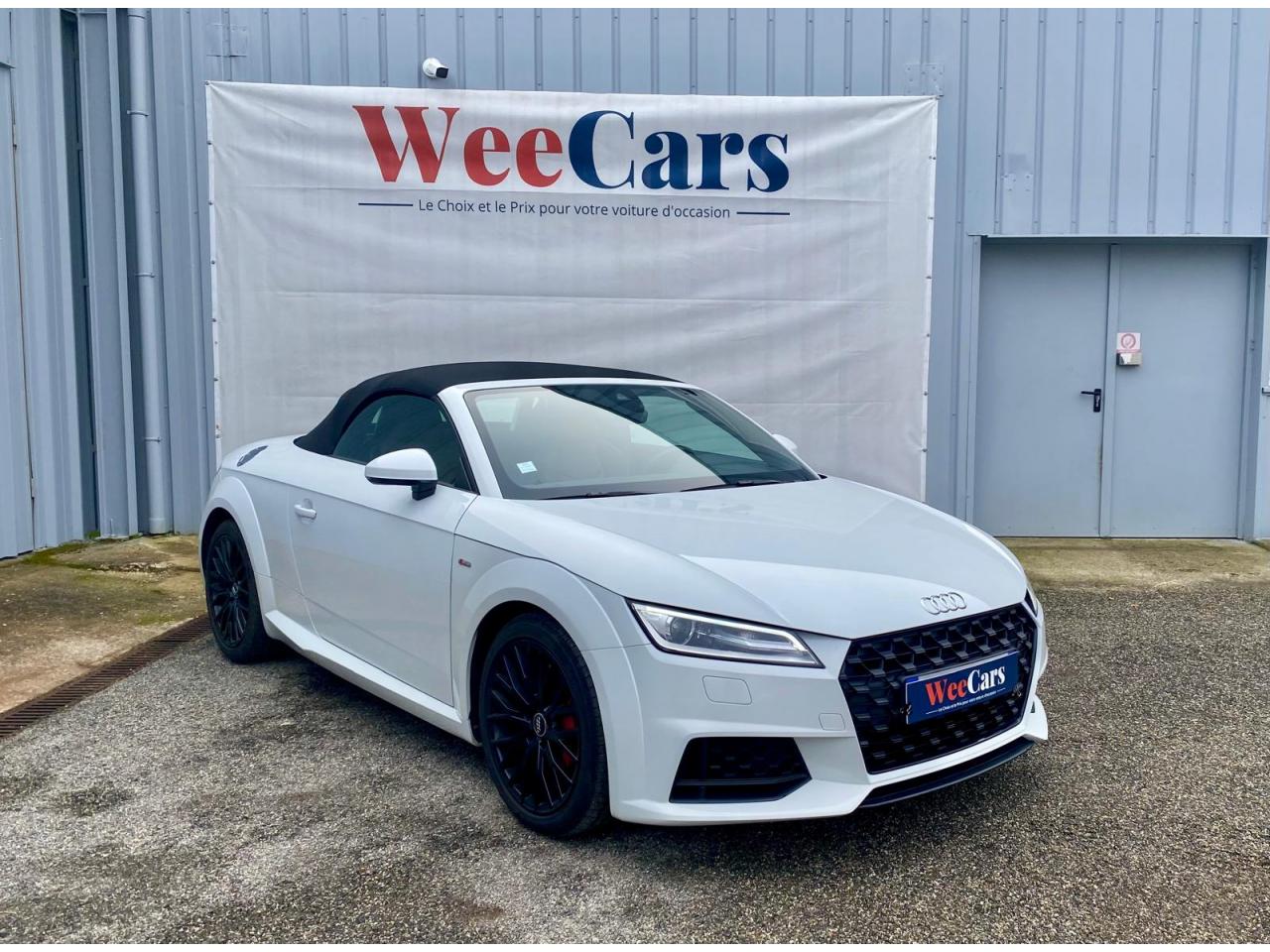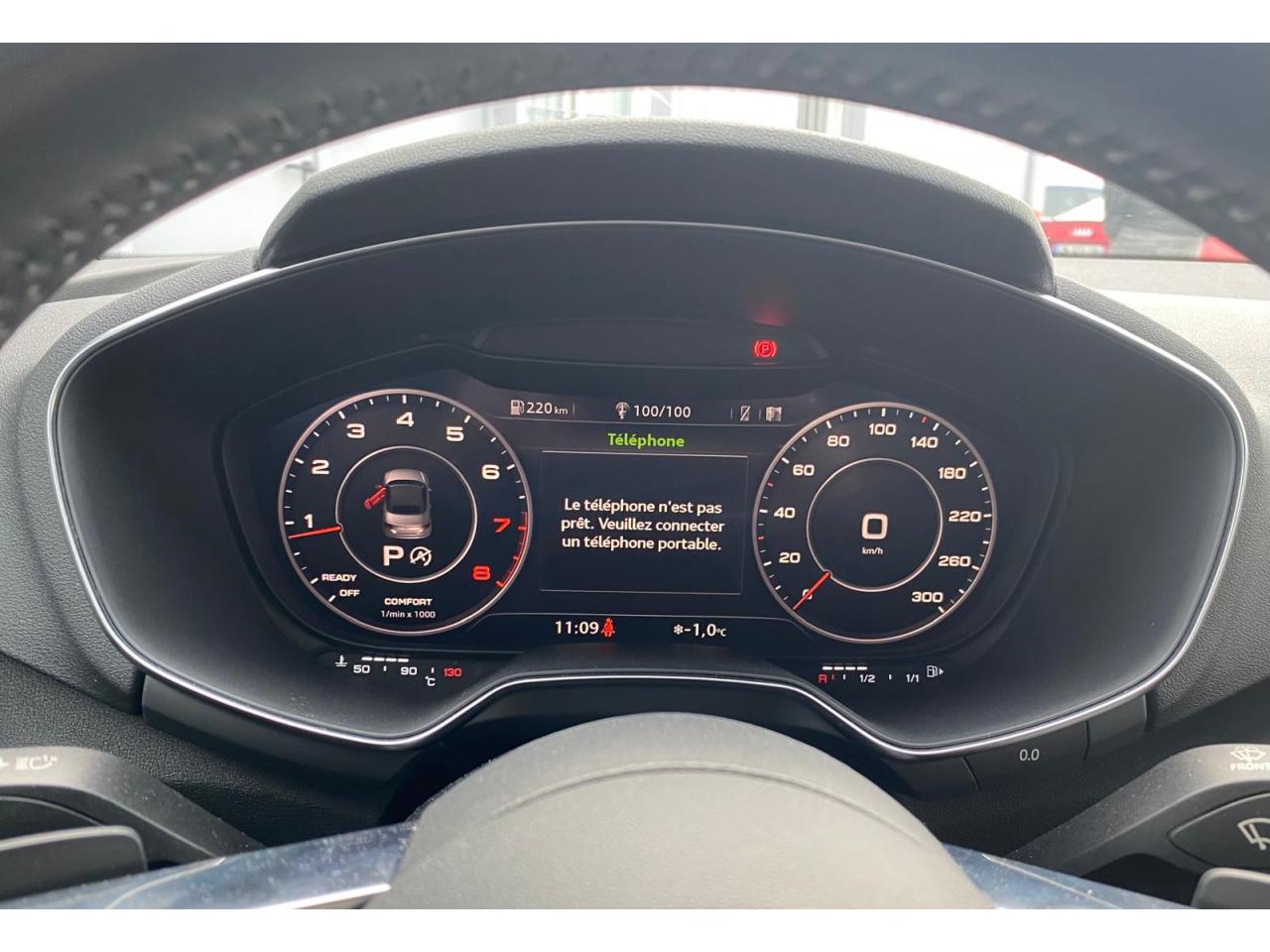 2 lecteurs de carte mémoire SDXCAccoudoir central avantAileron arrière, télescopique, commande automatique ou manuelle par bouton à partir de 120 km/hAirbags latéraux à l'avant, avec airbags de têteApplication sur éléments de l'habitacle de Couleur haptique noir avec sièges Sport SApplications décoratives en aluminium brossé matAppui lombaire à 4 axes réglable électriquementAudi Active Lane AssistAudi connectAudi Drive SelectAudi Hold AssistAudi parking system à l'arrièreAudi virtual cockpit, combiné d’instruments de 12,3 pouces, commande de l'Audi virtual cockpit via le volant multifonctions et le système MMI touch avec Audi Music InterfaceAvertisseur de bouclage de ceintureBadge S lineBaguettes décoratives noiresBoîtiers de rétroviseurs extérieurs dans la teinte du véhiculeCapote acoustique entièrement automatique pouvant être activée jusqu’à 50 km/hCapote en noir ou gris avec ciel de capote en tissu isolant 3 couches noirChâssis Sport S line avec réglage plus dynamique des ressorts et des amortisseurs, surbaissé de 10 mmClapets d’ouverture de la capote totalement automatiques intégrésClé à fréquence radio, verrouille et déverrouille les portes, le capot de coffre et la trappe à carburant ; incluant ouverture/fermeture confort des vitres ; démarrage et arrêt du moteur par touche moteur Start/StopClimatisation automatique "Confort"Commande de désactivation d'airbag passager avantContrôle de la pression des pneus avec signaux acoustique et visuel de perte de pressionCoupe-vent à commande électriqueDétecteur de pluie et allumage automatique des projecteursDirection assistée électromécaniqueDirection progressiveEcrous antivolEmblême S line sur les ailes avantESC : contrôle électronique de stabilisation. Relie ABS, EBV, ASR et EDSFeux arrière à LED, Avec feux de recul et feux arrière de brouillard intégrésFixation ISOFIX sur siège passager avantInterface BluetoothJantes en aluminium coulé style 10 branches en V partiellement polies, 8,5 J x 18 avec pneus 245/40 R 18"Limitateur et régulateur de vitesseMMI Radio, intégré dans l'Audi virtual cockpit avec commande MMI séparé, incluant le menu CAR, Lecteur CDMoulures de seuil avec inscription S lineNavigation MMI plus avec MMI touchOutillage de bordOuverture ou fermeture de la capote en 10 secondesPack aluminium étenduPack Eclairage intérieur à LEDPack Extérieur S linePack fumeur (allume-cigare + cendrier)Pare-Brise feuilleté AthermiquePeinture vernie Blanc ibisPrise d’entrée AUX, fonction de chargement USB, autoradio avec diversité de phases, TP-Mémo, 4 haut-parleurs passifs à l’avant, puissance totale 50 wattsProtection antidémarrage électroniqueRéception radio numériqueRecherche MMI, intelligente et complète par saisie de texte dans les menus Navigation, Téléphone, Radio, Médias et Véhicule ; accès direct via la fonction joystick du bouton poussoir (vers le haut)Recommandation de repos, elle prévient le conducteur par un affichage sur l'Audi virtual cockpit et par un signal sonore lorsqu’elle détecte un début d’inattention de la part du conducteurRéglage manuel de la hauteur et du positionnement en longueur, de l’inclinaison de l’assise et du dossier, ainsi que de la profondeur d’assiseRétroviseur intérieur électrochrome sans contourRétroviseurs extérieurs avec clignotants à LED intégrésRétroviseurs extérieurs réglables, dégivrants et rabattables électriquement, incluant fonction rabat automatique pour le rétroviseur côté passager avantSellerie S line en tissu Séquence/cuir en noir avec estampillage S sur le dossier des sièges avantSet de réparations pour pneusSièges Sport S à l'avantSorties d’échappement à double flux, 1 sortie à gauche et 1 à droite, avec embouts chromésSystème Start/ Stop avec récupération d'énergie de freinageTrappe à carburant style aluminium design caractéristique avec estampillage TT et vis apparentesTrousse de secours et triangle de présignalisationVide-poches dans les contre-portes/garnitures latérales, dans la console centrale ainsi que sous le siège avant droitVolant réglable en hauteur et en profondeurVolant Sport S line en cuir avec multifonction style 3 branches aplati en bas, en noir (poignées de volant en cuir perforé) avec surpiqûres contrastées et emblème S lineXénon plus, incluant bande homogène des feux diurnes à LED et éclairage tout-temps