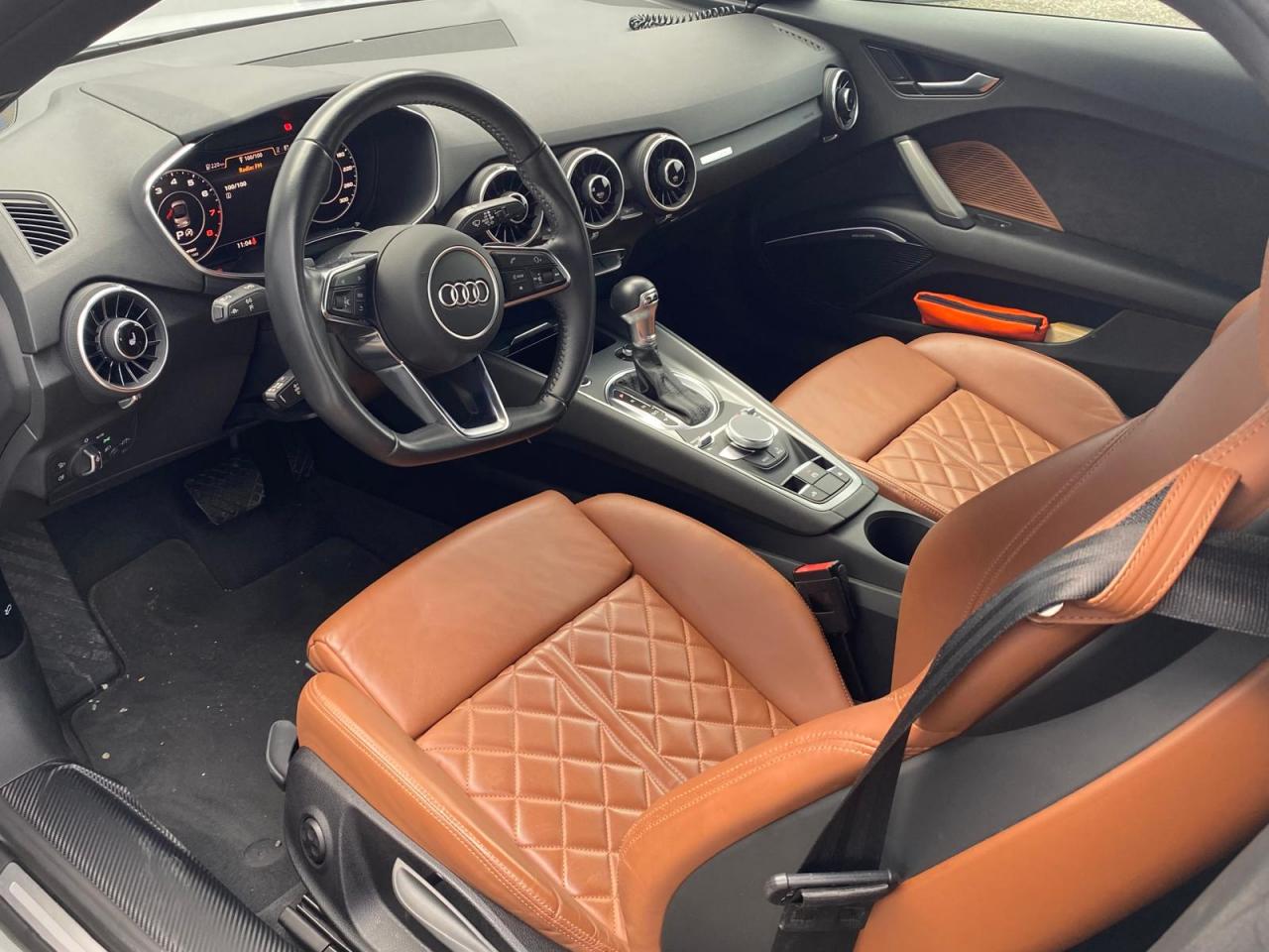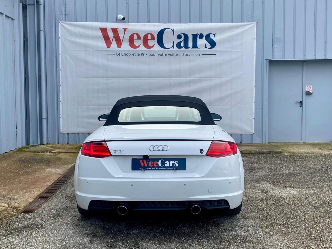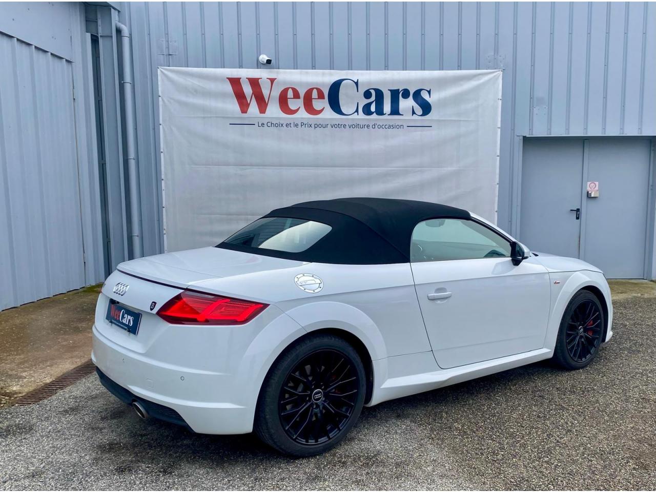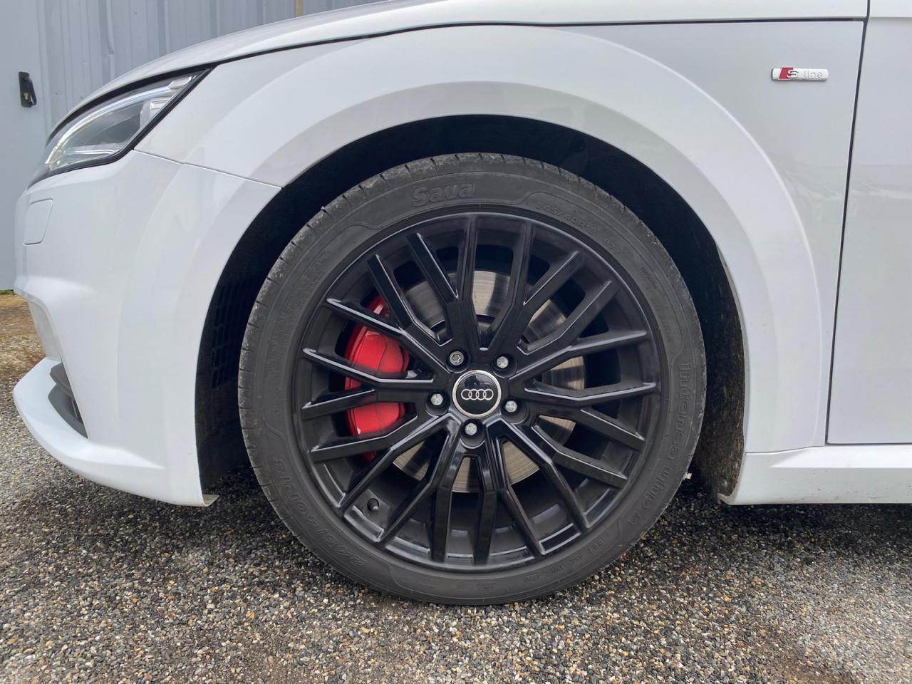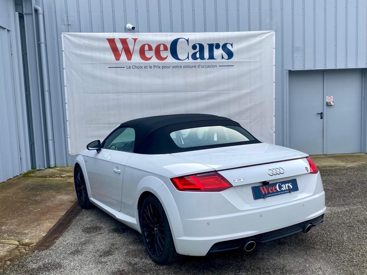 2 lecteurs de carte mémoire SDXCAccoudoir central avantAileron arrière, télescopique, commande automatique ou manuelle par bouton à partir de 120 km/hAirbags latéraux à l'avant, avec airbags de têteApplication sur éléments de l'habitacle de Couleur haptique noir avec sièges Sport SApplications décoratives en aluminium brossé matAppui lombaire à 4 axes réglable électriquementAudi Active Lane AssistAudi connectAudi Drive SelectAudi Hold AssistAudi parking system à l'arrièreAudi virtual cockpit, combiné d’instruments de 12,3 pouces, commande de l'Audi virtual cockpit via le volant multifonctions et le système MMI touch avec Audi Music InterfaceAvertisseur de bouclage de ceintureBadge S lineBaguettes décoratives noiresBoîtiers de rétroviseurs extérieurs dans la teinte du véhiculeCapote acoustique entièrement automatique pouvant être activée jusqu’à 50 km/hCapote en noir ou gris avec ciel de capote en tissu isolant 3 couches noirChâssis Sport S line avec réglage plus dynamique des ressorts et des amortisseurs, surbaissé de 10 mmClapets d’ouverture de la capote totalement automatiques intégrésClé à fréquence radio, verrouille et déverrouille les portes, le capot de coffre et la trappe à carburant ; incluant ouverture/fermeture confort des vitres ; démarrage et arrêt du moteur par touche moteur Start/StopClimatisation automatique "Confort"Commande de désactivation d'airbag passager avantContrôle de la pression des pneus avec signaux acoustique et visuel de perte de pressionCoupe-vent à commande électriqueDétecteur de pluie et allumage automatique des projecteursDirection assistée électromécaniqueDirection progressiveEcrous antivolEmblême S line sur les ailes avantESC : contrôle électronique de stabilisation. Relie ABS, EBV, ASR et EDSFeux arrière à LED, Avec feux de recul et feux arrière de brouillard intégrésFixation ISOFIX sur siège passager avantInterface BluetoothJantes en aluminium coulé style 10 branches en V partiellement polies, 8,5 J x 18 avec pneus 245/40 R 18"Limitateur et régulateur de vitesseMMI Radio, intégré dans l'Audi virtual cockpit avec commande MMI séparé, incluant le menu CAR, Lecteur CDMoulures de seuil avec inscription S lineNavigation MMI plus avec MMI touchOutillage de bordOuverture ou fermeture de la capote en 10 secondesPack aluminium étenduPack Eclairage intérieur à LEDPack Extérieur S linePack fumeur (allume-cigare + cendrier)Pare-Brise feuilleté AthermiquePeinture vernie Blanc ibisPrise d’entrée AUX, fonction de chargement USB, autoradio avec diversité de phases, TP-Mémo, 4 haut-parleurs passifs à l’avant, puissance totale 50 wattsProtection antidémarrage électroniqueRéception radio numériqueRecherche MMI, intelligente et complète par saisie de texte dans les menus Navigation, Téléphone, Radio, Médias et Véhicule ; accès direct via la fonction joystick du bouton poussoir (vers le haut)Recommandation de repos, elle prévient le conducteur par un affichage sur l'Audi virtual cockpit et par un signal sonore lorsqu’elle détecte un début d’inattention de la part du conducteurRéglage manuel de la hauteur et du positionnement en longueur, de l’inclinaison de l’assise et du dossier, ainsi que de la profondeur d’assiseRétroviseur intérieur électrochrome sans contourRétroviseurs extérieurs avec clignotants à LED intégrésRétroviseurs extérieurs réglables, dégivrants et rabattables électriquement, incluant fonction rabat automatique pour le rétroviseur côté passager avantSellerie S line en tissu Séquence/cuir en noir avec estampillage S sur le dossier des sièges avantSet de réparations pour pneusSièges Sport S à l'avantSorties d’échappement à double flux, 1 sortie à gauche et 1 à droite, avec embouts chromésSystème Start/ Stop avec récupération d'énergie de freinageTrappe à carburant style aluminium design caractéristique avec estampillage TT et vis apparentesTrousse de secours et triangle de présignalisationVide-poches dans les contre-portes/garnitures latérales, dans la console centrale ainsi que sous le siège avant droitVolant réglable en hauteur et en profondeurVolant Sport S line en cuir avec multifonction style 3 branches aplati en bas, en noir (poignées de volant en cuir perforé) avec surpiqûres contrastées et emblème S lineXénon plus, incluant bande homogène des feux diurnes à LED et éclairage tout-temps