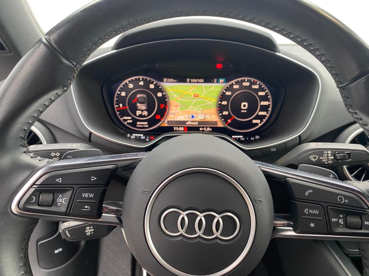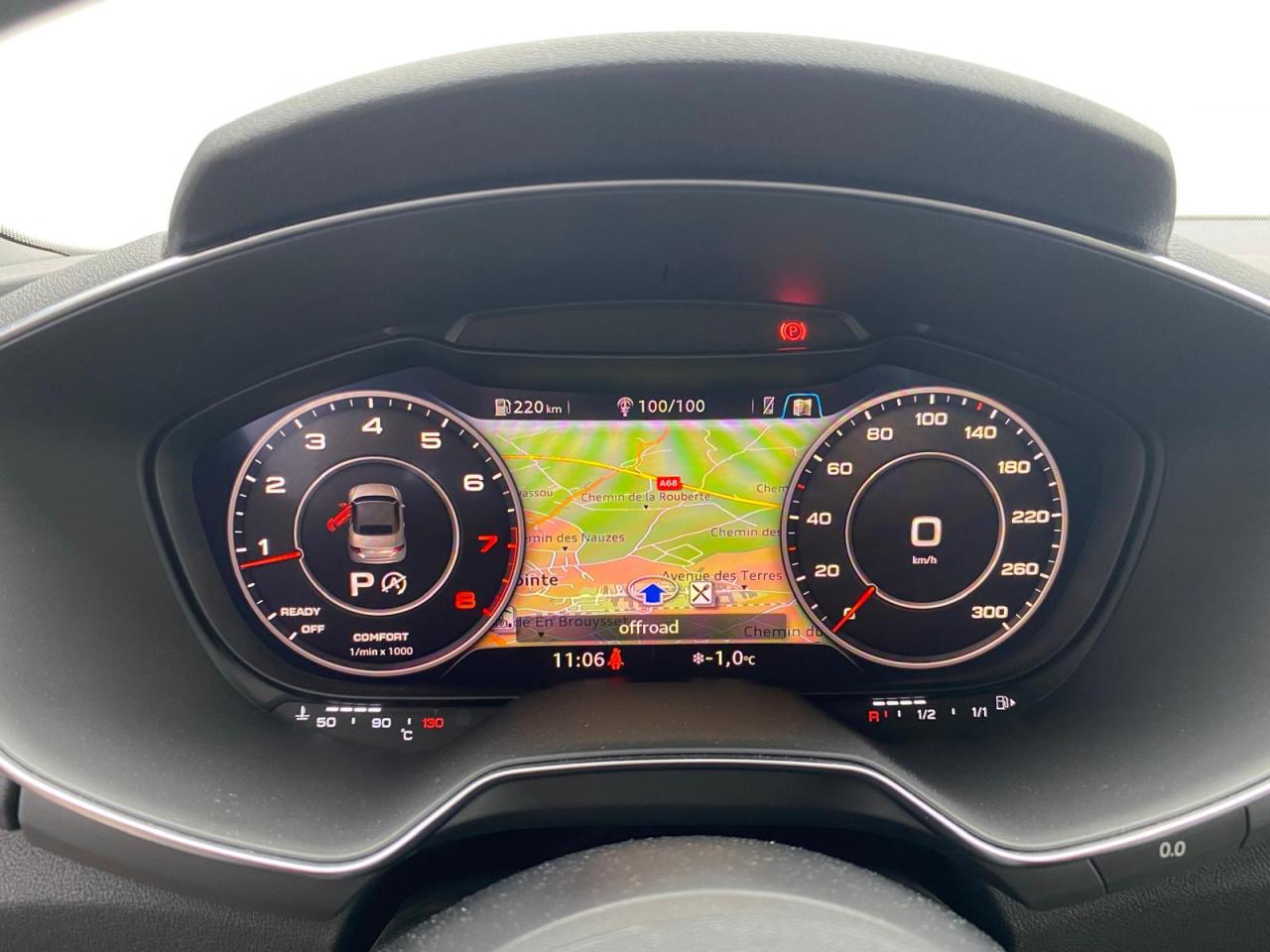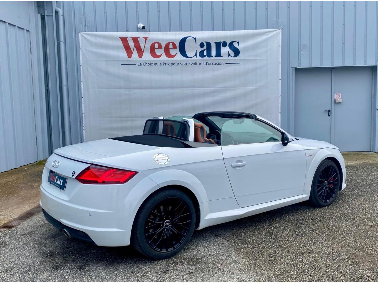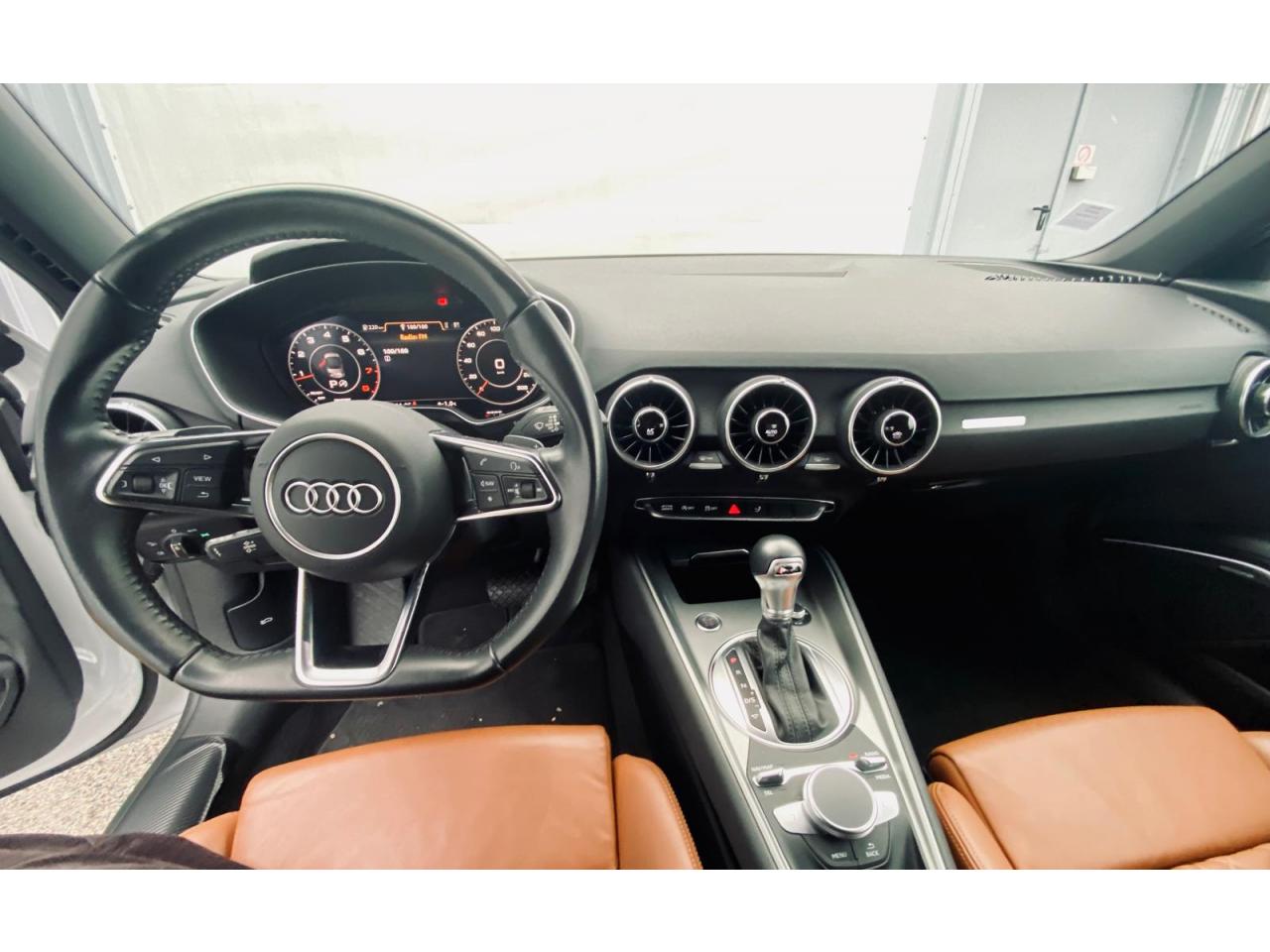 2 lecteurs de carte mémoire SDXCAccoudoir central avantAileron arrière, télescopique, commande automatique ou manuelle par bouton à partir de 120 km/hAirbags latéraux à l'avant, avec airbags de têteApplication sur éléments de l'habitacle de Couleur haptique noir avec sièges Sport SApplications décoratives en aluminium brossé matAppui lombaire à 4 axes réglable électriquementAudi Active Lane AssistAudi connectAudi Drive SelectAudi Hold AssistAudi parking system à l'arrièreAudi virtual cockpit, combiné d’instruments de 12,3 pouces, commande de l'Audi virtual cockpit via le volant multifonctions et le système MMI touch avec Audi Music InterfaceAvertisseur de bouclage de ceintureBadge S lineBaguettes décoratives noiresBoîtiers de rétroviseurs extérieurs dans la teinte du véhiculeCapote acoustique entièrement automatique pouvant être activée jusqu’à 50 km/hCapote en noir ou gris avec ciel de capote en tissu isolant 3 couches noirChâssis Sport S line avec réglage plus dynamique des ressorts et des amortisseurs, surbaissé de 10 mmClapets d’ouverture de la capote totalement automatiques intégrésClé à fréquence radio, verrouille et déverrouille les portes, le capot de coffre et la trappe à carburant ; incluant ouverture/fermeture confort des vitres ; démarrage et arrêt du moteur par touche moteur Start/StopClimatisation automatique "Confort"Commande de désactivation d'airbag passager avantContrôle de la pression des pneus avec signaux acoustique et visuel de perte de pressionCoupe-vent à commande électriqueDétecteur de pluie et allumage automatique des projecteursDirection assistée électromécaniqueDirection progressiveEcrous antivolEmblême S line sur les ailes avantESC : contrôle électronique de stabilisation. Relie ABS, EBV, ASR et EDSFeux arrière à LED, Avec feux de recul et feux arrière de brouillard intégrésFixation ISOFIX sur siège passager avantInterface BluetoothJantes en aluminium coulé style 10 branches en V partiellement polies, 8,5 J x 18 avec pneus 245/40 R 18"Limitateur et régulateur de vitesseMMI Radio, intégré dans l'Audi virtual cockpit avec commande MMI séparé, incluant le menu CAR, Lecteur CDMoulures de seuil avec inscription S lineNavigation MMI plus avec MMI touchOutillage de bordOuverture ou fermeture de la capote en 10 secondesPack aluminium étenduPack Eclairage intérieur à LEDPack Extérieur S linePack fumeur (allume-cigare + cendrier)Pare-Brise feuilleté AthermiquePeinture vernie Blanc ibisPrise d’entrée AUX, fonction de chargement USB, autoradio avec diversité de phases, TP-Mémo, 4 haut-parleurs passifs à l’avant, puissance totale 50 wattsProtection antidémarrage électroniqueRéception radio numériqueRecherche MMI, intelligente et complète par saisie de texte dans les menus Navigation, Téléphone, Radio, Médias et Véhicule ; accès direct via la fonction joystick du bouton poussoir (vers le haut)Recommandation de repos, elle prévient le conducteur par un affichage sur l'Audi virtual cockpit et par un signal sonore lorsqu’elle détecte un début d’inattention de la part du conducteurRéglage manuel de la hauteur et du positionnement en longueur, de l’inclinaison de l’assise et du dossier, ainsi que de la profondeur d’assiseRétroviseur intérieur électrochrome sans contourRétroviseurs extérieurs avec clignotants à LED intégrésRétroviseurs extérieurs réglables, dégivrants et rabattables électriquement, incluant fonction rabat automatique pour le rétroviseur côté passager avantSellerie S line en tissu Séquence/cuir en noir avec estampillage S sur le dossier des sièges avantSet de réparations pour pneusSièges Sport S à l'avantSorties d’échappement à double flux, 1 sortie à gauche et 1 à droite, avec embouts chromésSystème Start/ Stop avec récupération d'énergie de freinageTrappe à carburant style aluminium design caractéristique avec estampillage TT et vis apparentesTrousse de secours et triangle de présignalisationVide-poches dans les contre-portes/garnitures latérales, dans la console centrale ainsi que sous le siège avant droitVolant réglable en hauteur et en profondeurVolant Sport S line en cuir avec multifonction style 3 branches aplati en bas, en noir (poignées de volant en cuir perforé) avec surpiqûres contrastées et emblème S lineXénon plus, incluant bande homogène des feux diurnes à LED et éclairage tout-temps