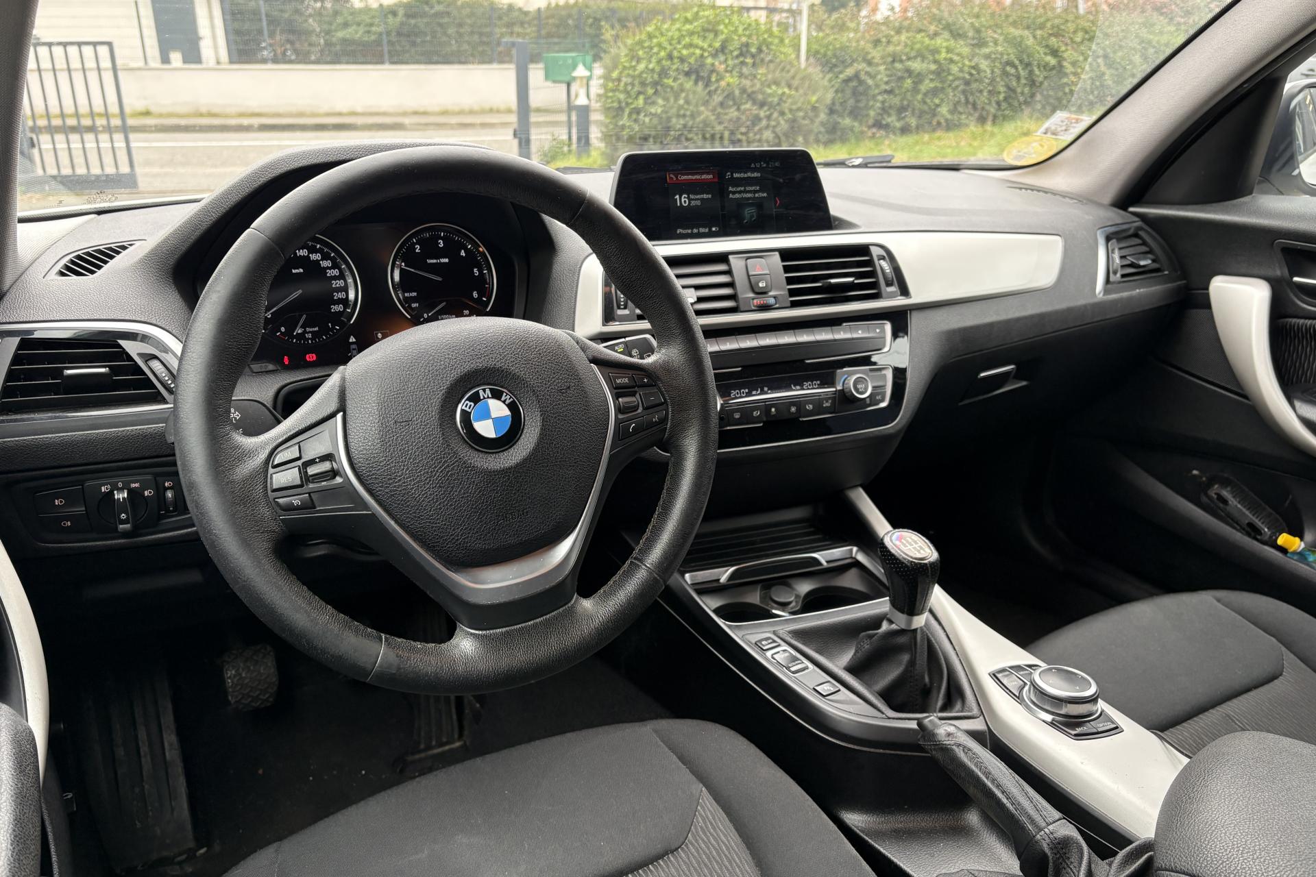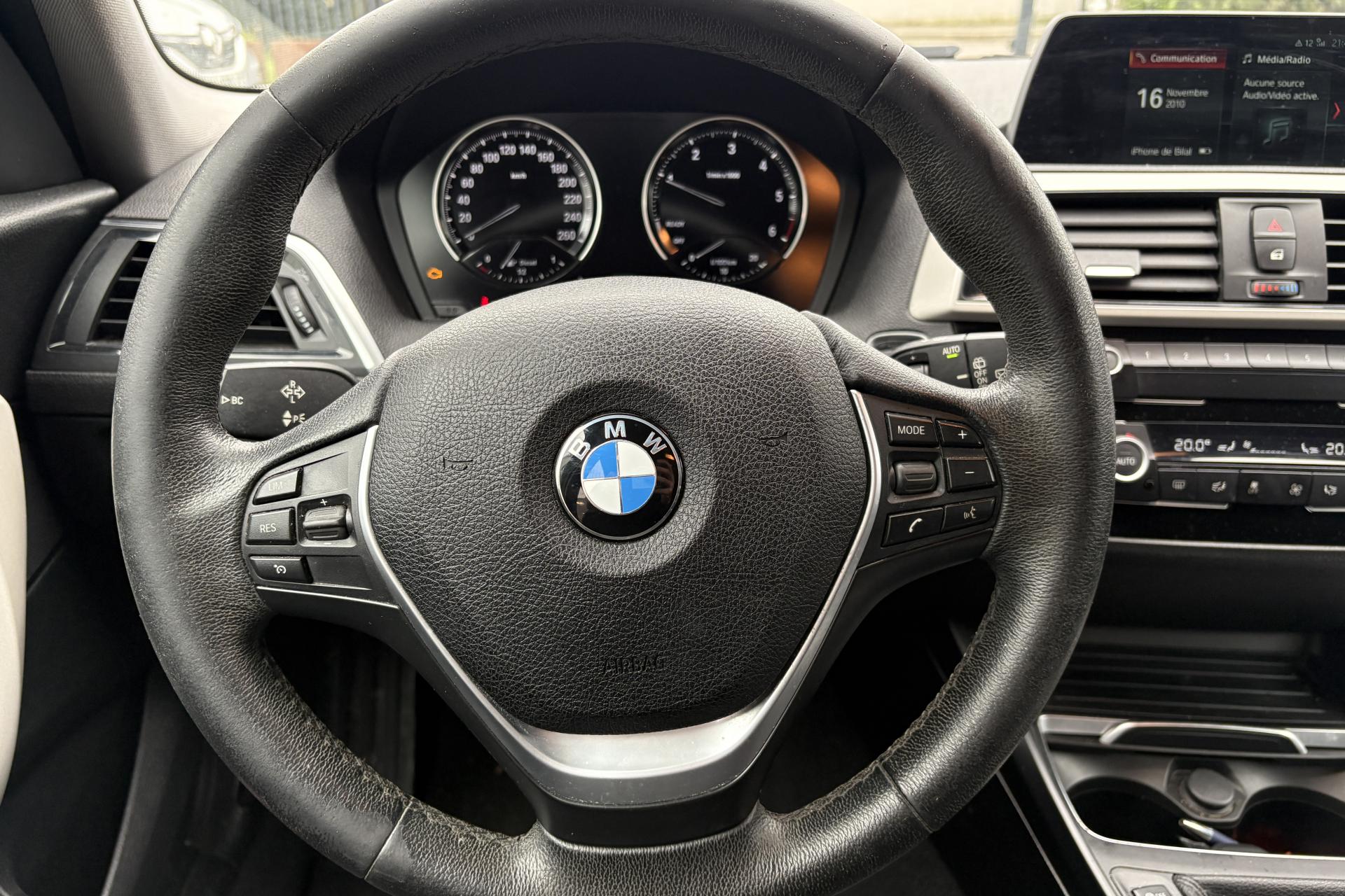 ABS (Antiblocage de roues)Accoudoir central avant coulissant avec rangementAffichage BMW EfficientDynamicsAffichage de la consommation instantanée de carburant intégrée au compte-toursAirbags conducteur et passagerAirbags de tête avant et arrière avec voile de protection contre les débris de verreAirbags latéraux avantAnneaux d'arrimage dans le coffre sur le seuil de chargementAntenne de toit « aileron de requin »Anti-démarrage électroniqueAppel d'Urgence IntelligentAppuis-tête arrière rabattablesAppuis-tête et ceintures de sécurité 3 points à toutes les placesAutoradio BMW ProfessionalBaguettes de pare-chocs AV et AR couleur carrosserieBaguettes de toit couleur carrosserieBanquette arrière 3 places avec dossiers rabattables en deux parties (60/40)BMW TwinPower TurboBoîte de vitesses manuelle 6 rapportsBouquet Services ConnectedDriveClés radiocommandées à mémorisation automatique des réglages "Personal Profile"Clignotants blancs avec répétiteurs latéraux intégrés dans les rétroviseurs extérieursClimatisation automatique avec filtre microporeux et fonction de recyclage d'airConsole centrale noir laquéeConstruction allégée intelligenteContrôle de freinage en courbe CBCContrôle Dynamique de la Stabilité DSC+Contrôle Dynamique de la Traction DTCContrôle électronique de la pression des pneumatiquesDémarrage sans clé via le bouton de démarrage Start/Stop avec contour chroméDésactivation de l'airbag du passager avantDésignation du modèleDétecteur de pluie et allumage automatique des projecteursDeux porte-boissons dans la console centrale avantDéverrouillage électrique du hayon via le macaron BMW ou la radiocommandeDirection à assistance électriqueDirection Servotronic à assistance variable en fonction de la vitesseEclairage de bienvenue et d'accompagnement "Follow-me-home"Ecran d'information central couleur 6,5" (16,5 cm) avec commande par "Controller" iDrive et 6 touches de raccourcis programmablesEcrous antivolFeux antibrouillard arrièreFeux arrière avec guides de lumière à LEDFeux de jour à LEDFeux de stop bi-intensitéFiltre à particulesFixations Isofix aux places latérales arrièreFonction d'arrêt et de redémarrage automatique du moteurFonctions "Ma BMW à distance"Freins à disques ventilés à l'avantGrilles de calandre avec 11 barreaux verticaux noirsIndicateur de changement de rapportInserts décoratifs "Silber" satiné matInterface Bluetooth et port USBJantes en alliage léger 16'' style 378 à rayons en VKit de mobilité BMWKit rangementLimiteur et régulateur de vitesse avec maintien de la vitesse en descenteMesure individuelle de pression des pneumatiques avec 3 niveaux d'alerteOrdinateur de bord, Check-Control et indicateur de température extérieurePoignées de portes couleur carrosseriePrise 12 V sur console centrale avantProjecteurs antibrouillardRétroviseurs extérieurs à réglages électriques et dégivrants, avec miroir asphérique côté conducteurRétroviseurs extérieurs couleur carrosserieSélecteur de mode de conduite avec nouveau mode ECO PROSellerie tissu MoveServices Après-Vente connectés BMW TeleServicesServices BMW ConnectedDriveSeuils de portes signés "BMW"Sièges conducteur et passager réglables en hauteurSortie d'échappement simple, ronde et chromée matSystème de récupération de l'énergie au freinageTapis de sol en veloursTeinte de carrosserie "Schwarz" unieTouches de chrome autour des buses d'aération de la console centrale, de la radio et de la climatisationTouches multifonctions sur le volantTriangle de présignalisation avec kit de premiers secoursTroisième feu stop à LEDVerrouillage automatique des portes dès 15km/hVerrouillage centralisé des portes, du coffre et de la trappe à essenceVide-poches ergonomiques dans les portes avant et sous le volantVitres avant et arrière électriques à impulsion avec système ant-ipincementVitres teintées vertesVolant 3 branches en cuirVolant réglable en hauteur et en profondeur